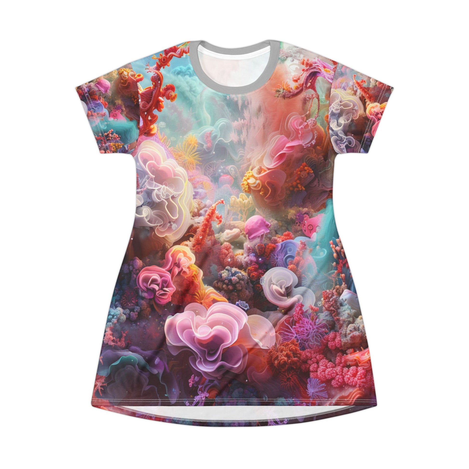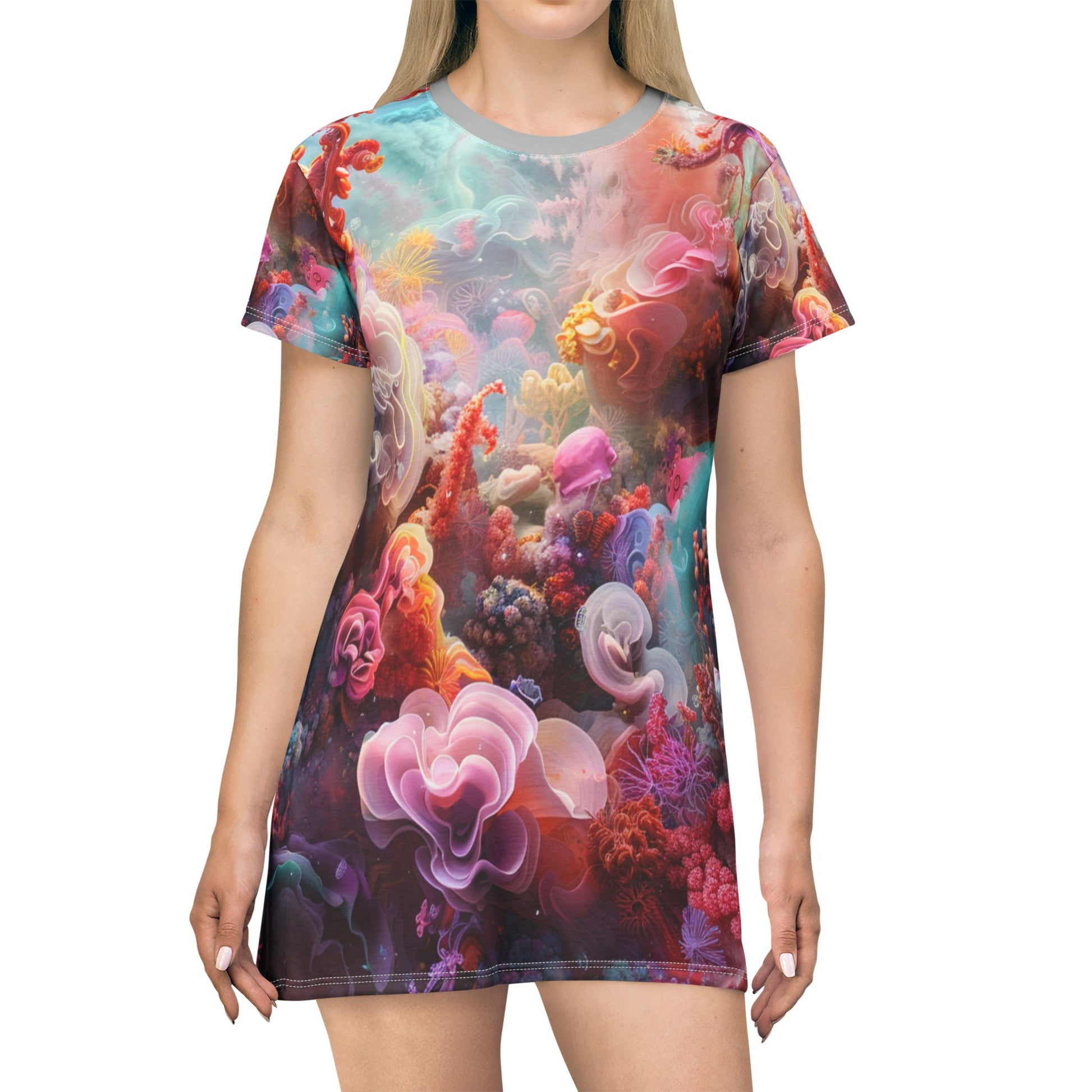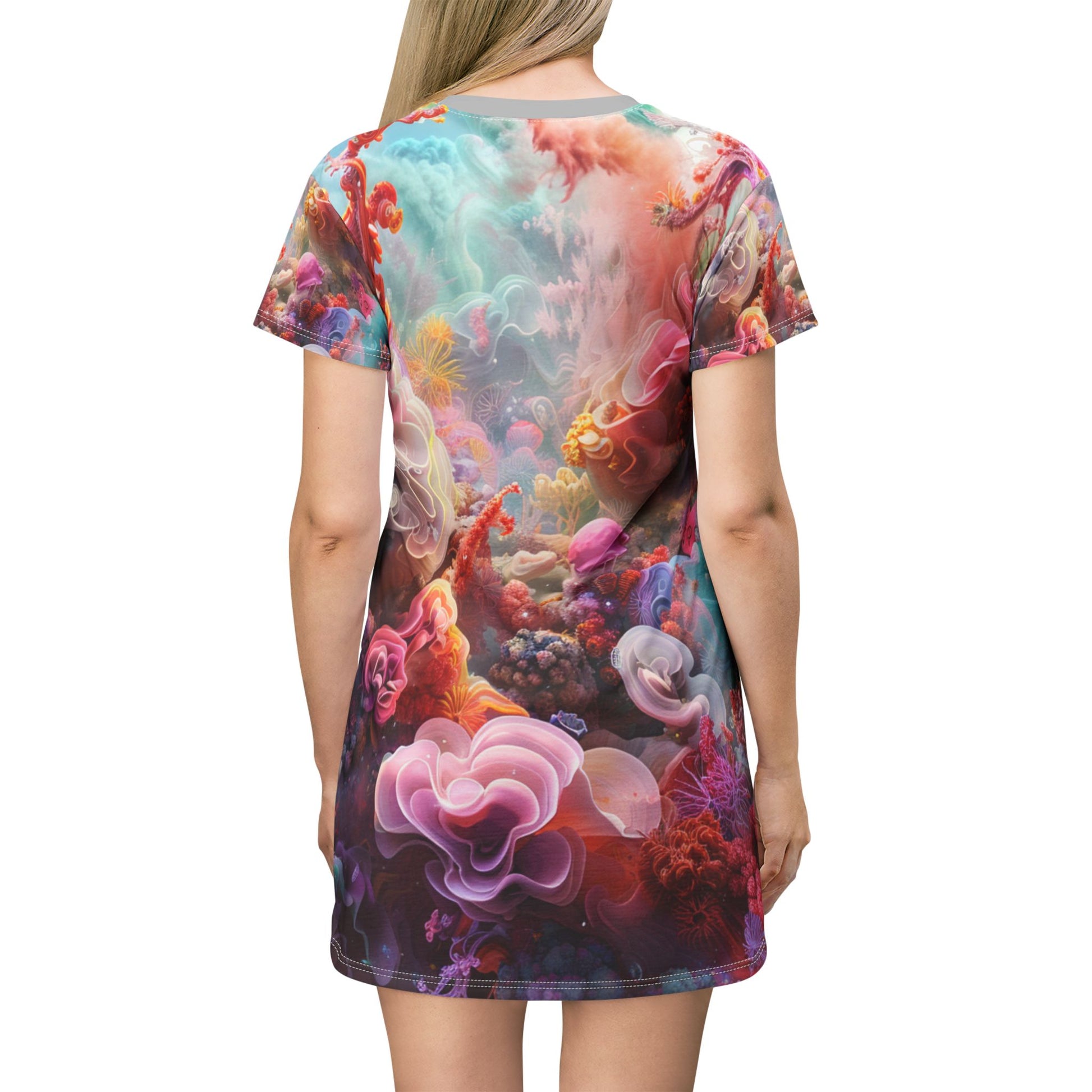 Embrace artistry and comfort with the Abstract Watercolor T-shirt Dress. This stylish and versatile dress features a captivating watercolor design, adding a touch of bohemian chic to your wardrobe.