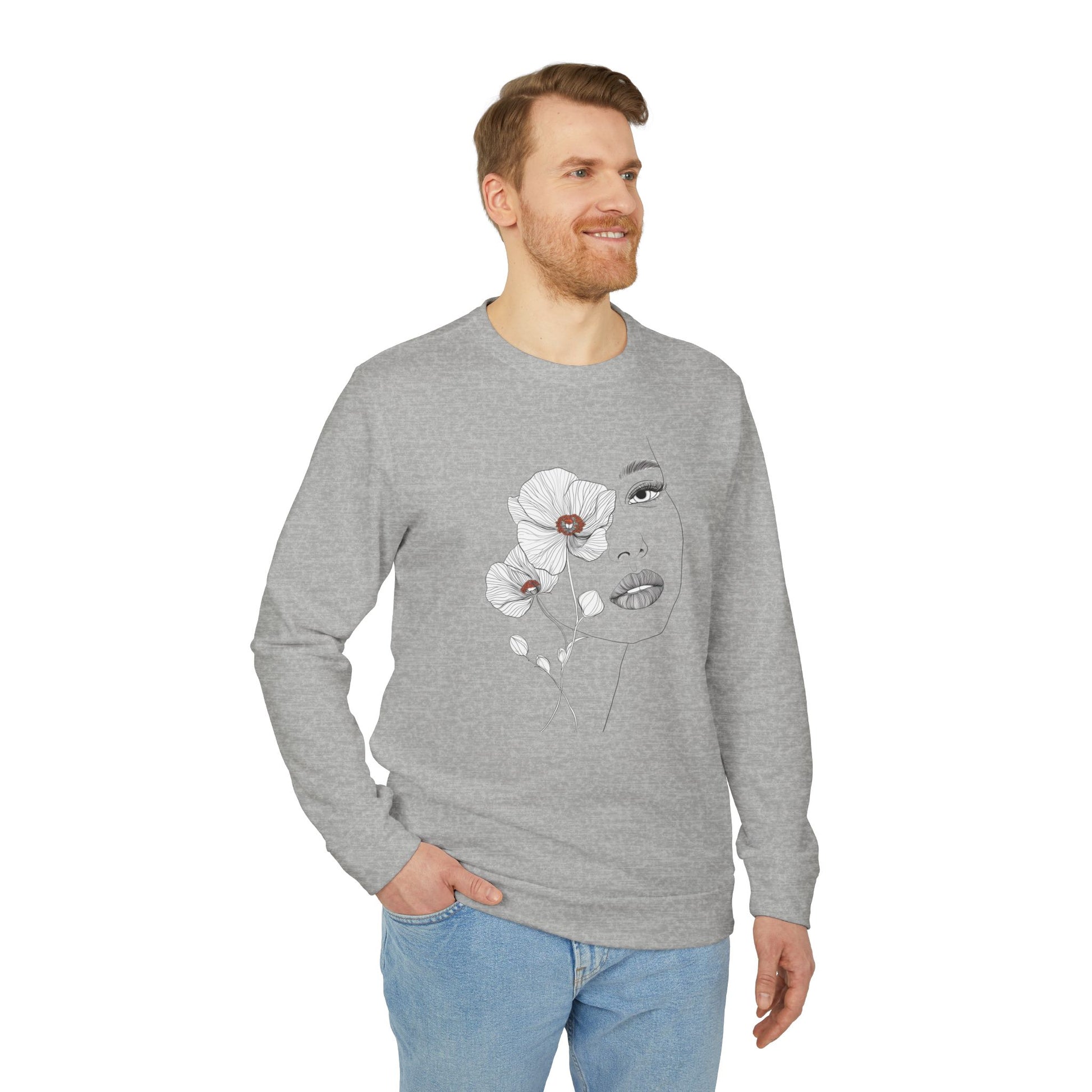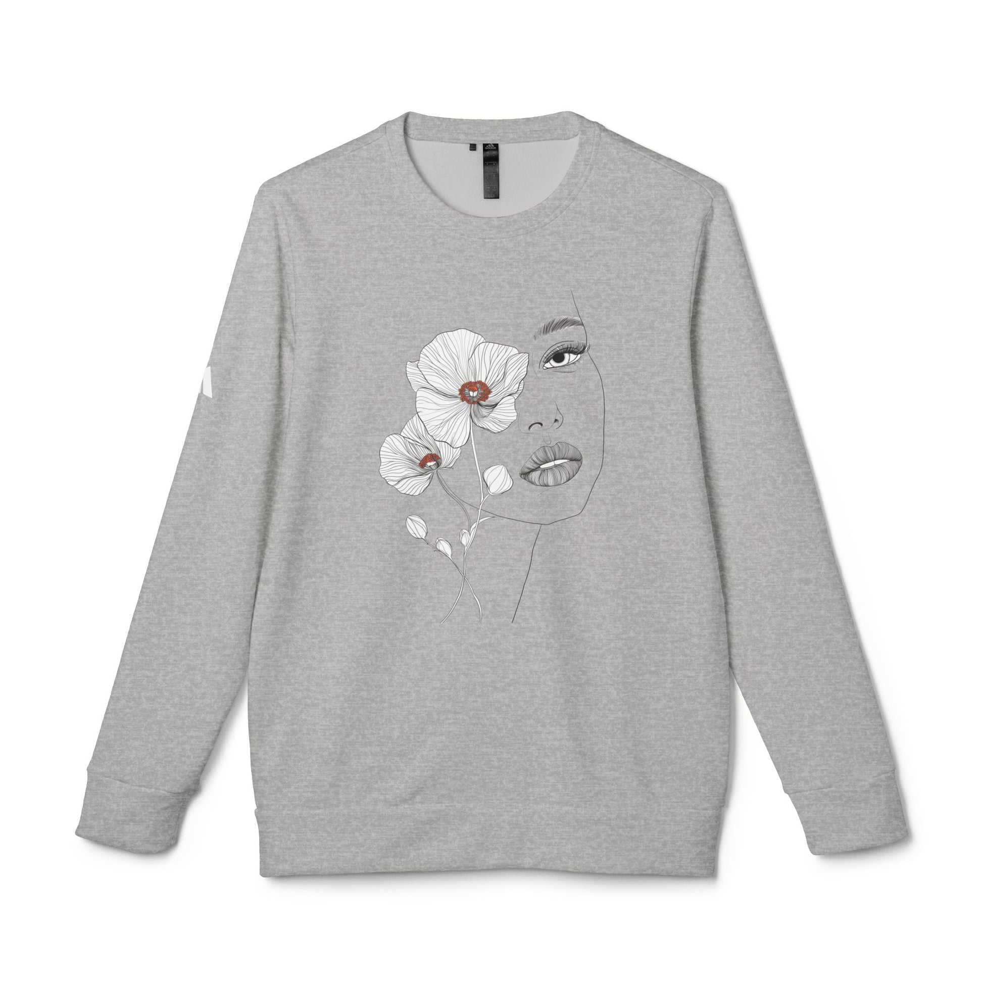 adidas Unisex Fleece Crewneck Sweatshirt - Minimalist Floral Face Line Art Design Sweatshirt
