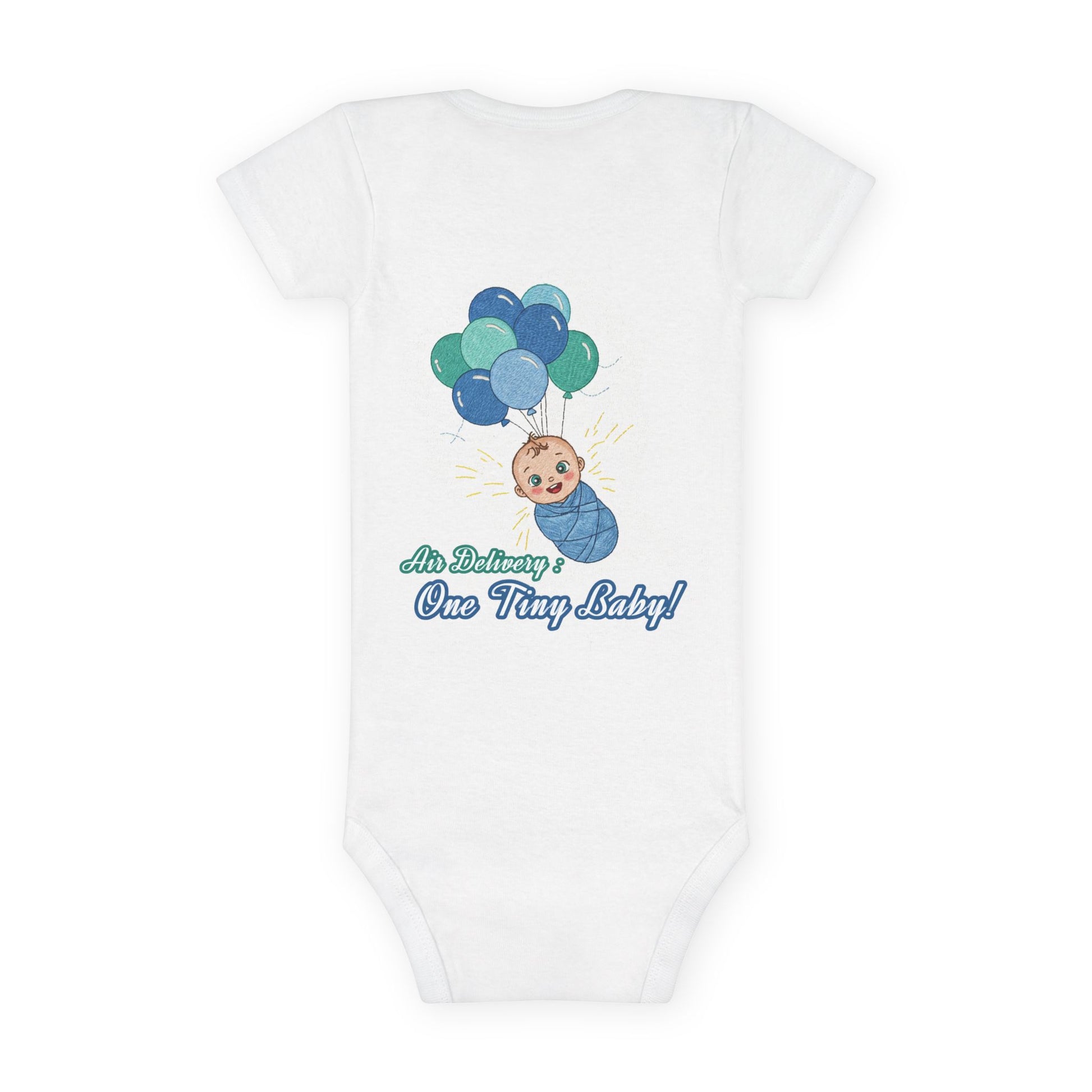 Adorable Organic Baby Bodysuit - "Air Delivery: One Tiny Human" Design Bodysuit for Boys