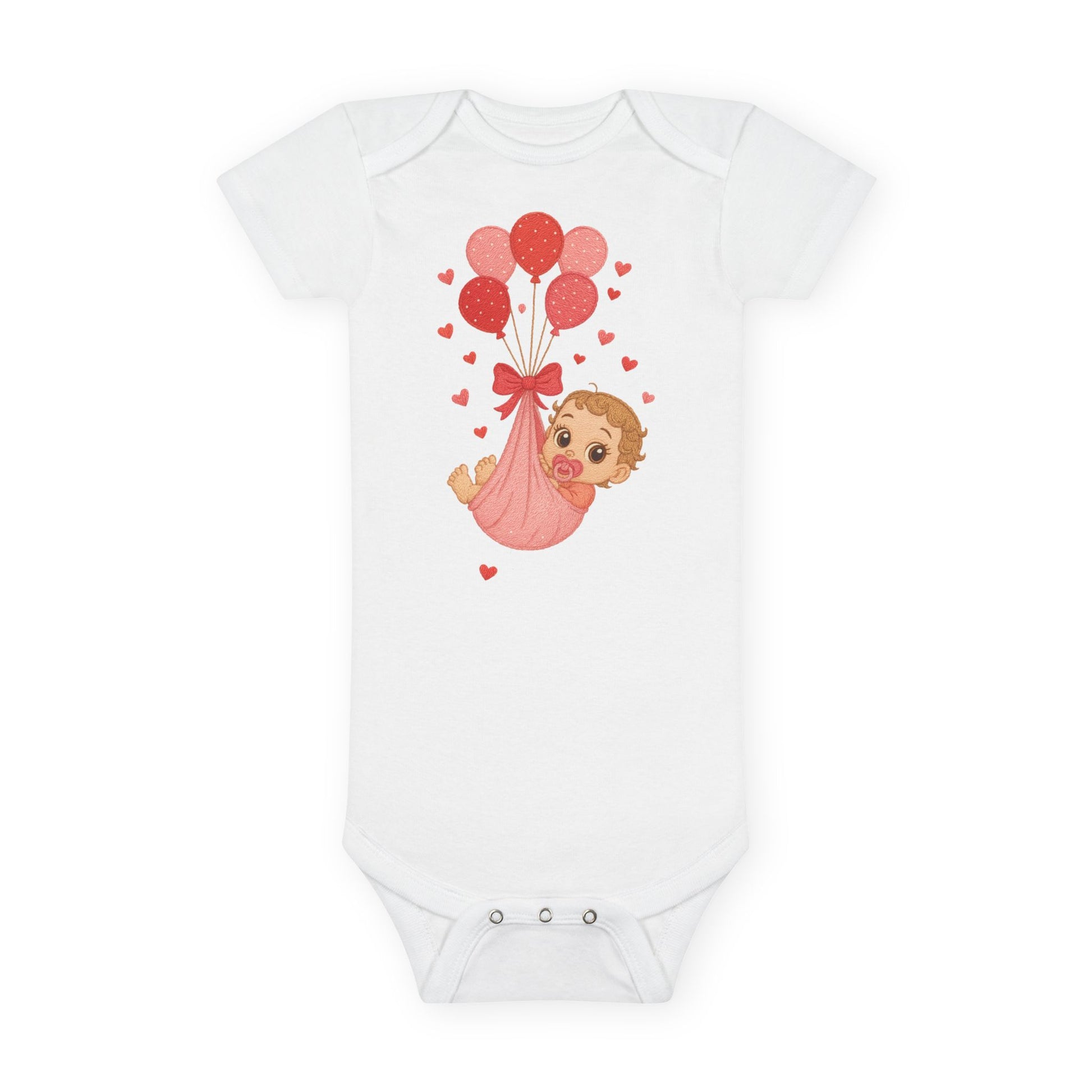 Air Delivery Organic Baby Onesie - One Cute Baby with Balloons Design Bodysuit for Girl
