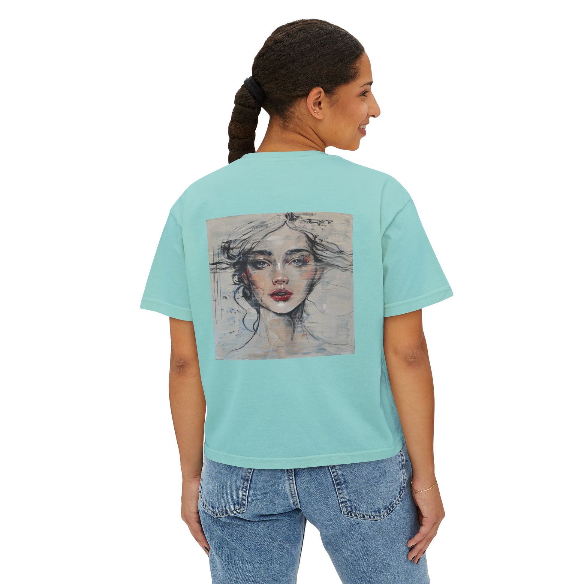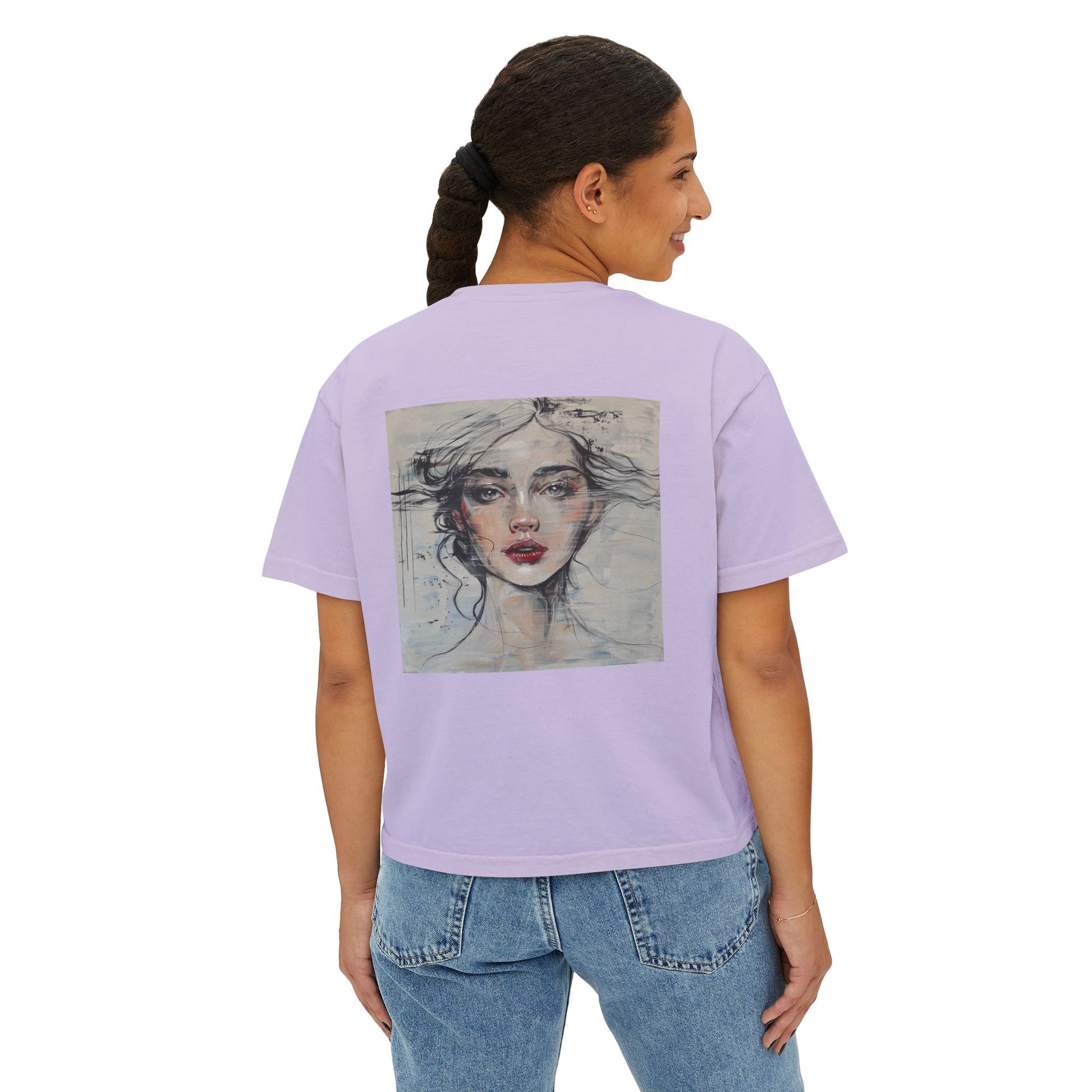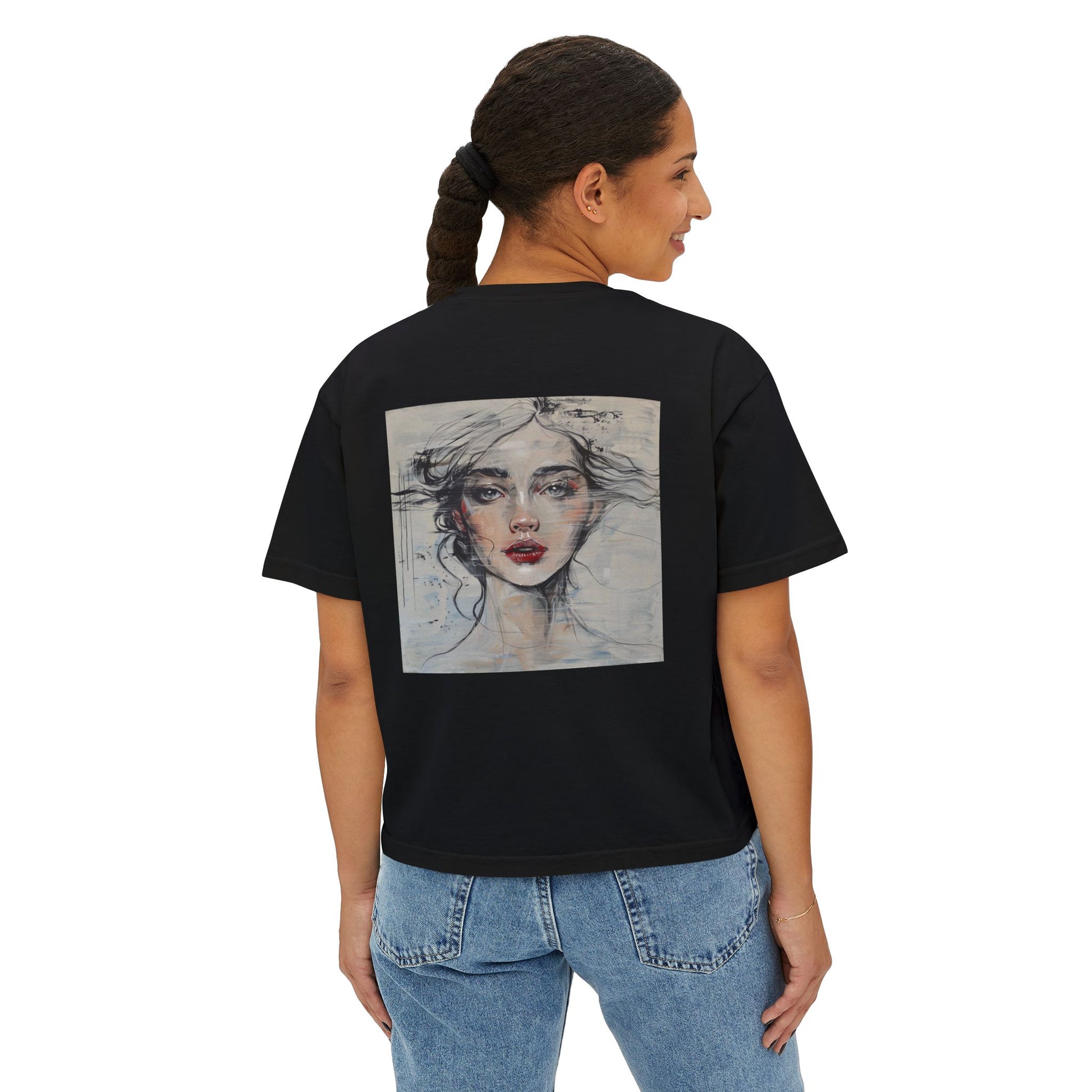 Artistic Women's Boxy Tee - Modern Graphic Top for Casual Style