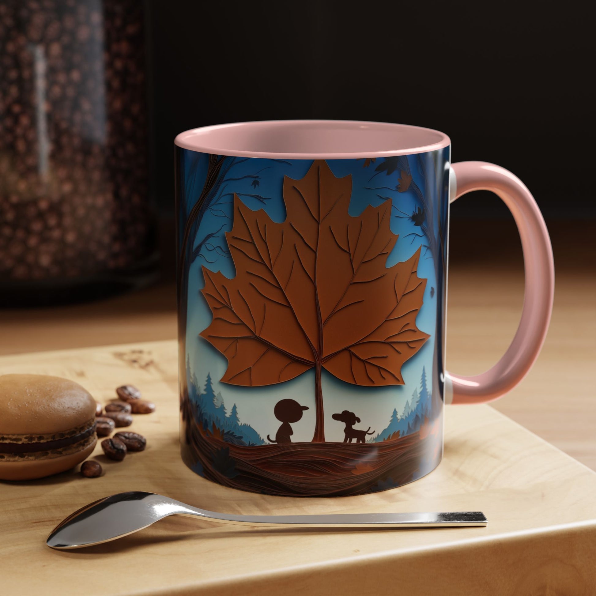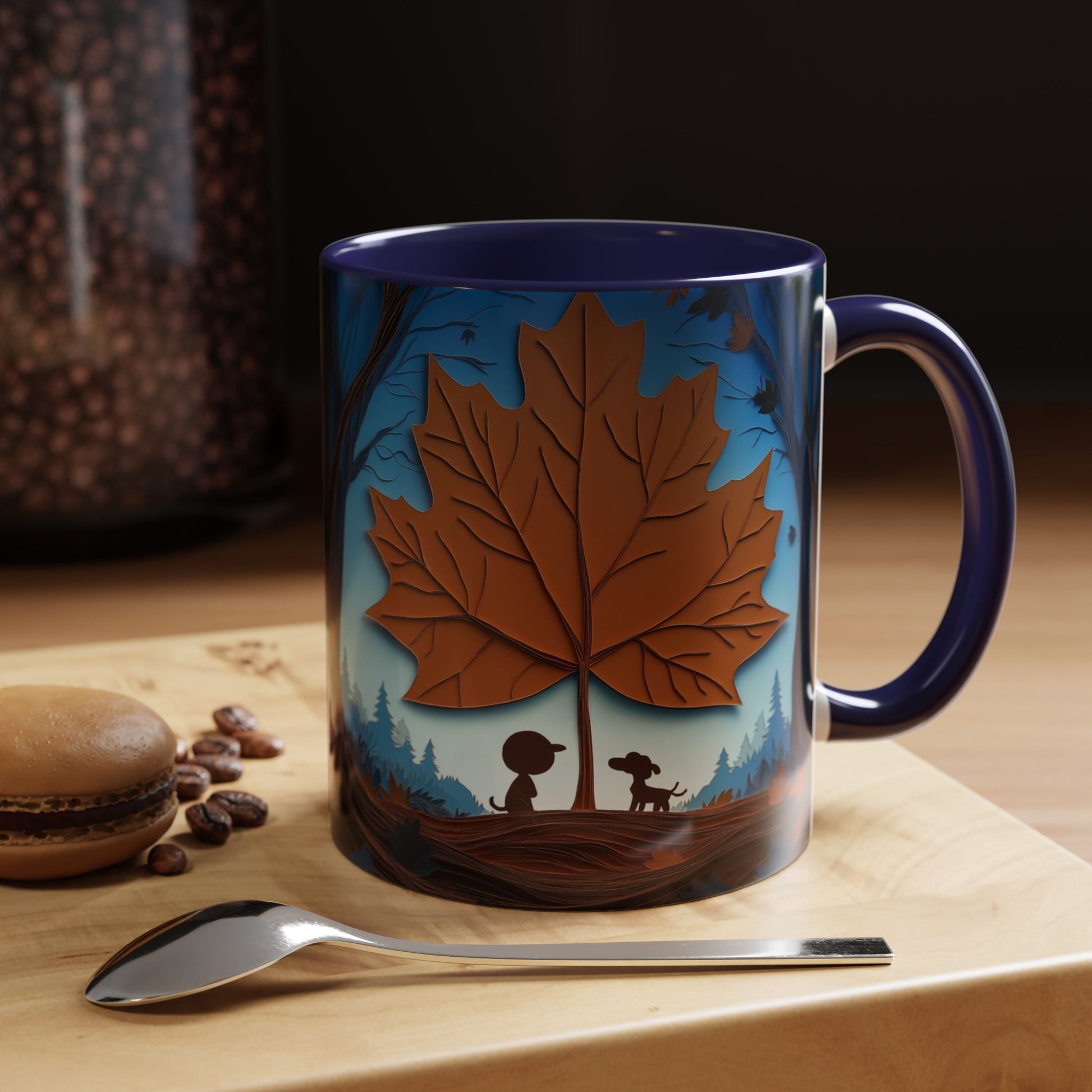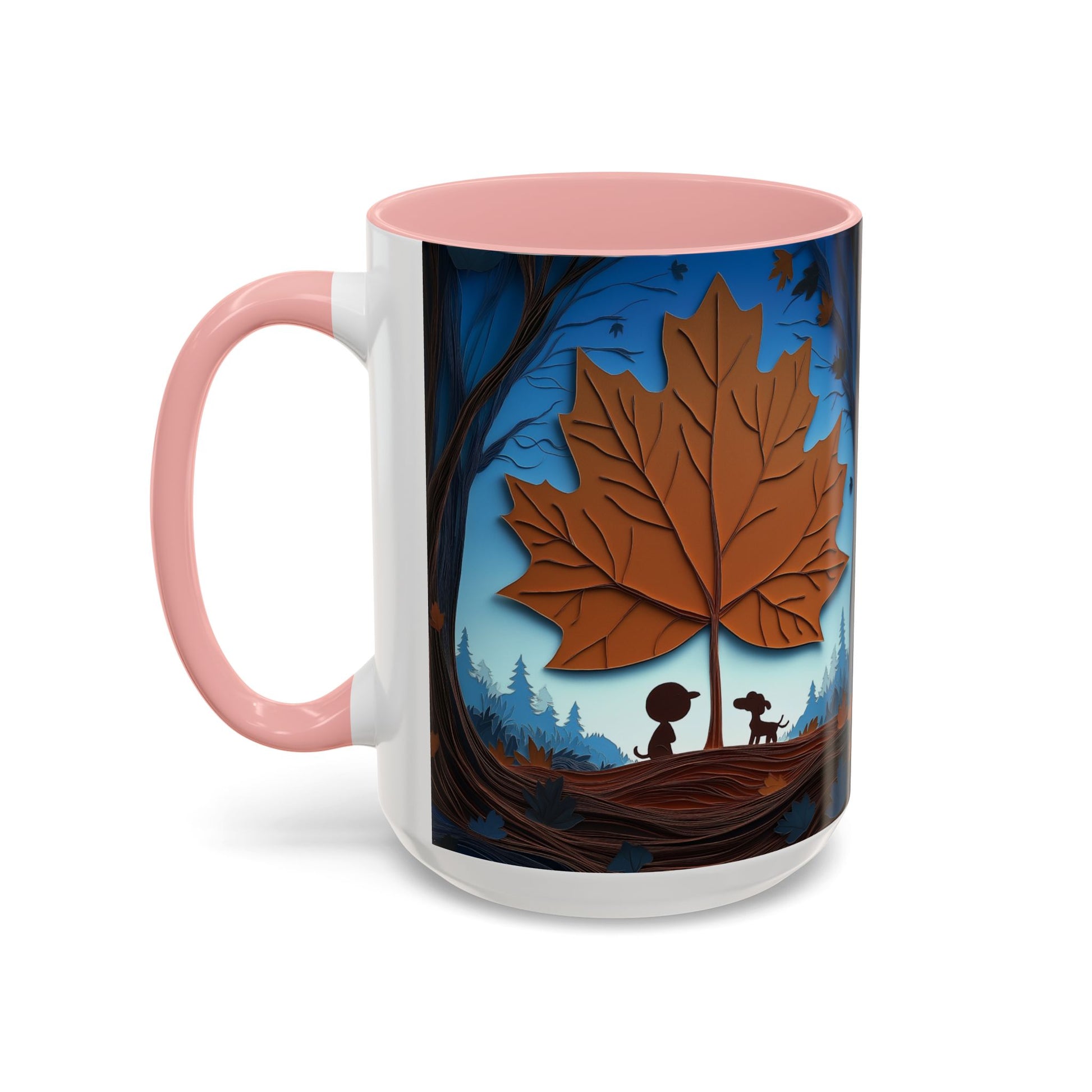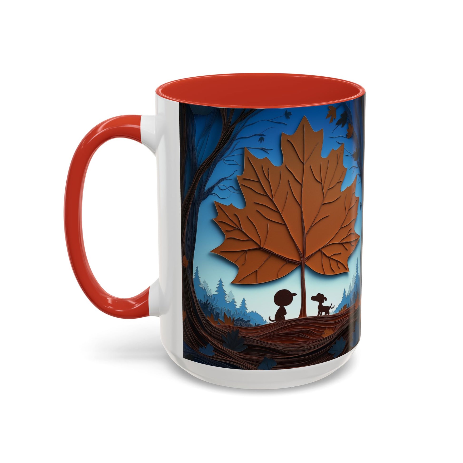 Embrace the nostalgic charm of autumn with the Autumn Ceramic Mug. This unique mug features a hand-crafted aesthetic with a brown leaf serving as a canvas for the iconic silhouettes. Set against a backdrop of stylized trees and a serene blue sky, this design captures the heartwarming essence of the classic cartoon. Perfect for your morning coffee, tea, or any comforting beverage, this mug brings a touch of childhood nostalgia and seasonal warmth to your daily routine, and the high-resolution mug makes an ideal gift or personal keepsake. Crafted from high-quality ceramic, it's both microwave and dishwasher safe for your convenience.