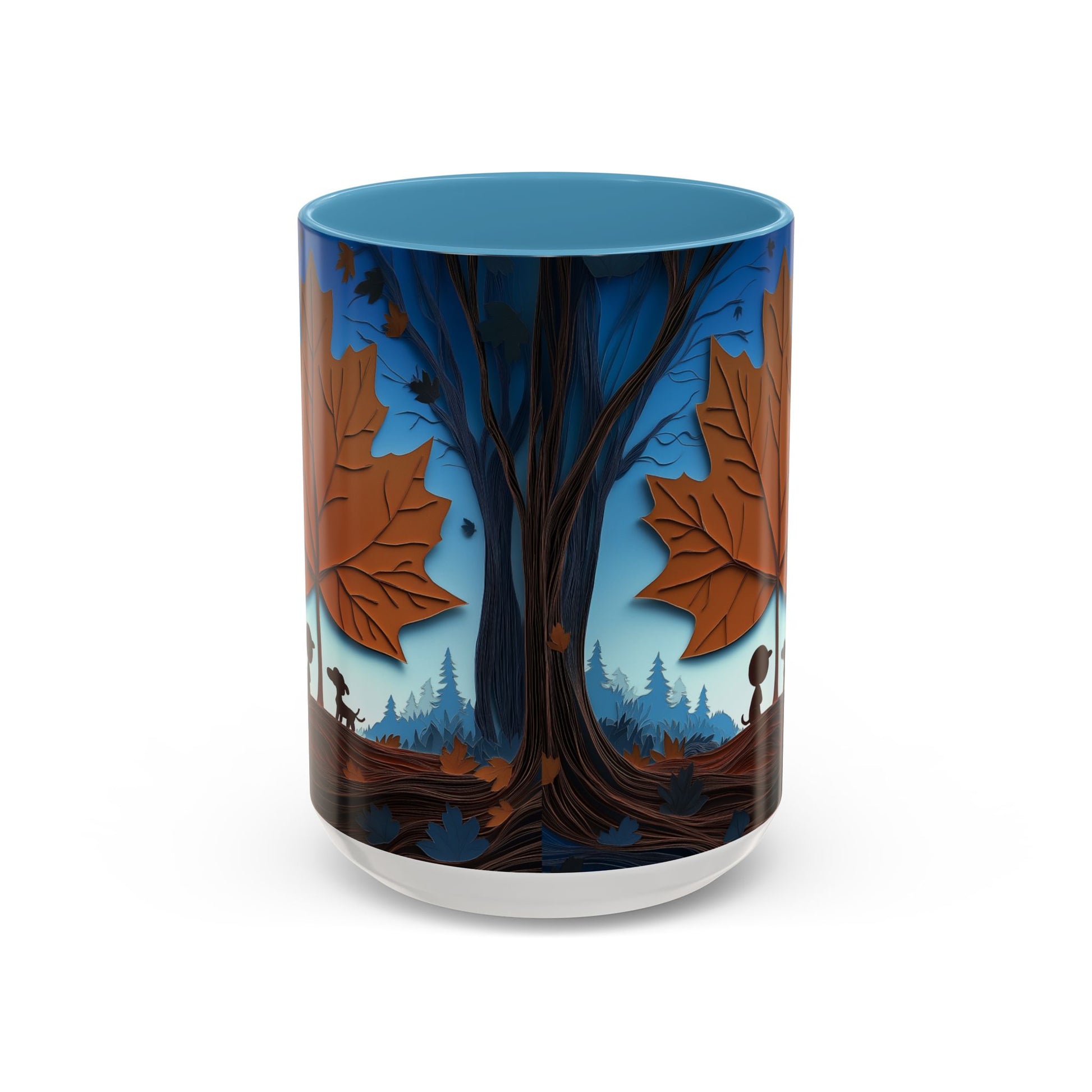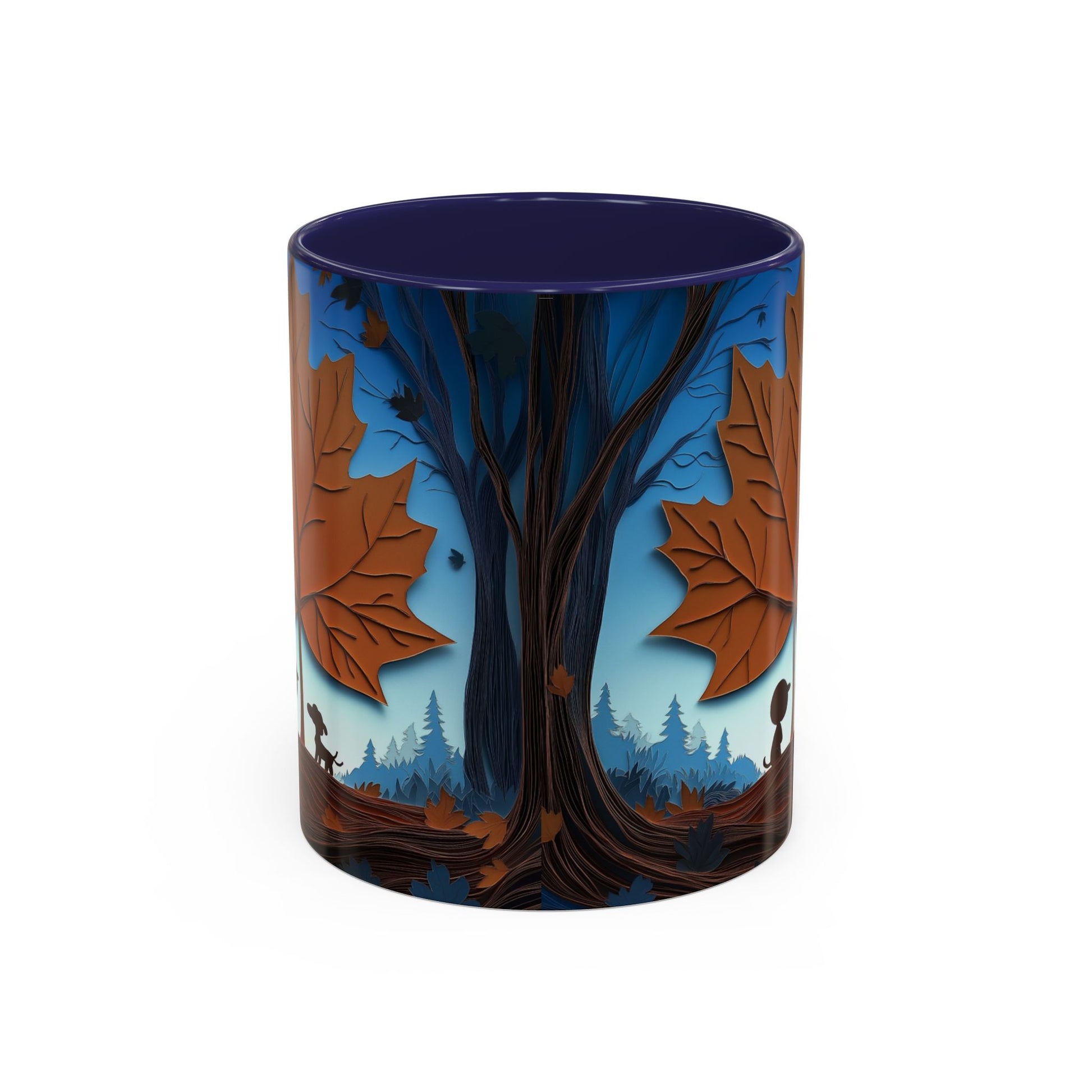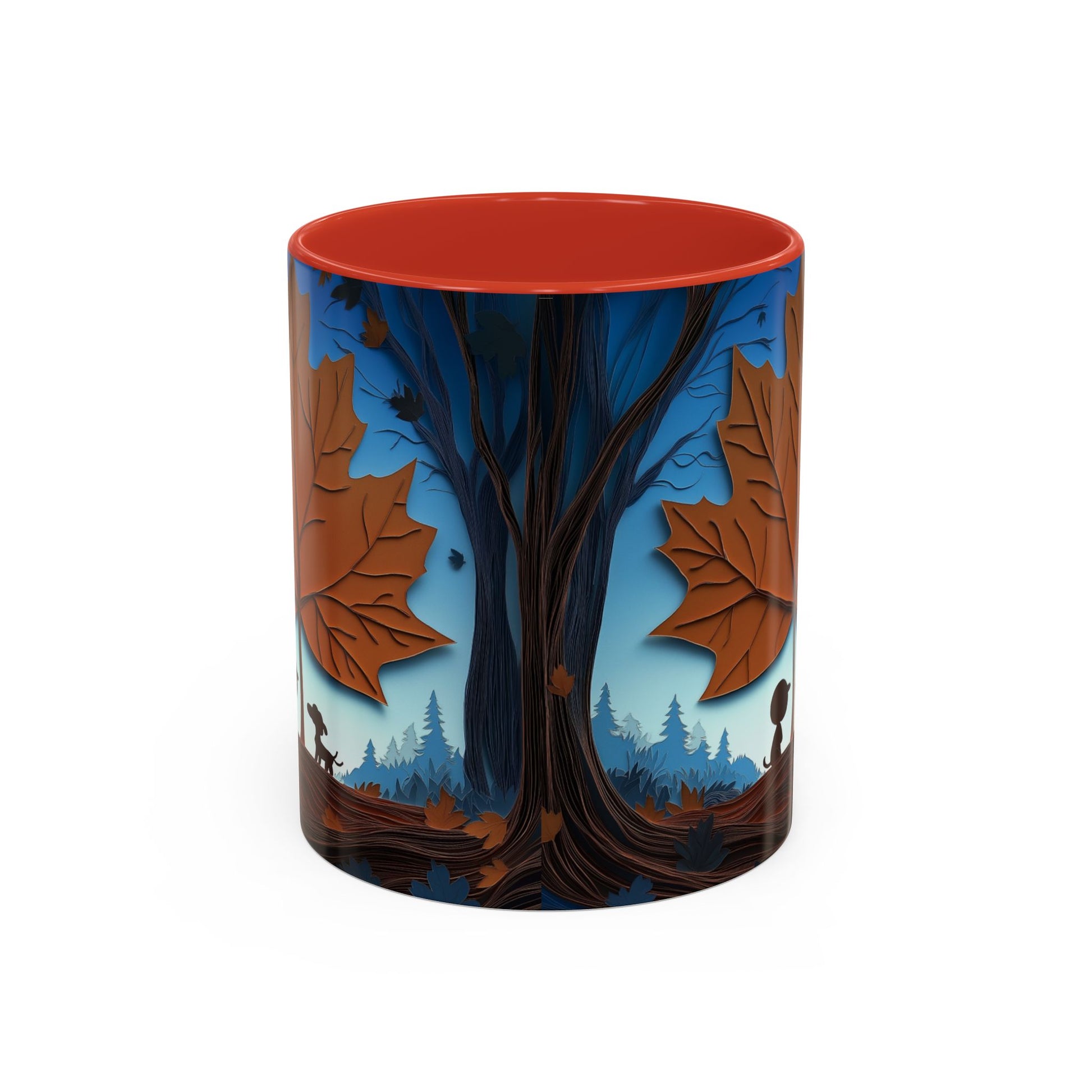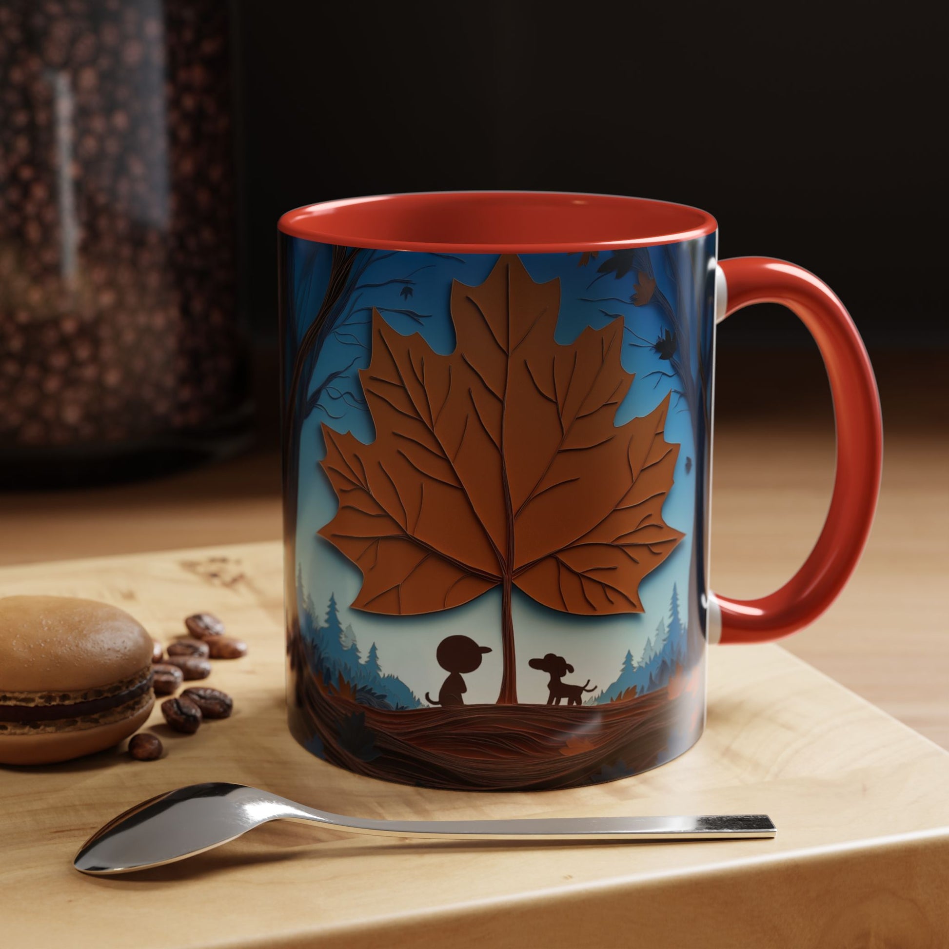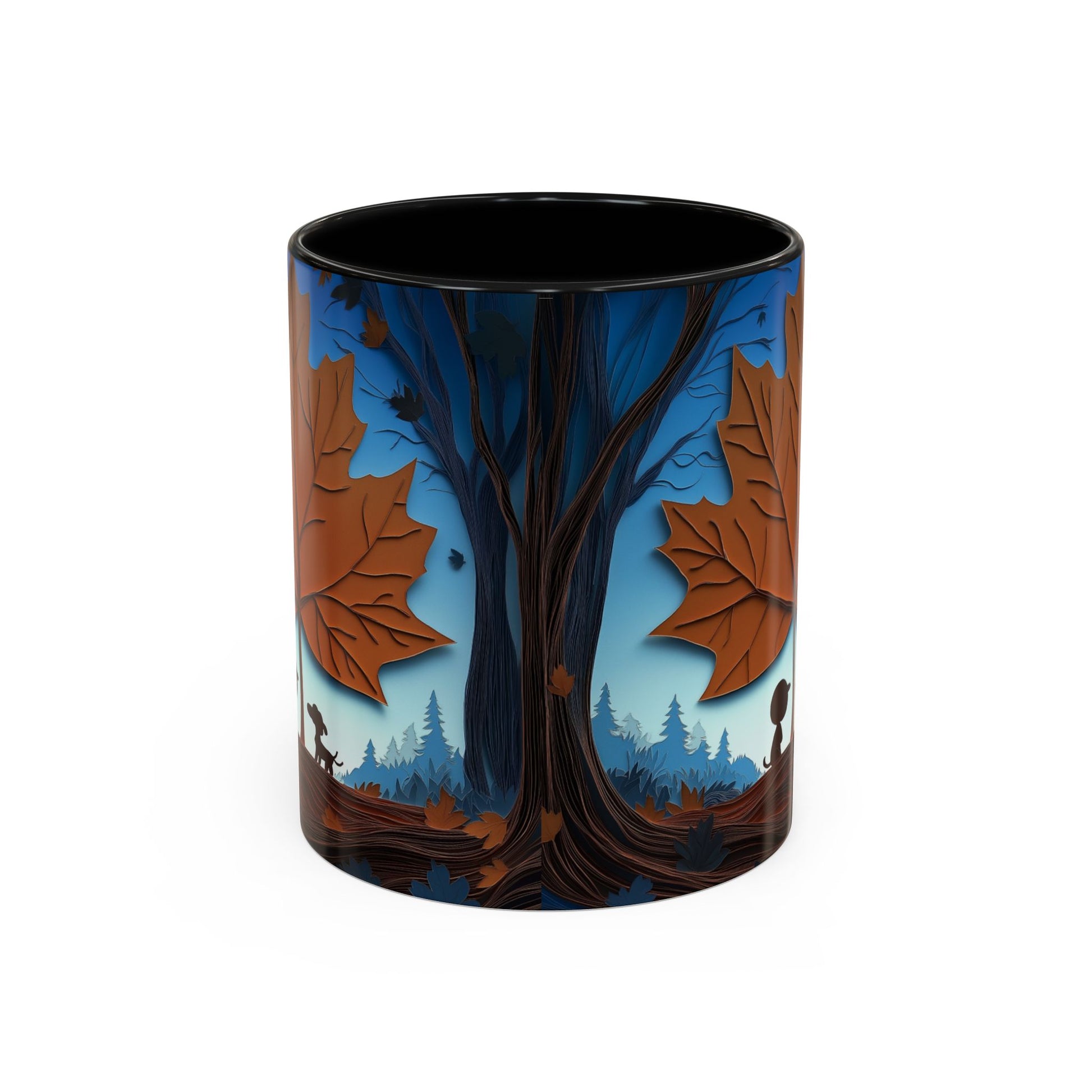 Embrace the nostalgic charm of autumn with the Autumn Ceramic Mug. This unique mug features a hand-crafted aesthetic with a brown leaf serving as a canvas for the iconic silhouettes. Set against a backdrop of stylized trees and a serene blue sky, this design captures the heartwarming essence of the classic cartoon. Perfect for your morning coffee, tea, or any comforting beverage, this mug brings a touch of childhood nostalgia and seasonal warmth to your daily routine, and the high-resolution mug makes an ideal gift or personal keepsake. Crafted from high-quality ceramic, it's both microwave and dishwasher safe for your convenience.