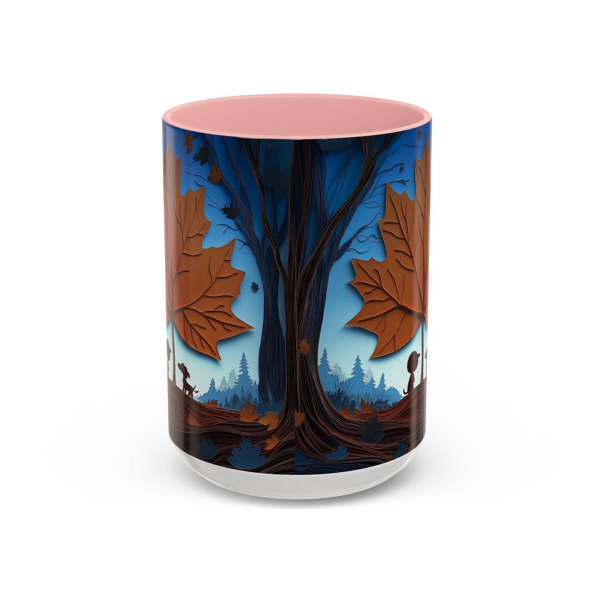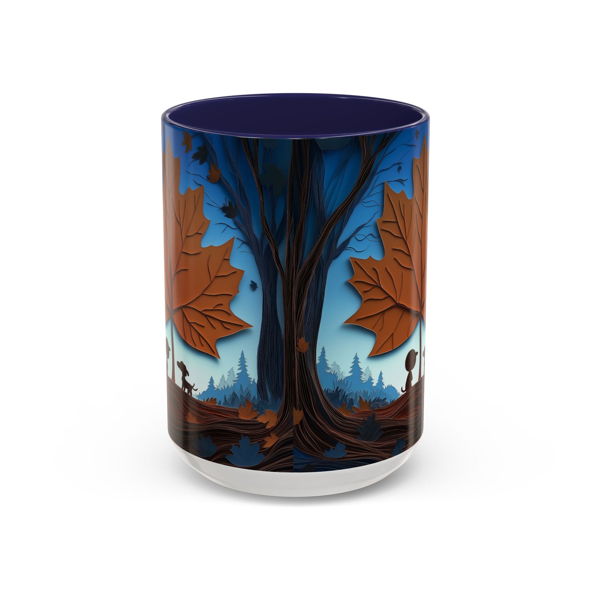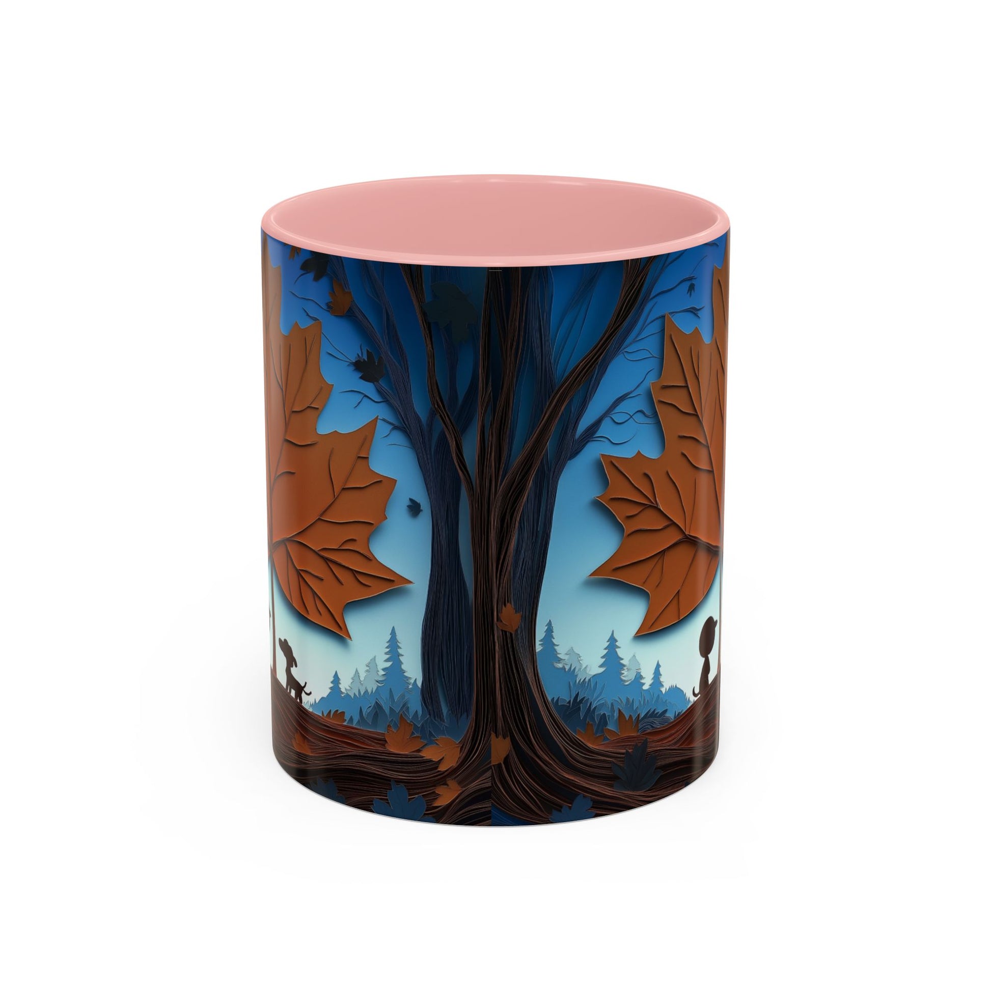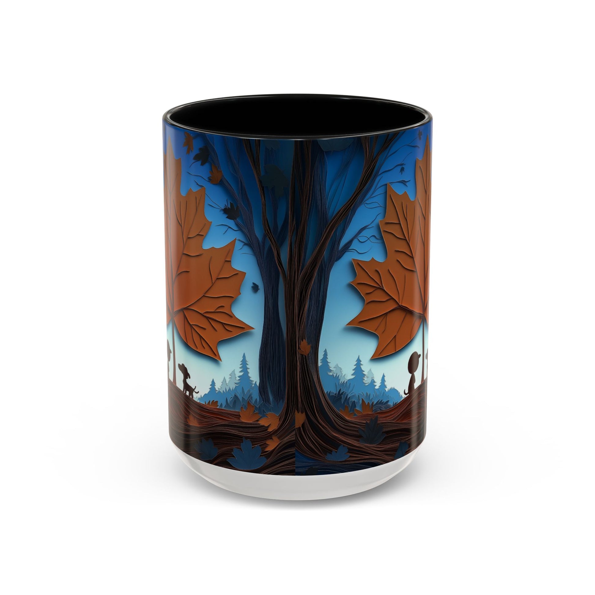 Embrace the nostalgic charm of autumn with the Autumn Ceramic Mug. This unique mug features a hand-crafted aesthetic with a brown leaf serving as a canvas for the iconic silhouettes. Set against a backdrop of stylized trees and a serene blue sky, this design captures the heartwarming essence of the classic cartoon. Perfect for your morning coffee, tea, or any comforting beverage, this mug brings a touch of childhood nostalgia and seasonal warmth to your daily routine, and the high-resolution mug makes an ideal gift or personal keepsake. Crafted from high-quality ceramic, it's both microwave and dishwasher safe for your convenience.