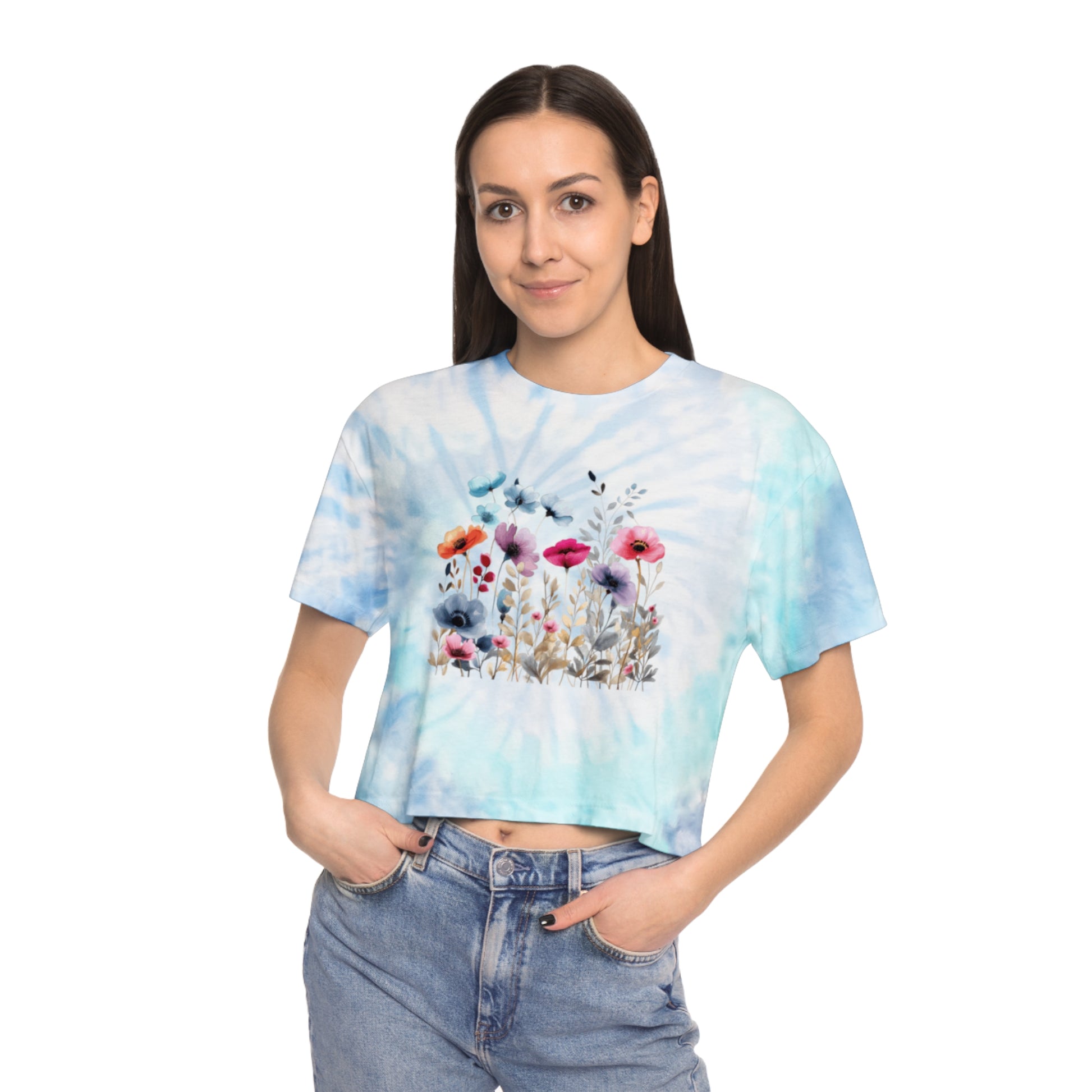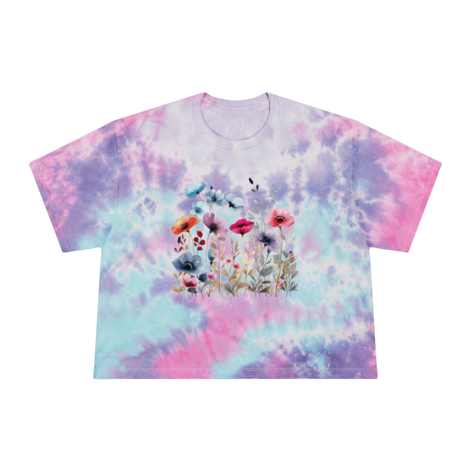 Beautiful Watercolor Floral Tie-Dye Crop Tee - T-Shirt for Women