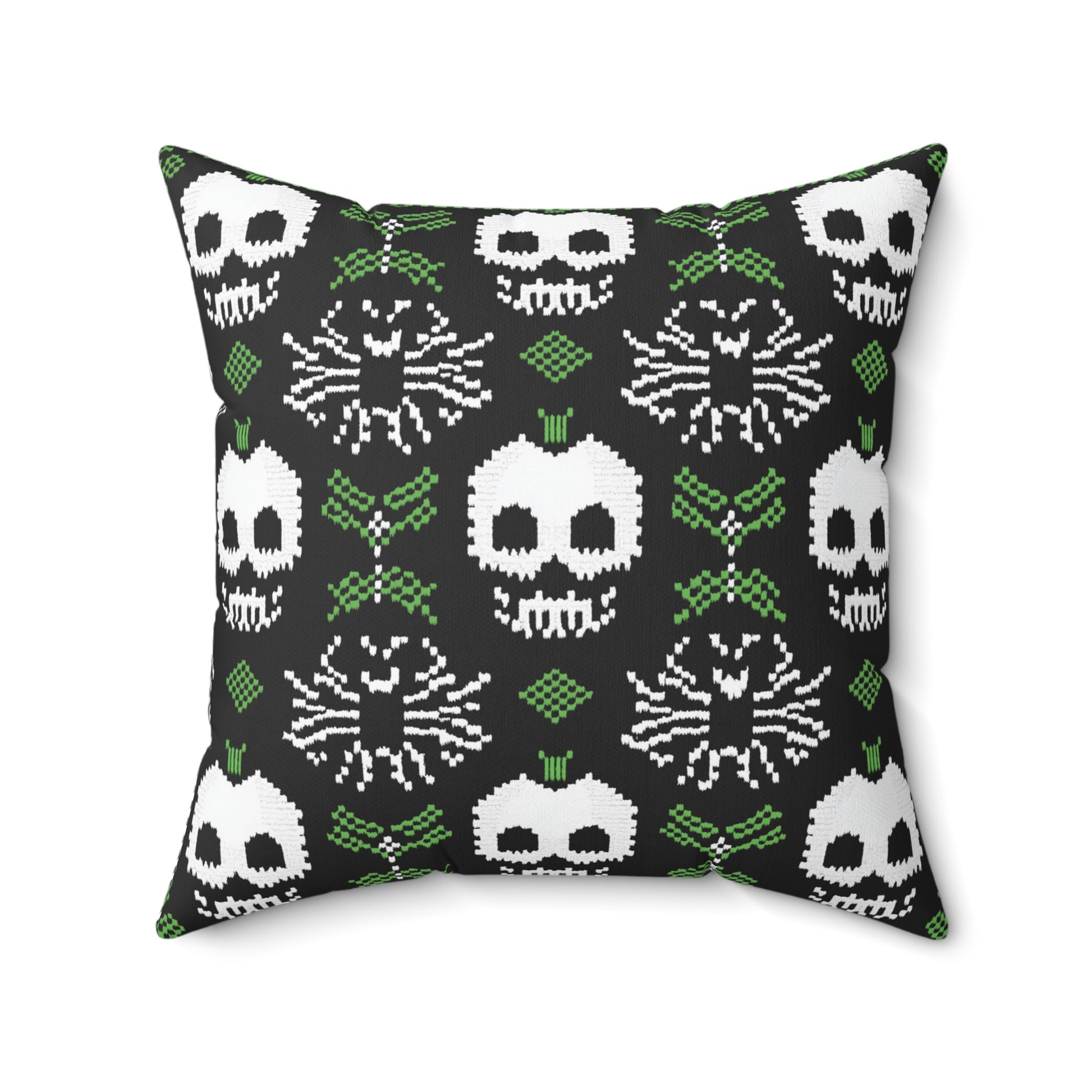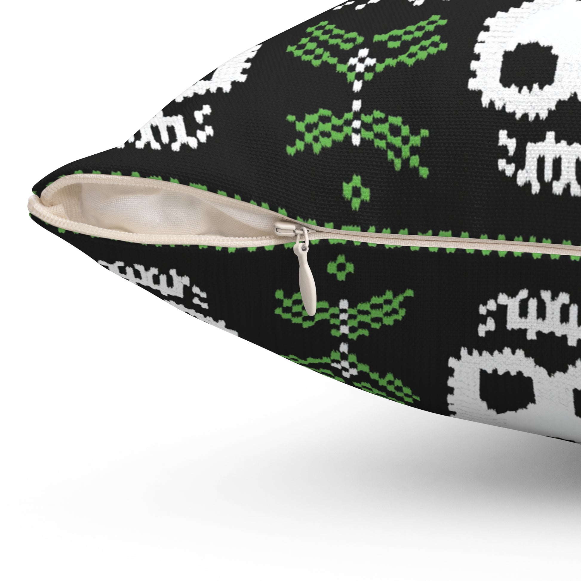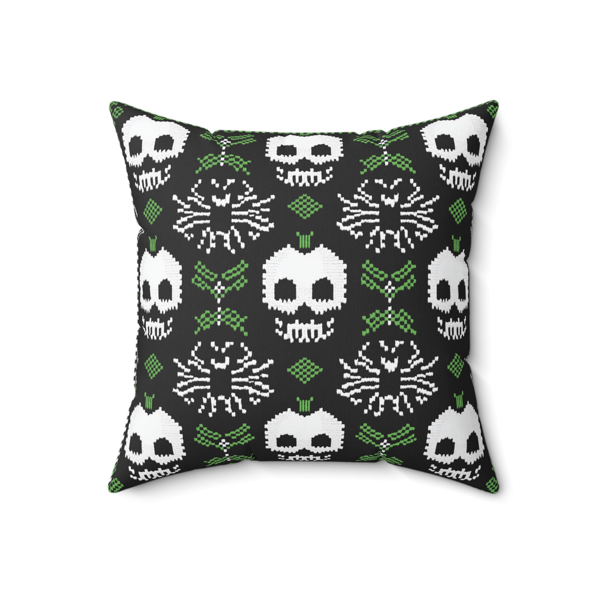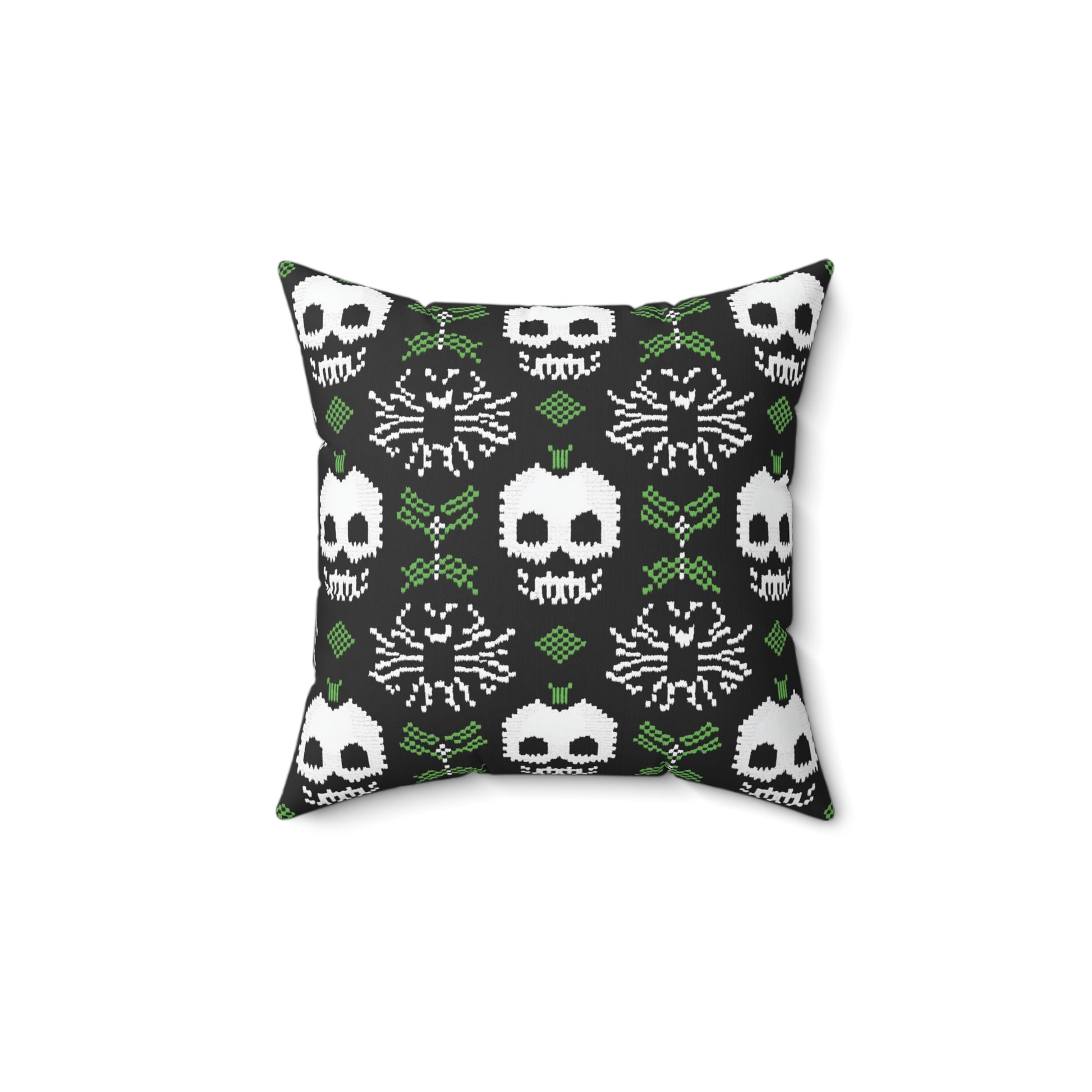 Black Halloween Pillow - Spun Polyester Square Pillow with Skulls and Spiders Design