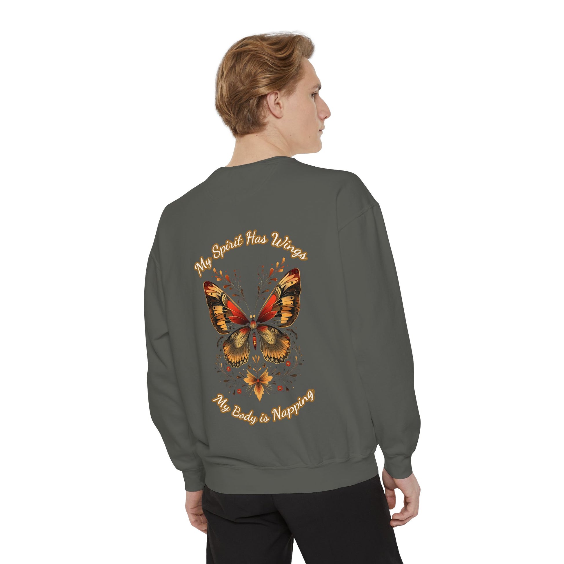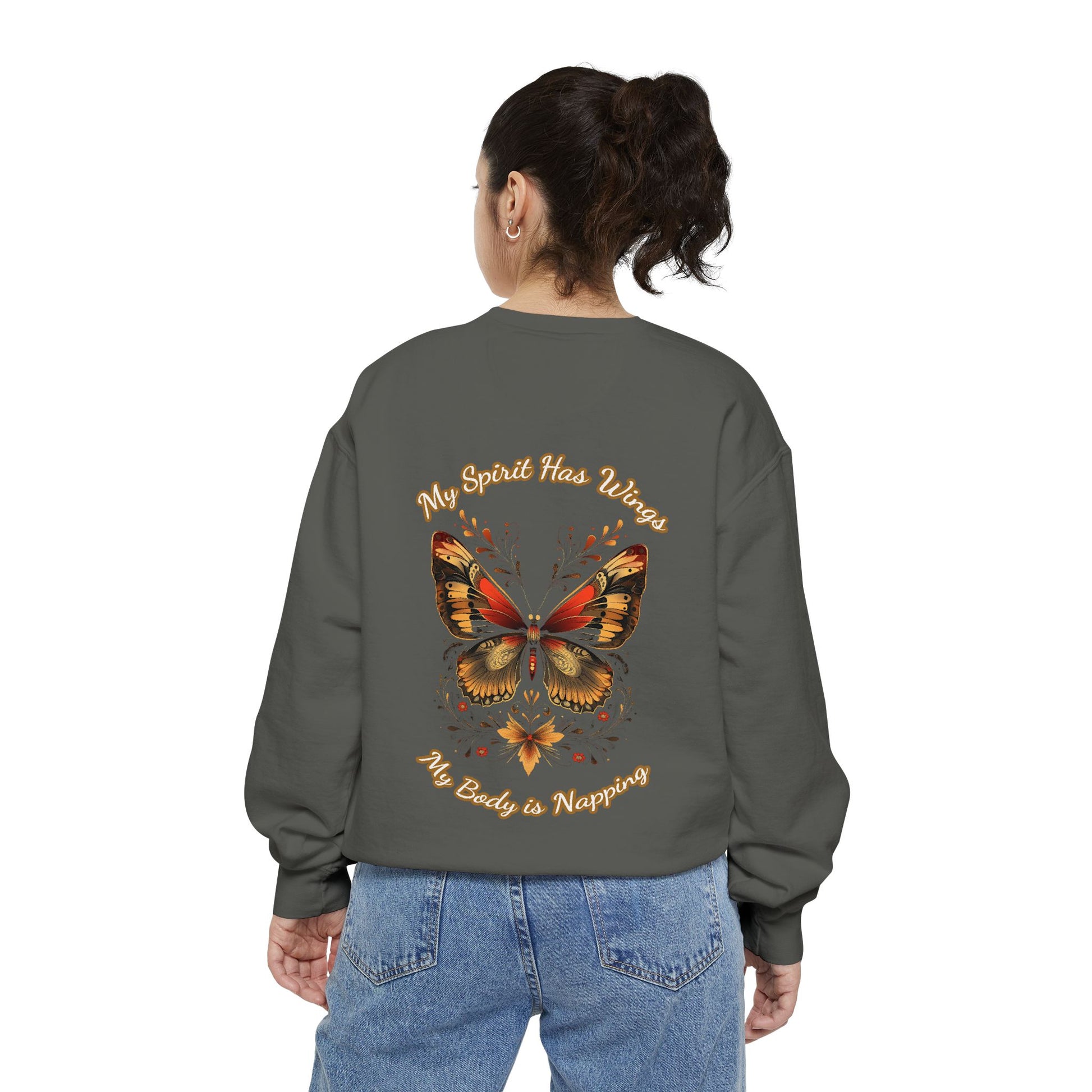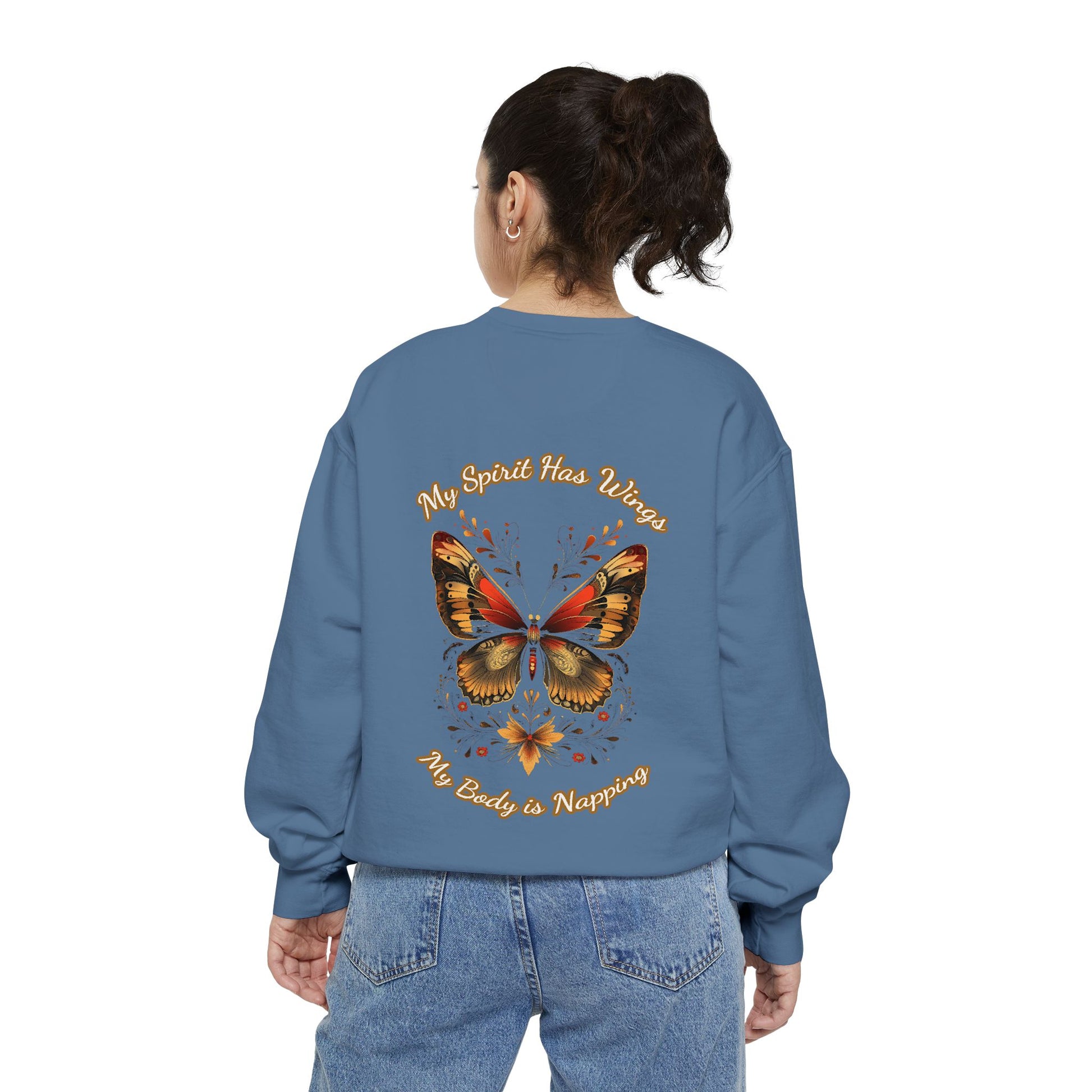 Butterfly Design Unisex Garment-Dyed Sweatshirt - Butterfly Sweatshirt