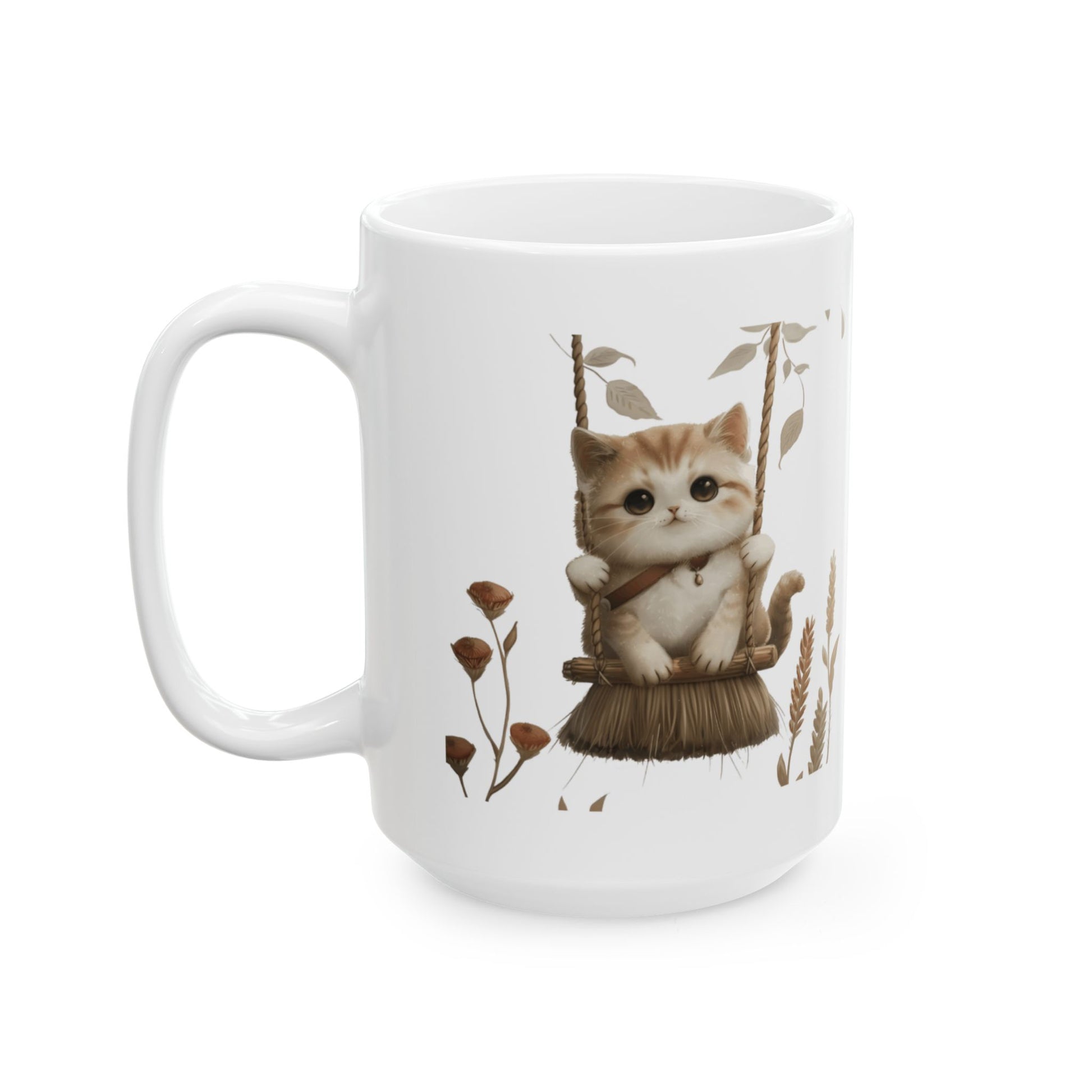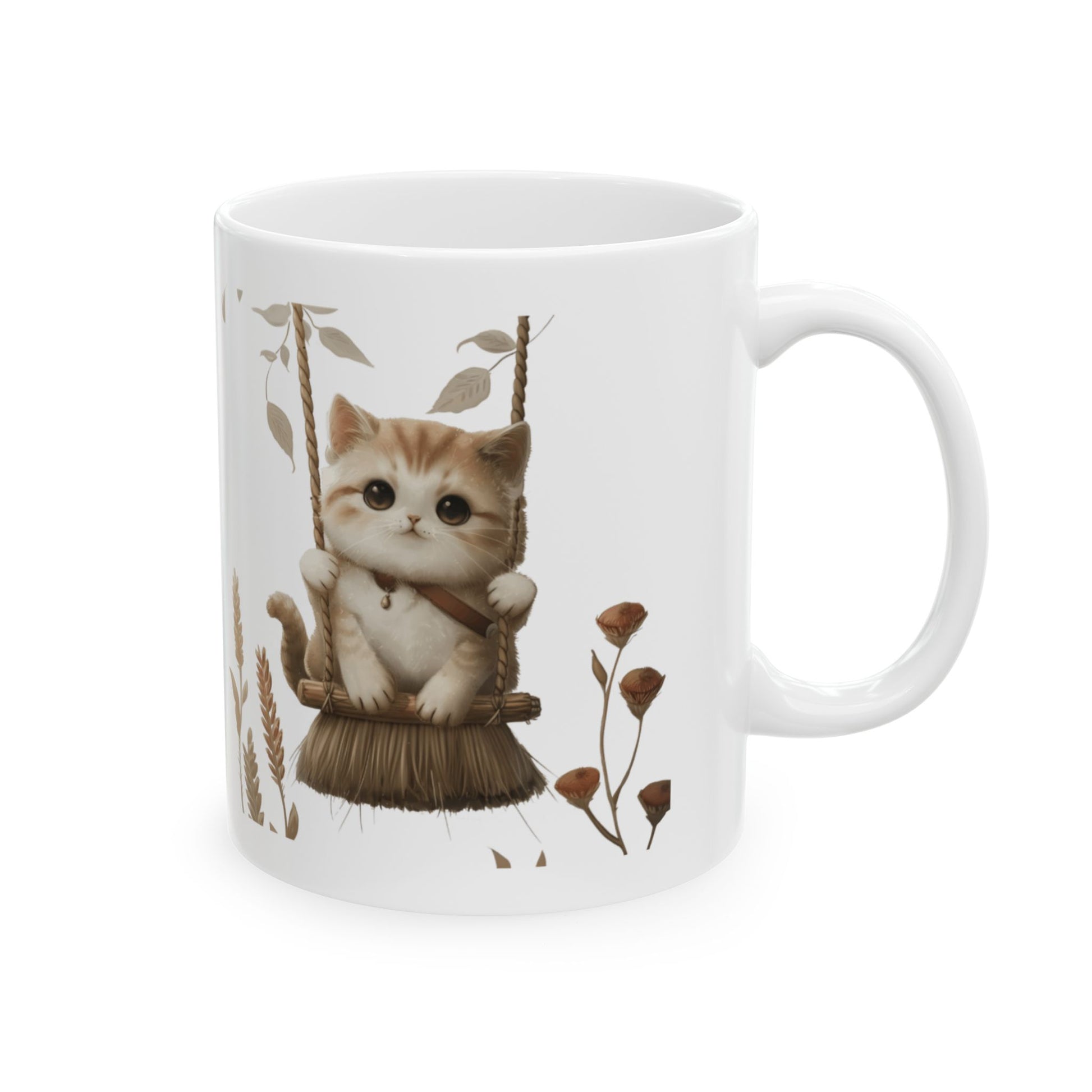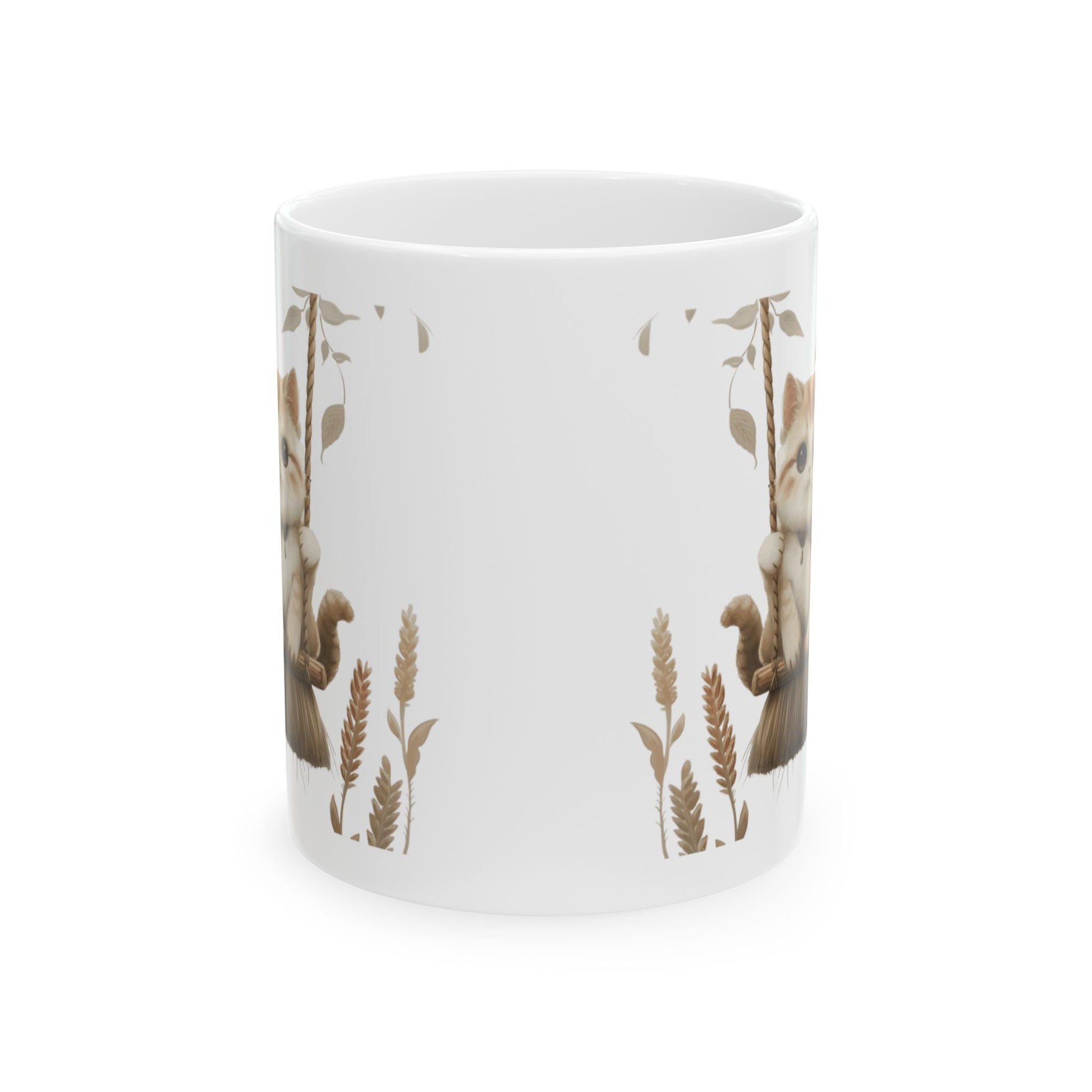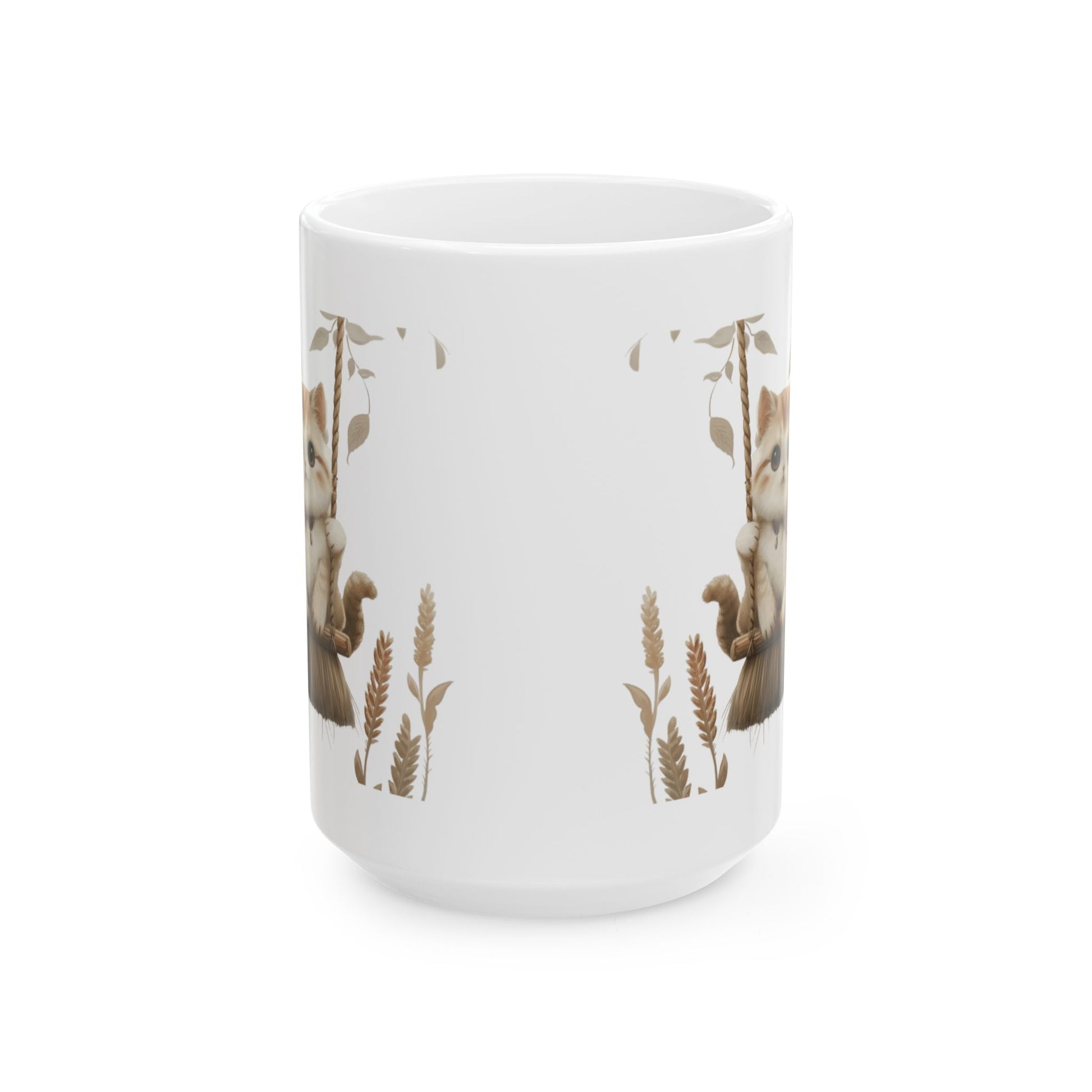 Ceramic Mug, Lovely and Playful Cat on Broomstick, (11oz, 15oz)