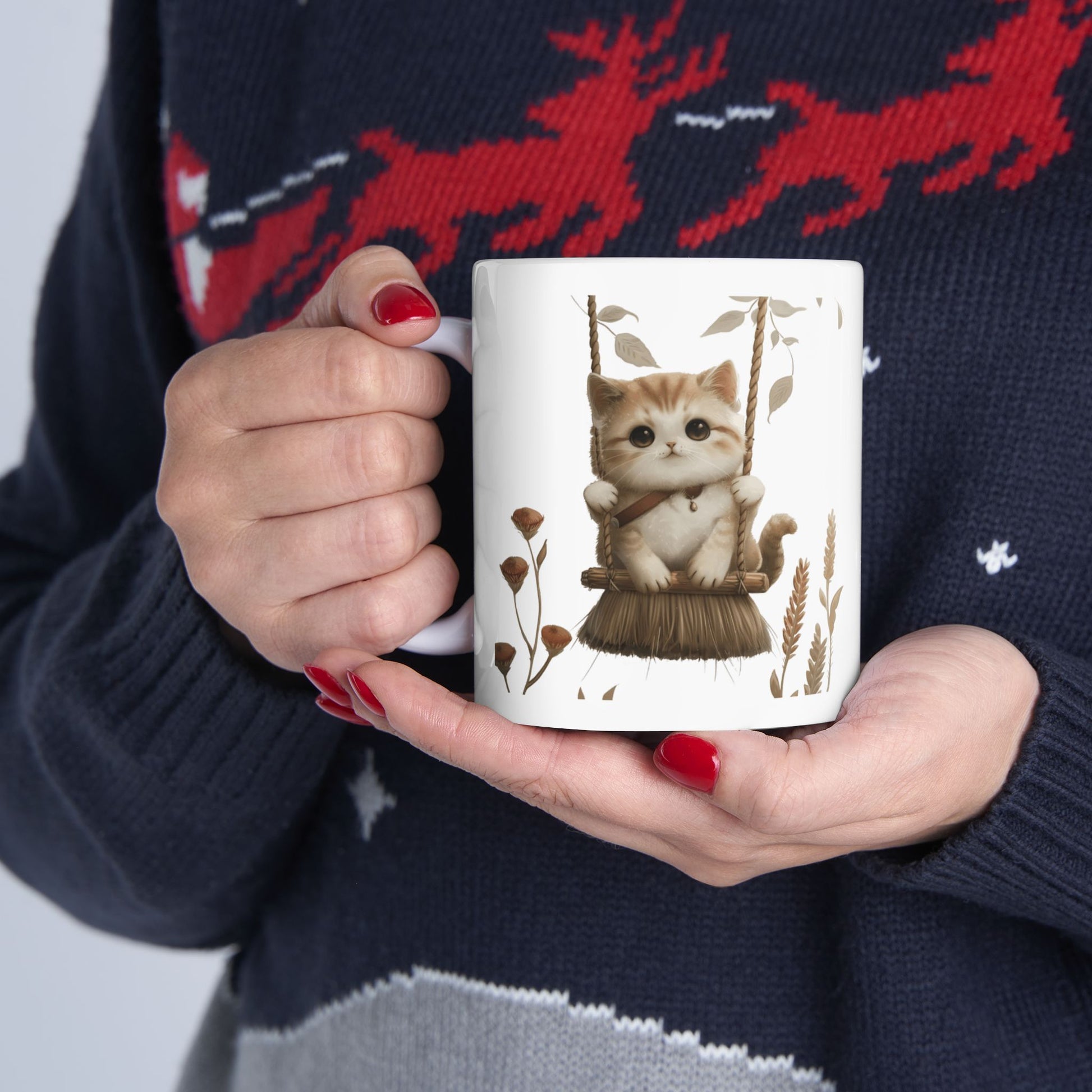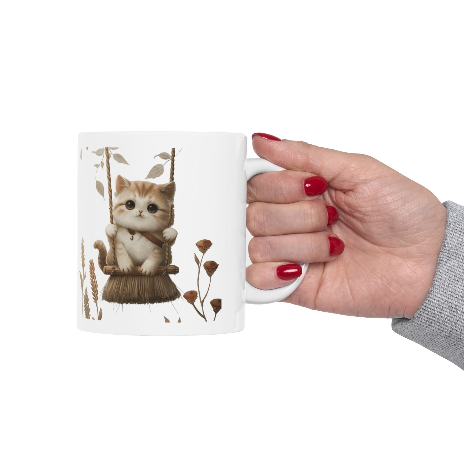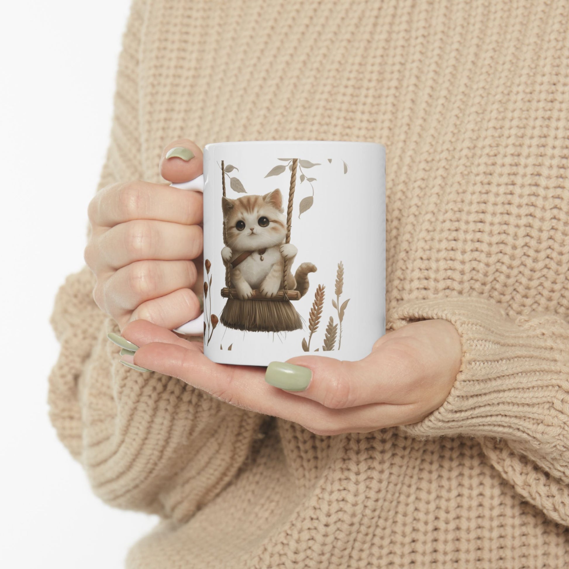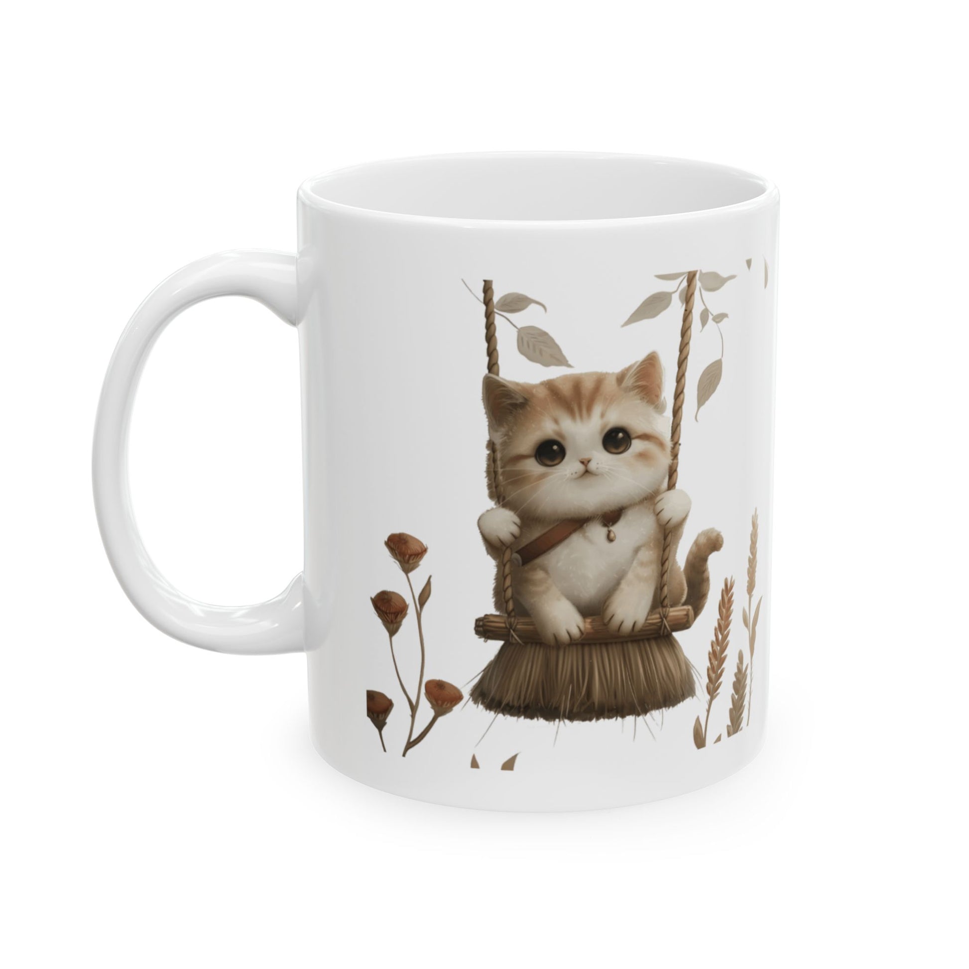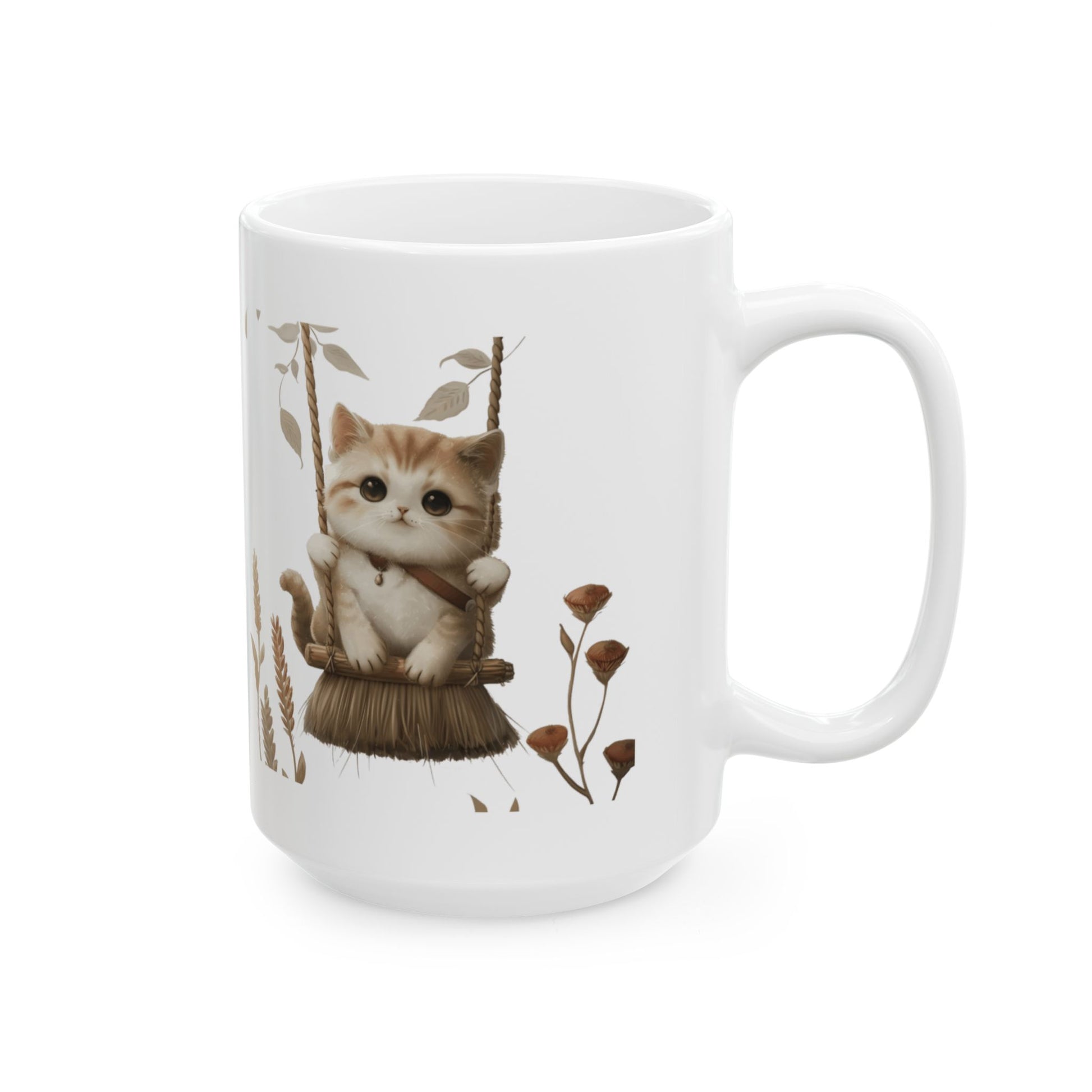 Ceramic Mug, Lovely and Playful Cat on Broomstick, (11oz, 15oz)