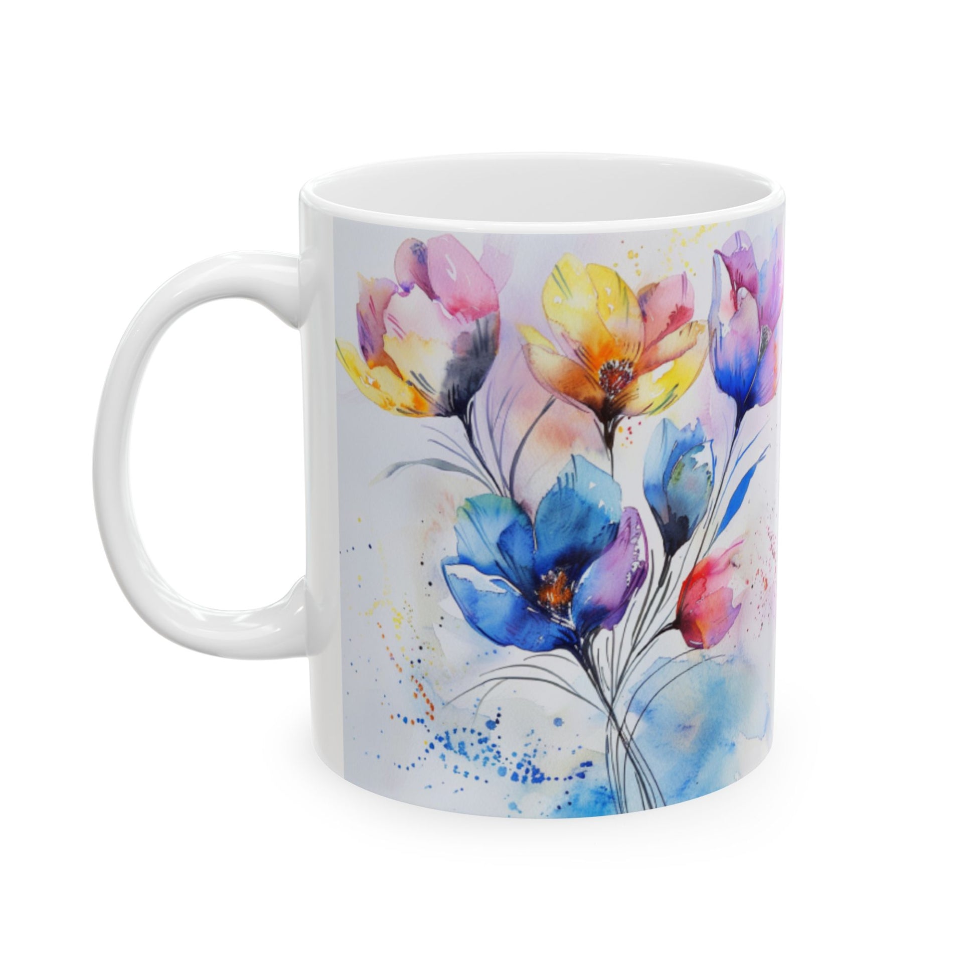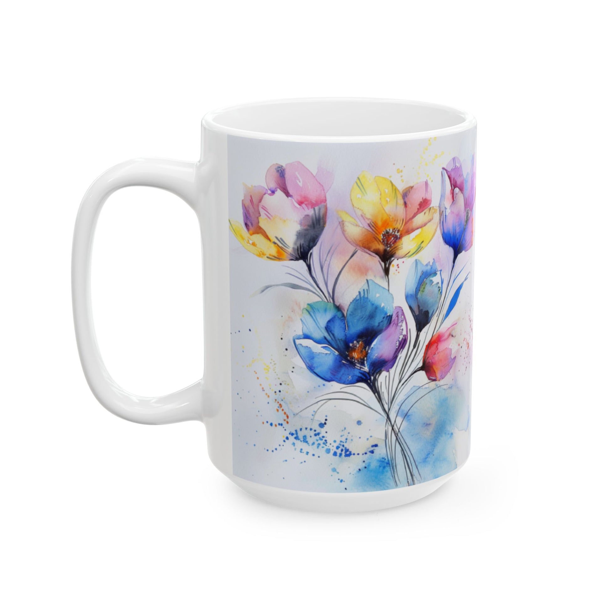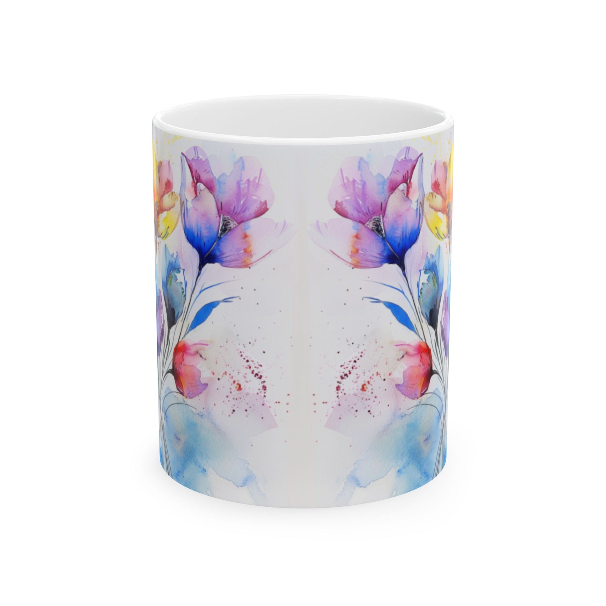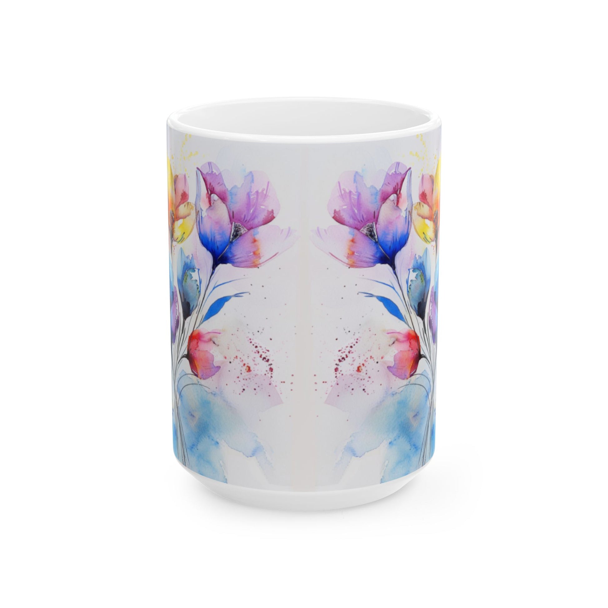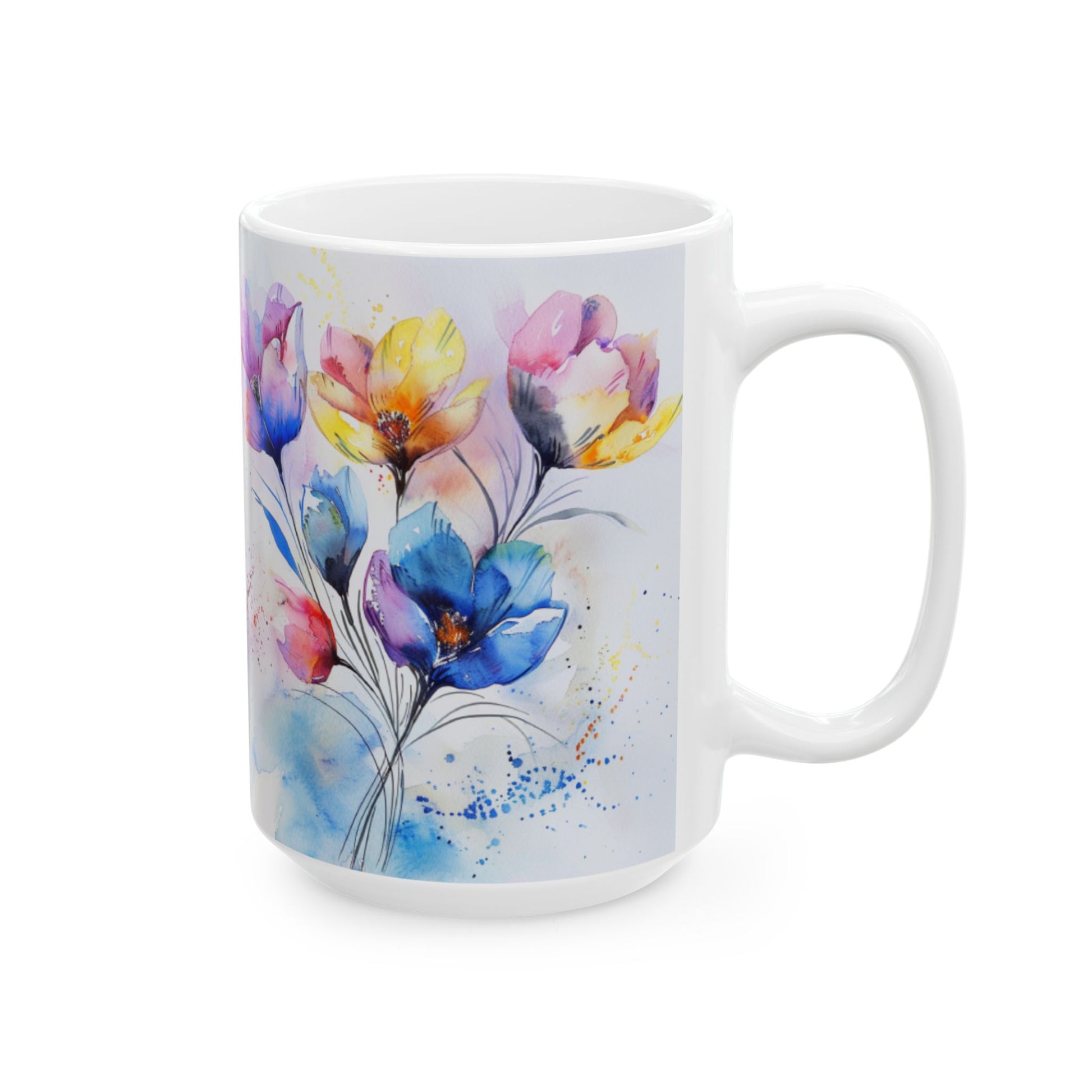 Ceramic Mug, Watercolor Artistic Florals, (11oz, 15oz)
