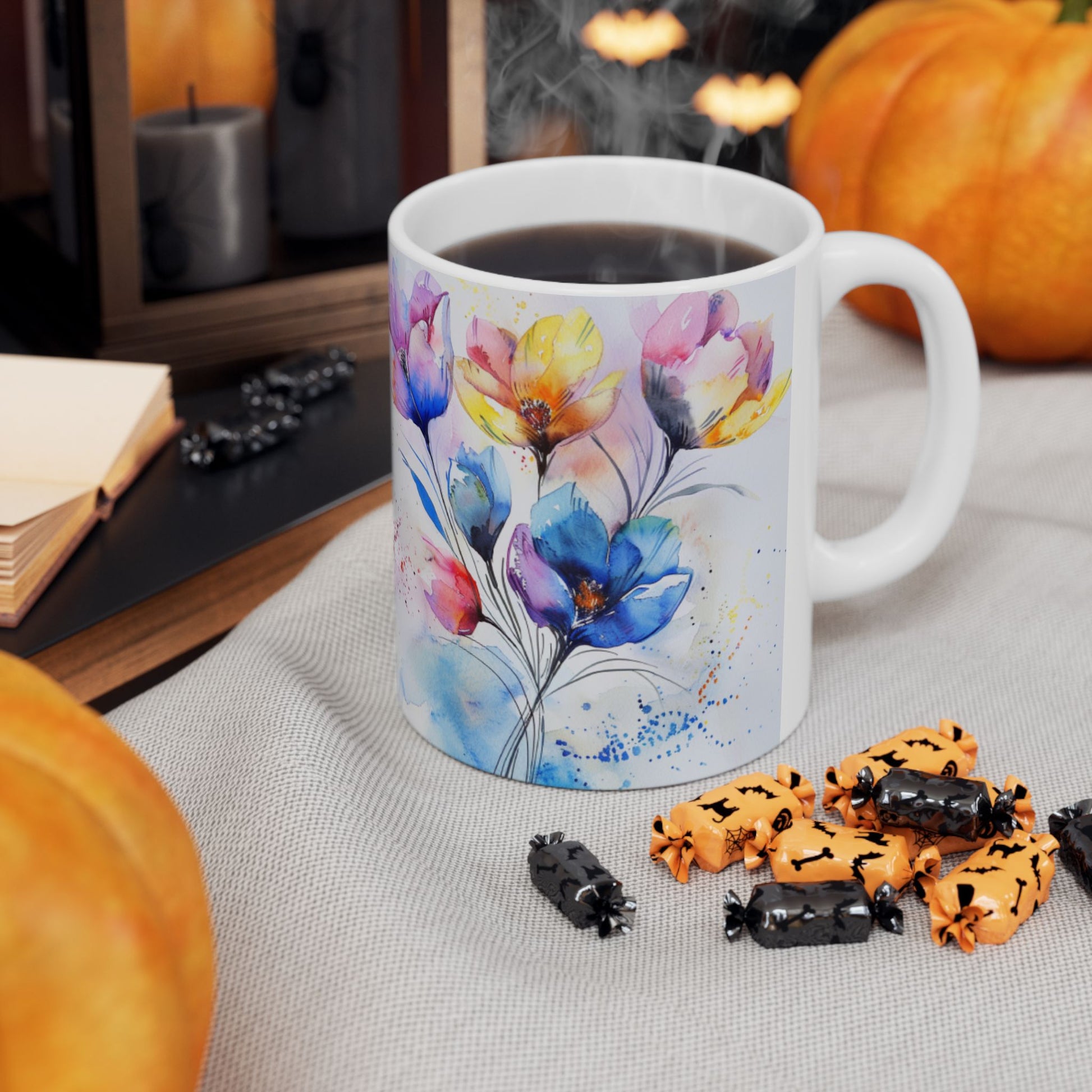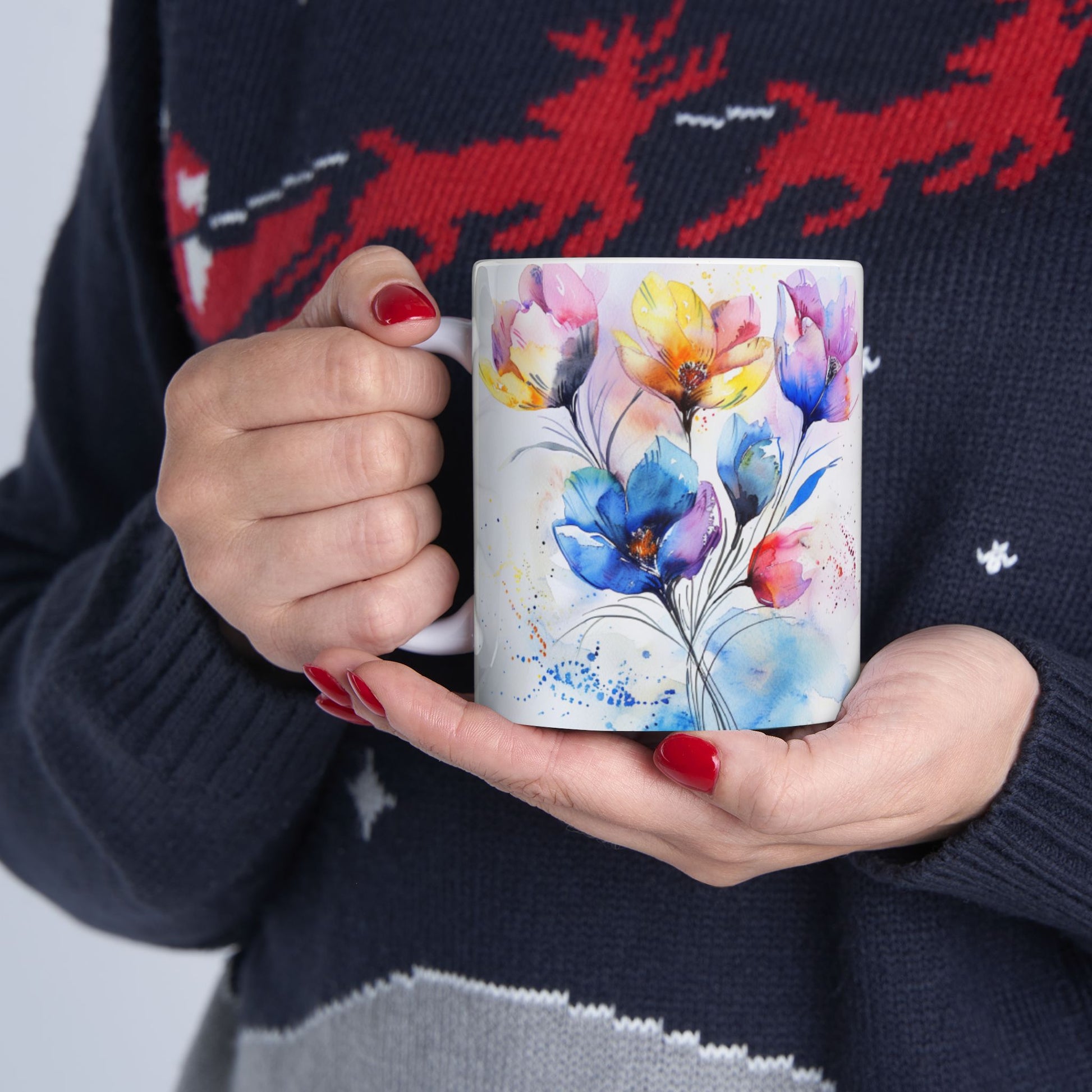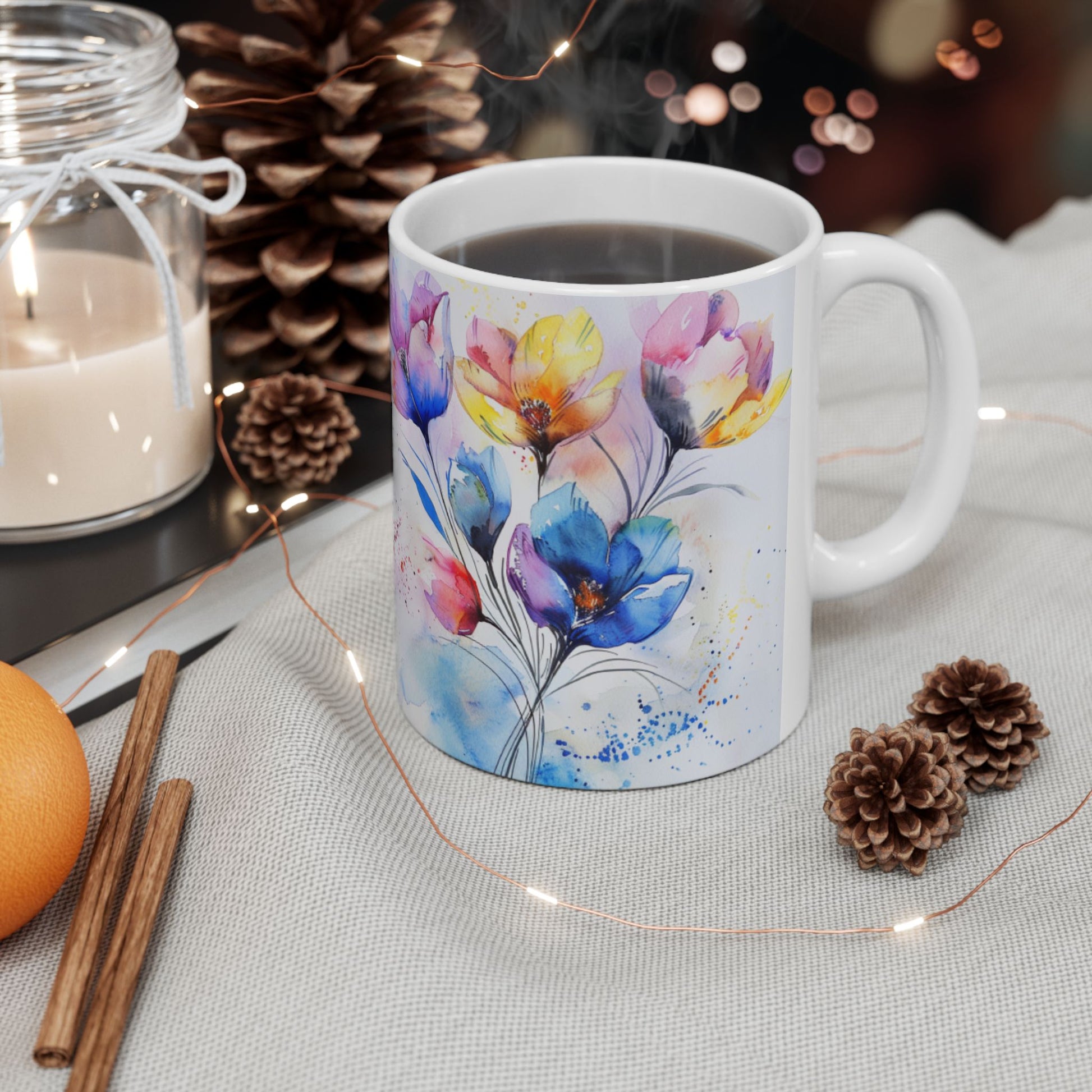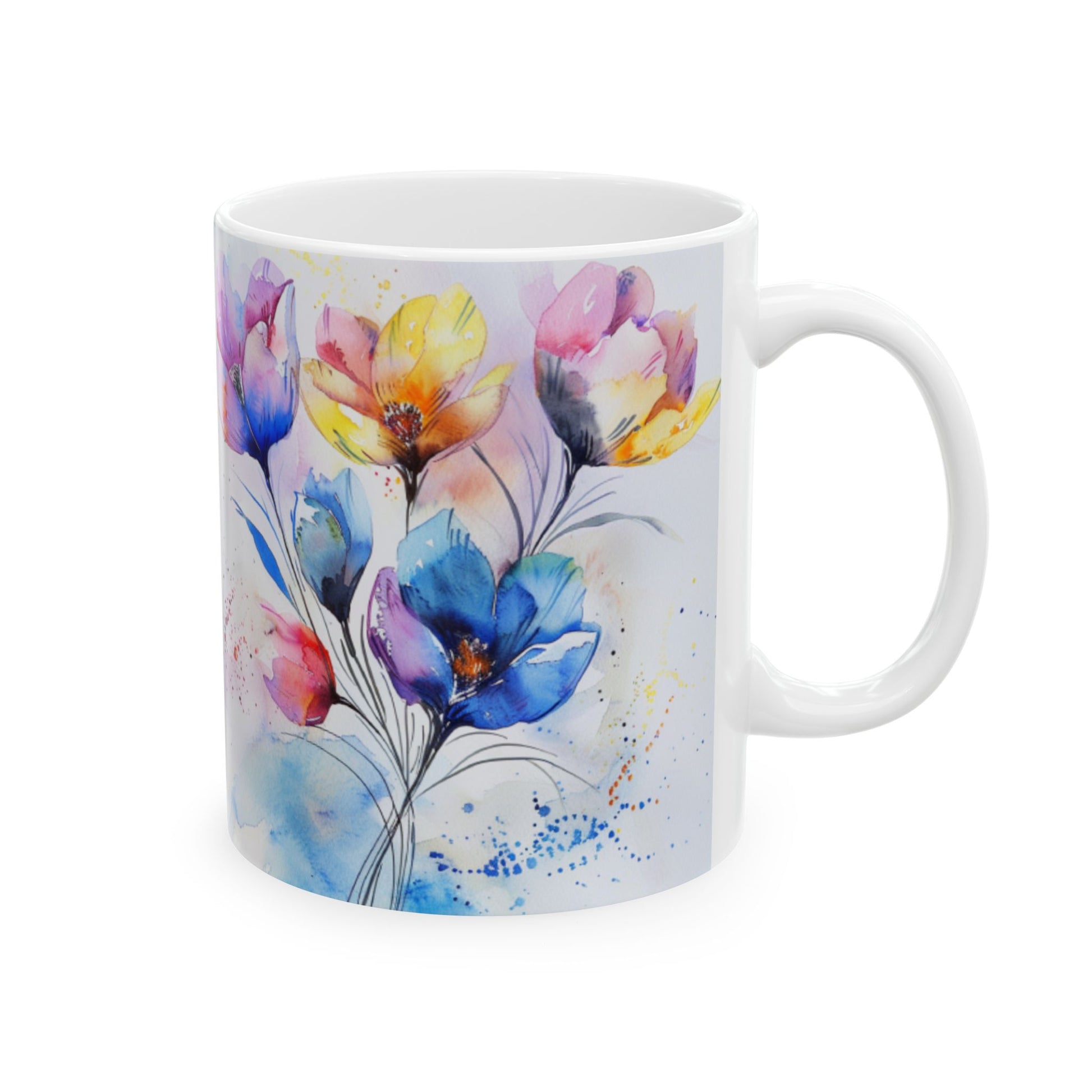 Ceramic Mug, Watercolor Artistic Florals, (11oz, 15oz)