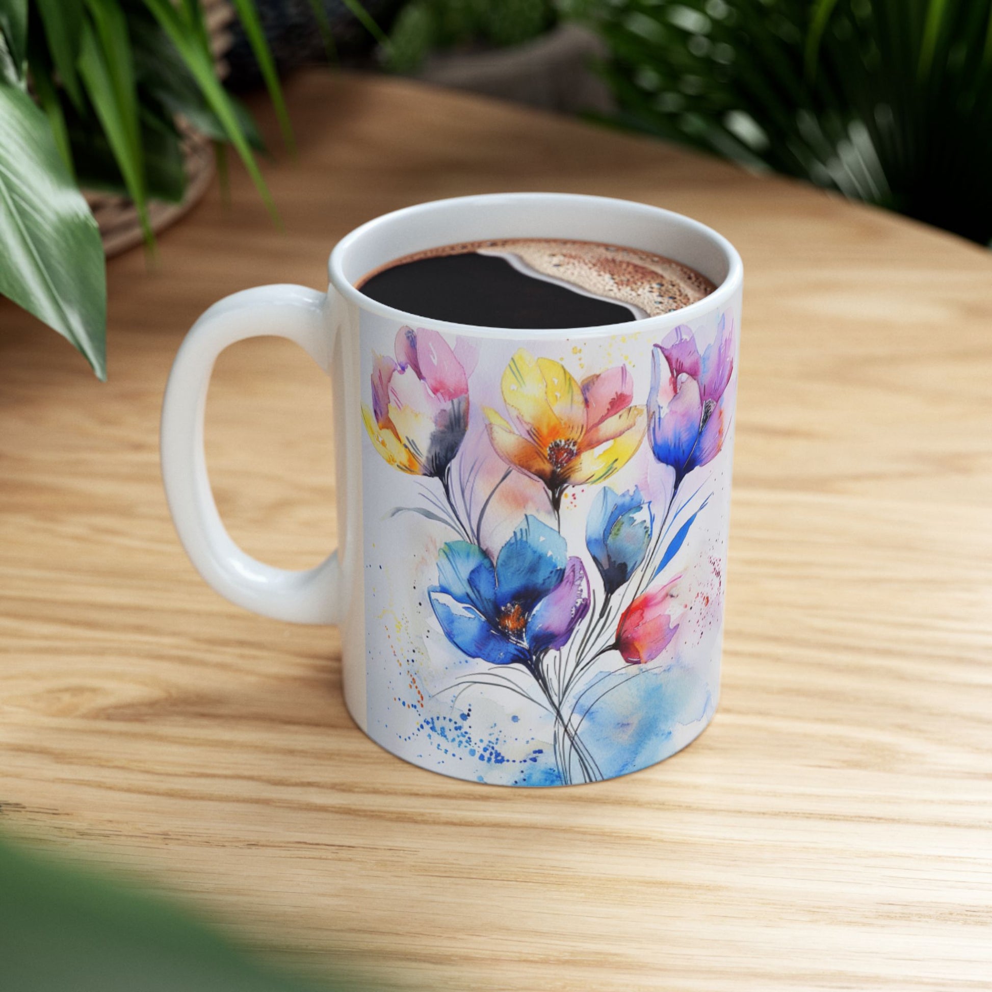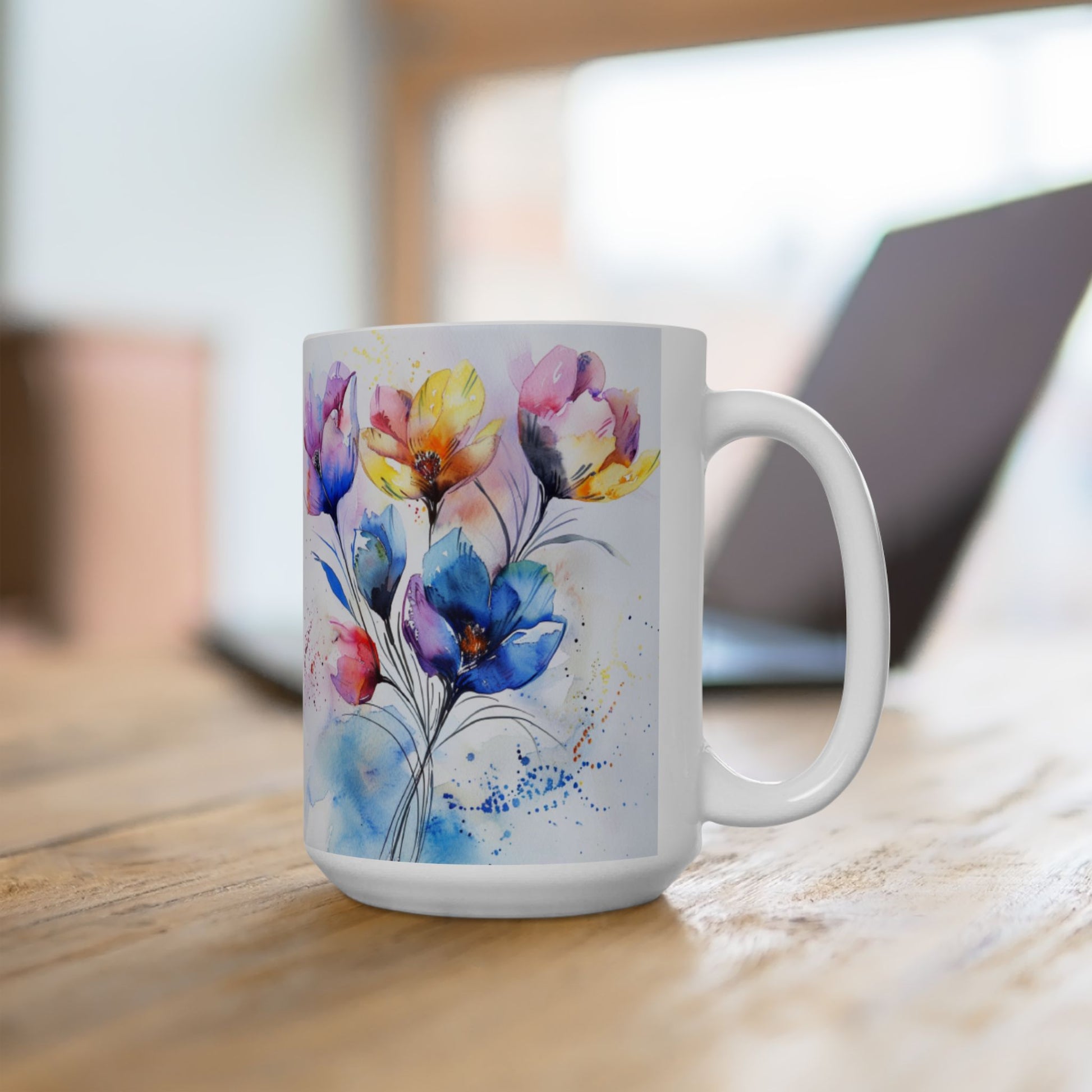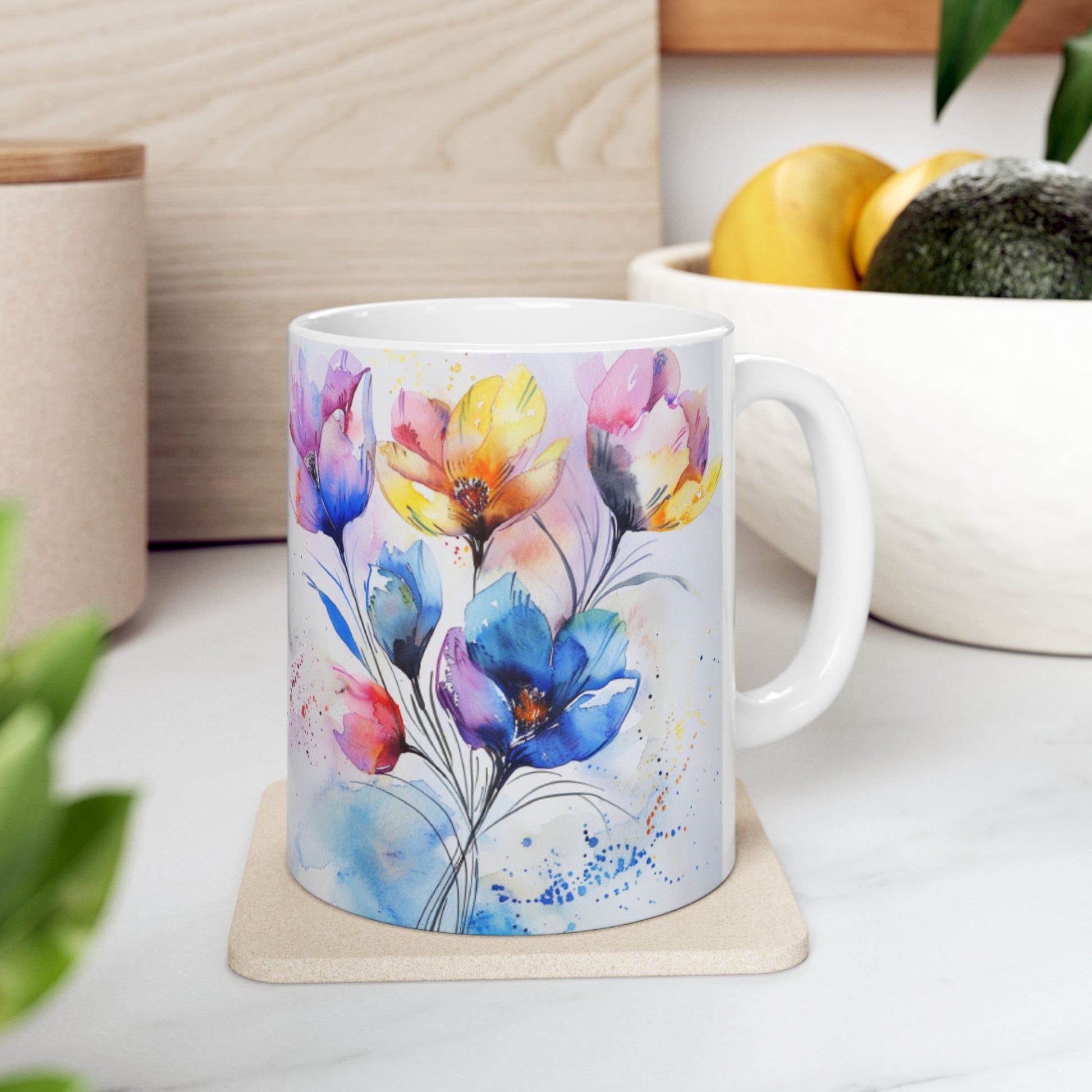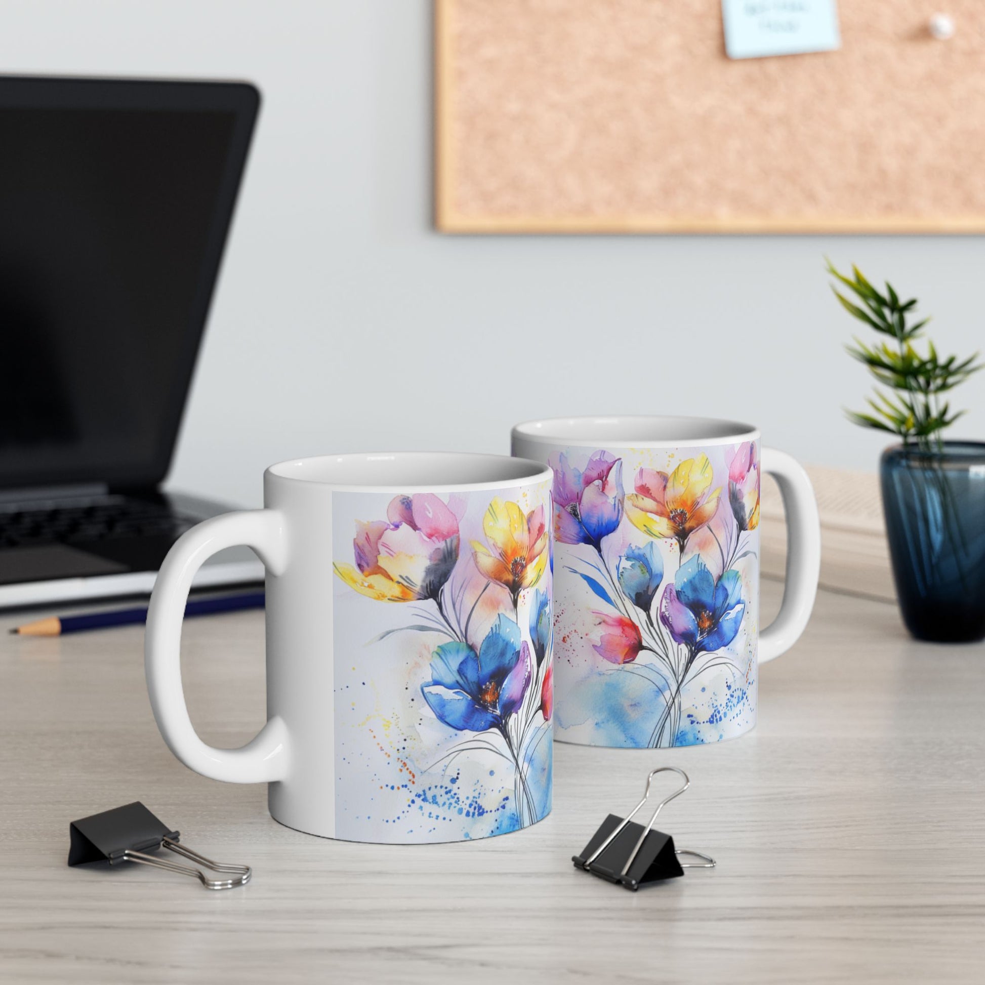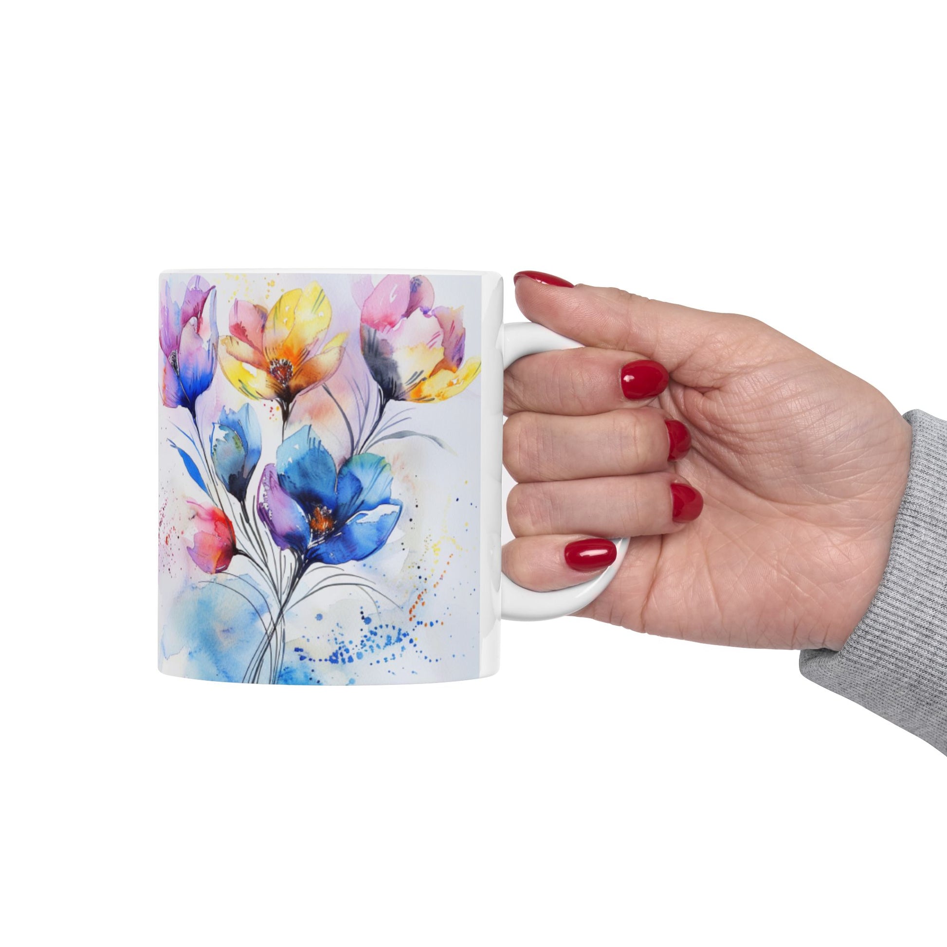 Ceramic Mug, Watercolor Artistic Florals, (11oz, 15oz)