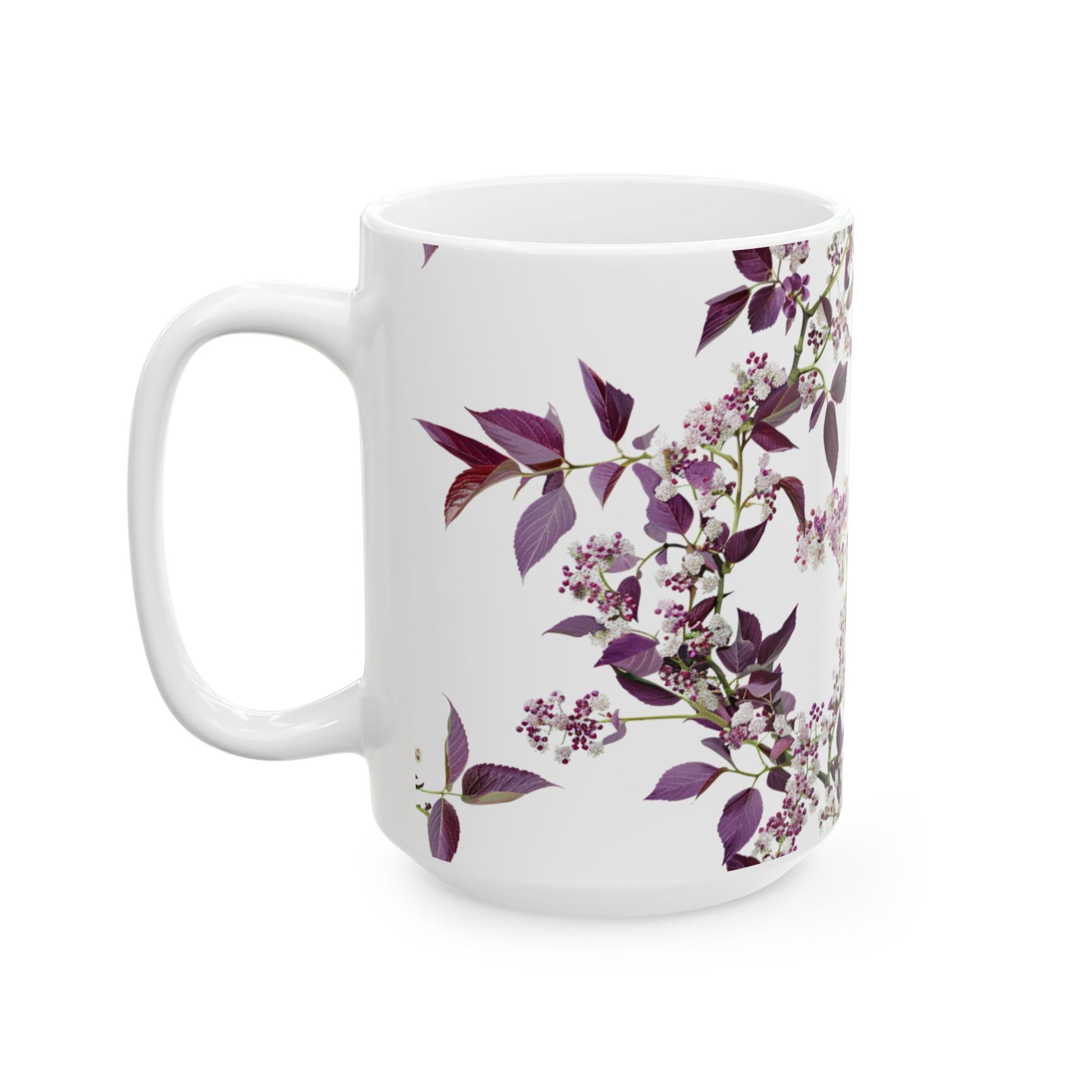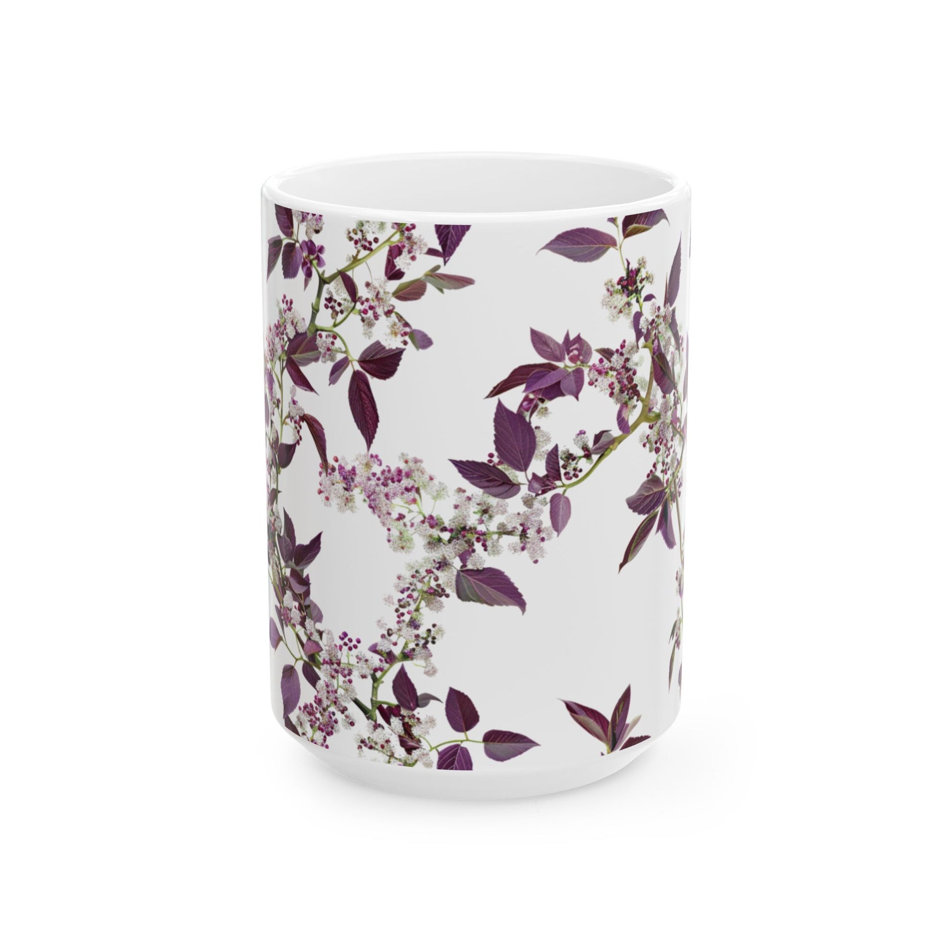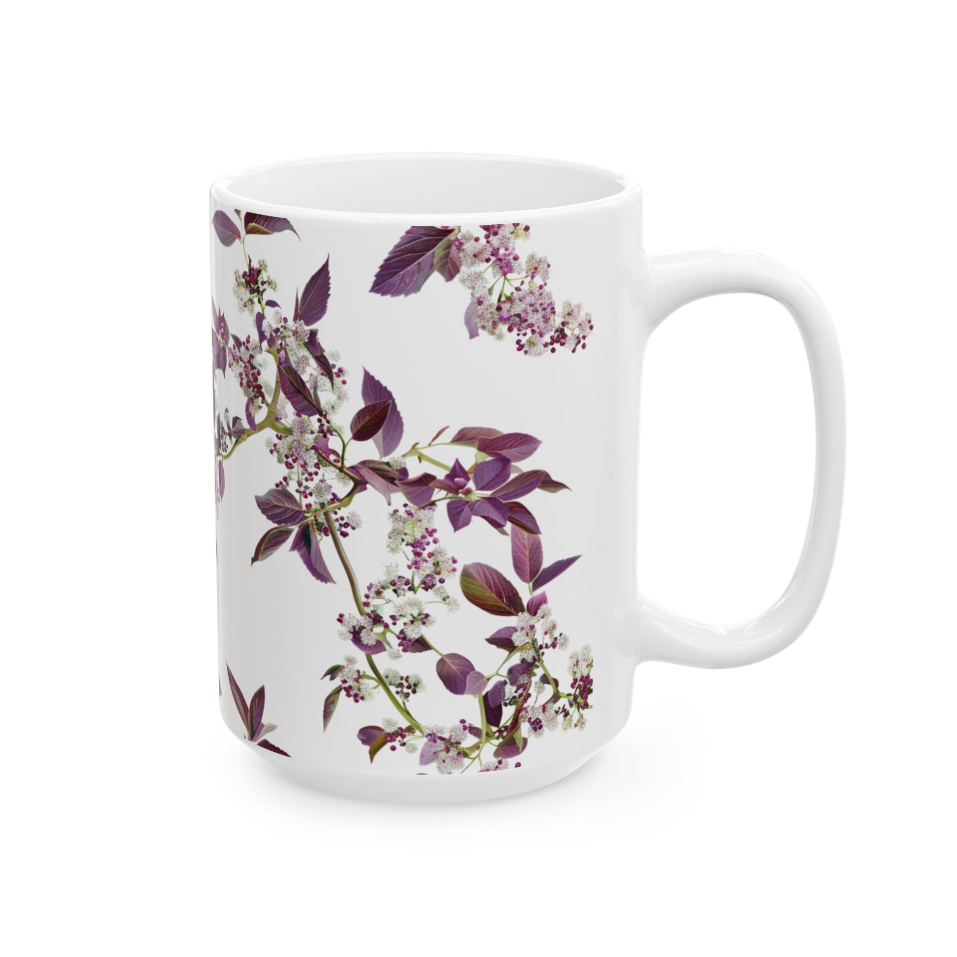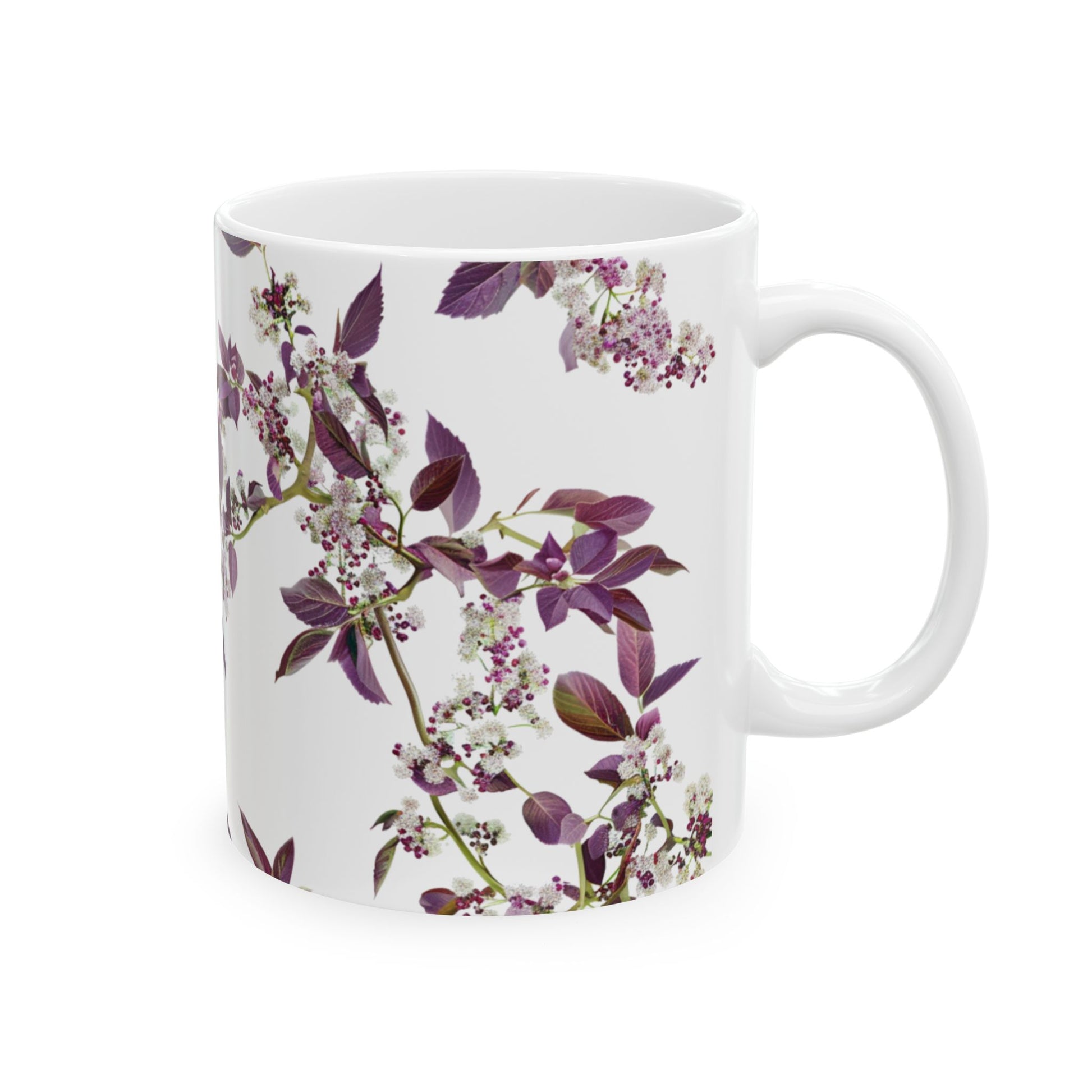 Ceramic Mug with purple small and dense flowers, (11oz, 15oz)