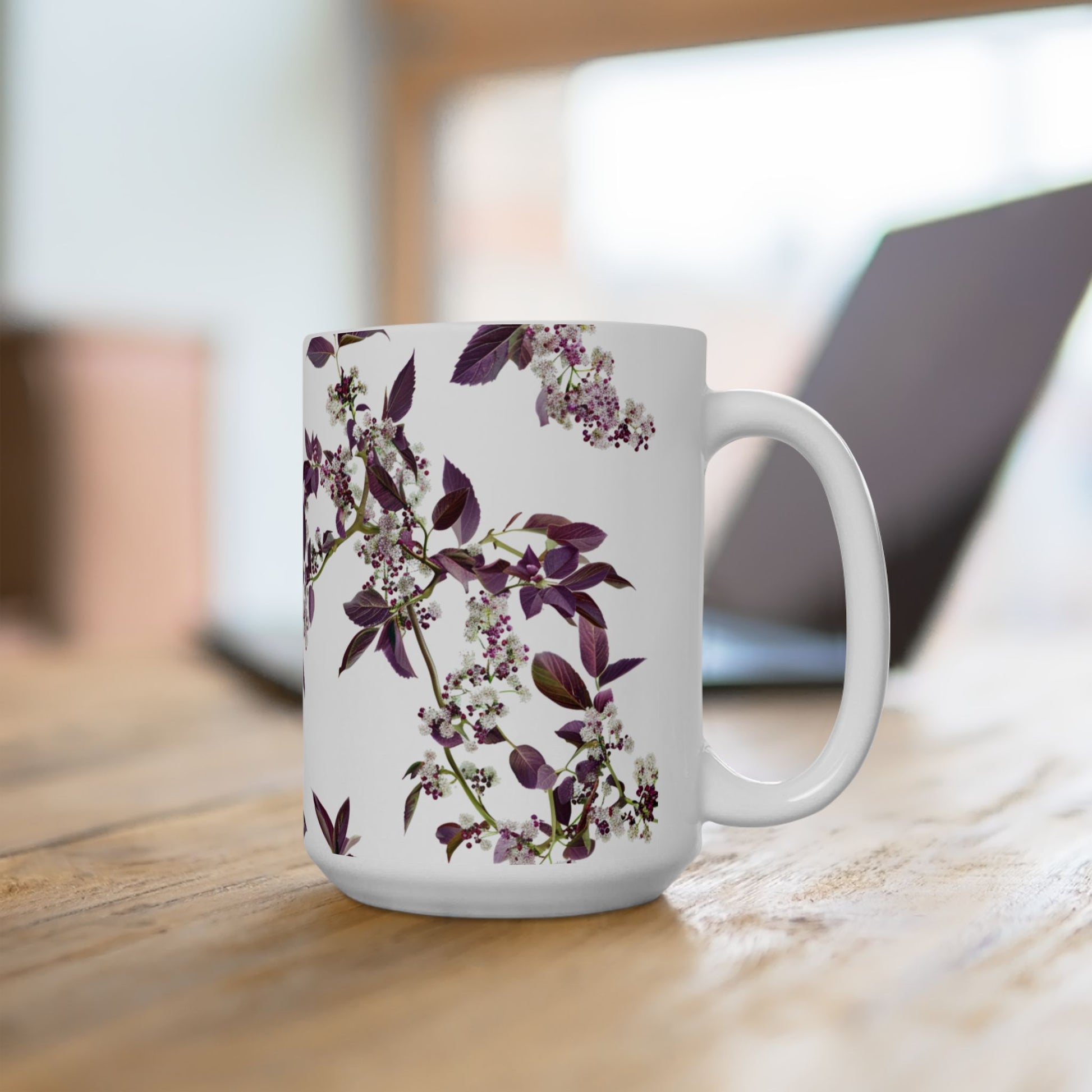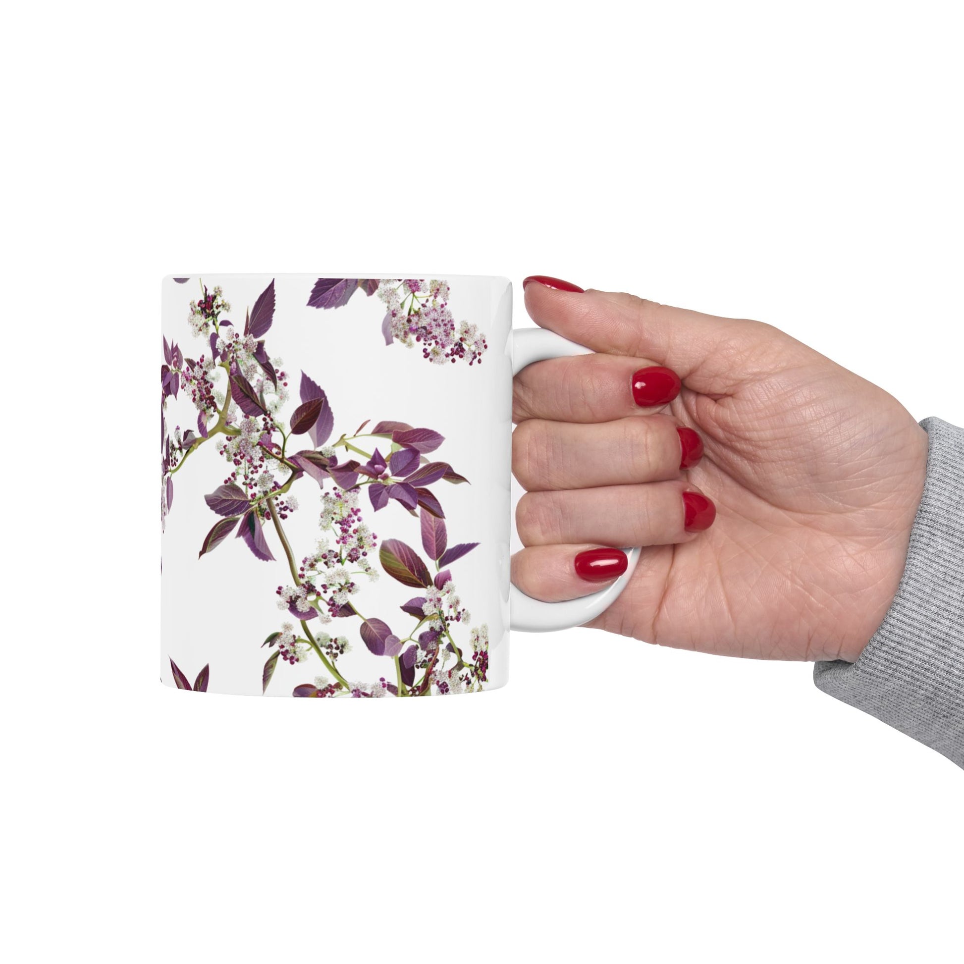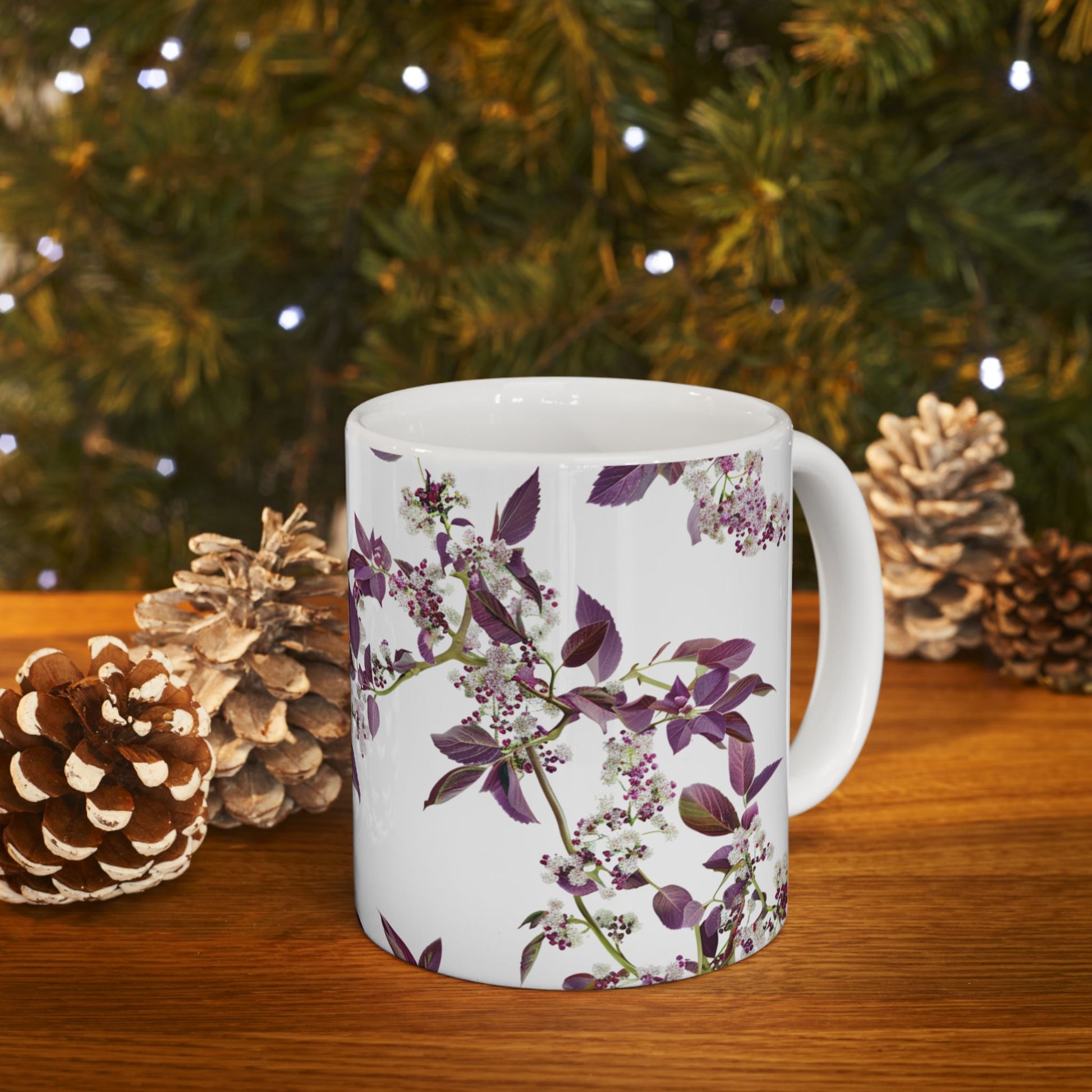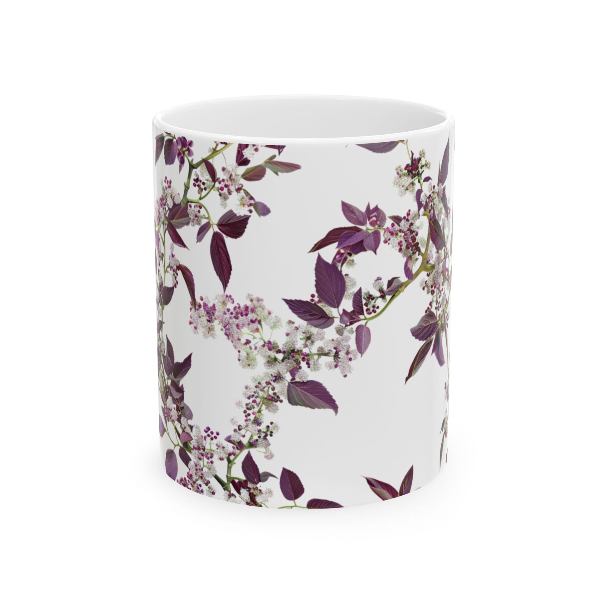 Ceramic Mug with purple small and dense flowers, (11oz, 15oz)