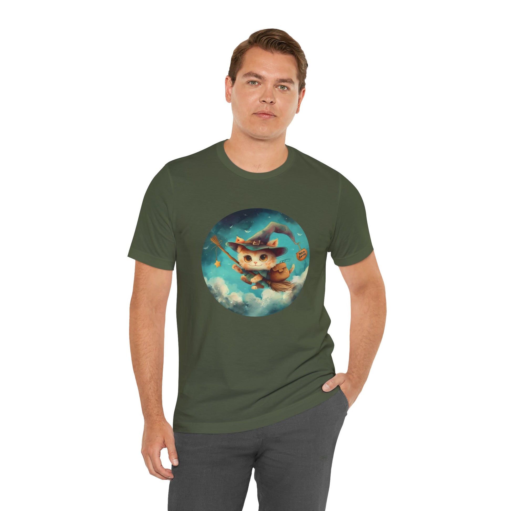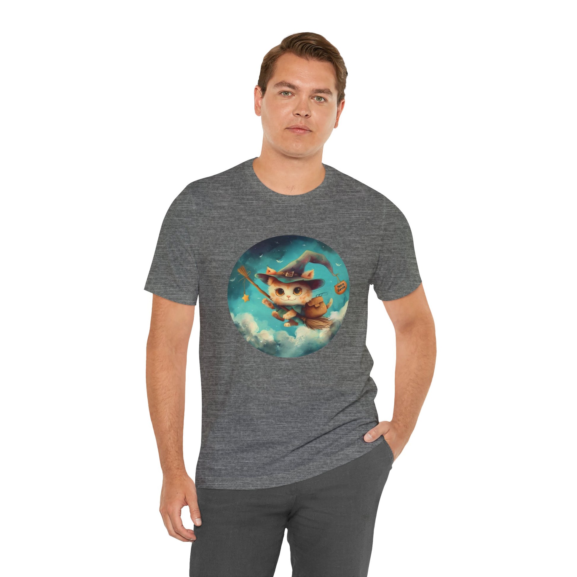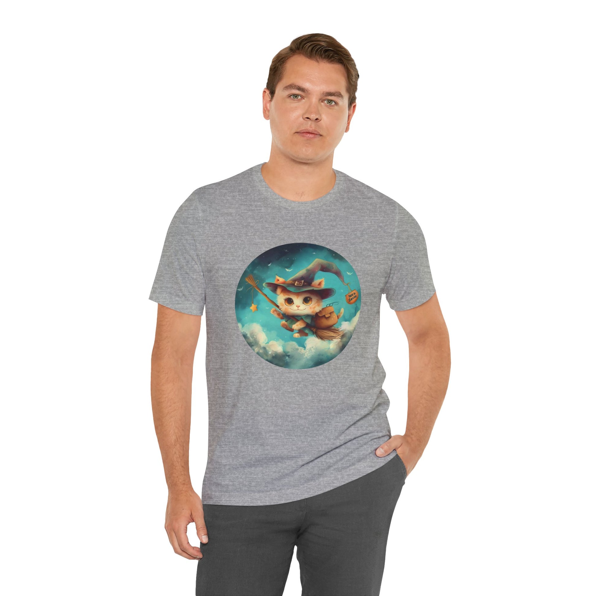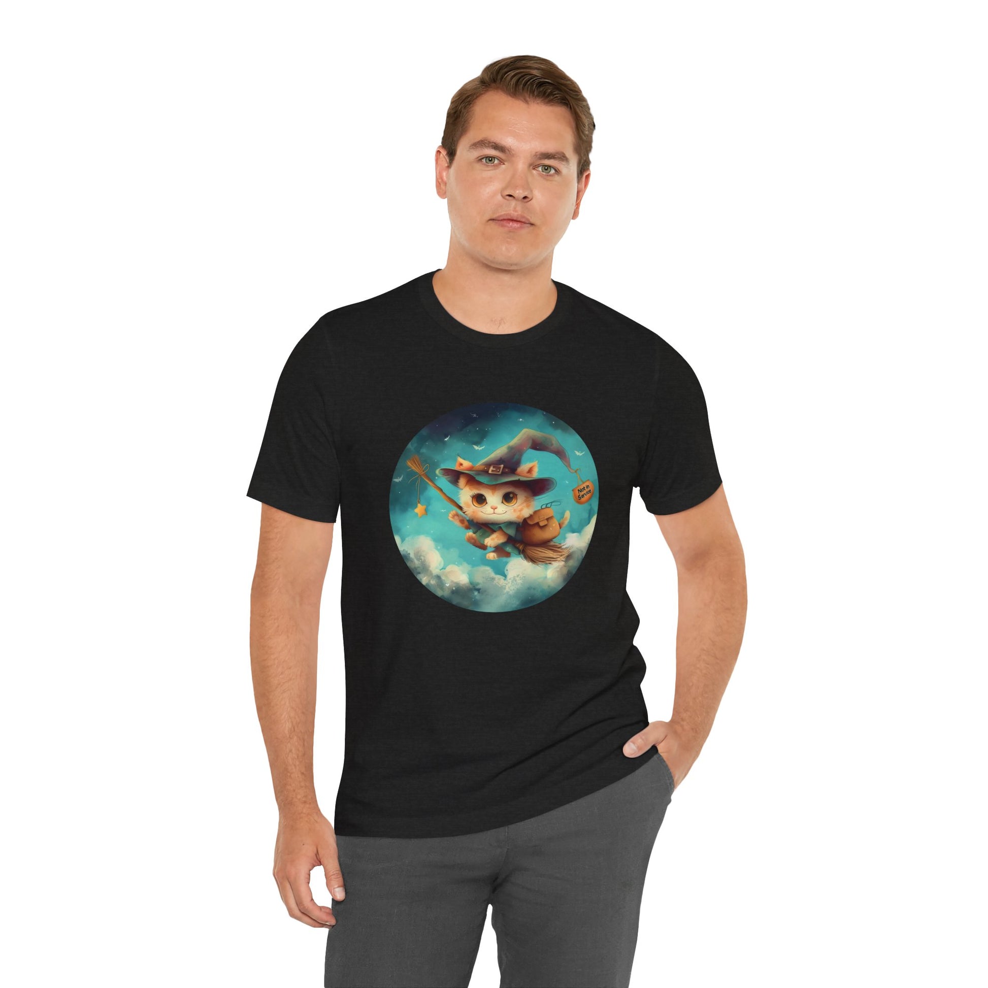 Get into the festive spirit with our Adorable Cat on Witch(Magician) Stick Unisex Jersey Tee, featuring a charming design that's sure to delight. Crafted from high-quality materials, this fashion-fit short-sleeved funny cat t-shirt offers a comfortable fit for all-day wear and adds inspiring joy and excitement for the season for Men and Women. Soft cotton and quality print make users fall in love with it repeatedly. These t-shirts have ribbed knit collars to bolster shaping. The shoulders are tapered for a better fit over time. Dual side seams hold the garment's shape for longer.