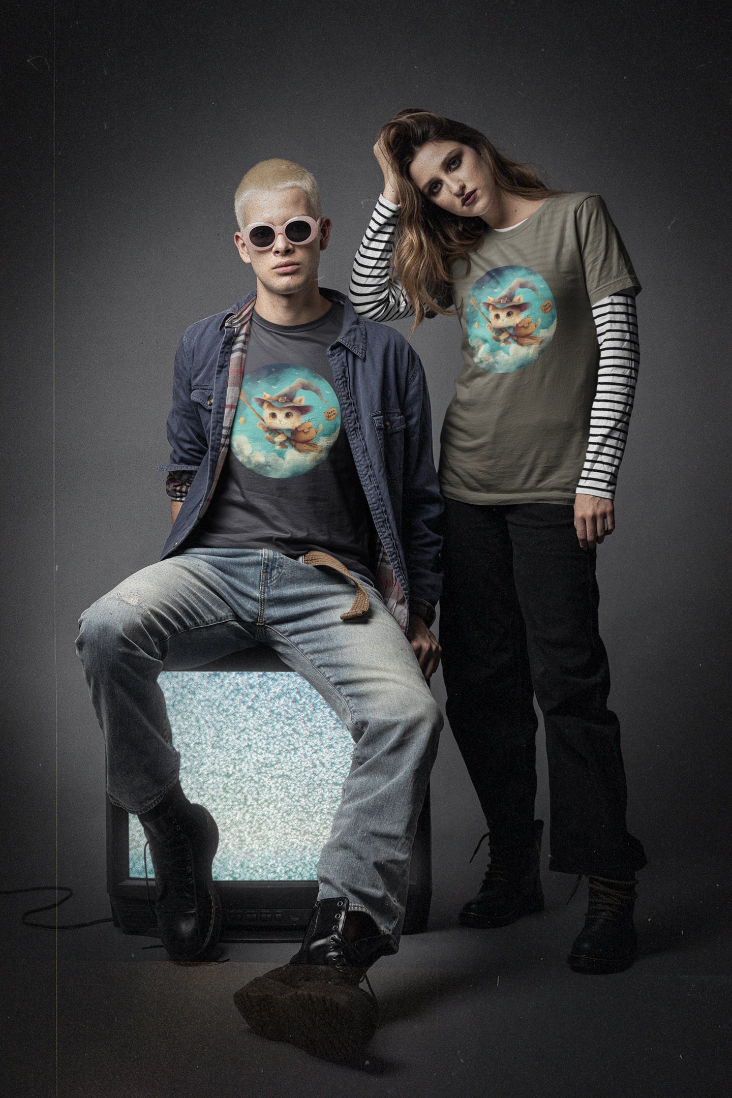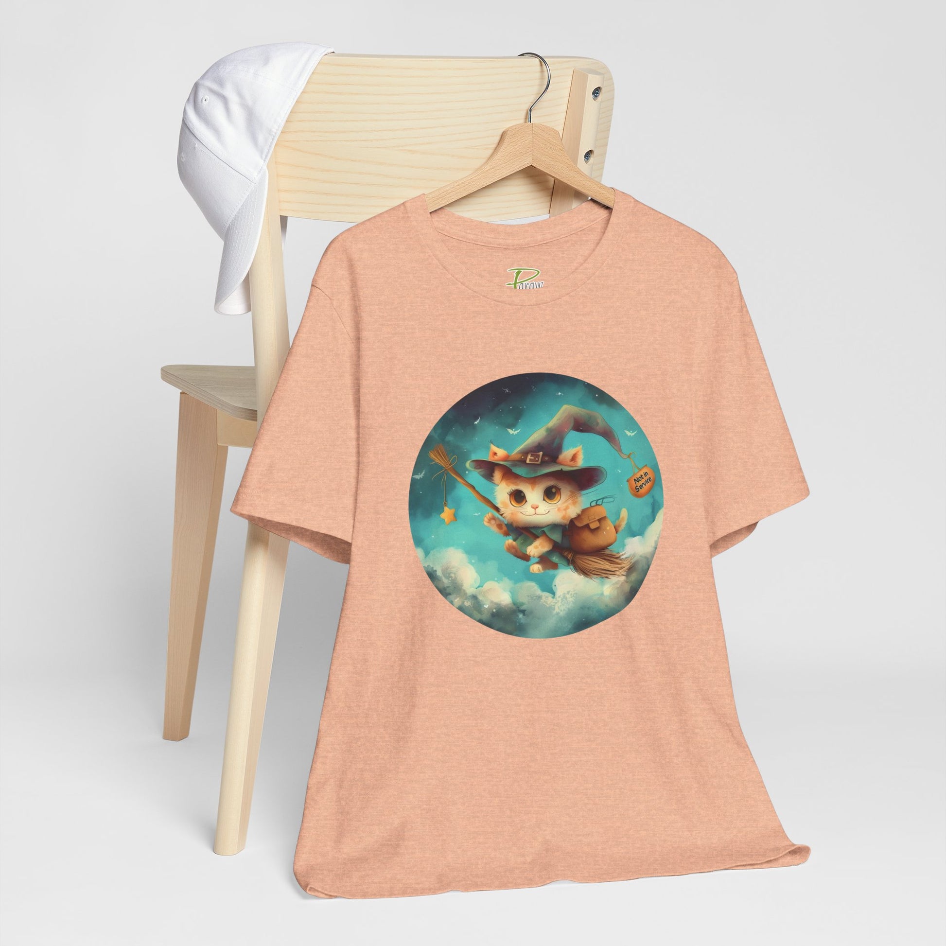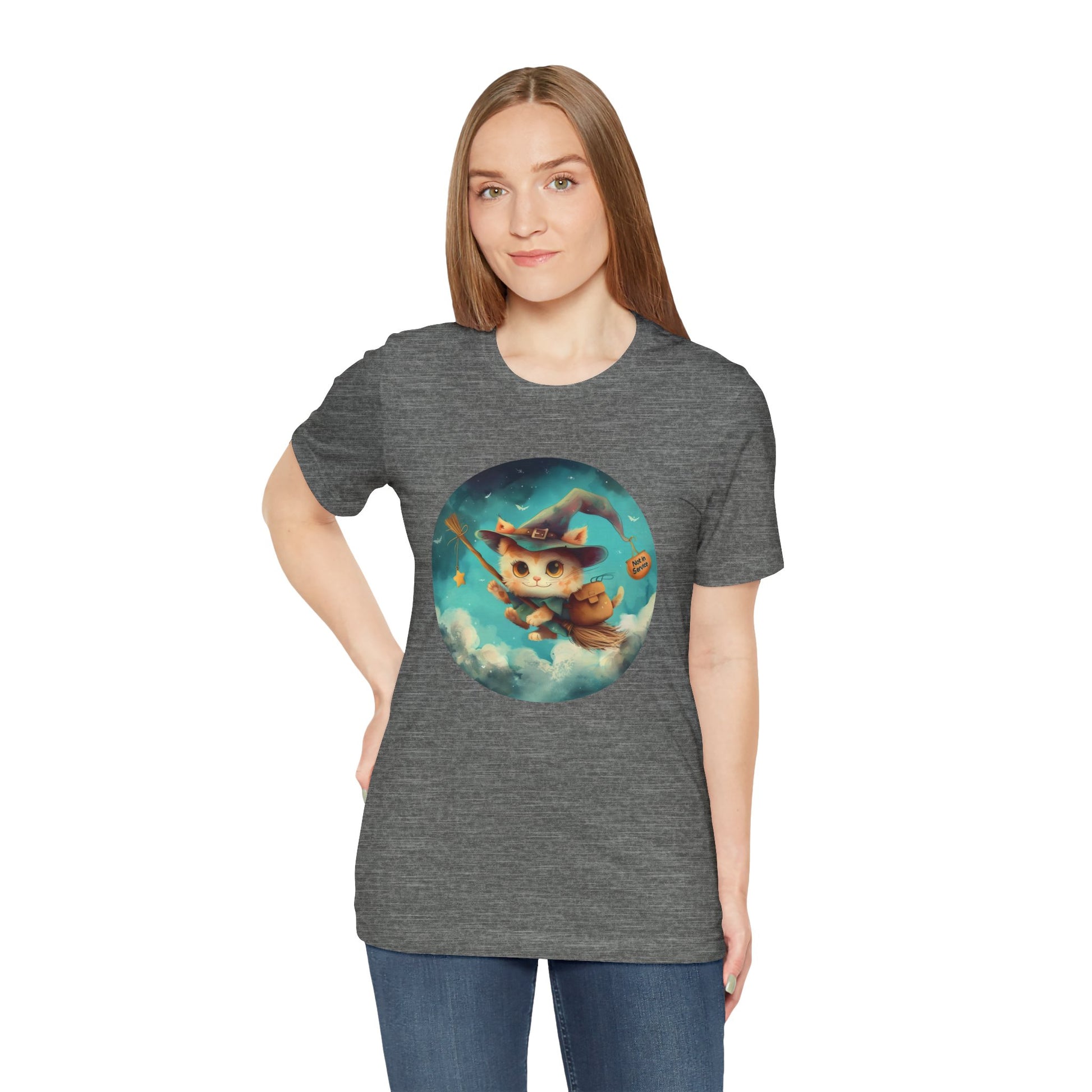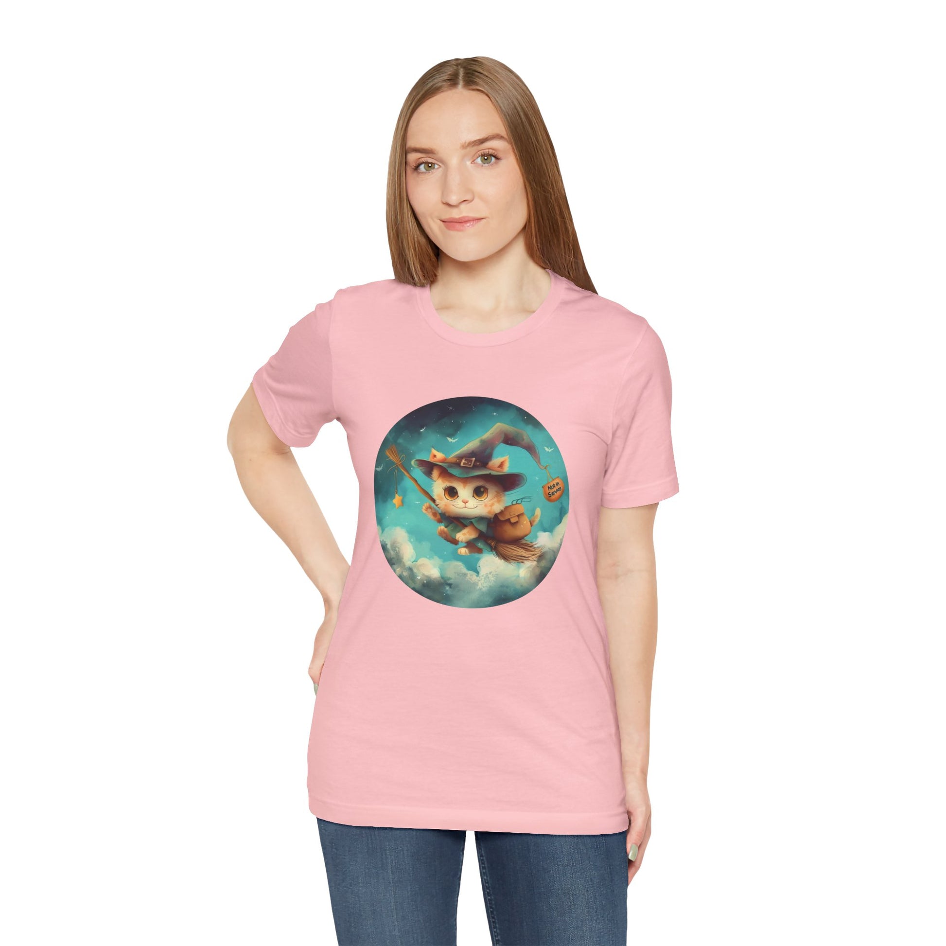 Get into the festive spirit with our Adorable Cat on Witch(Magician) Stick Unisex Jersey Tee, featuring a charming design that's sure to delight. Crafted from high-quality materials, this fashion-fit short-sleeved funny cat t-shirt offers a comfortable fit for all-day wear and adds inspiring joy and excitement for the season for Men and Women. Soft cotton and quality print make users fall in love with it repeatedly. These t-shirts have ribbed knit collars to bolster shaping. The shoulders are tapered for a better fit over time. Dual side seams hold the garment's shape for longer.