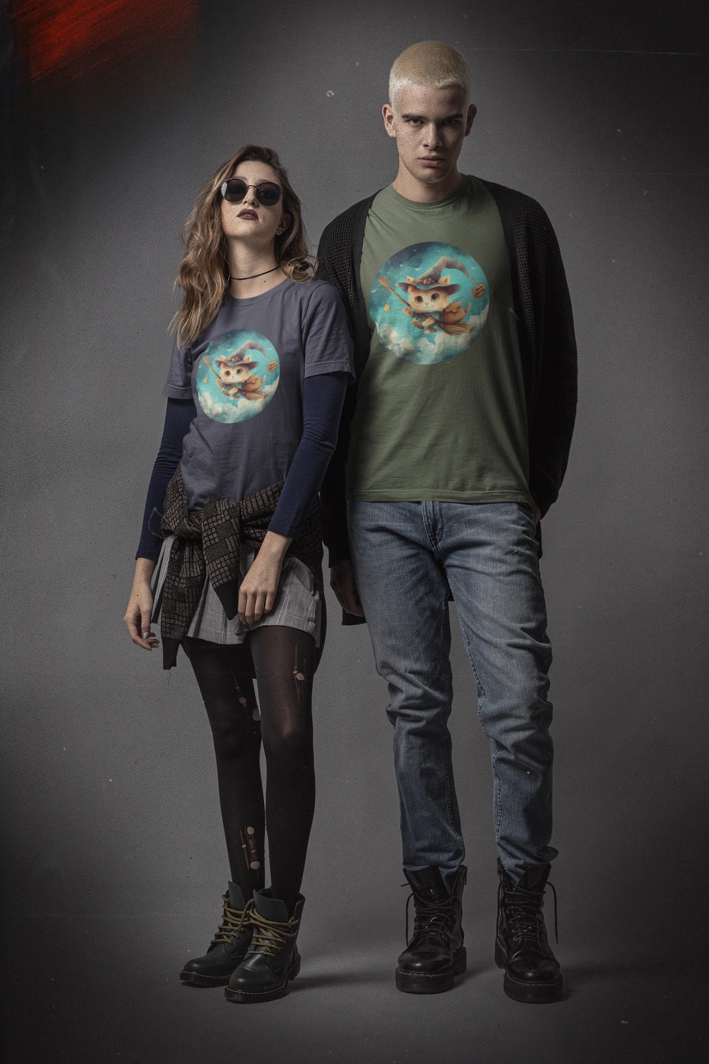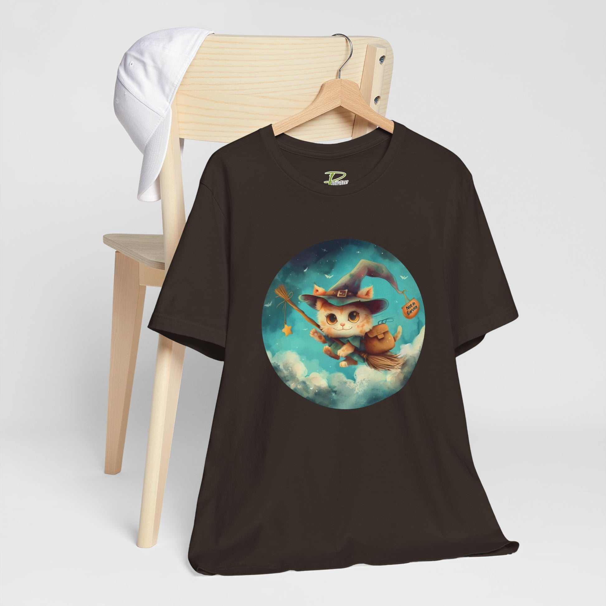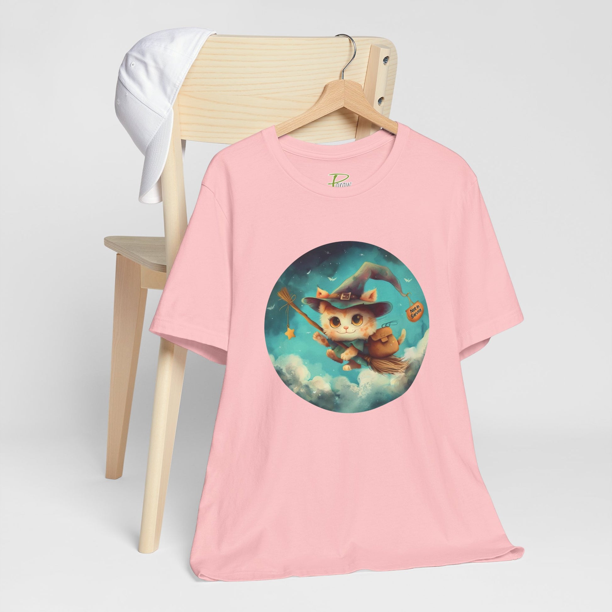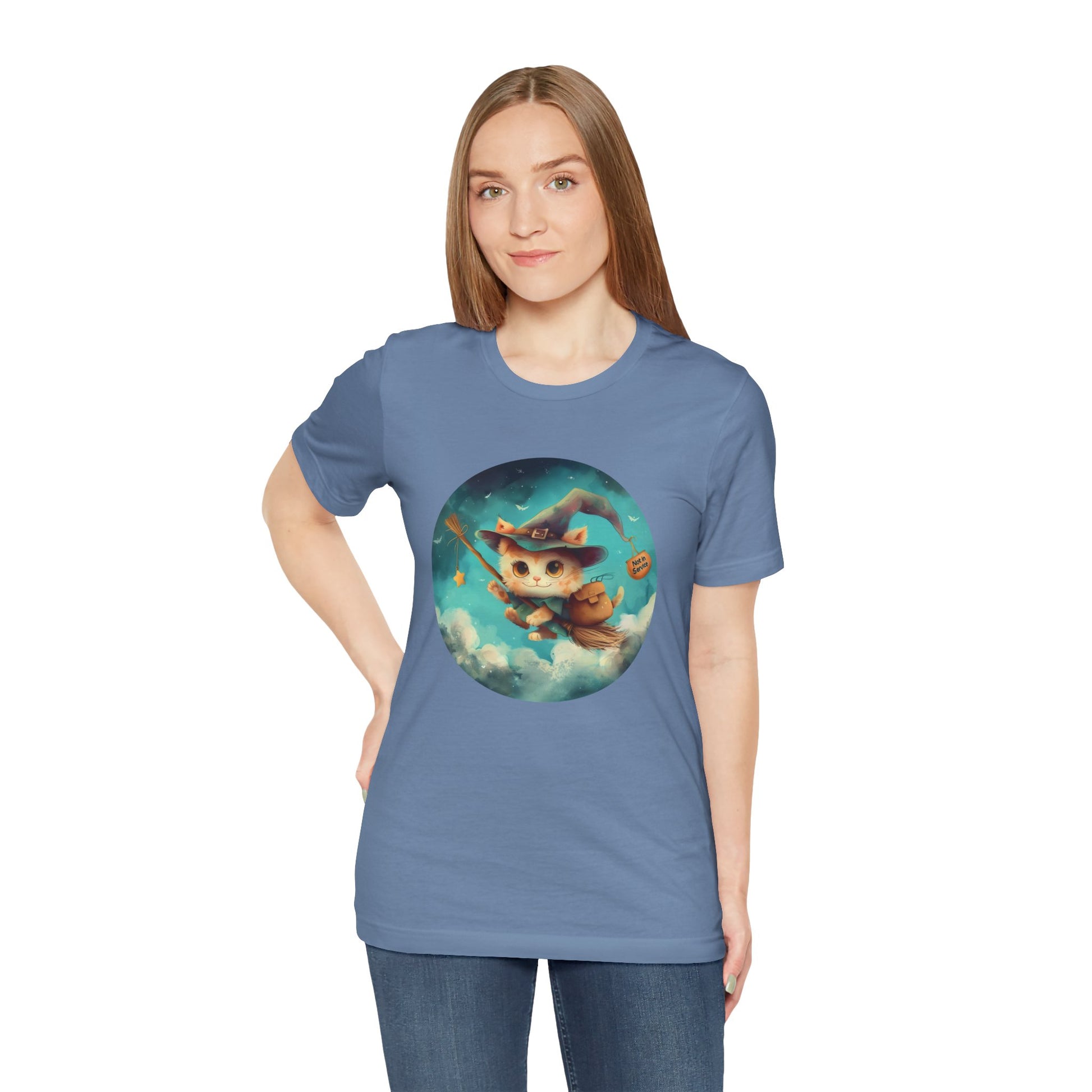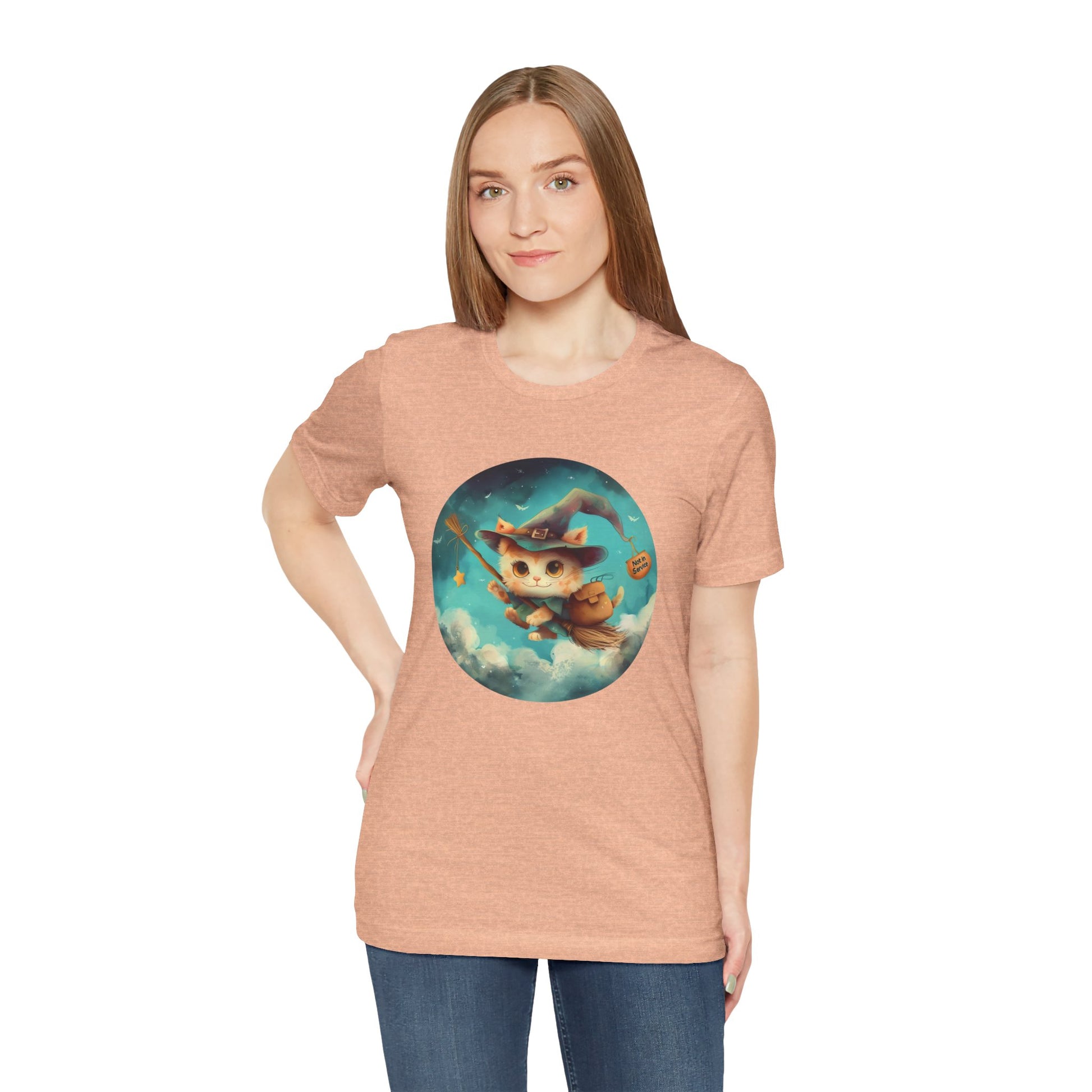 Get into the festive spirit with our Adorable Cat on Witch(Magician) Stick Unisex Jersey Tee, featuring a charming design that's sure to delight. Crafted from high-quality materials, this fashion-fit short-sleeved funny cat t-shirt offers a comfortable fit for all-day wear and adds inspiring joy and excitement for the season for Men and Women. Soft cotton and quality print make users fall in love with it repeatedly. These t-shirts have ribbed knit collars to bolster shaping. The shoulders are tapered for a better fit over time. Dual side seams hold the garment's shape for longer.