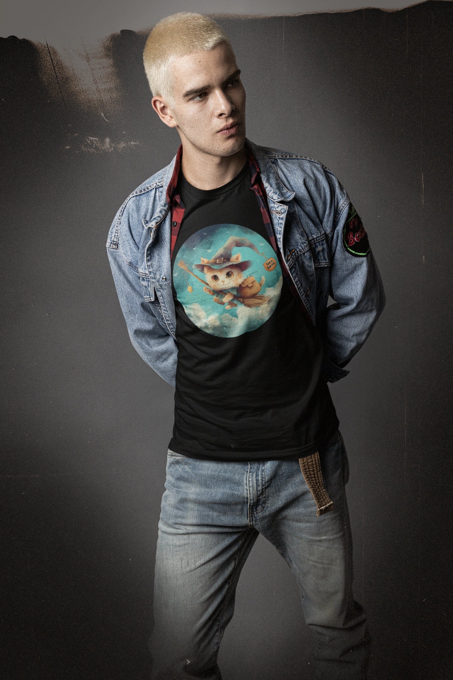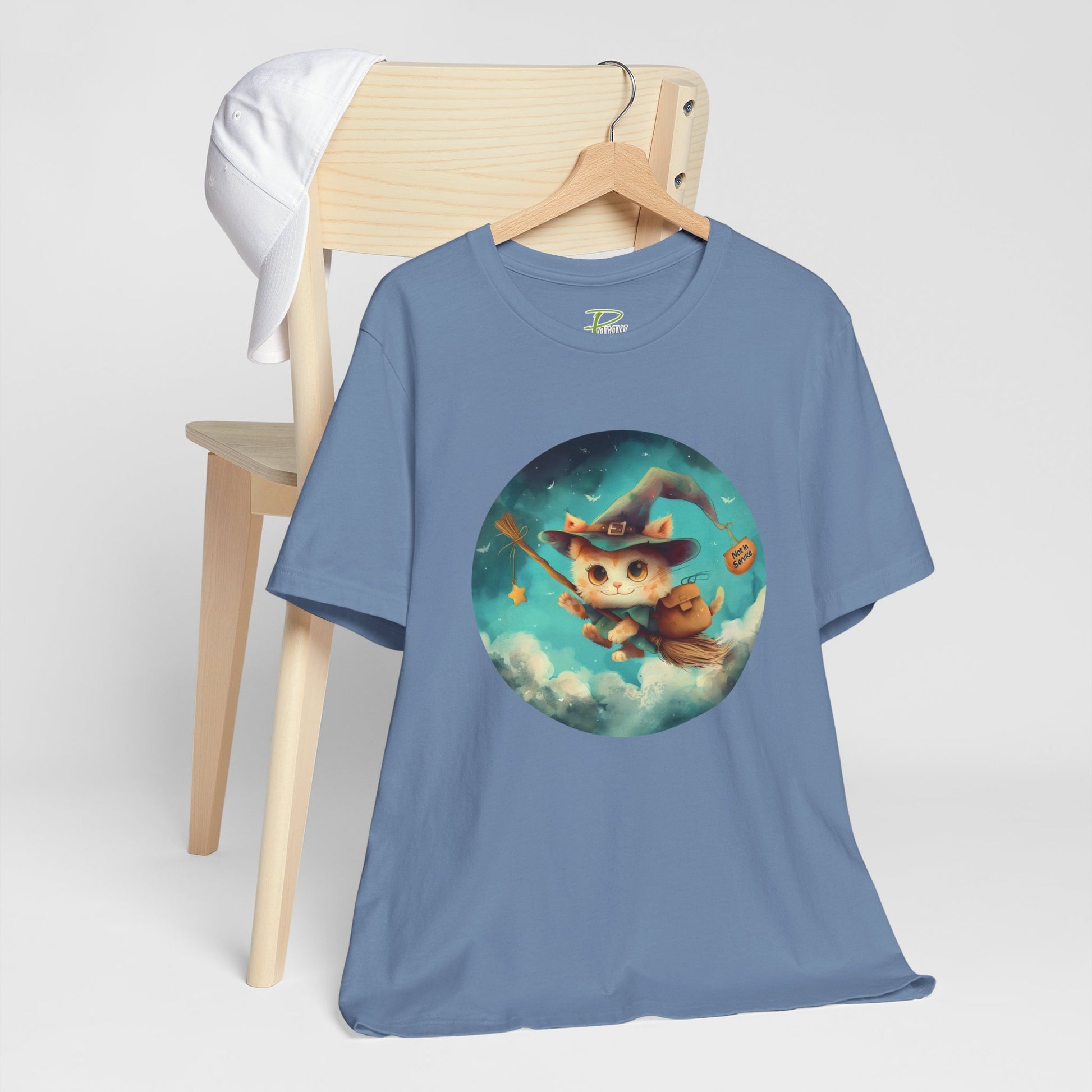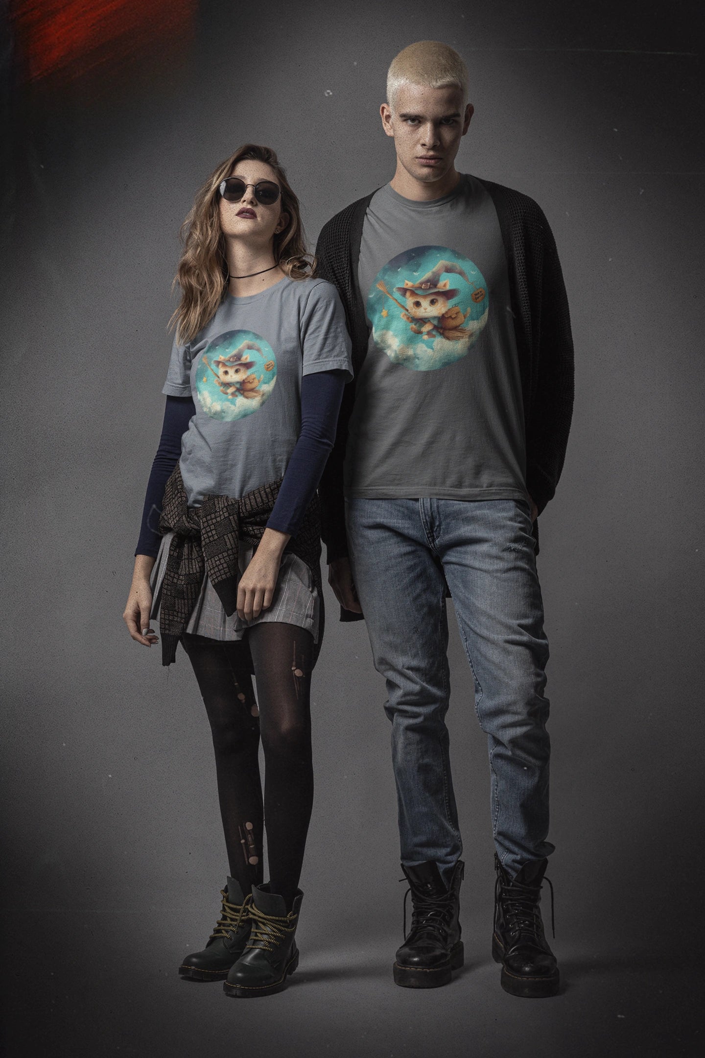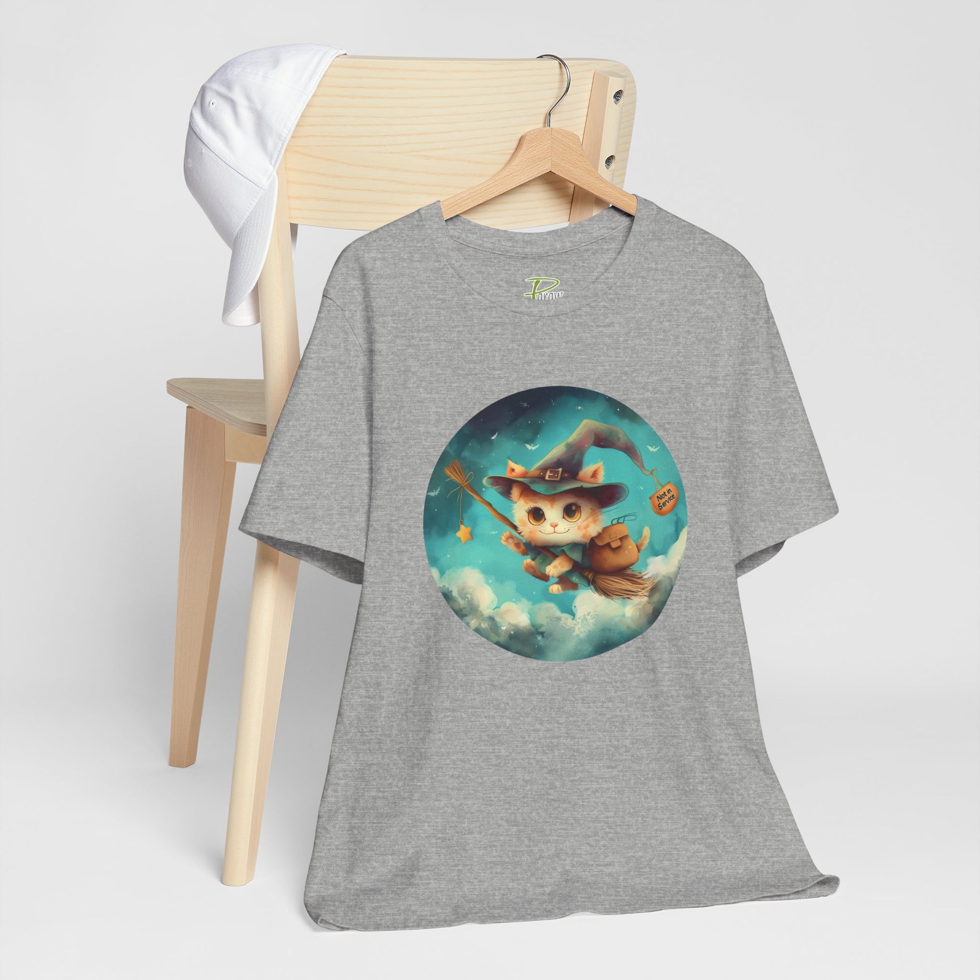 Get into the festive spirit with our Adorable Cat on Witch(Magician) Stick Unisex Jersey Tee, featuring a charming design that's sure to delight. Crafted from high-quality materials, this fashion-fit short-sleeved funny cat t-shirt offers a comfortable fit for all-day wear and adds inspiring joy and excitement for the season for Men and Women. Soft cotton and quality print make users fall in love with it repeatedly. These t-shirts have ribbed knit collars to bolster shaping. The shoulders are tapered for a better fit over time. Dual side seams hold the garment's shape for longer.