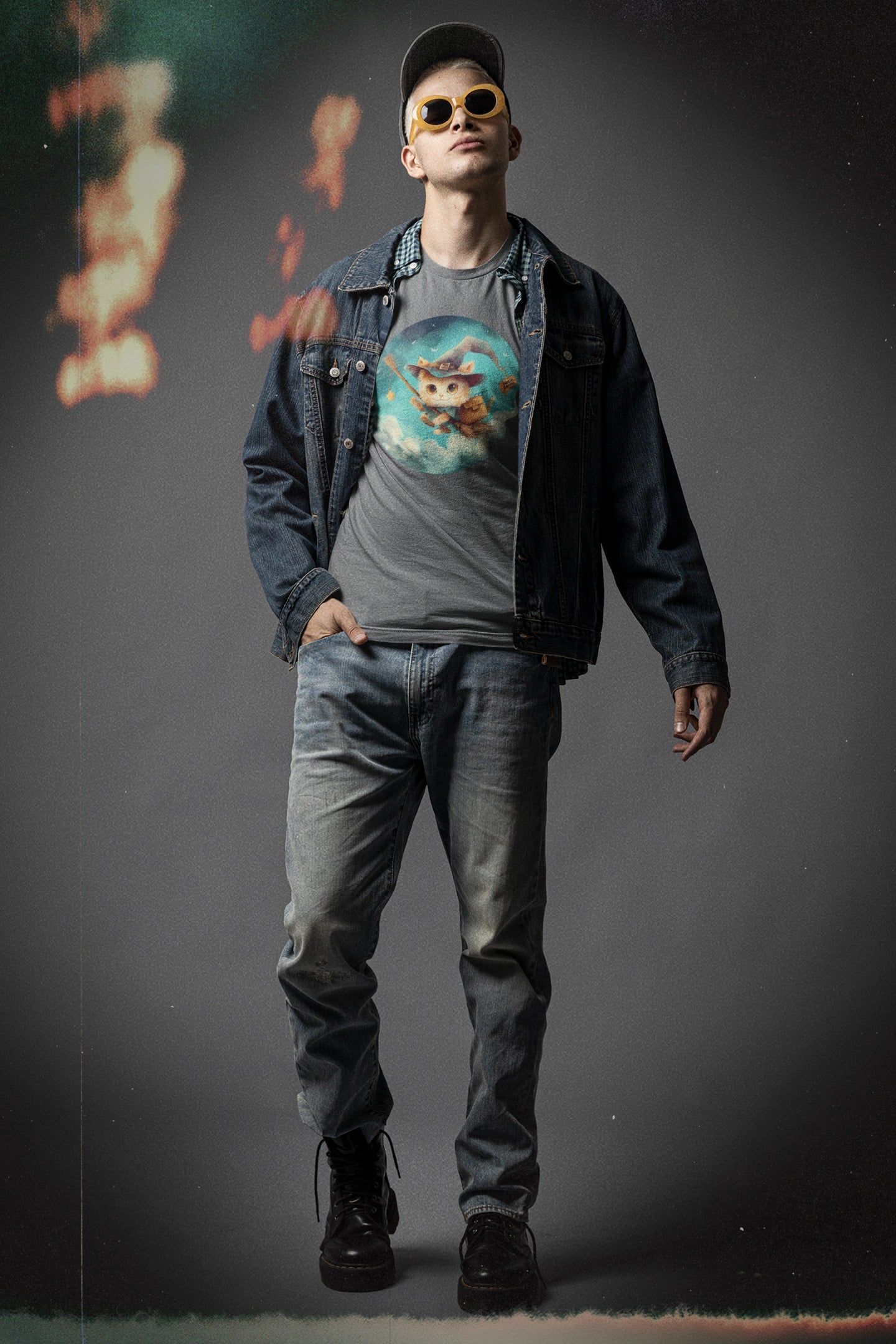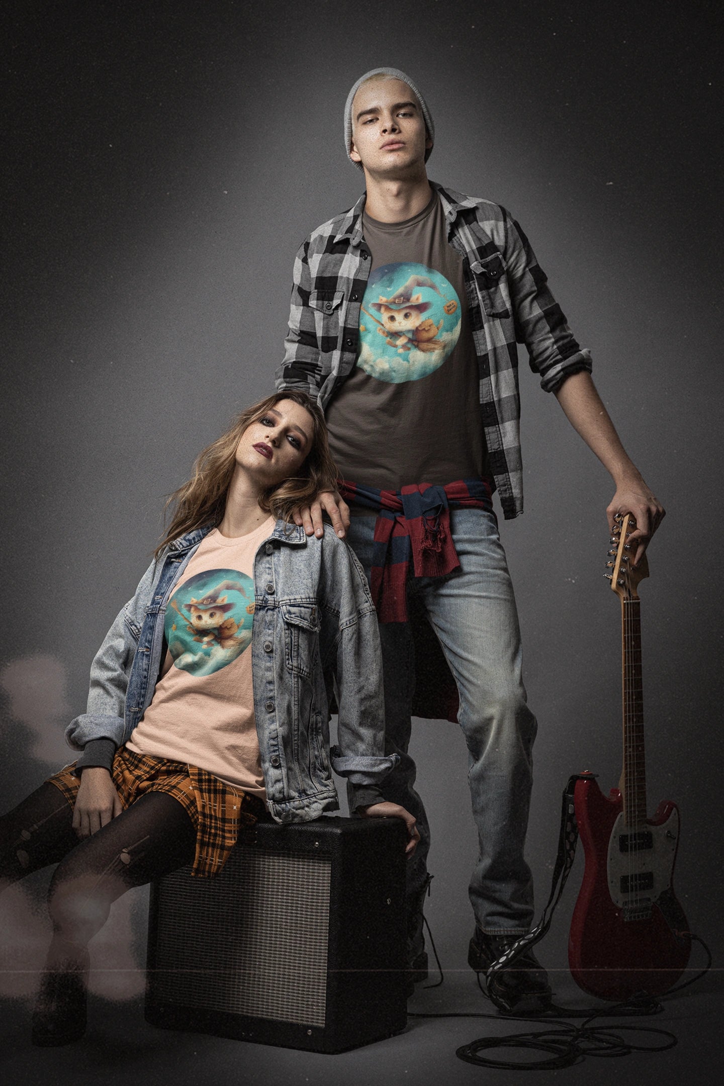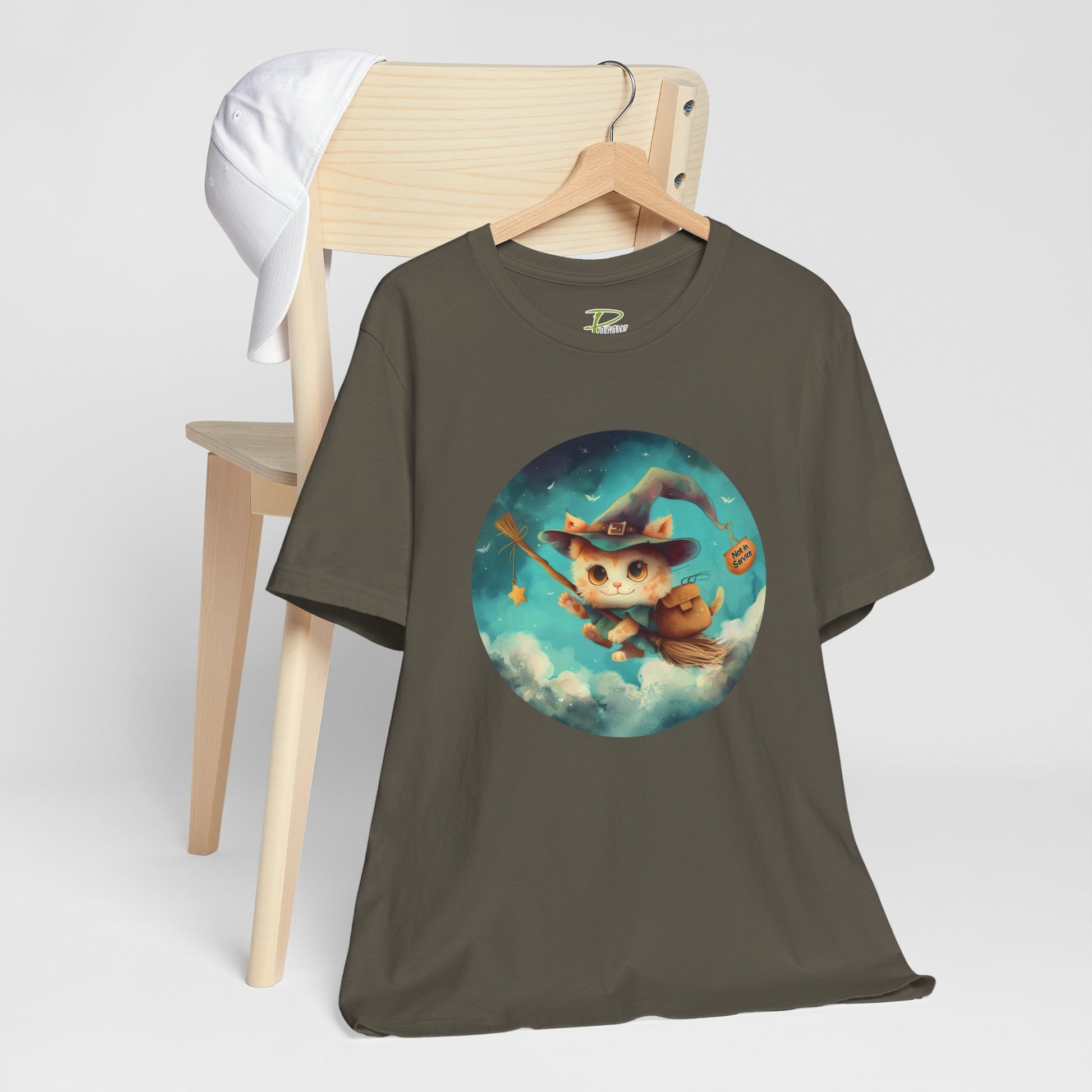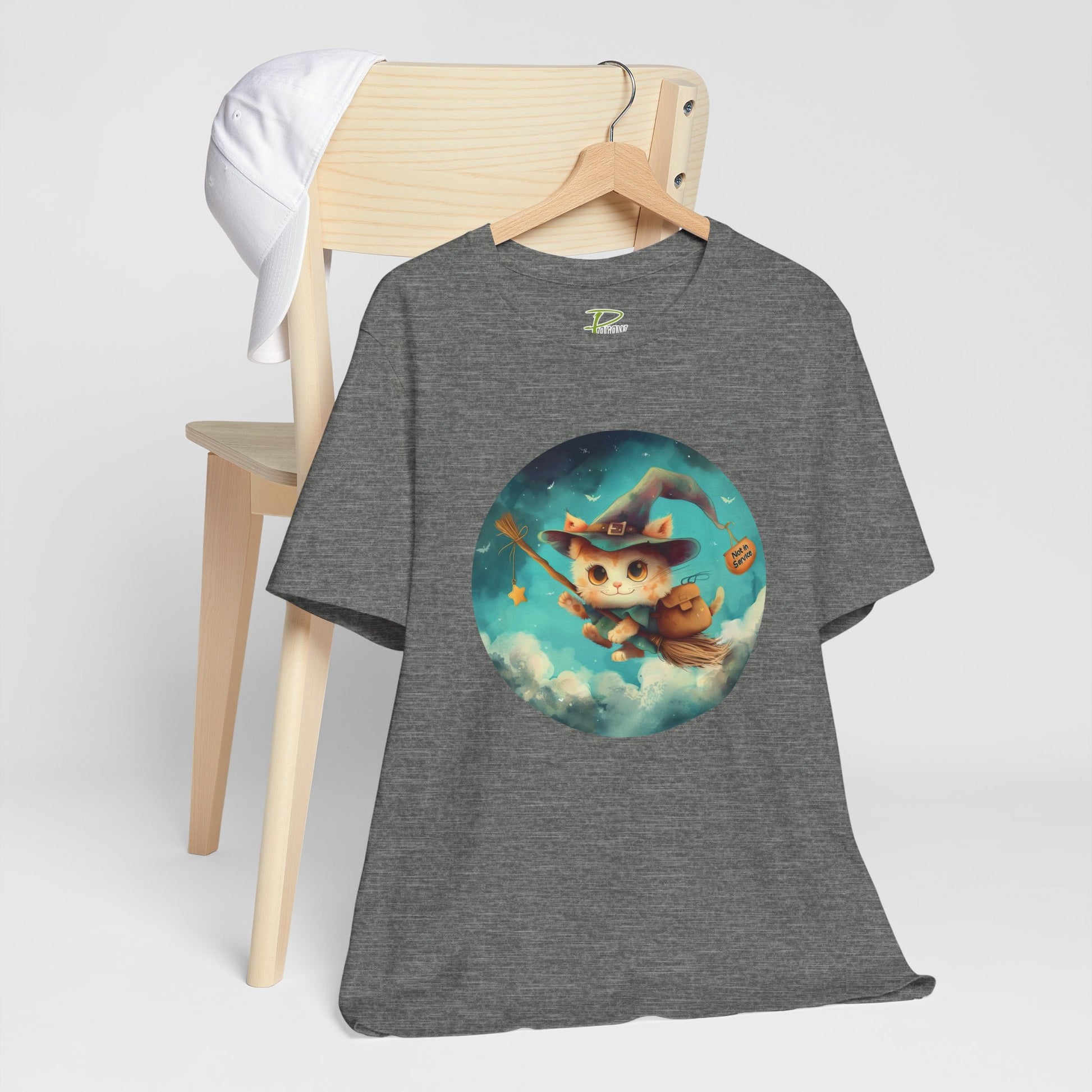 Get into the festive spirit with our Adorable Cat on Witch(Magician) Stick Unisex Jersey Tee, featuring a charming design that's sure to delight. Crafted from high-quality materials, this fashion-fit short-sleeved funny cat t-shirt offers a comfortable fit for all-day wear and adds inspiring joy and excitement for the season for Men and Women. Soft cotton and quality print make users fall in love with it repeatedly. These t-shirts have ribbed knit collars to bolster shaping. The shoulders are tapered for a better fit over time. Dual side seams hold the garment's shape for longer.