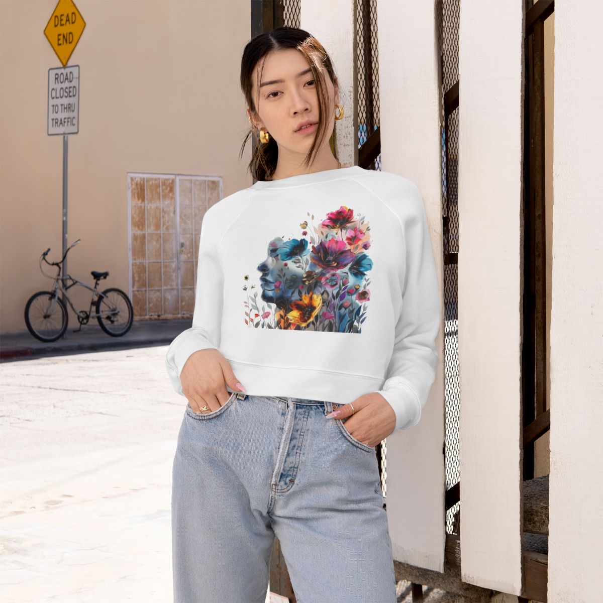 Women's Cropped Fleece Pullover with Floral Watercolor Design