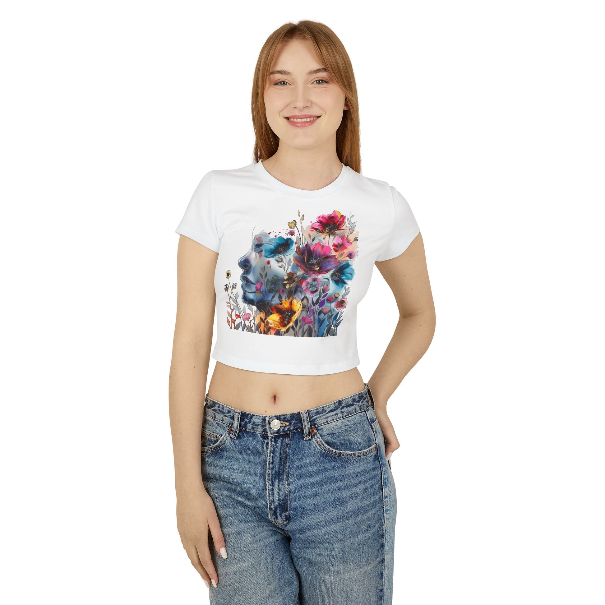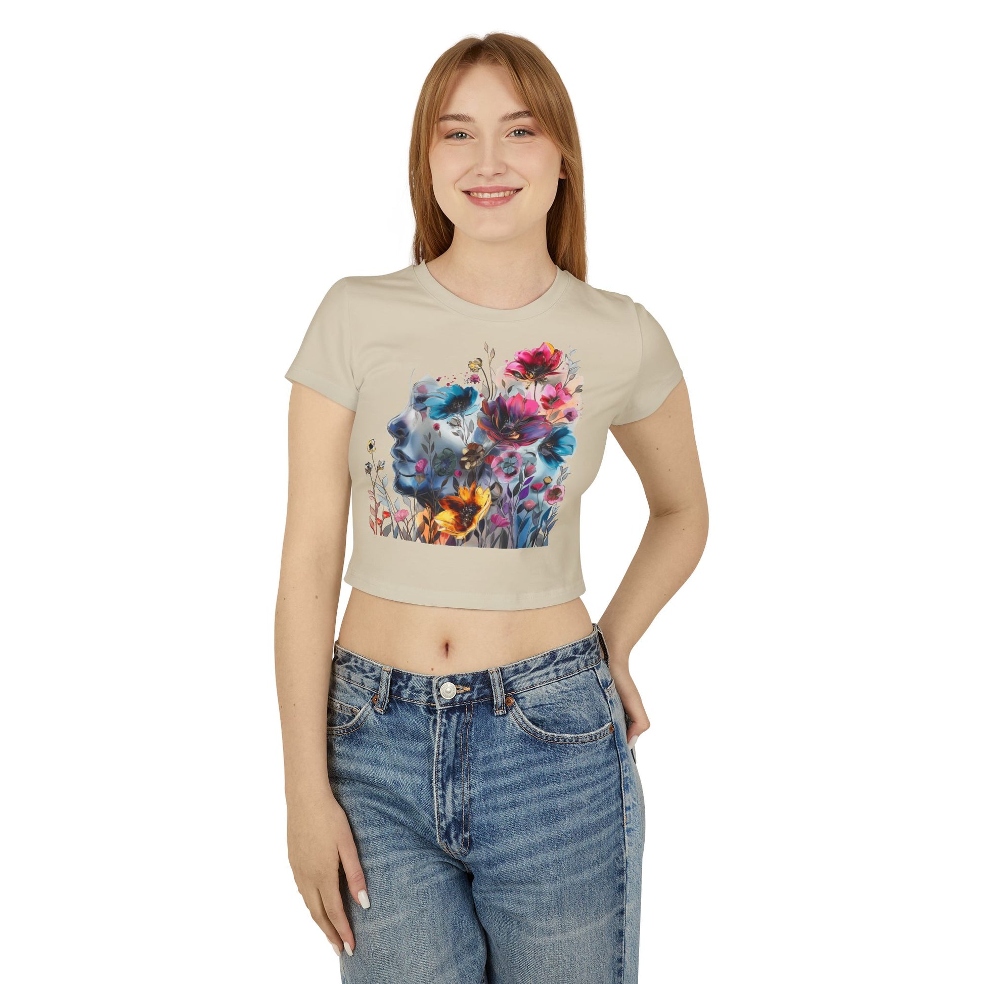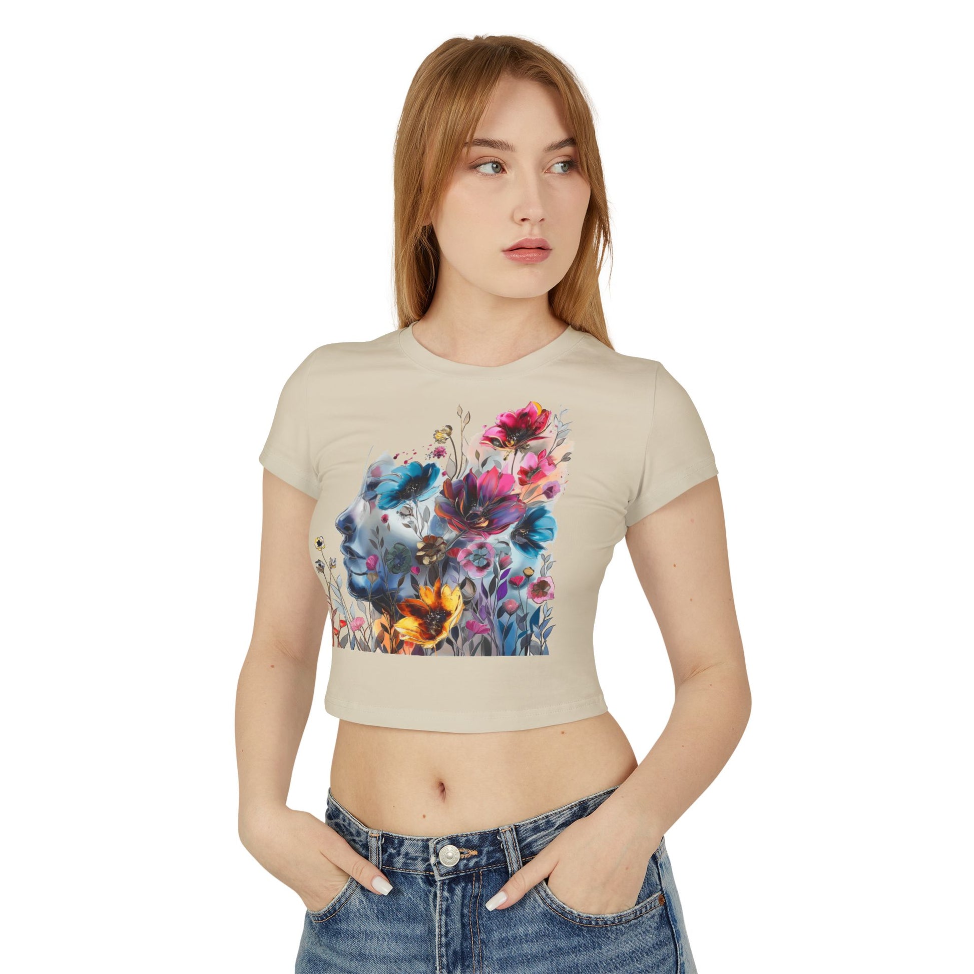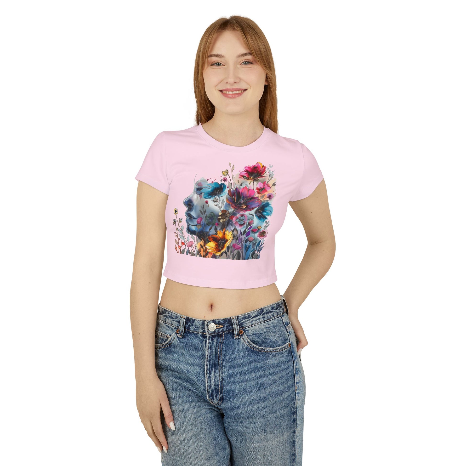 Floral Dreamscape Women Baby Tee - Artistic Short-Sleeve Top for Nature Lovers