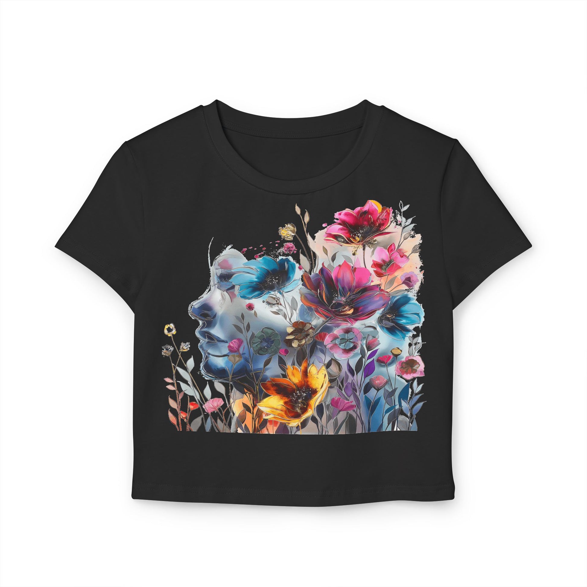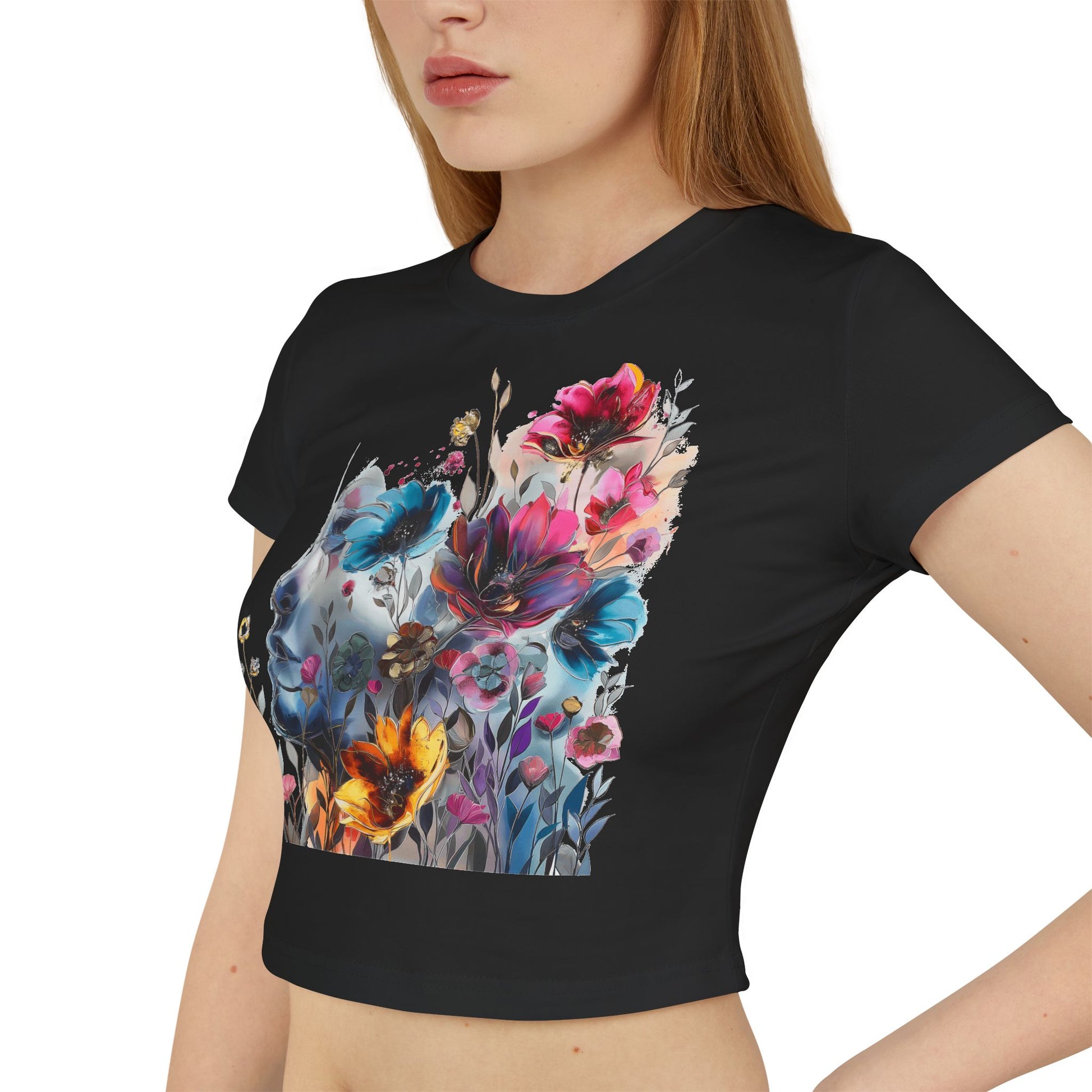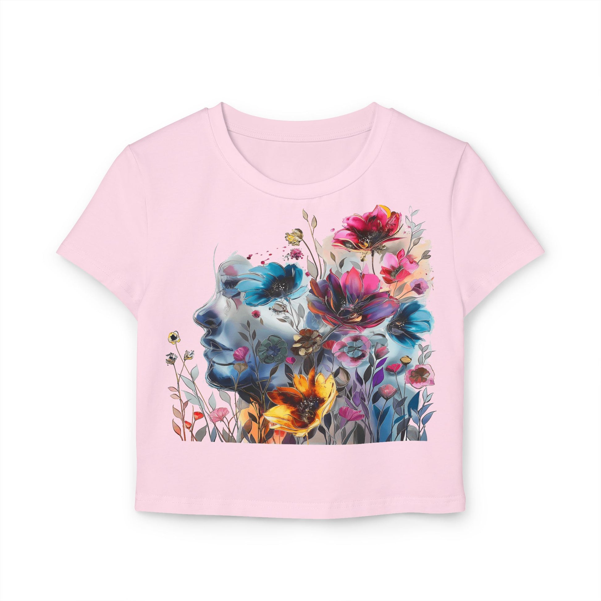 Introduce a splash of artistry to your wardrobe with this Women's Baby Tee. This shirt features a stunning floral design that embodies a vibrant and uplifting vibe, perfect for casual outings or lounging at home. The medium-weight organic cotton ensures comfort against your skin, making it ideal for year-round wear. Whether you’re celebrating your favorite holidays, enjoying a cozy gathering with friends, or just expressing your unique style, this tee speaks to those who appreciate sustainability and artistry in fashion. It’s perfect for women who love to showcase their personality through unique pieces and is a great gift for birthdays, Mother’s Day, or just because!
