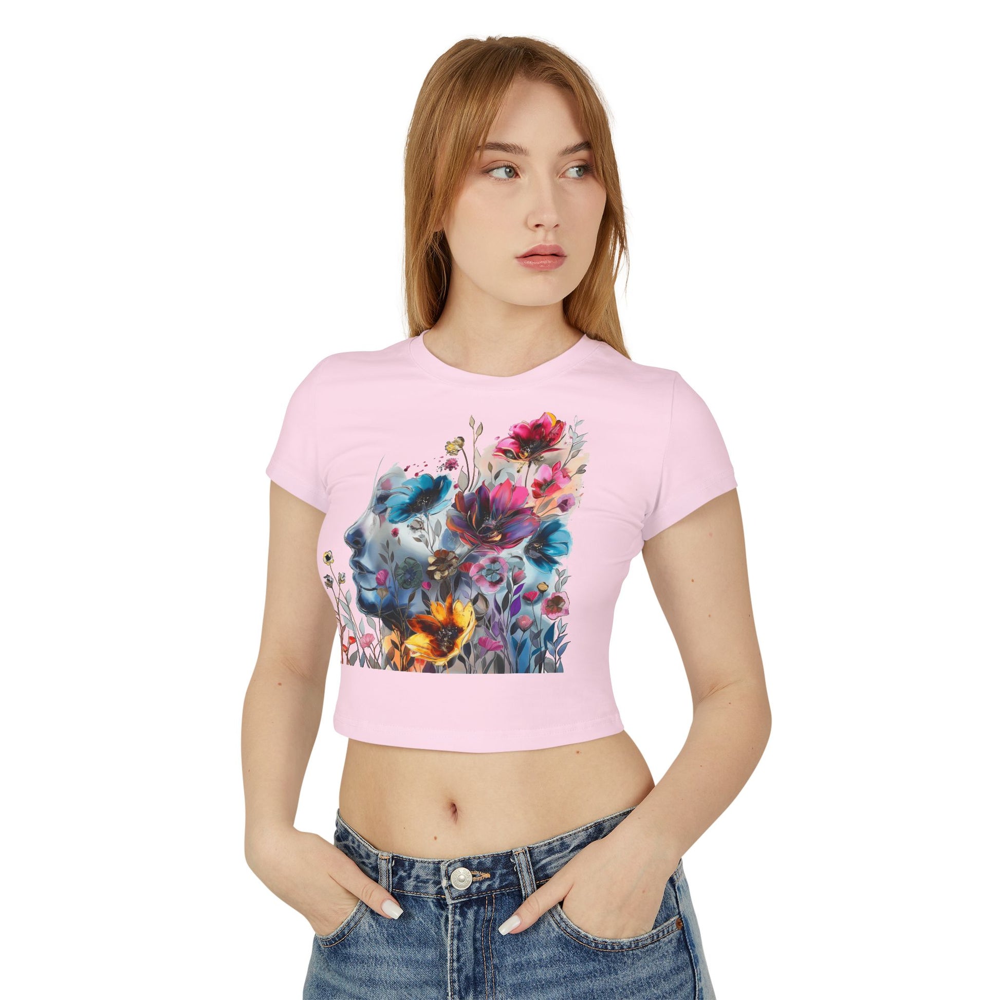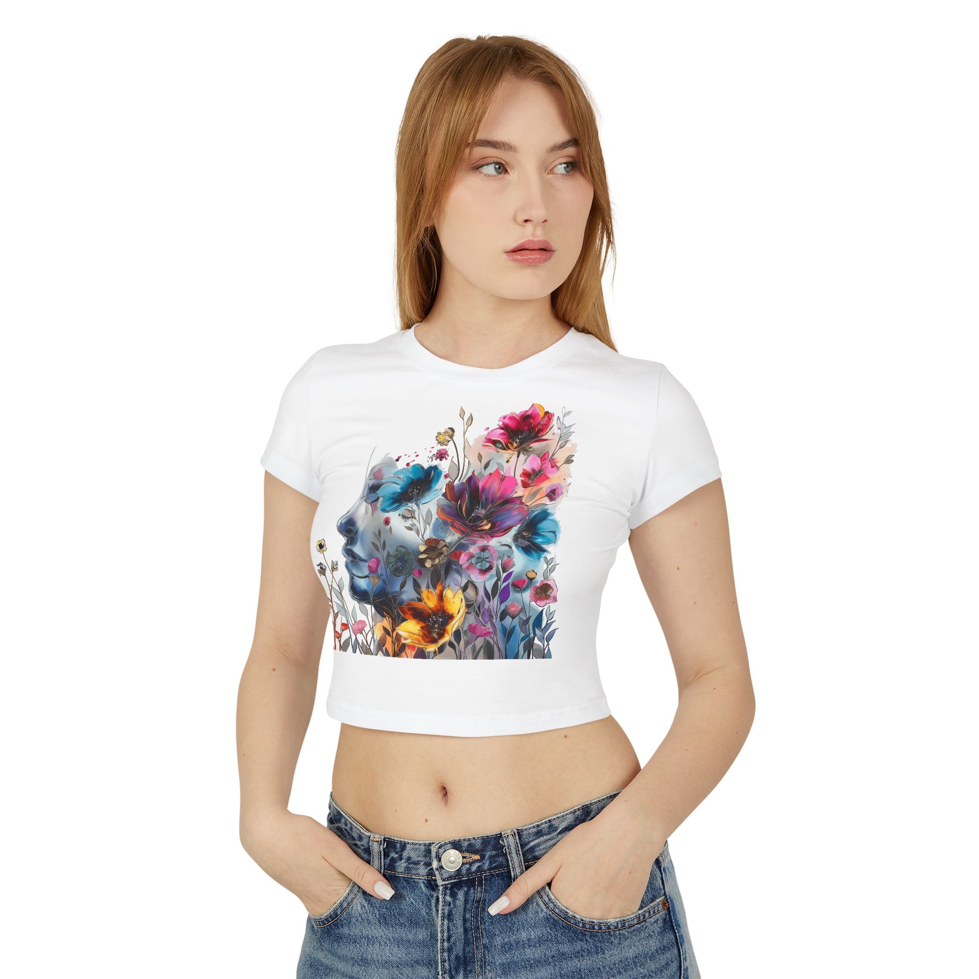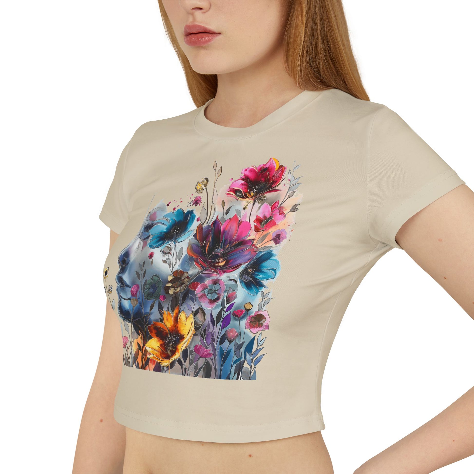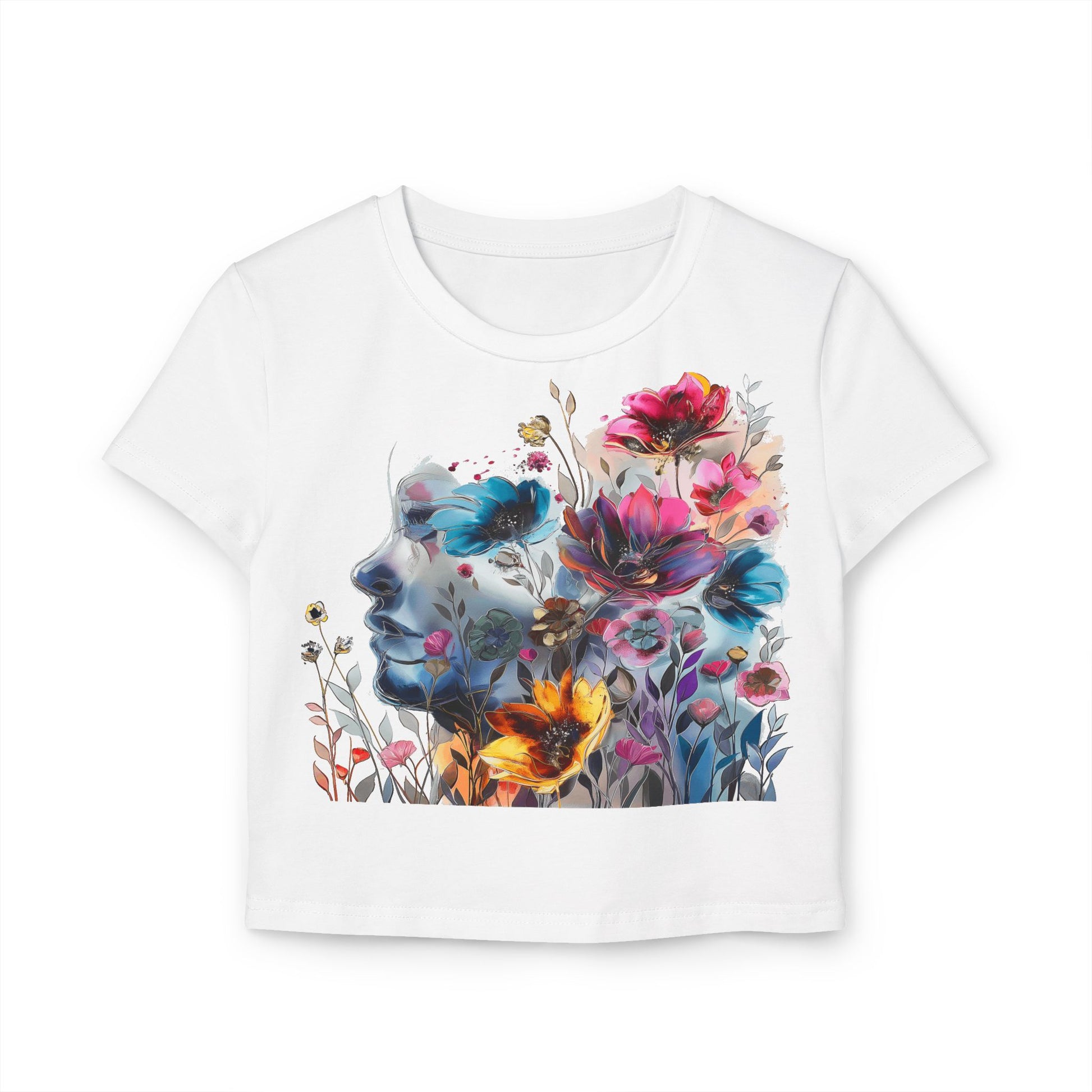 Introduce a splash of artistry to your wardrobe with this Women's Baby Tee. This shirt features a stunning floral design that embodies a vibrant and uplifting vibe, perfect for casual outings or lounging at home. The medium-weight organic cotton ensures comfort against your skin, making it ideal for year-round wear. Whether you’re celebrating your favorite holidays, enjoying a cozy gathering with friends, or just expressing your unique style, this tee speaks to those who appreciate sustainability and artistry in fashion. It’s perfect for women who love to showcase their personality through unique pieces and is a great gift for birthdays, Mother’s Day, or just because!