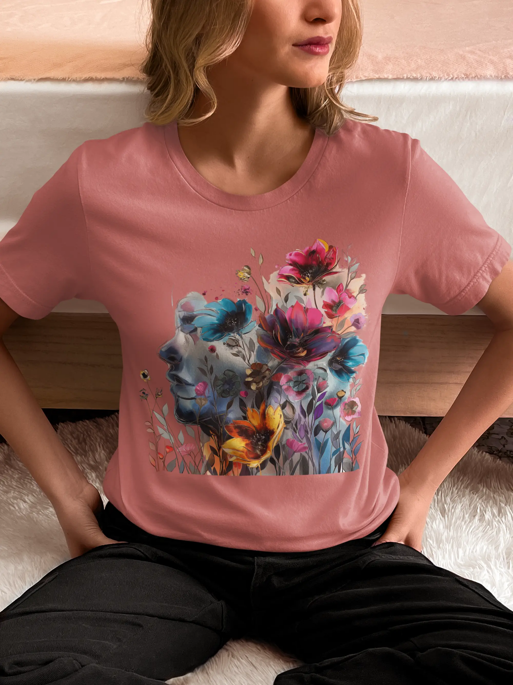 This Floral Watercolor T-Shirt is a perfect mix of art and comfort! The soft, breathable fabric makes it super comfy, and the vibrant floral design adds a unique, artistic touch. It fits beautifully and pairs effortlessly with any outfit. Highly recommend for a chic, effortless look!