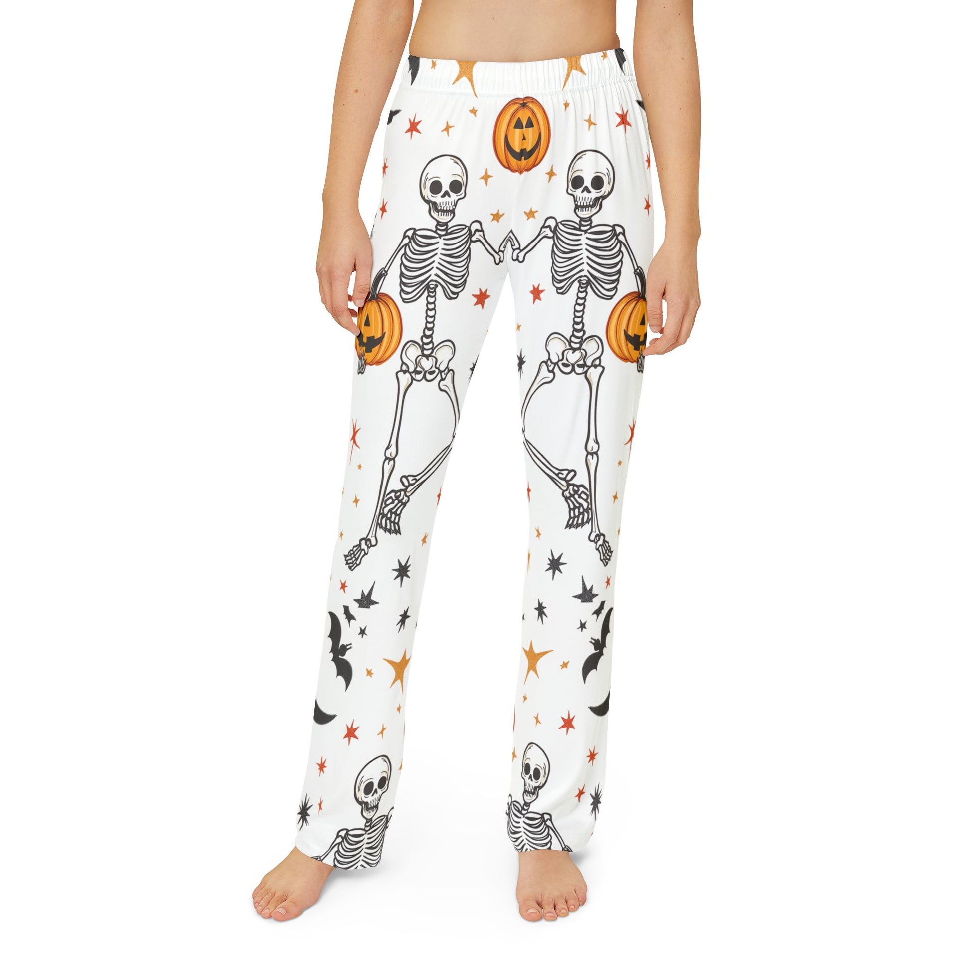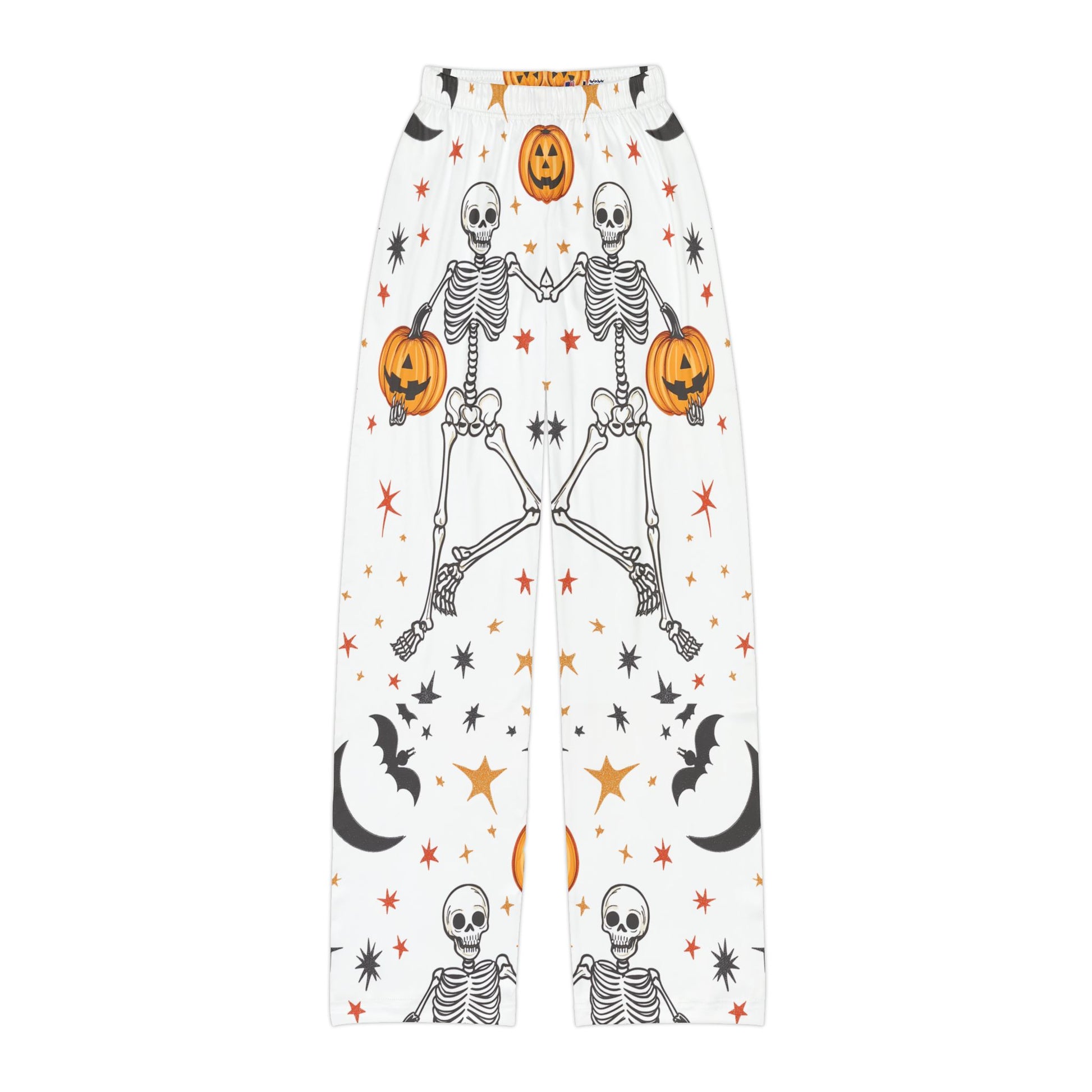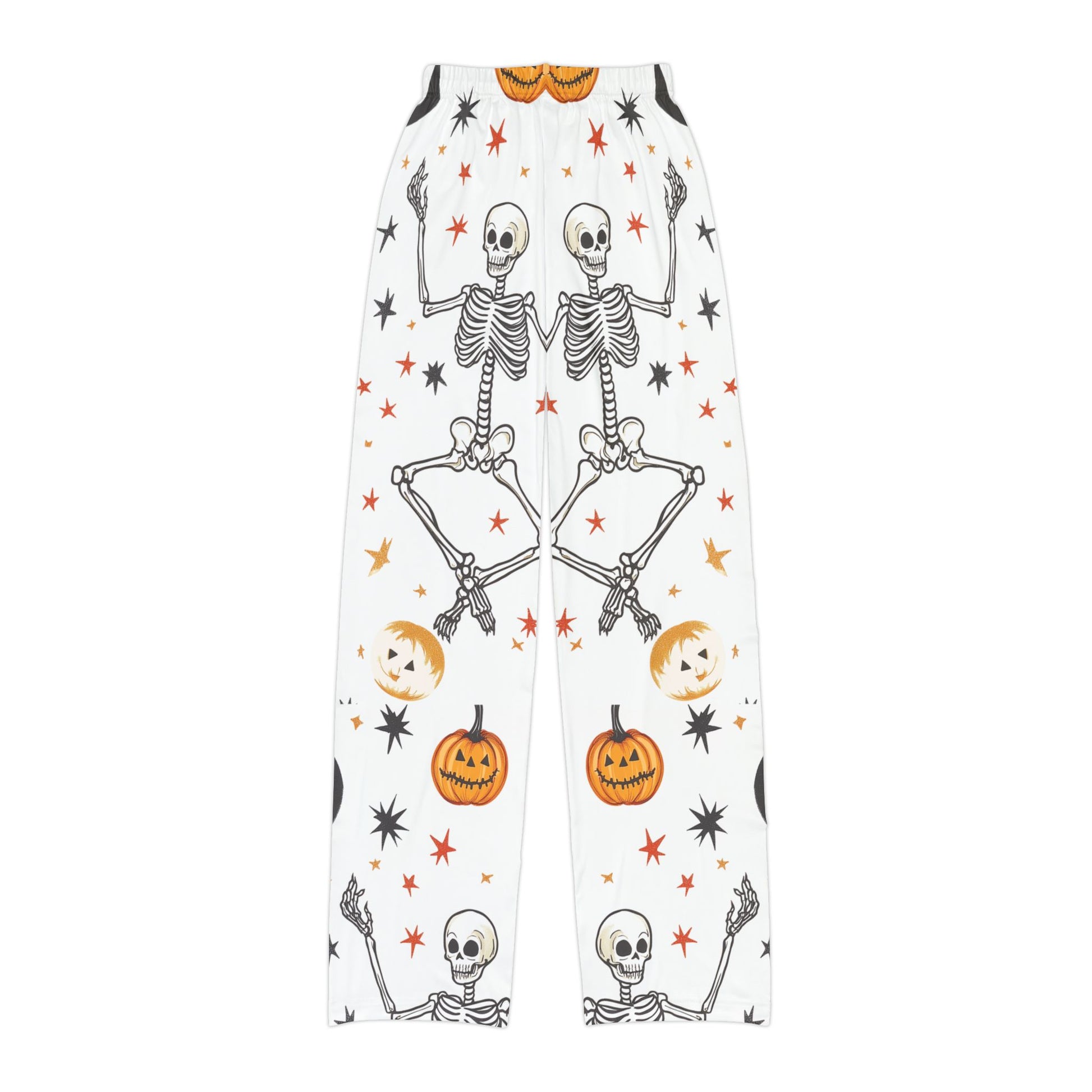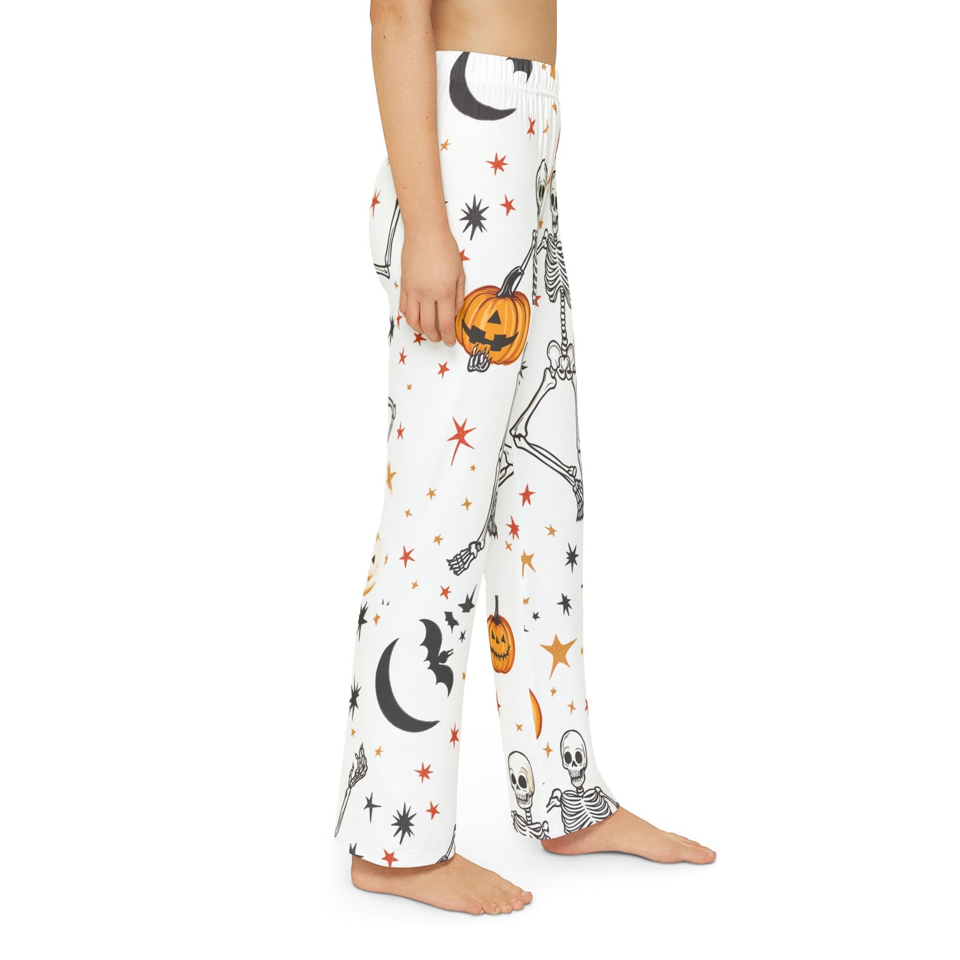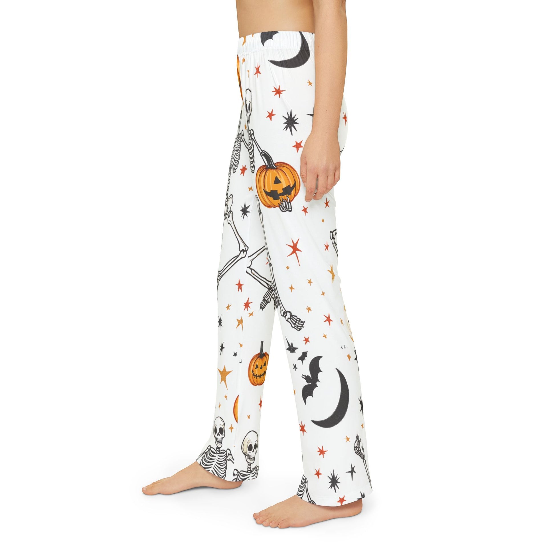 Halloween Kids Pajama Pants - Halloween-Themed Dancing Skeletons and Pumpkins Pajama Pants