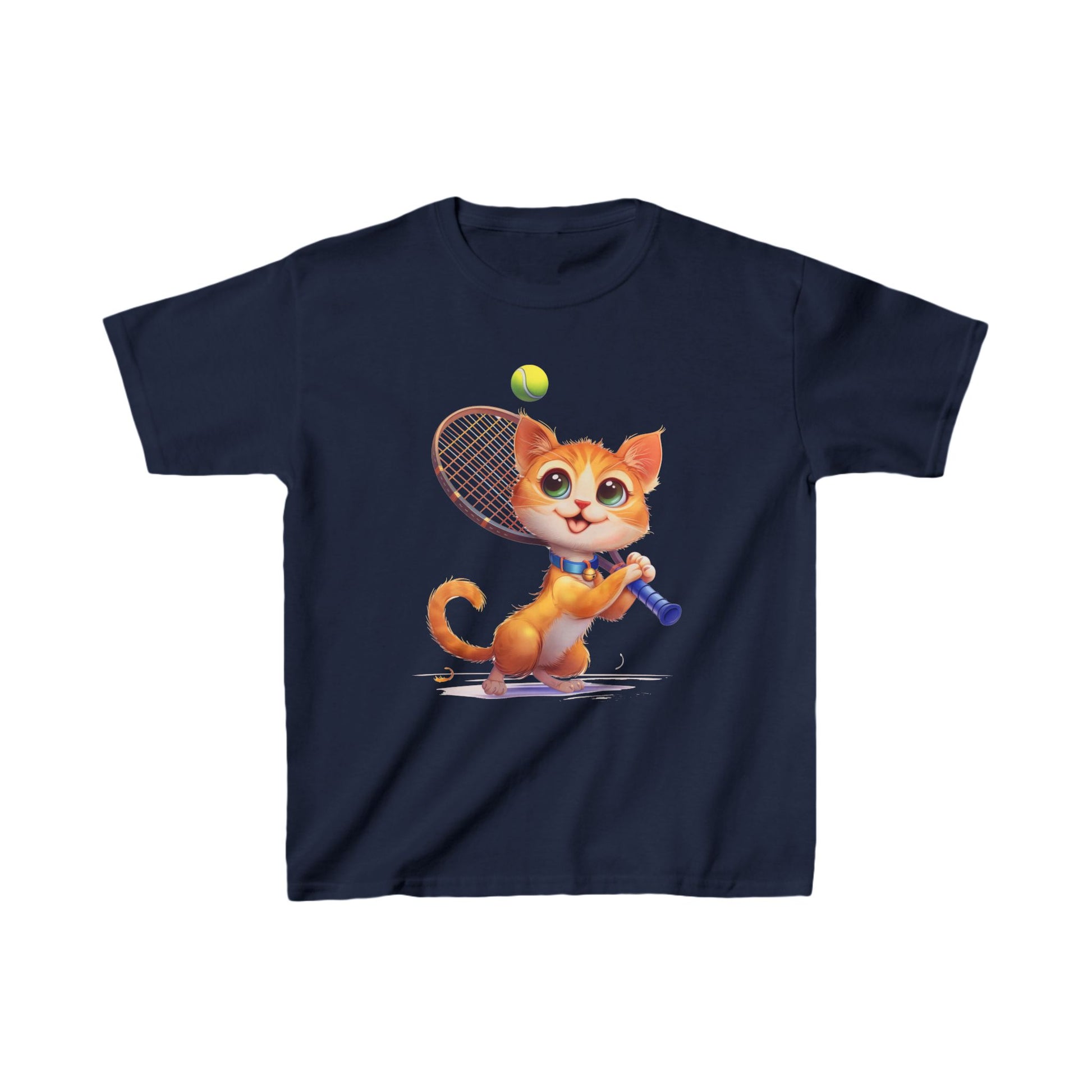 Youth T-Shirt - Cute Cat Playing Tennis - Unisex Youth Heavy Cotton™ Tee