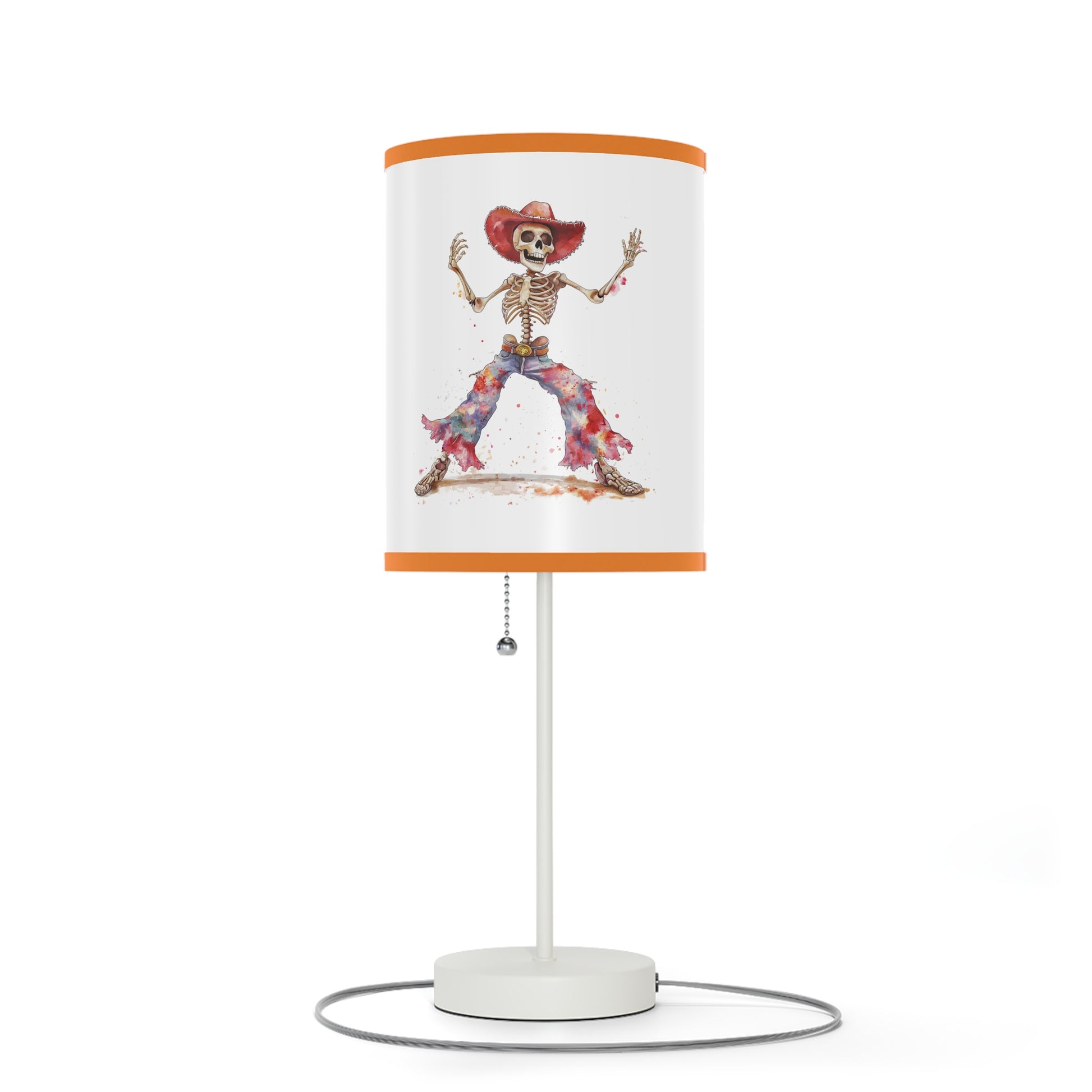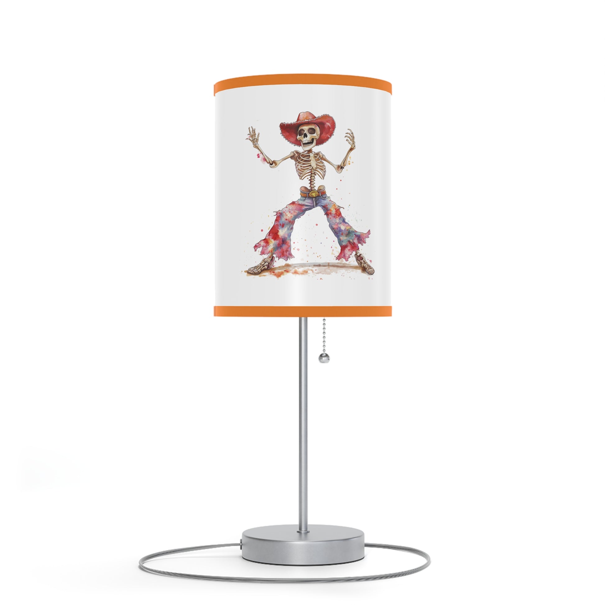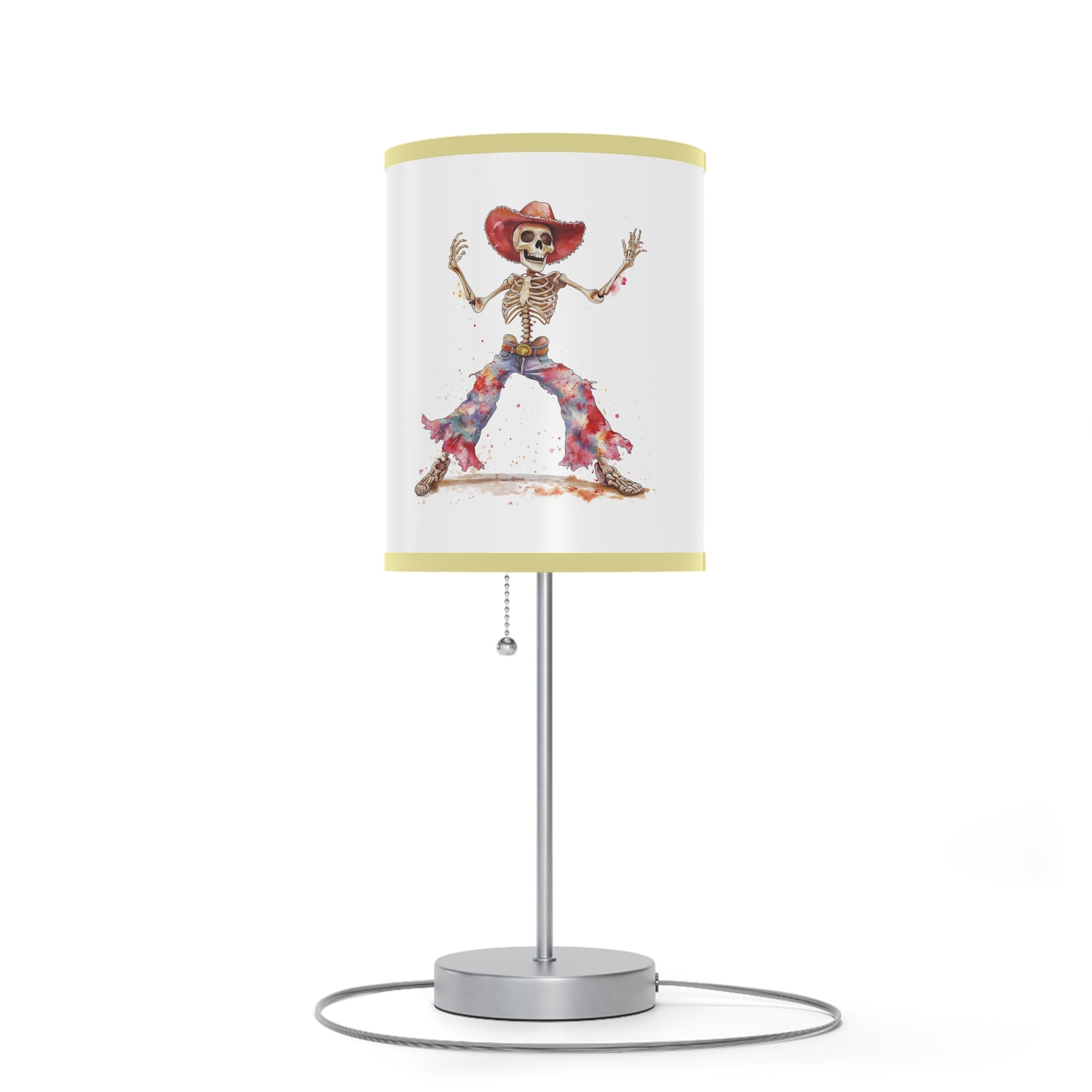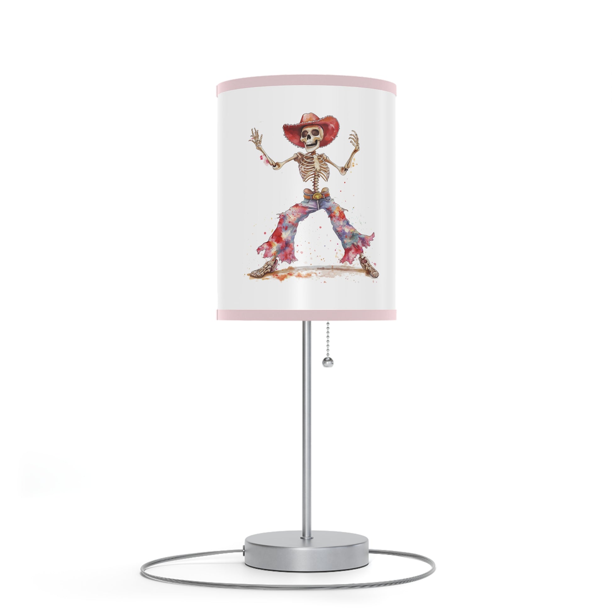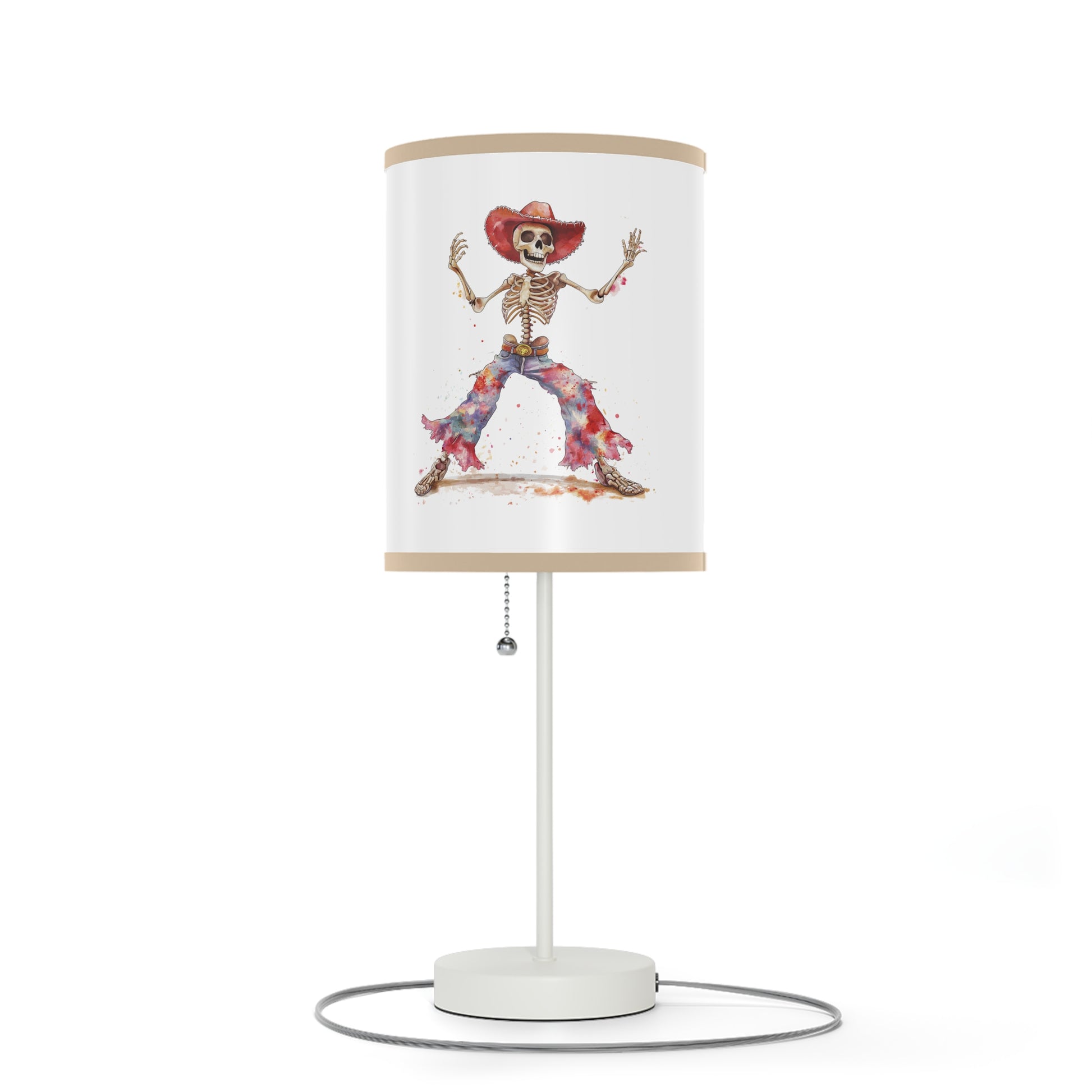 Add a touch of spooky elegance to your home decor with the Spooky Dance Watercolor Skeleton Lamp. This unique lamp features a captivating watercolor illustration of a dancing skeleton, perfect for Halloween or year-round gothic style.