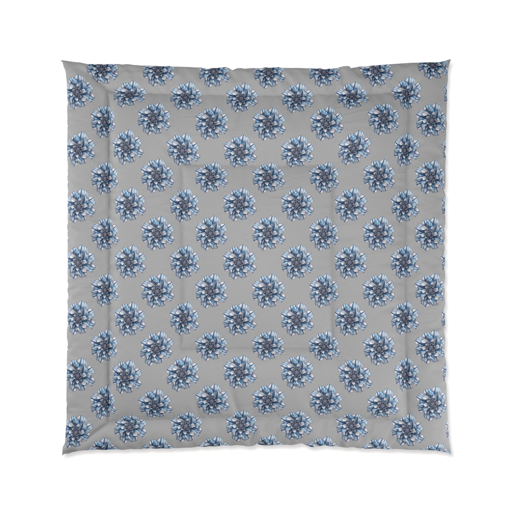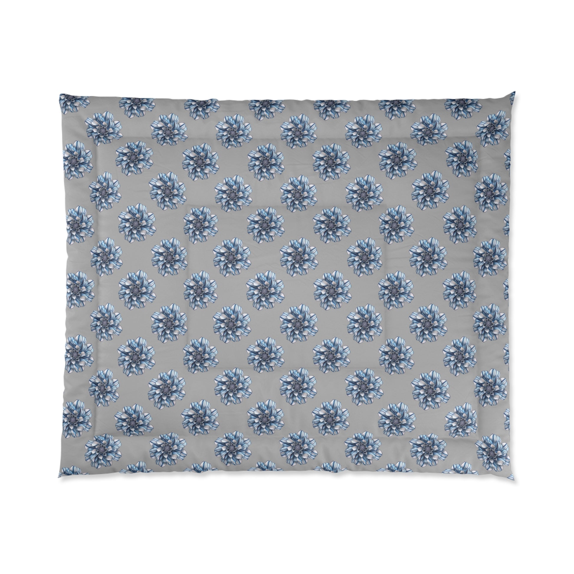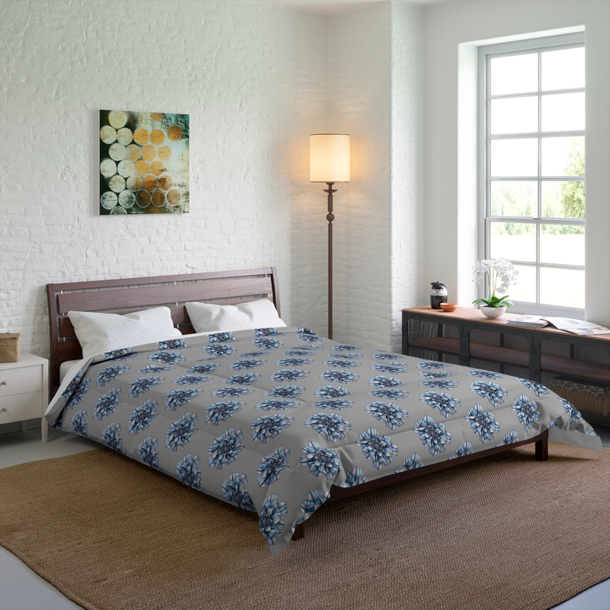 Light Gray Cozy Comforter Blanket with Striped Floral Design