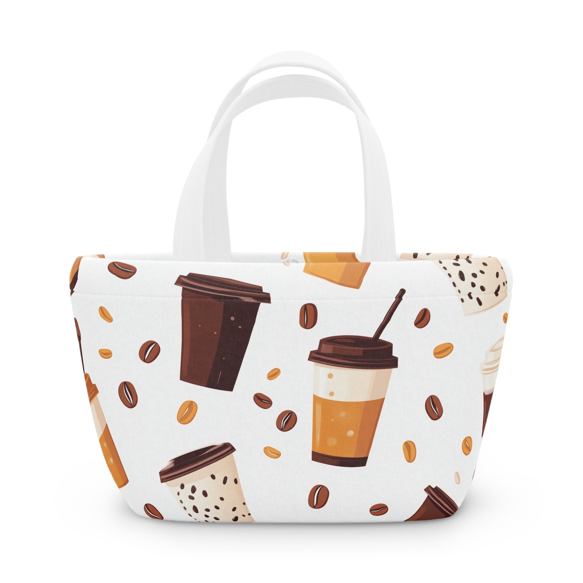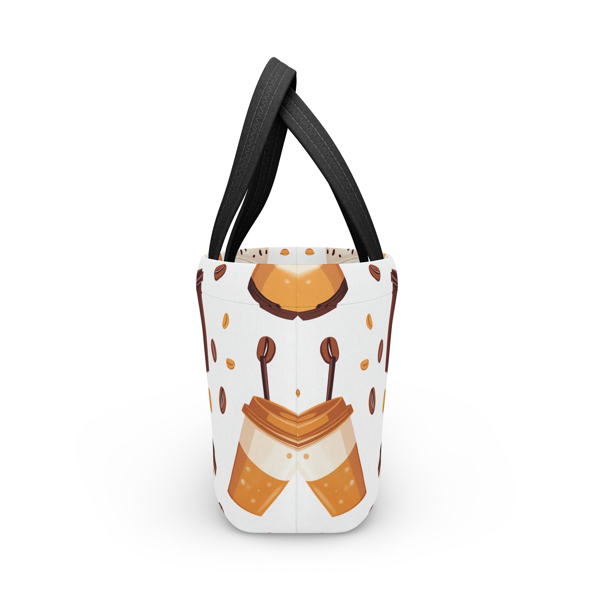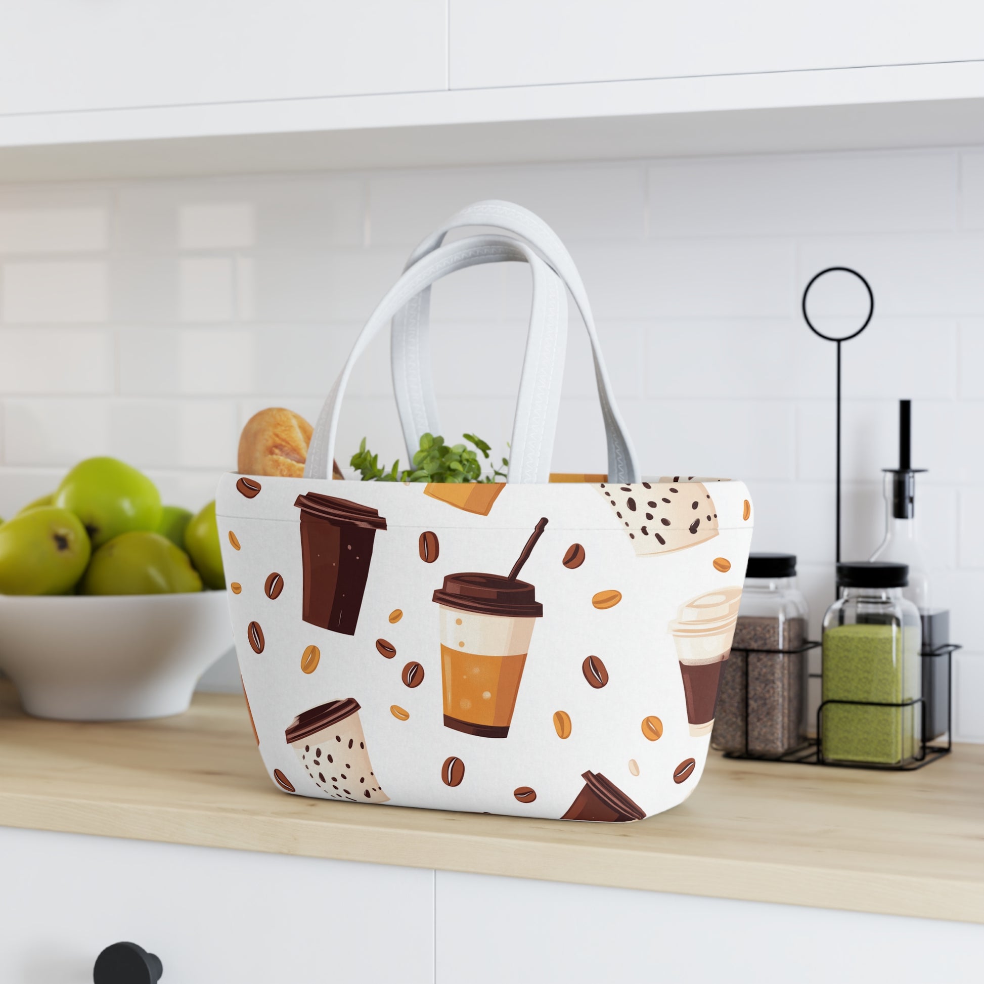 Add a touch of fun and functionality to your lunch routine with the takeaway Lunch Bag! This playful bag features a charming design of various paper takeout cups, perfect for carrying your favorite snacks and meals. It'll stand out from any crowd, whether in Central Park, at work, at school, or by the beach.