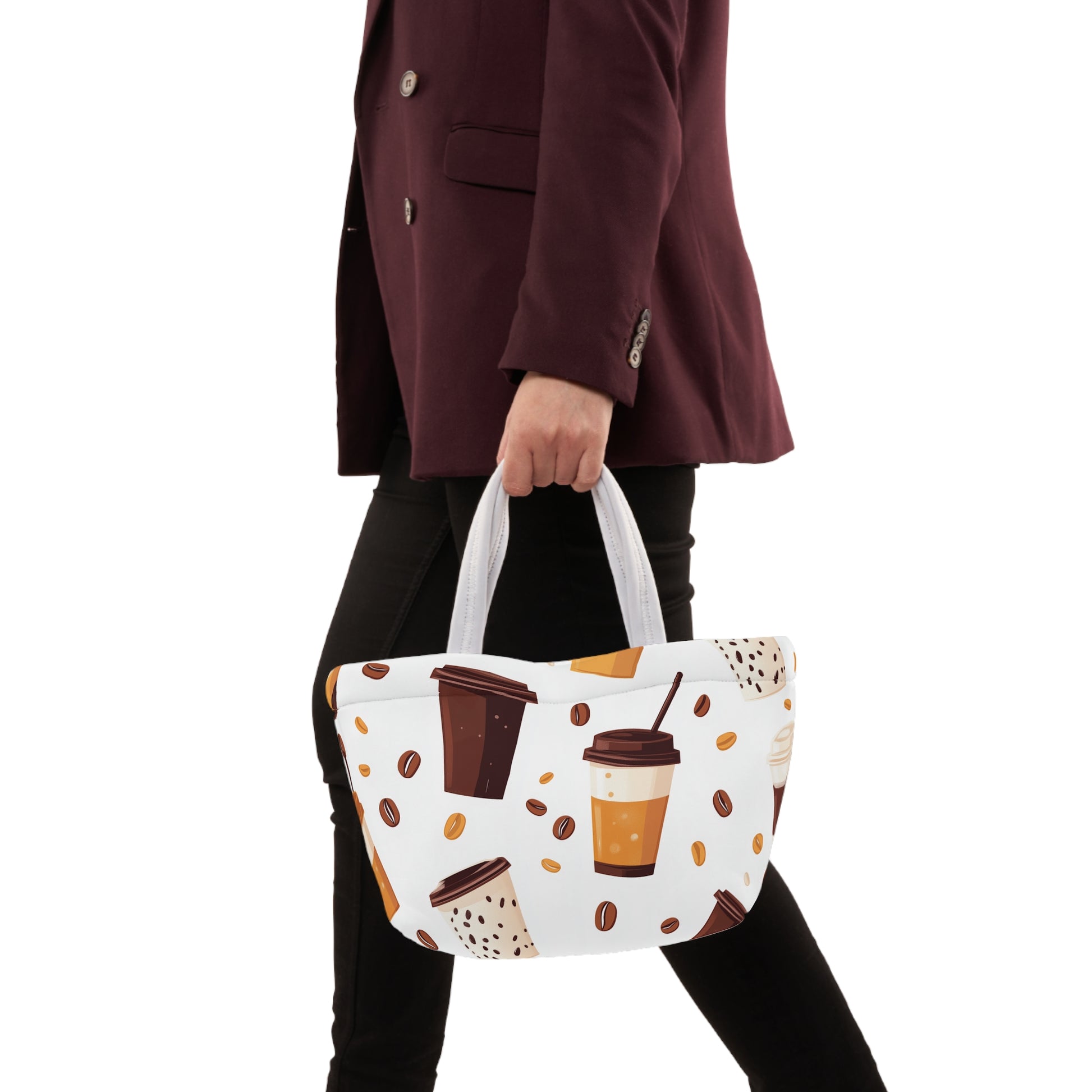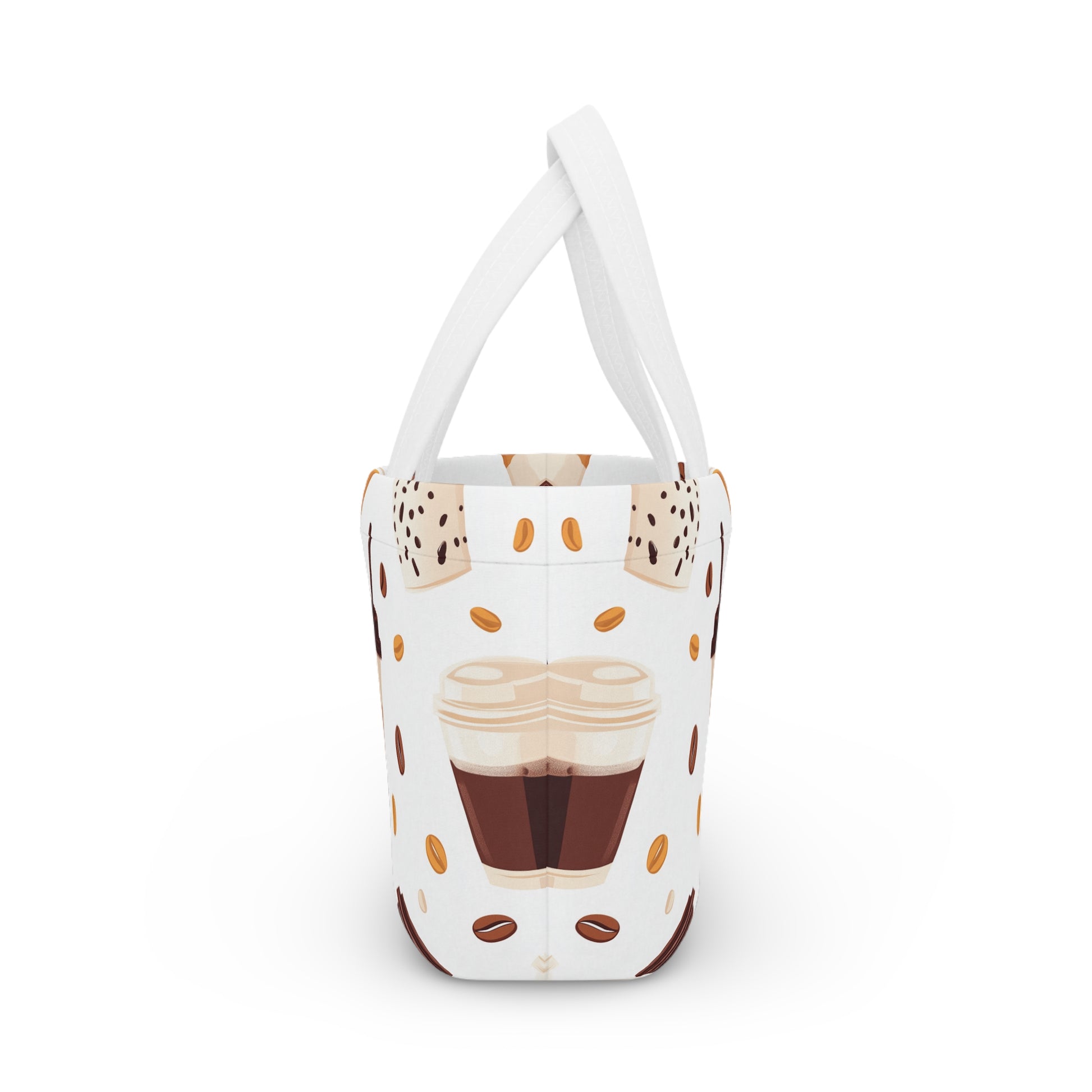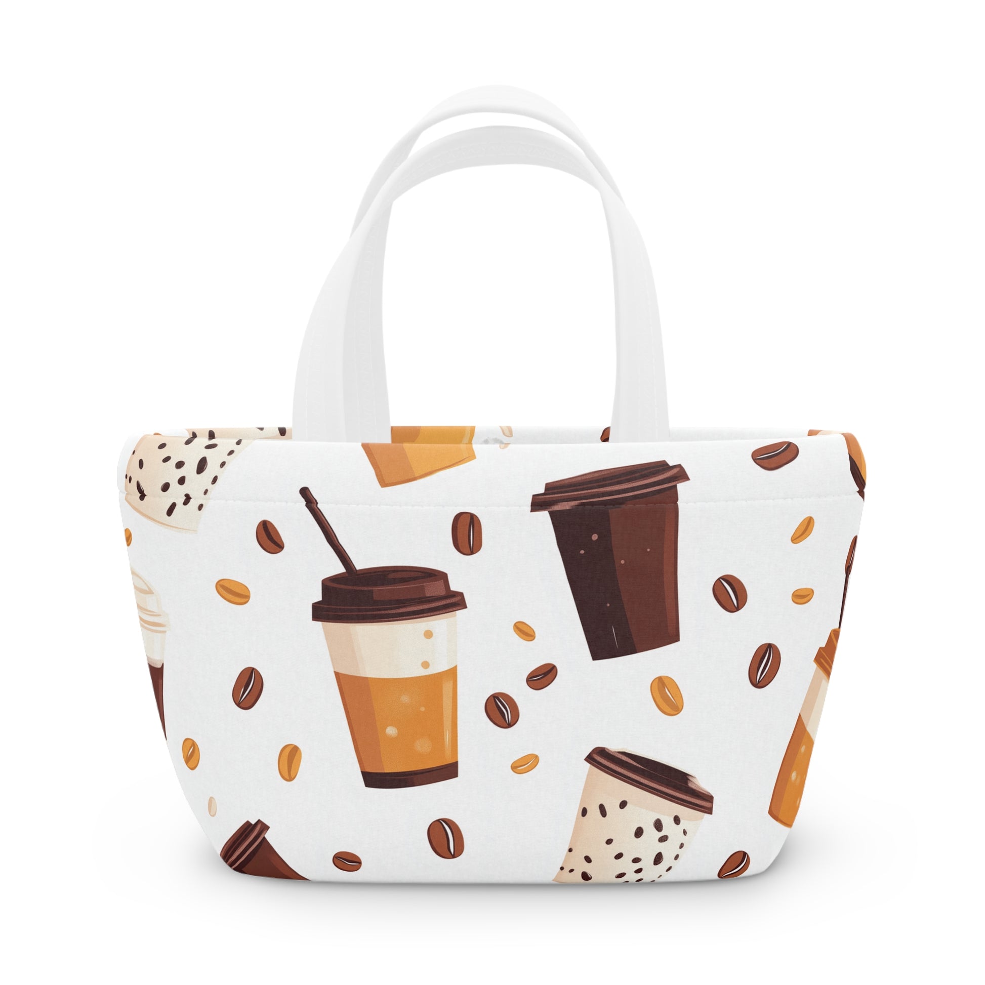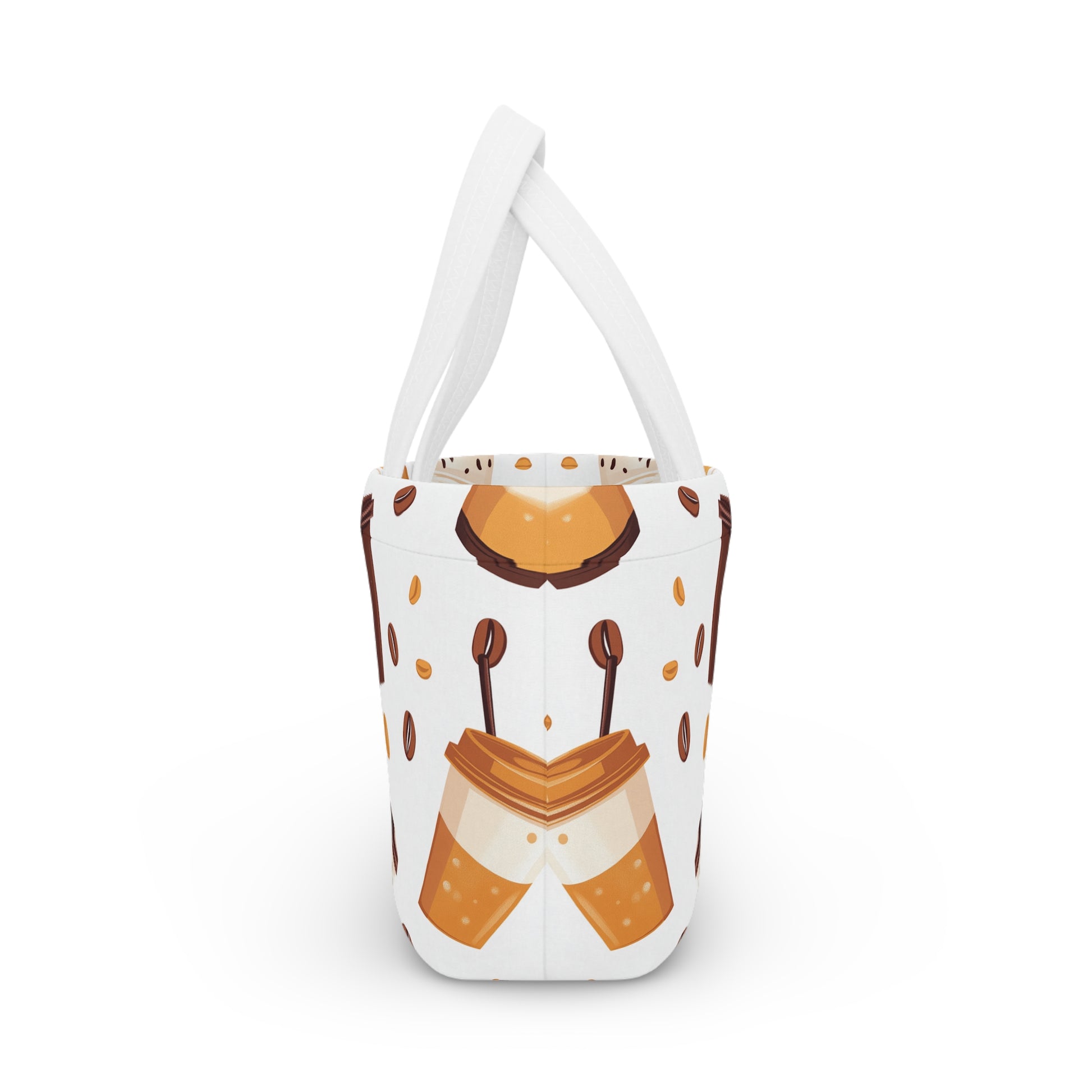 Add a touch of fun and functionality to your lunch routine with the takeaway Lunch Bag! This playful bag features a charming design of various paper takeout cups, perfect for carrying your favorite snacks and meals. It'll stand out from any crowd, whether in Central Park, at work, at school, or by the beach.