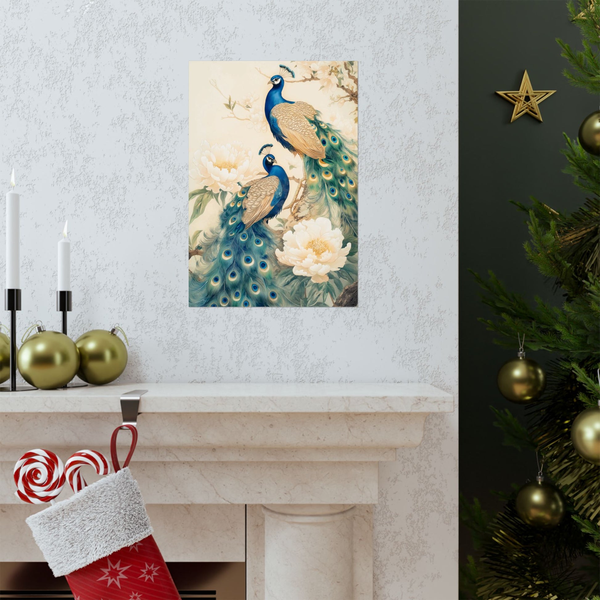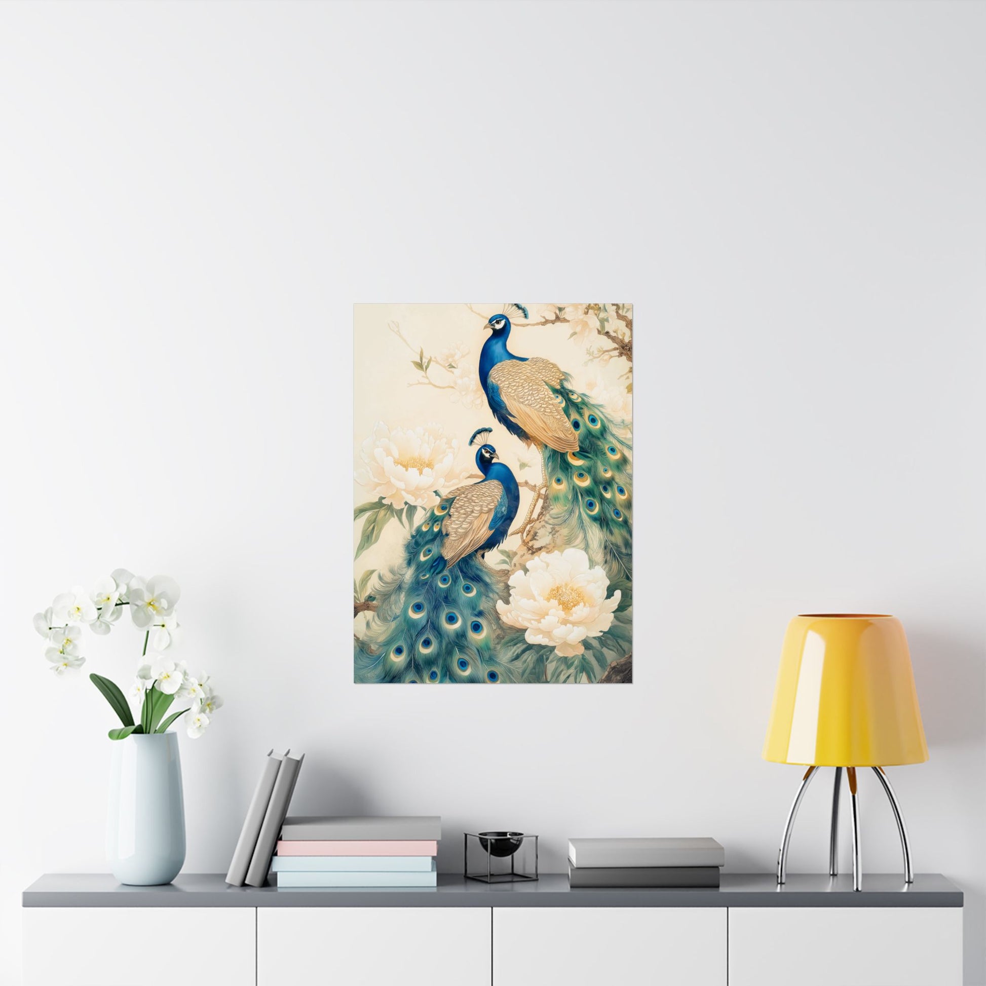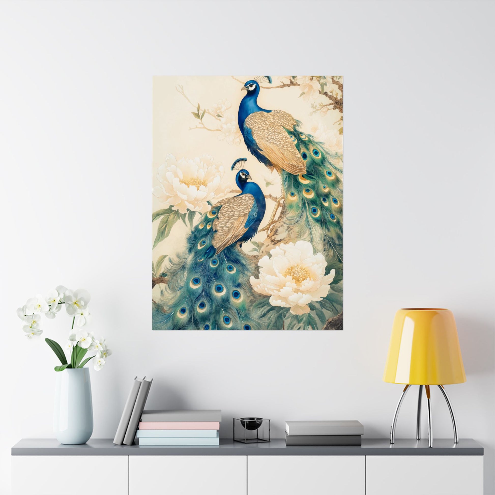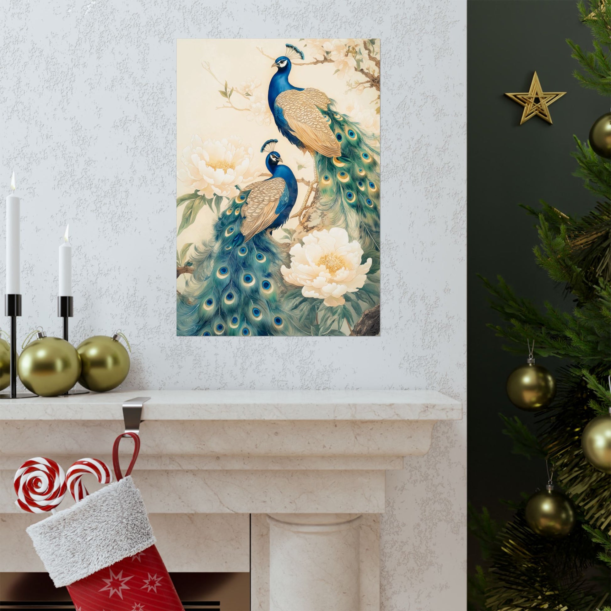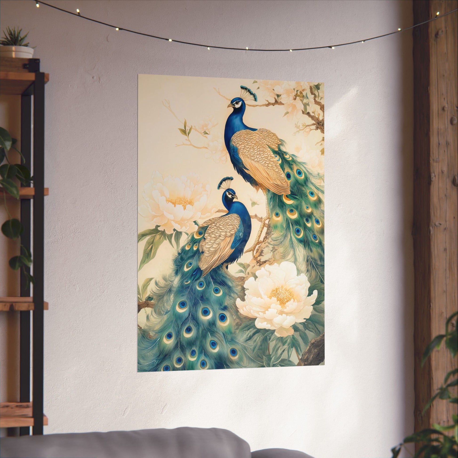 Elevate your home décor with our Matte Vertical Peacocks Posters, a stunning piece of wall art that captures the regal beauty and vibrant colors of peacocks in a modern, artistic design. These elegant print posters feature two majestic peacocks in a vertical orientation, their feathers displayed in intricate detail against a subtle background, adding a touch of sophistication and charm to any room. These custom posters, made with museum-grade paper, translate any digital artwork into exquisite real-life décor.