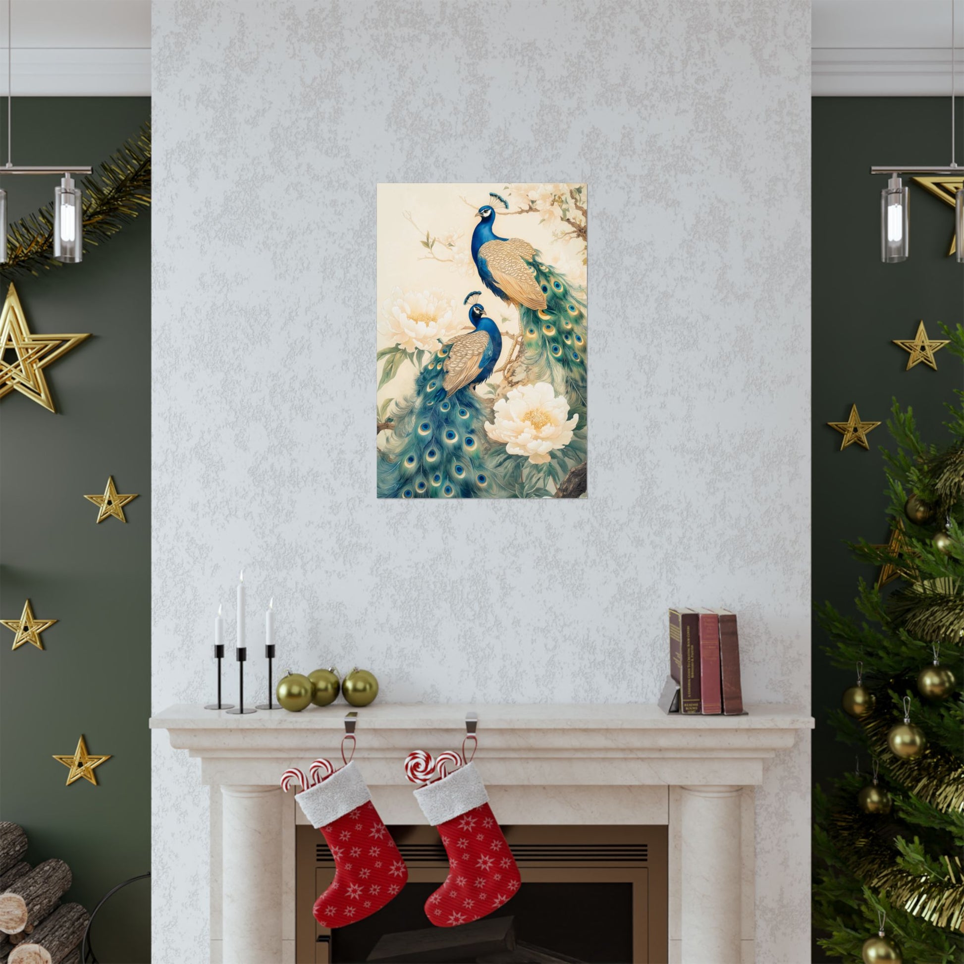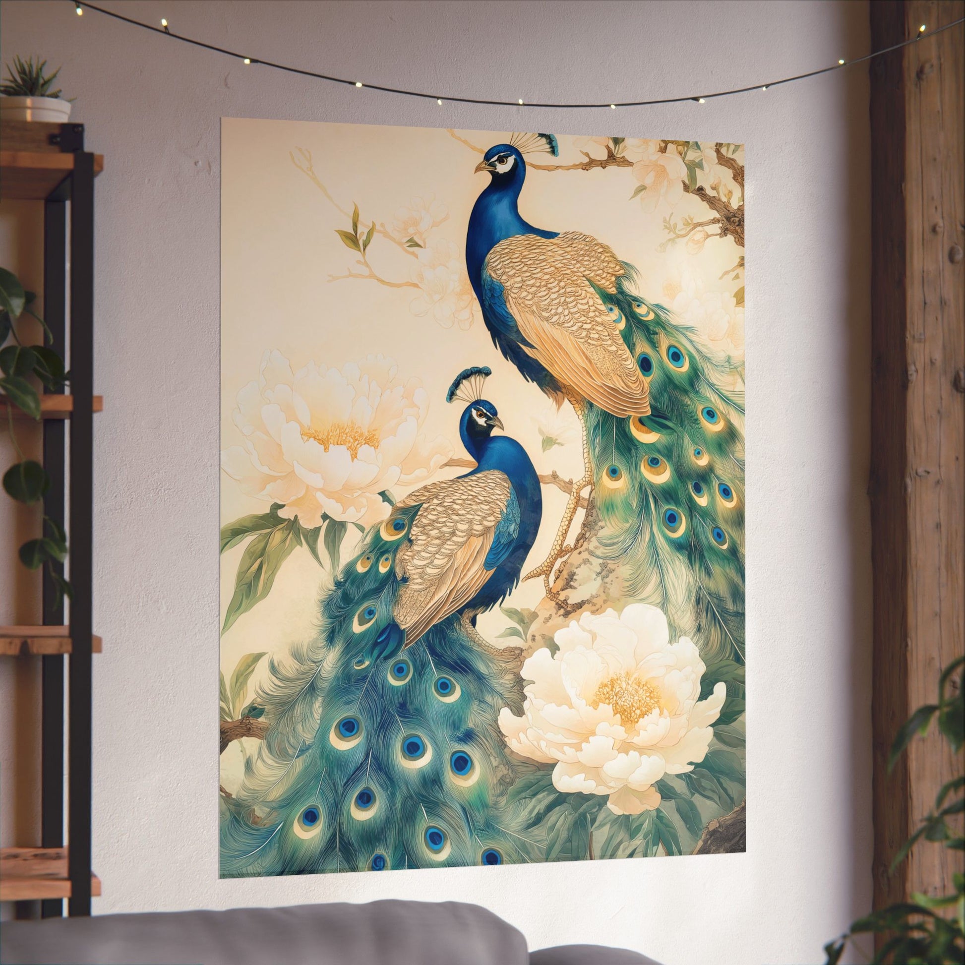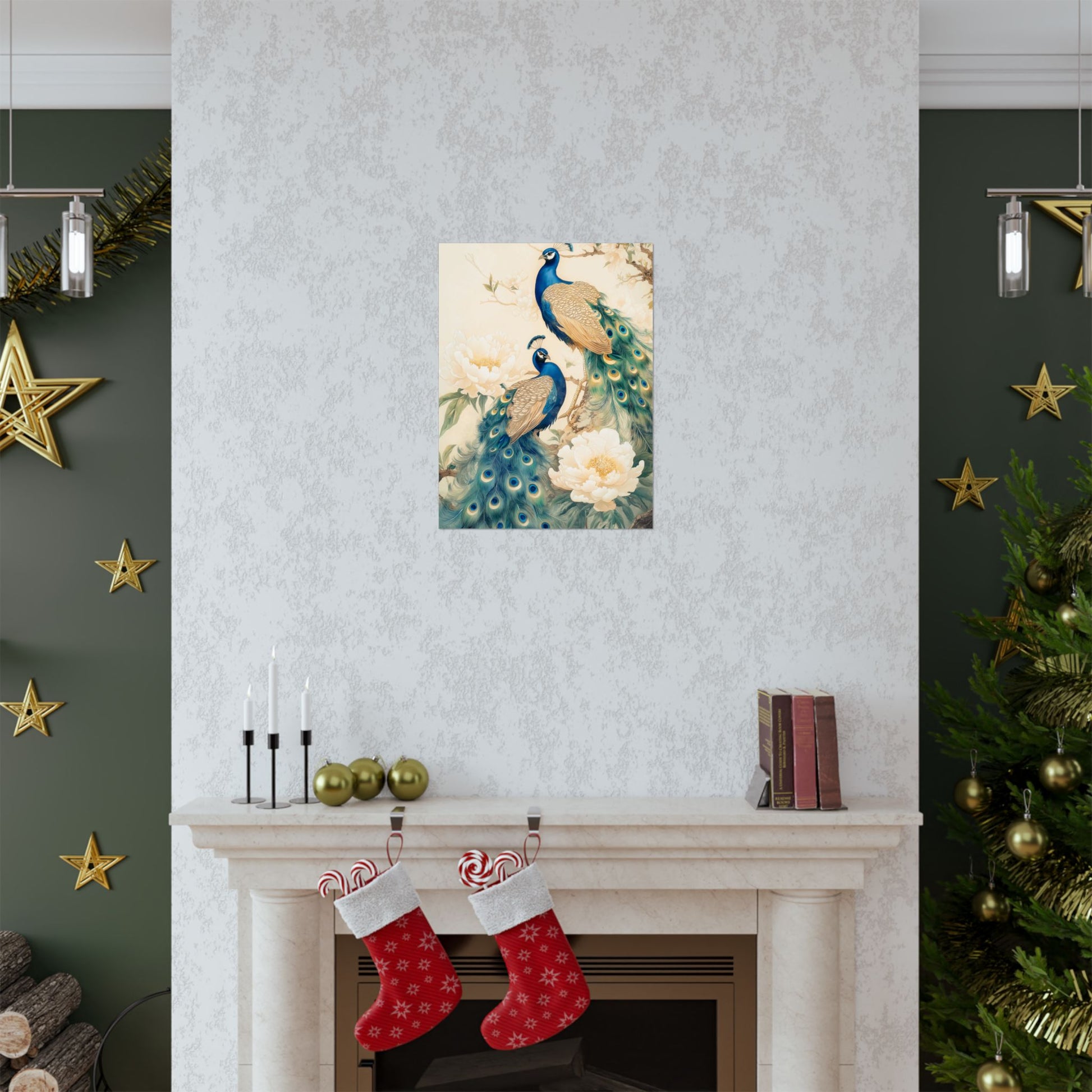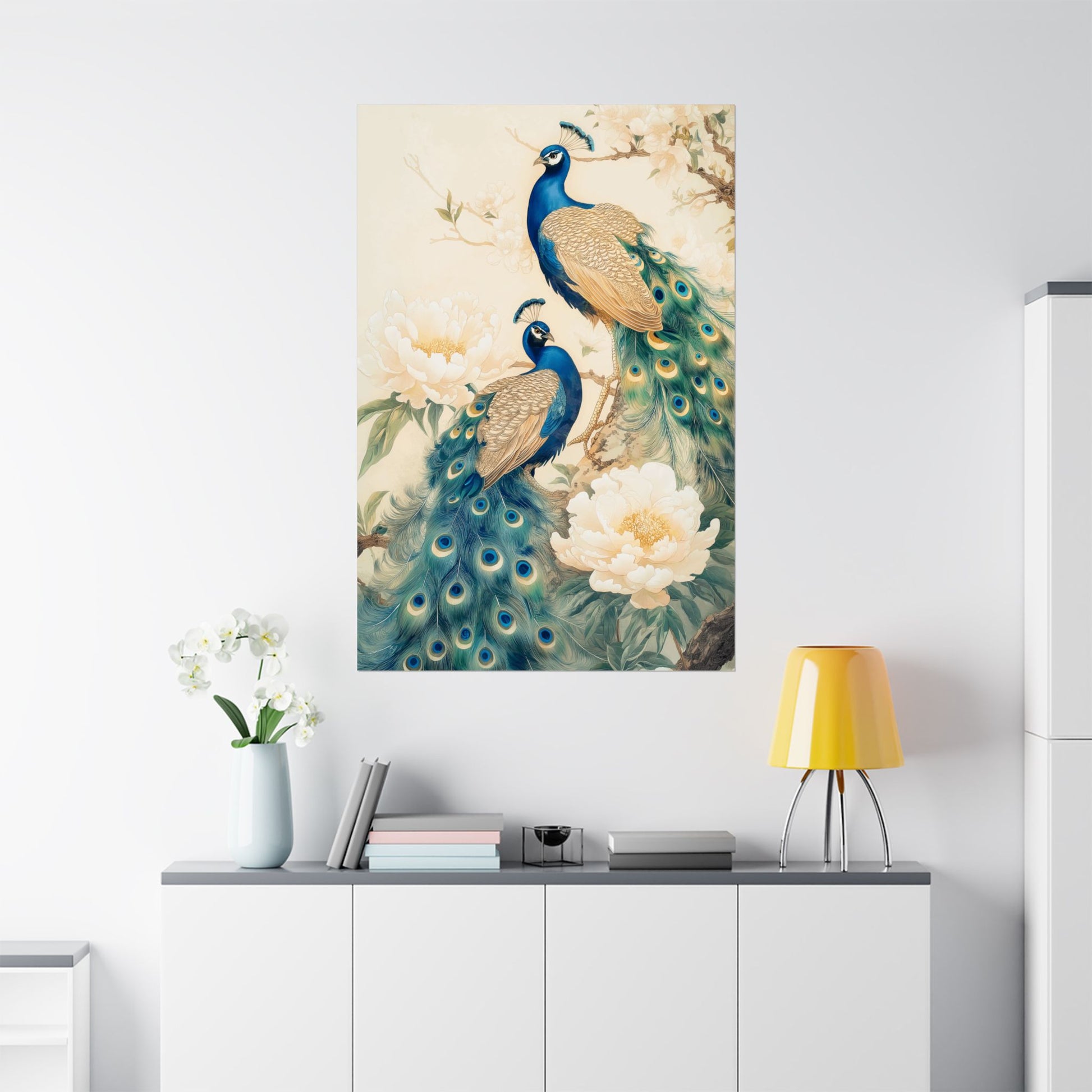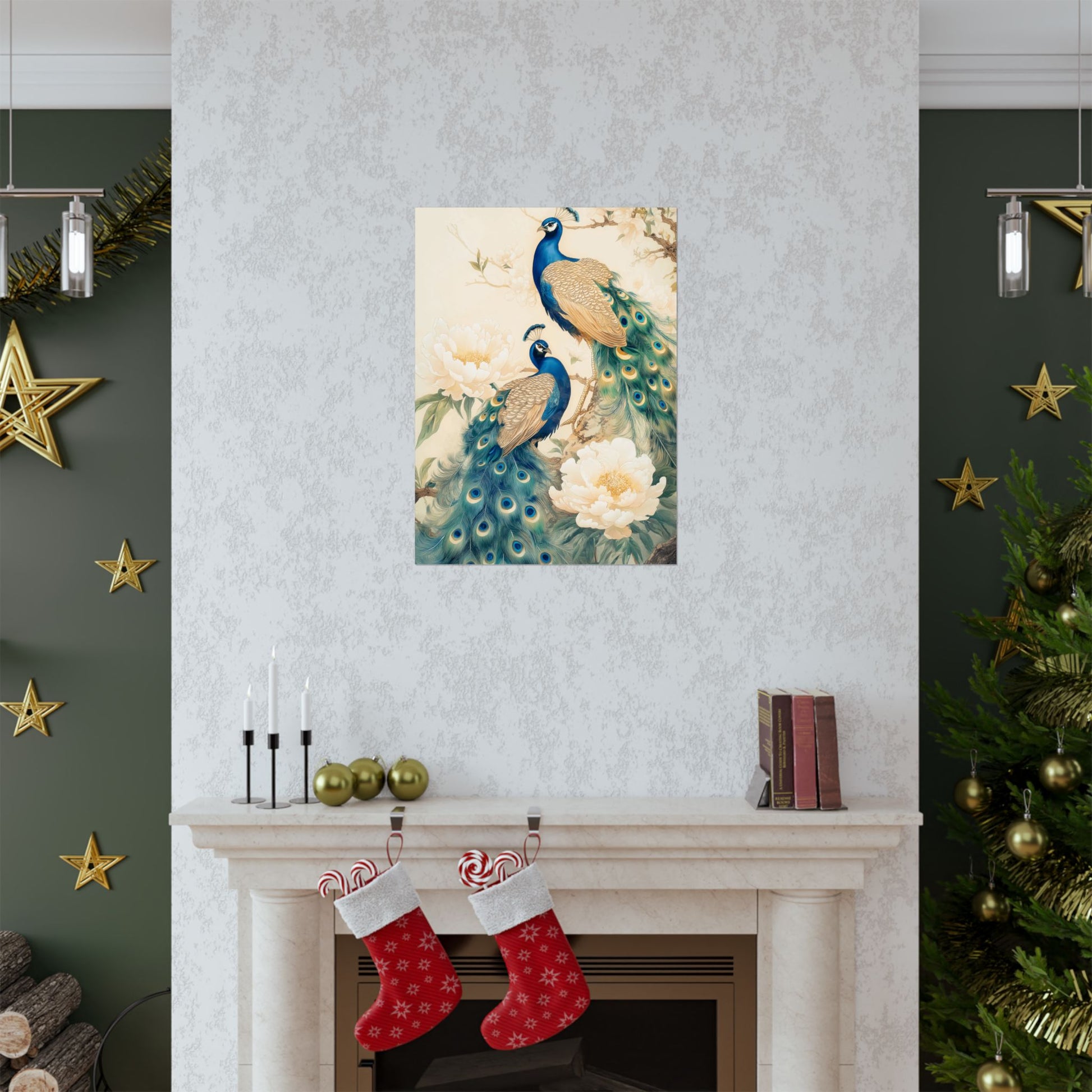 Elevate your home décor with our Matte Vertical Peacocks Posters, a stunning piece of wall art that captures the regal beauty and vibrant colors of peacocks in a modern, artistic design. These elegant print posters feature two majestic peacocks in a vertical orientation, their feathers displayed in intricate detail against a subtle background, adding a touch of sophistication and charm to any room. These custom posters, made with museum-grade paper, translate any digital artwork into exquisite real-life décor.