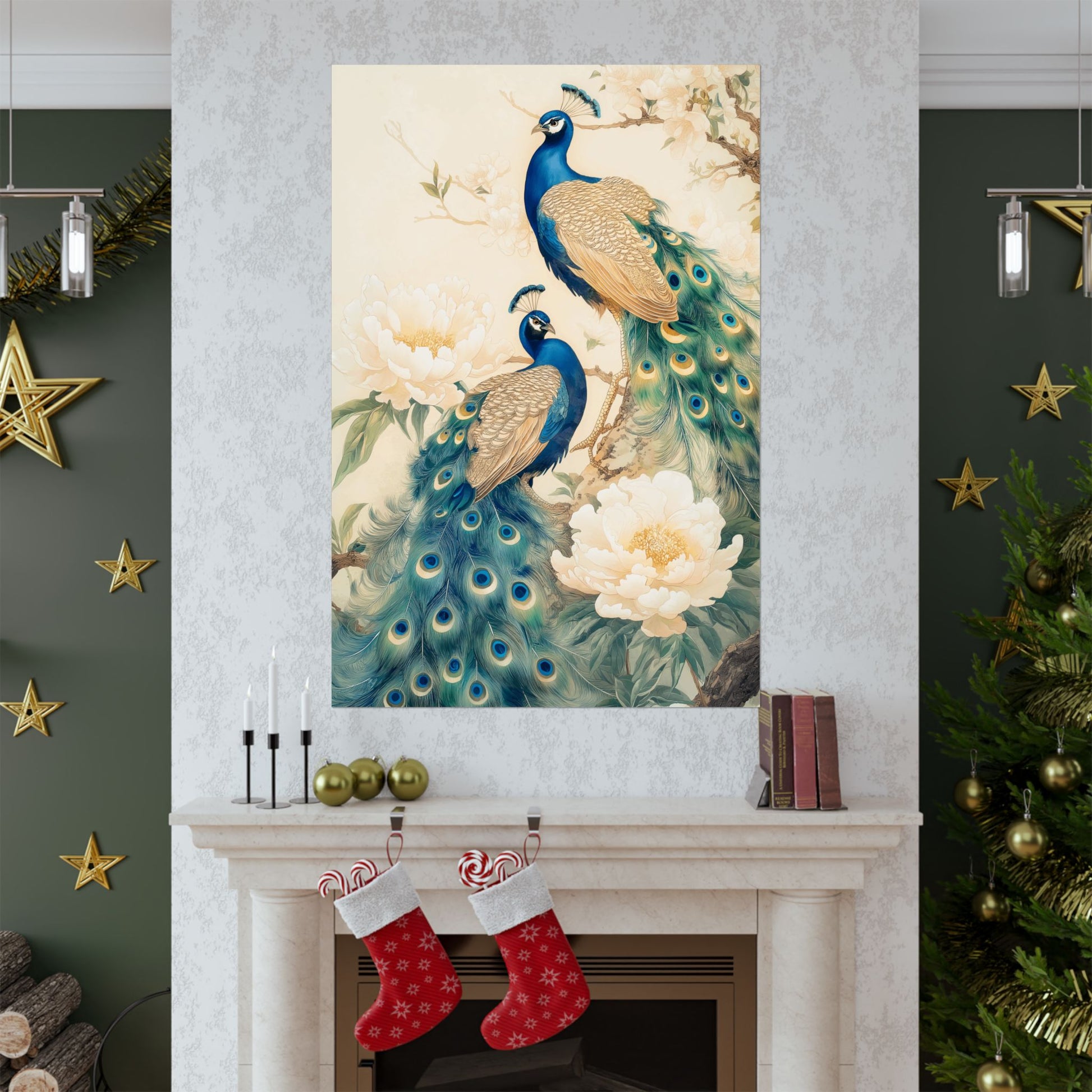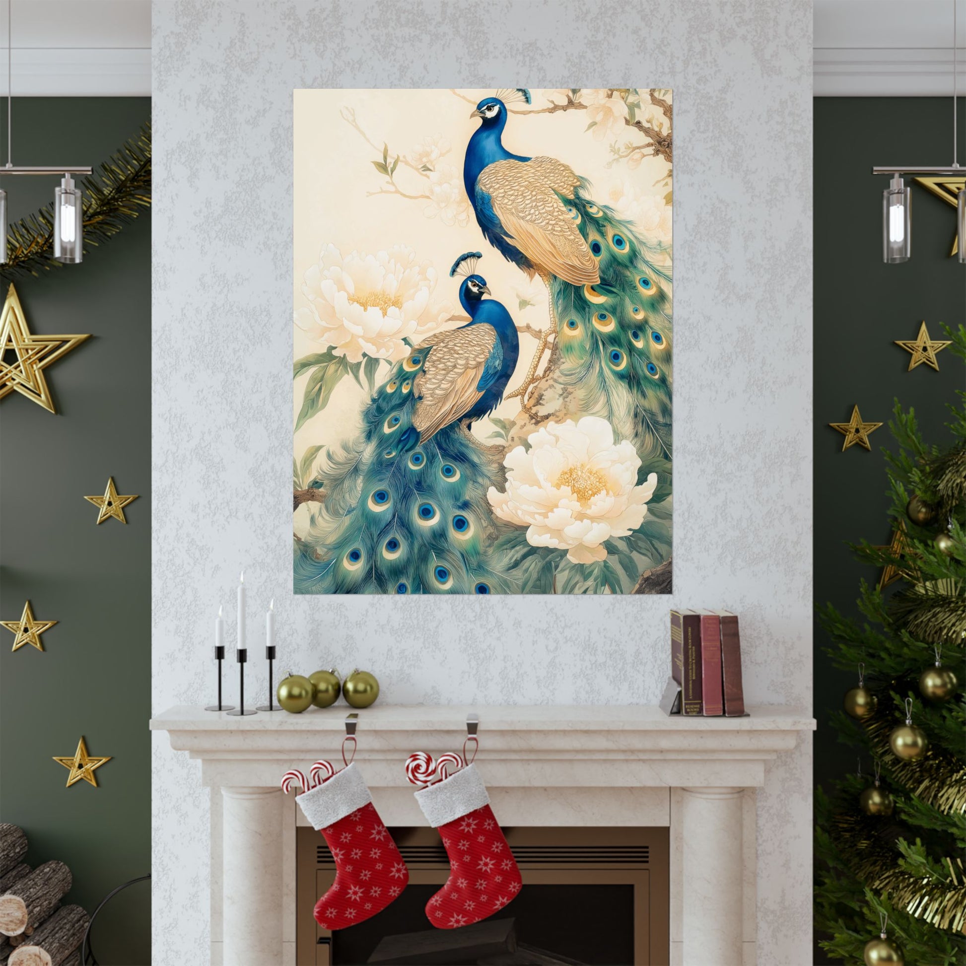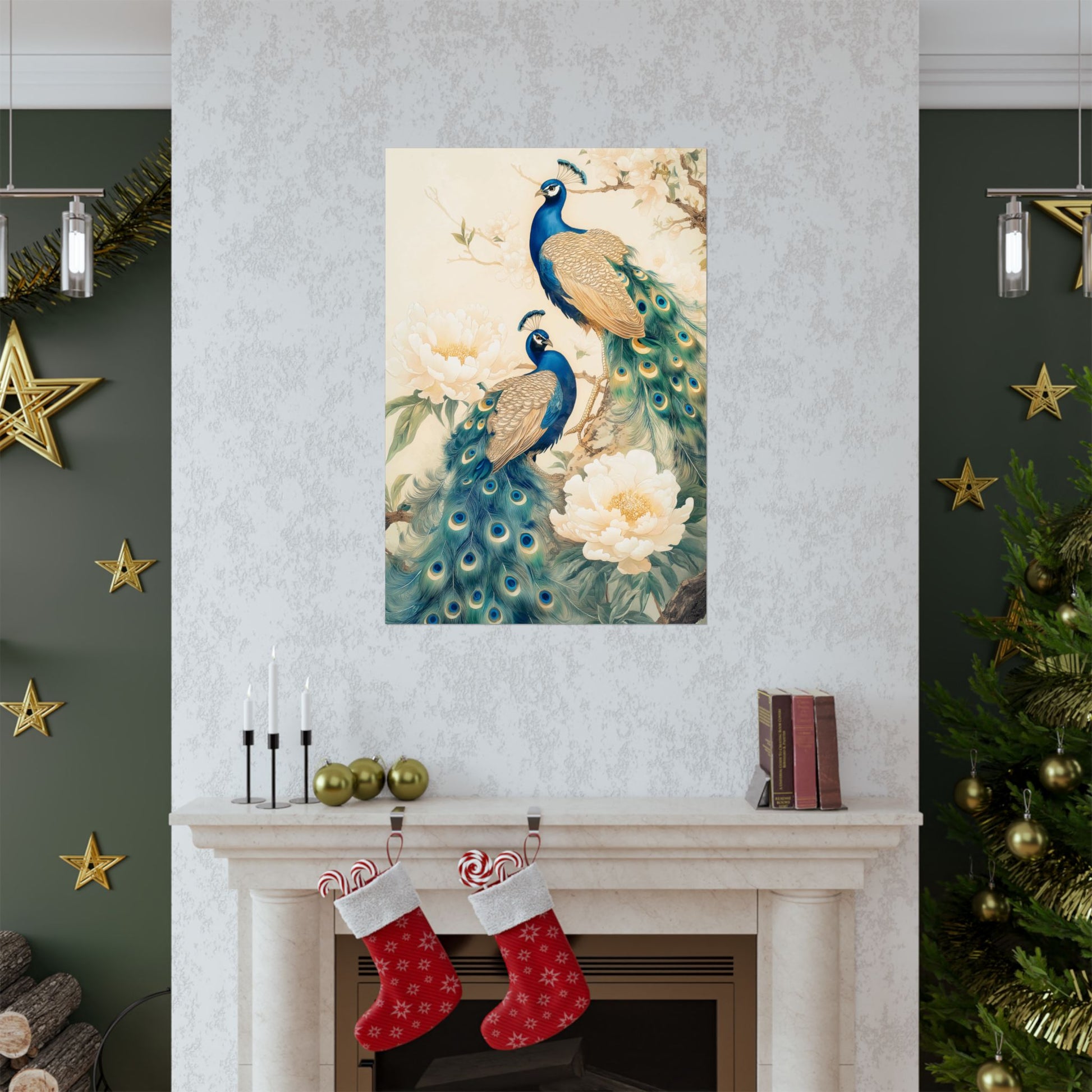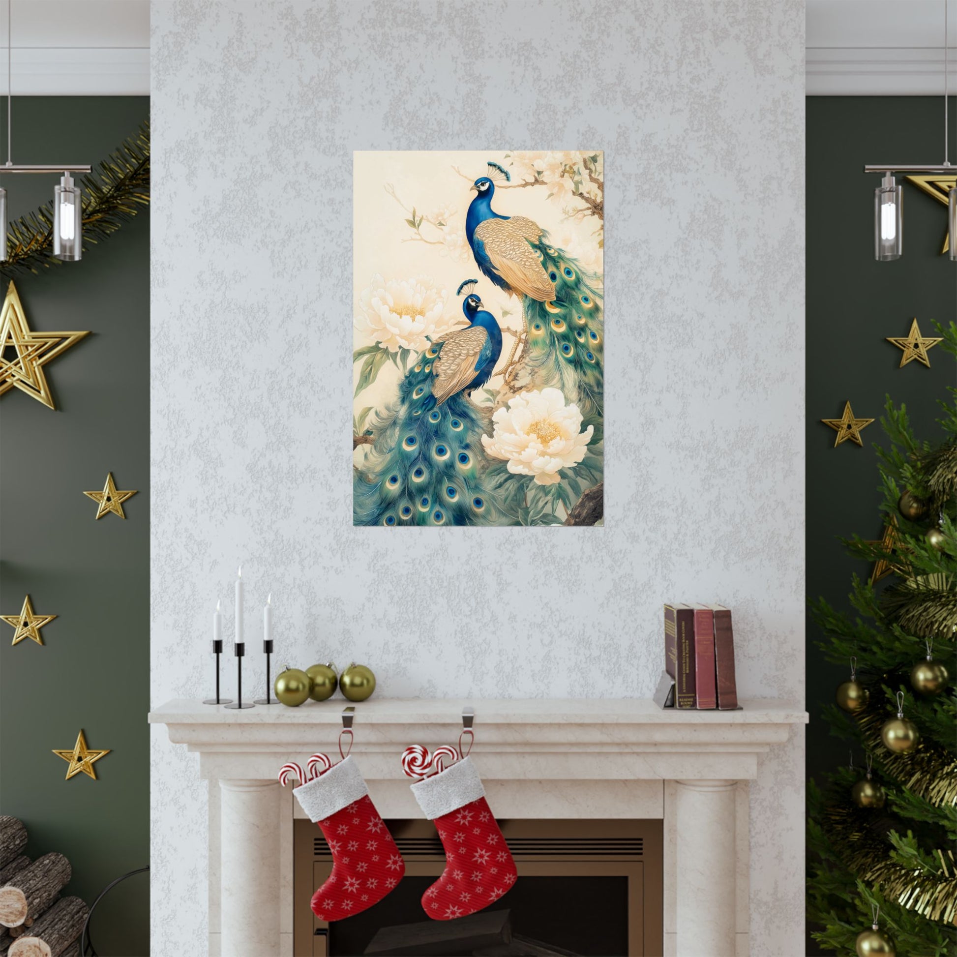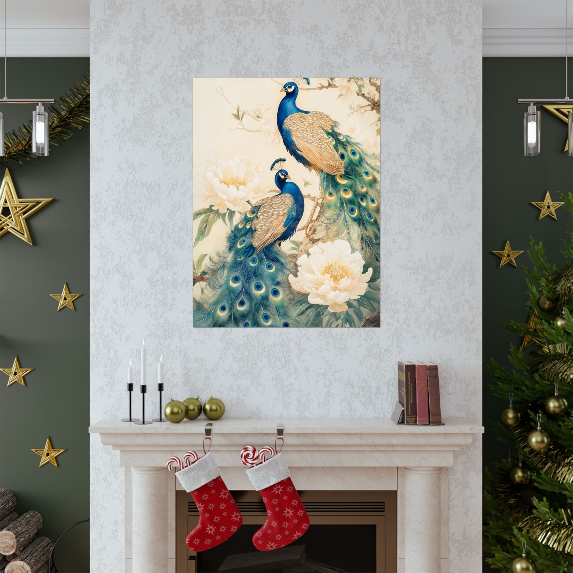 Elevate your home décor with our Matte Vertical Peacocks Posters, a stunning piece of wall art that captures the regal beauty and vibrant colors of peacocks in a modern, artistic design. These elegant print posters feature two majestic peacocks in a vertical orientation, their feathers displayed in intricate detail against a subtle background, adding a touch of sophistication and charm to any room. These custom posters, made with museum-grade paper, translate any digital artwork into exquisite real-life décor.