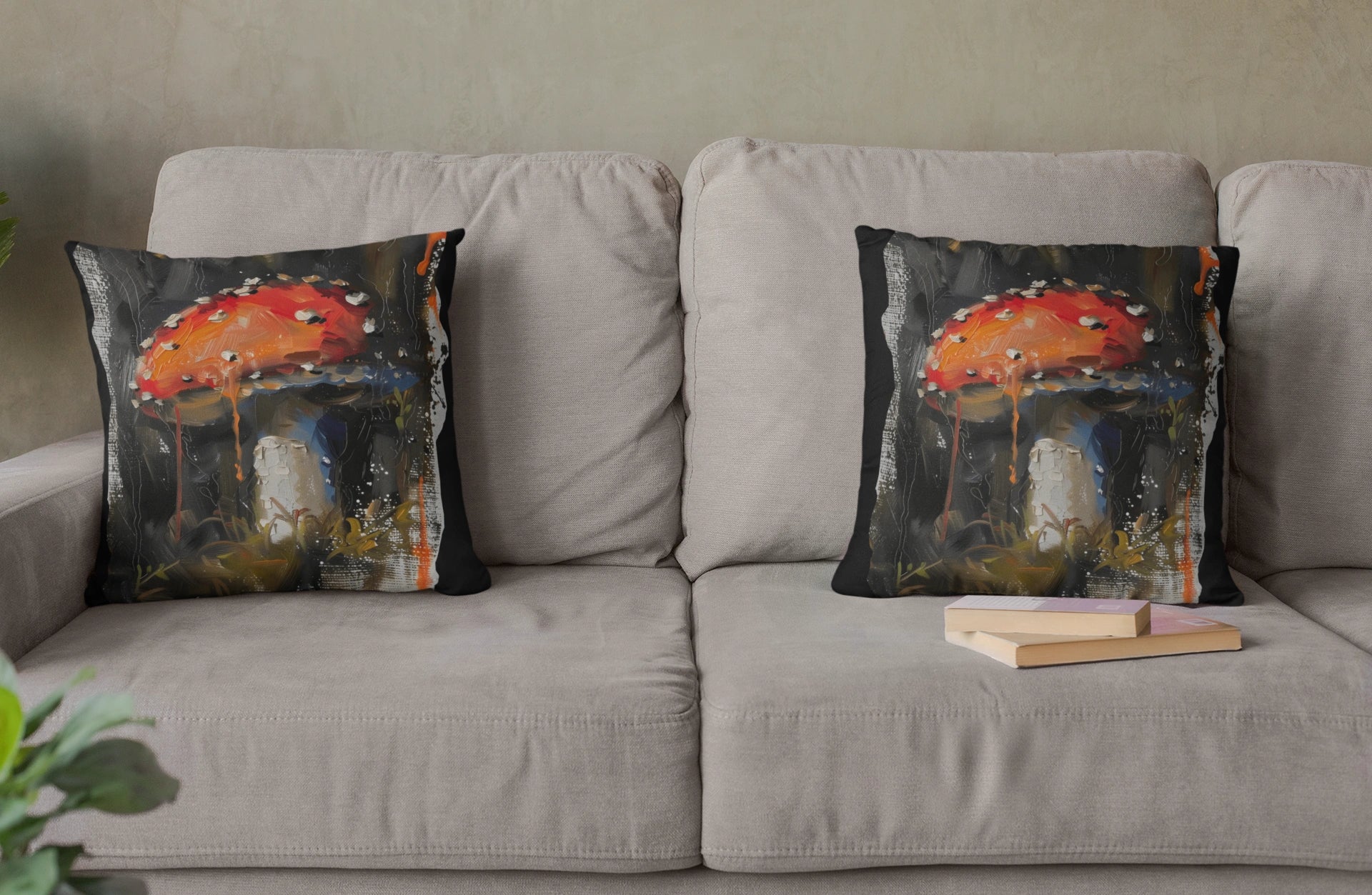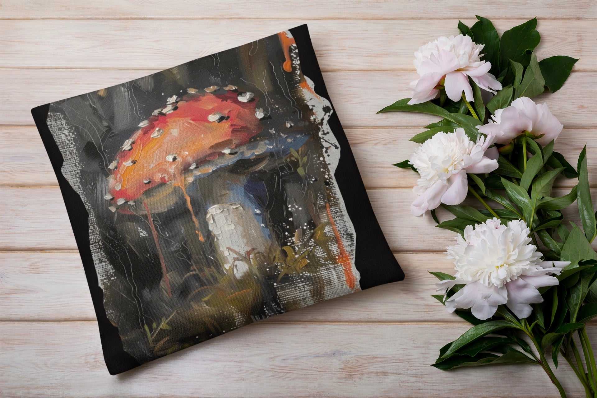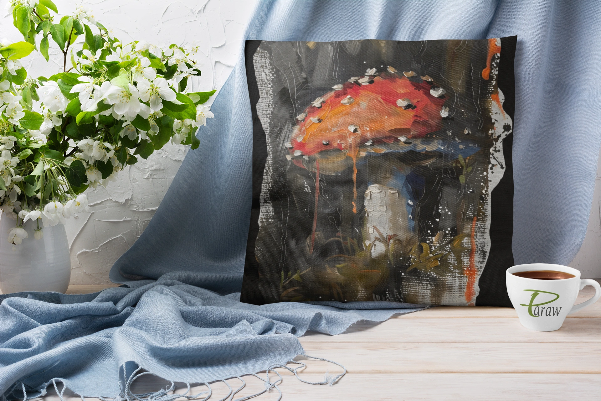 Enhance your living space with our exquisite Square Oil Colored Cushion/Pillow adorned with a captivating Mushroom-inspired design and black background. Crafted with care, this vibrant cushion features captivating hues and a unique design inspired by artistic expression. Elevate your décor with a touch of creativity and comfort. Perfect for adding a pop of color to any room, our cushion will impress guests and create a cozy atmosphere. Explore our collection and discover the perfect accent piece for your home today!