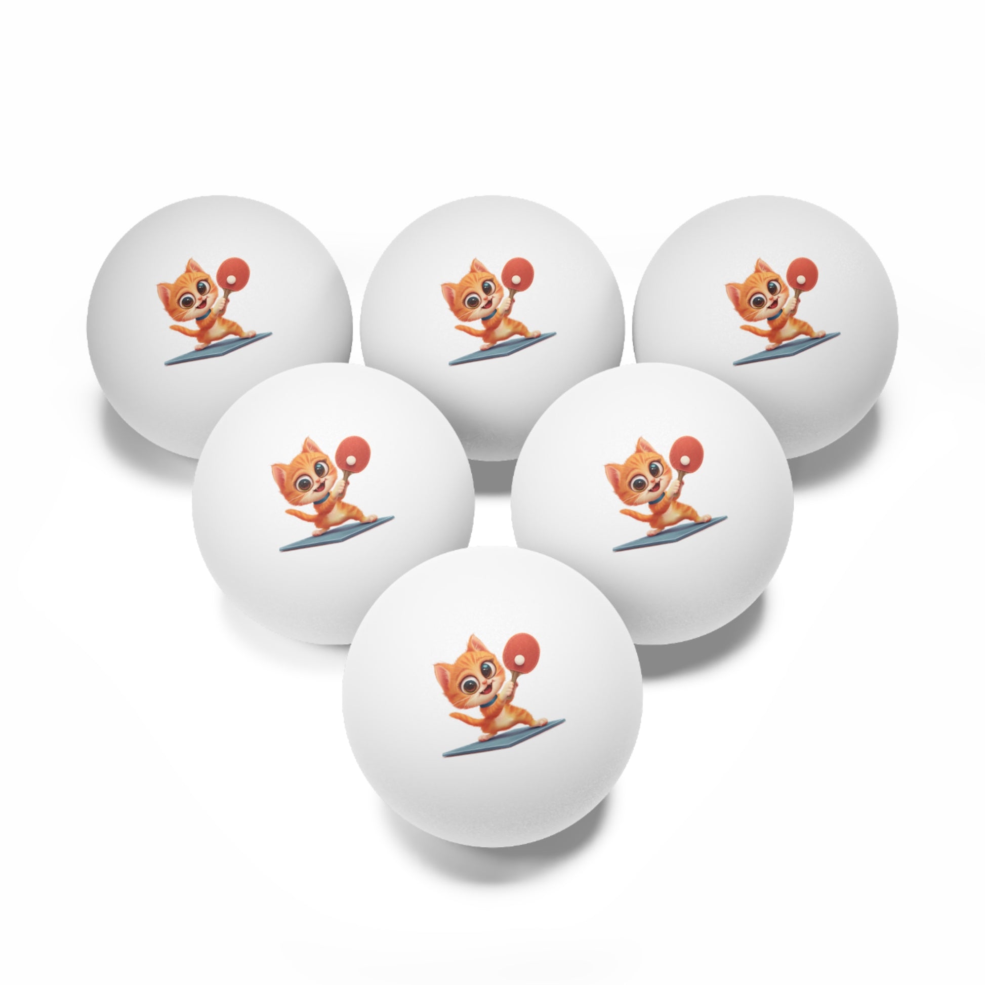 Ping Pong Balls, 6 pcs - Cute Cat Playing Ping Pong Design Balls