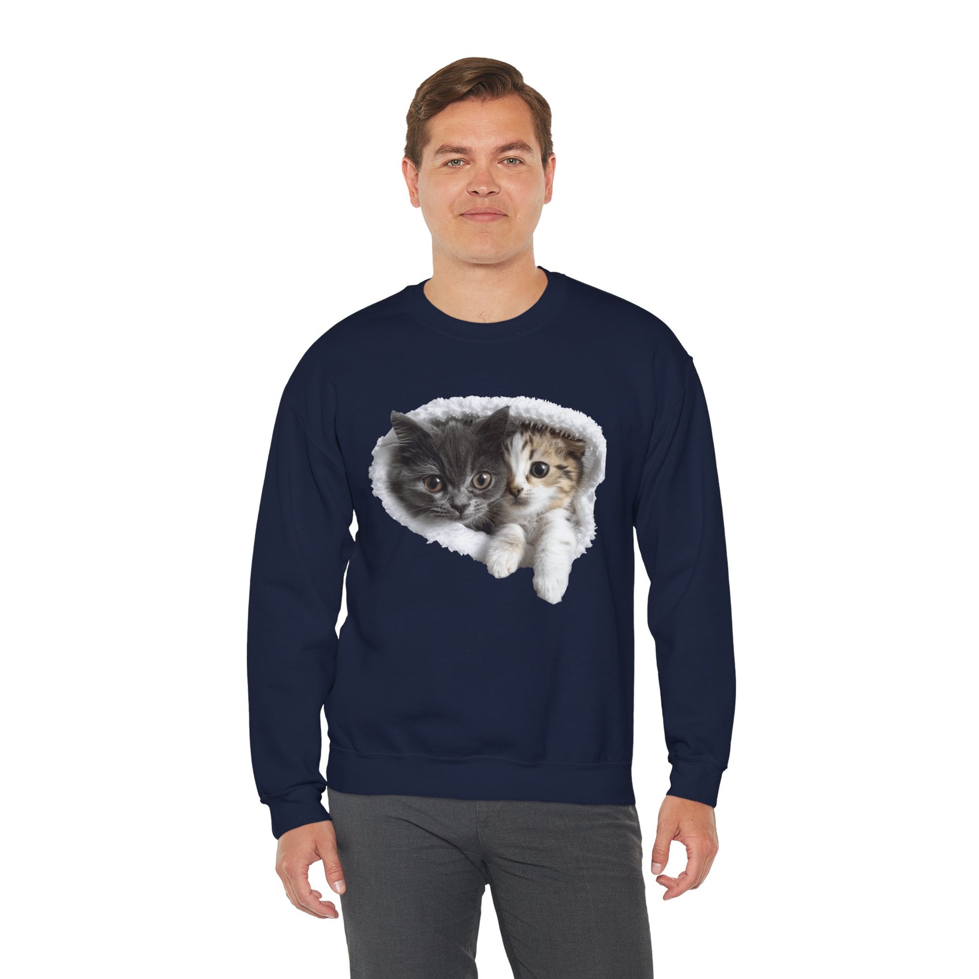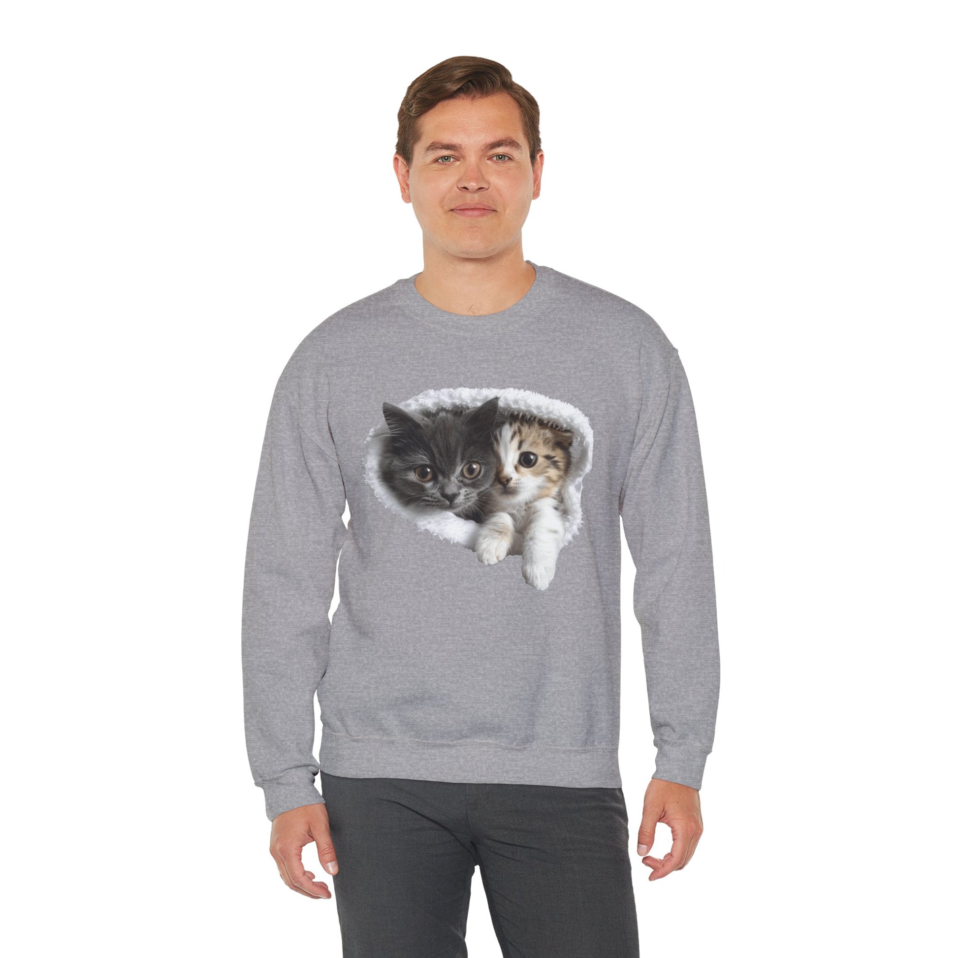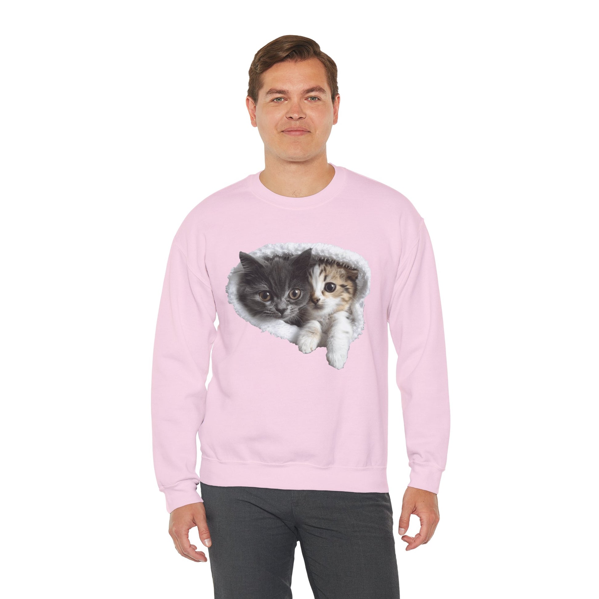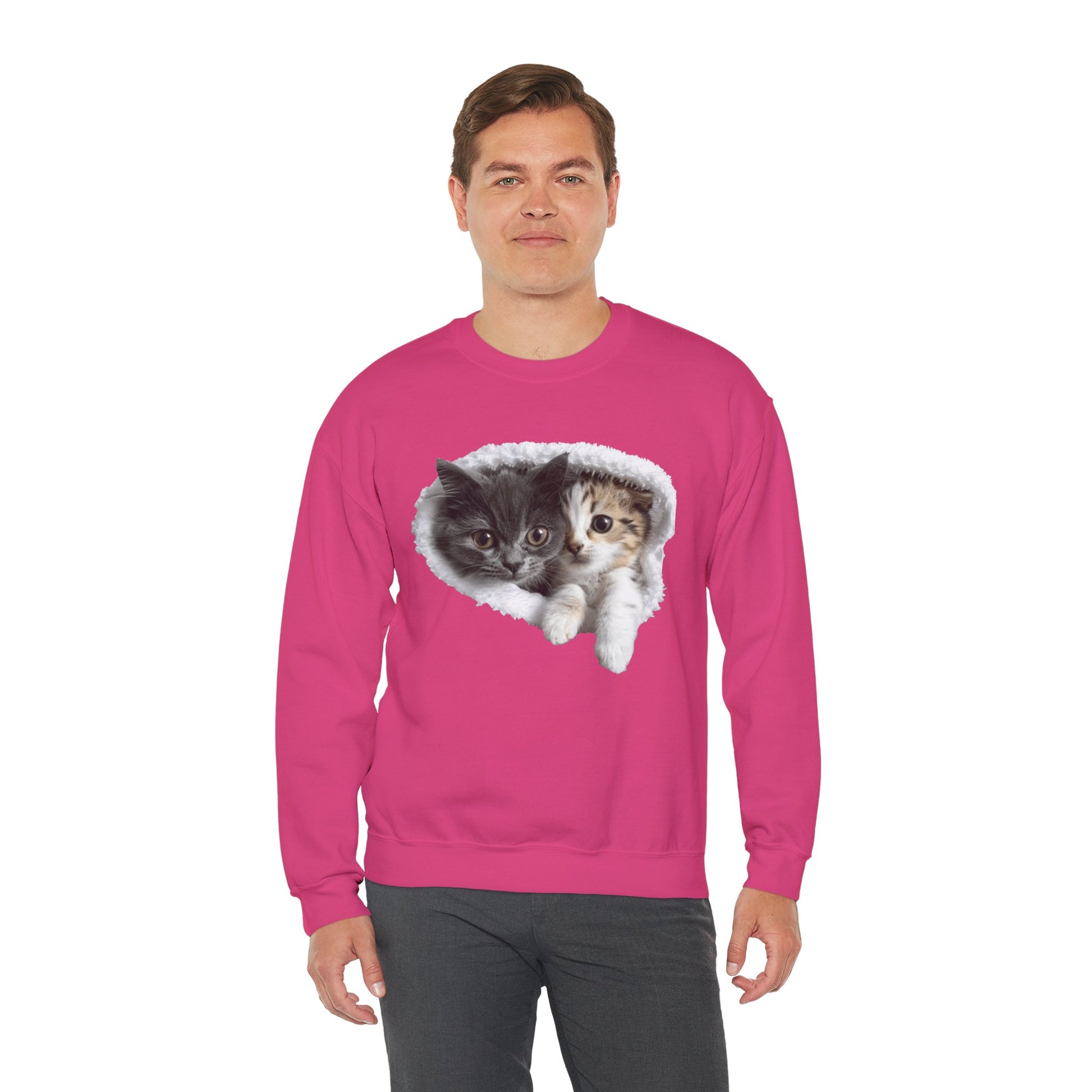 Channel your inner feline friend with our Unisex Heavy Blend™ Crewneck Sweatshirt! This sweatshirt combines comfort and charm, showcasing a playful and heartwarming illustration of cute cats that cat lovers will adore. Whether you're lounging at home or running errands, this sweatshirt is sure to keep you warm and stylish.