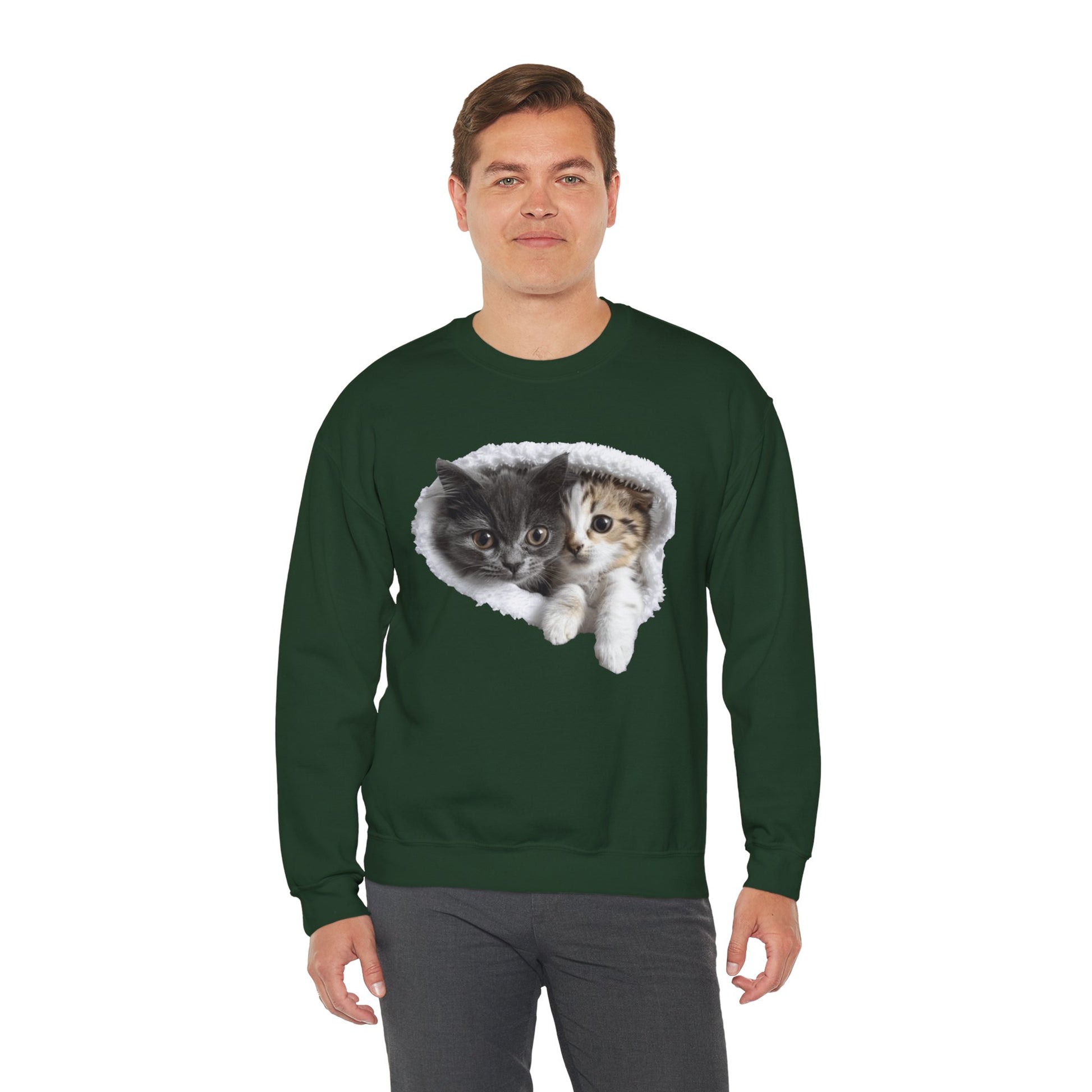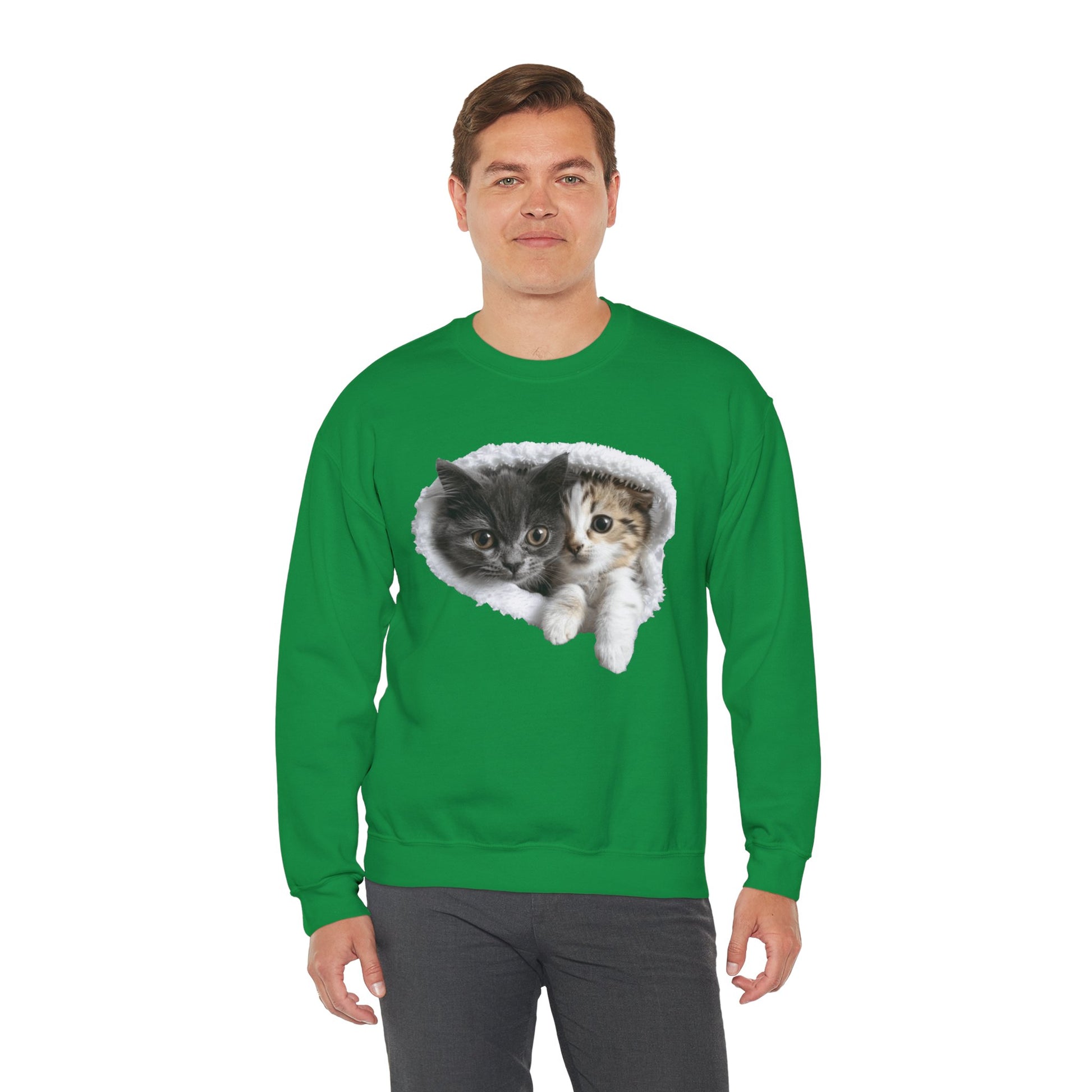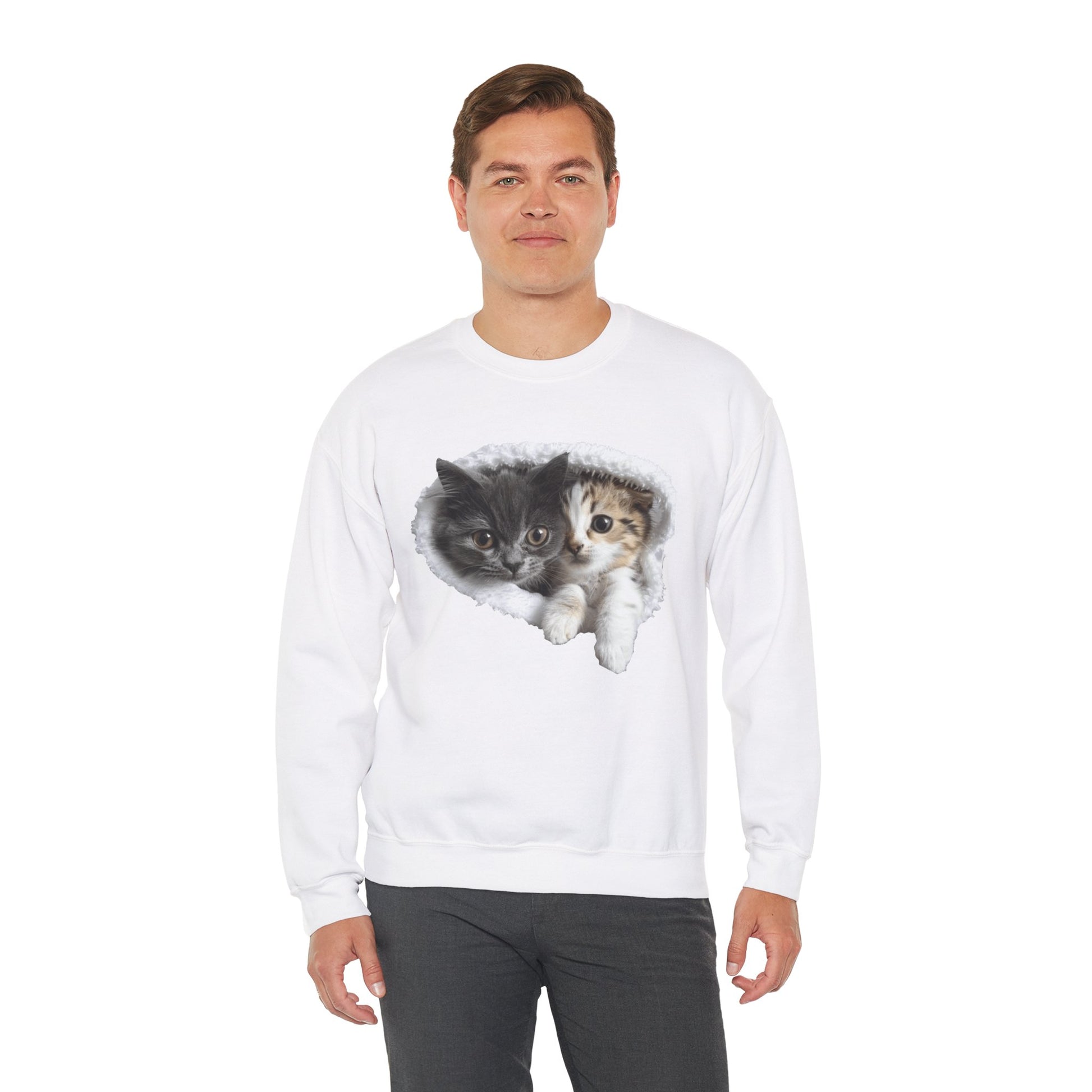 Channel your inner feline friend with our Unisex Heavy Blend™ Crewneck Sweatshirt! This sweatshirt combines comfort and charm, showcasing a playful and heartwarming illustration of cute cats that cat lovers will adore. Whether you're lounging at home or running errands, this sweatshirt is sure to keep you warm and stylish.