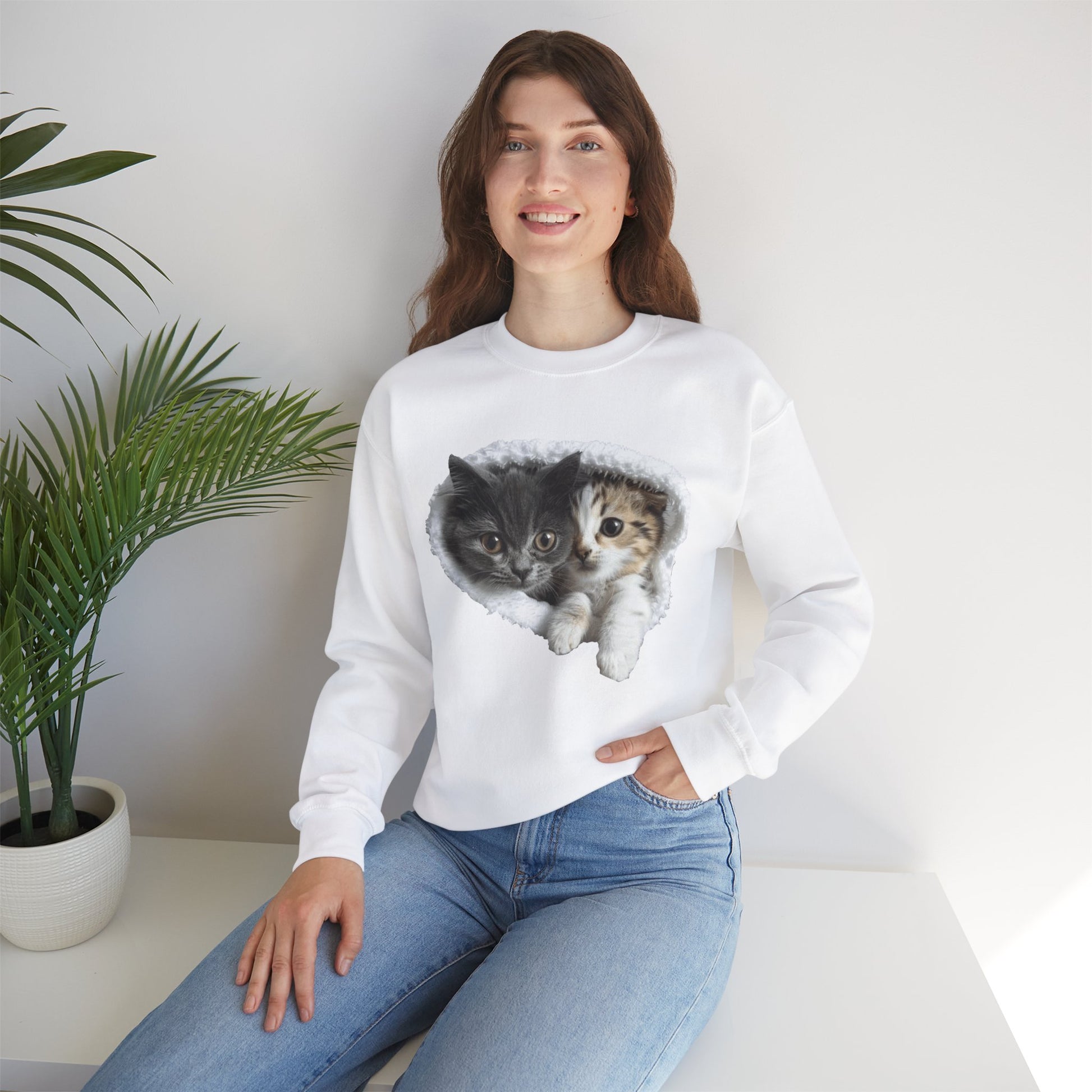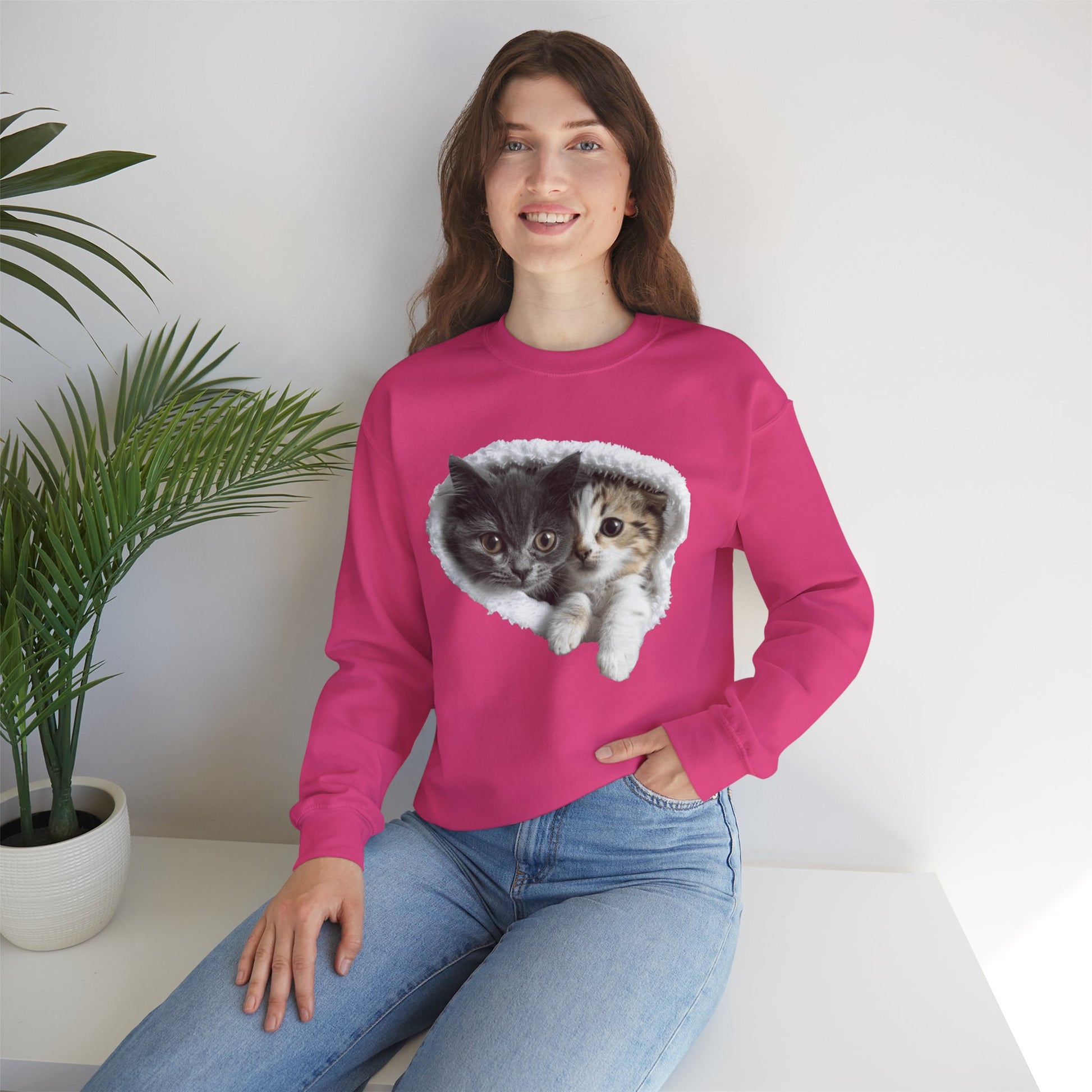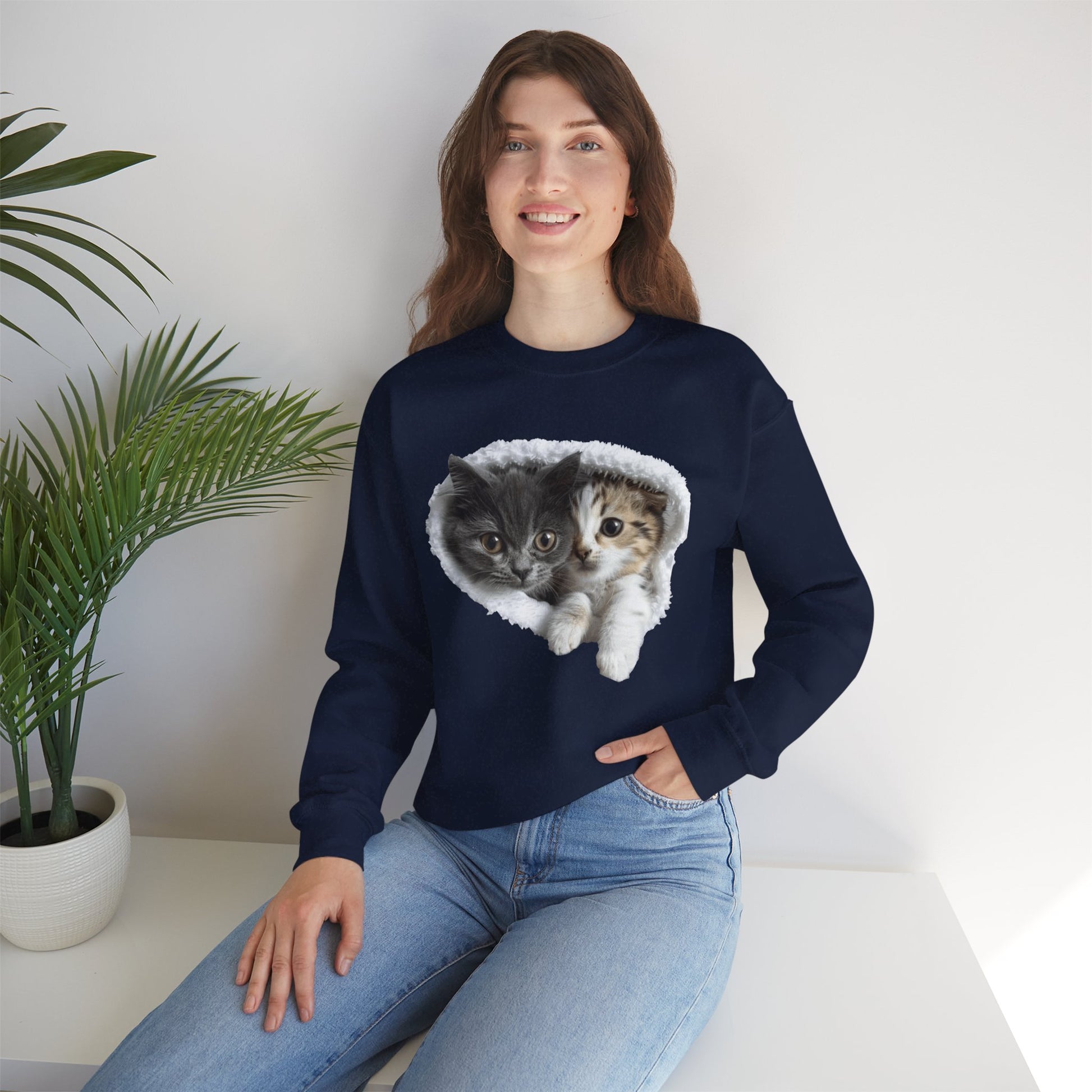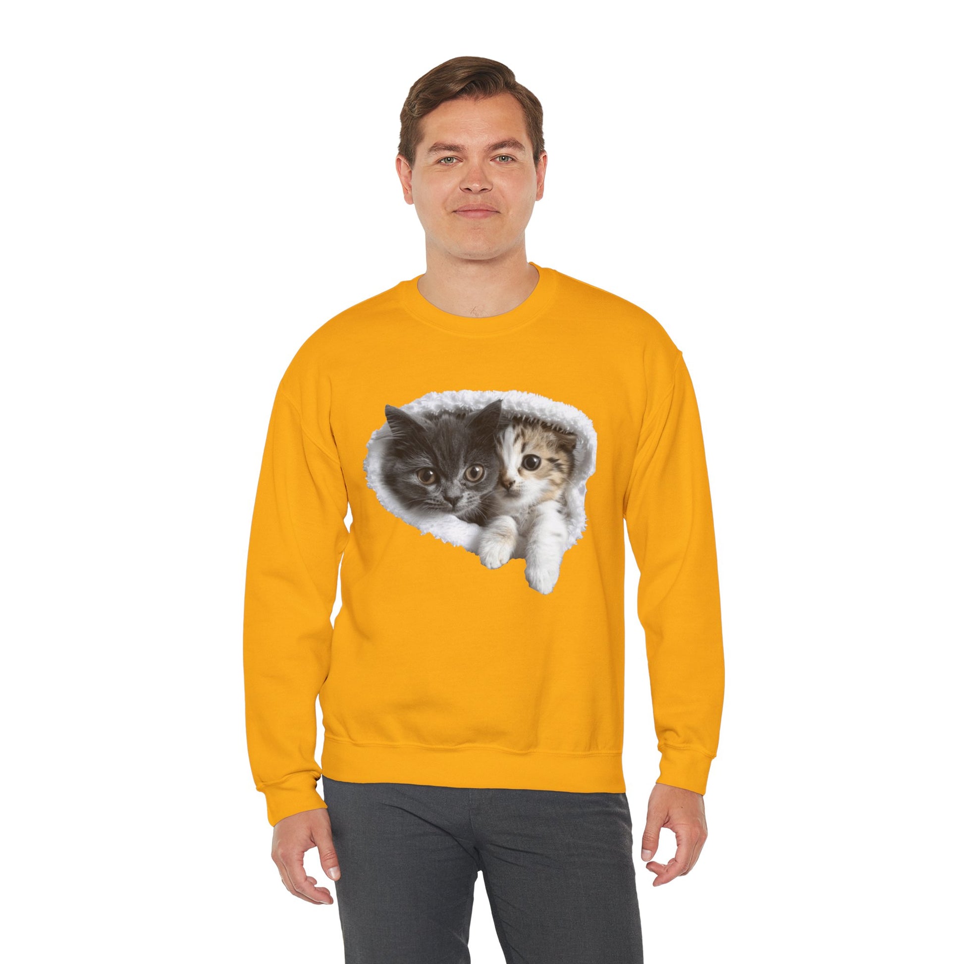 Channel your inner feline friend with our Unisex Heavy Blend™ Crewneck Sweatshirt! This sweatshirt combines comfort and charm, showcasing a playful and heartwarming illustration of cute cats that cat lovers will adore. Whether you're lounging at home or running errands, this sweatshirt is sure to keep you warm and stylish.