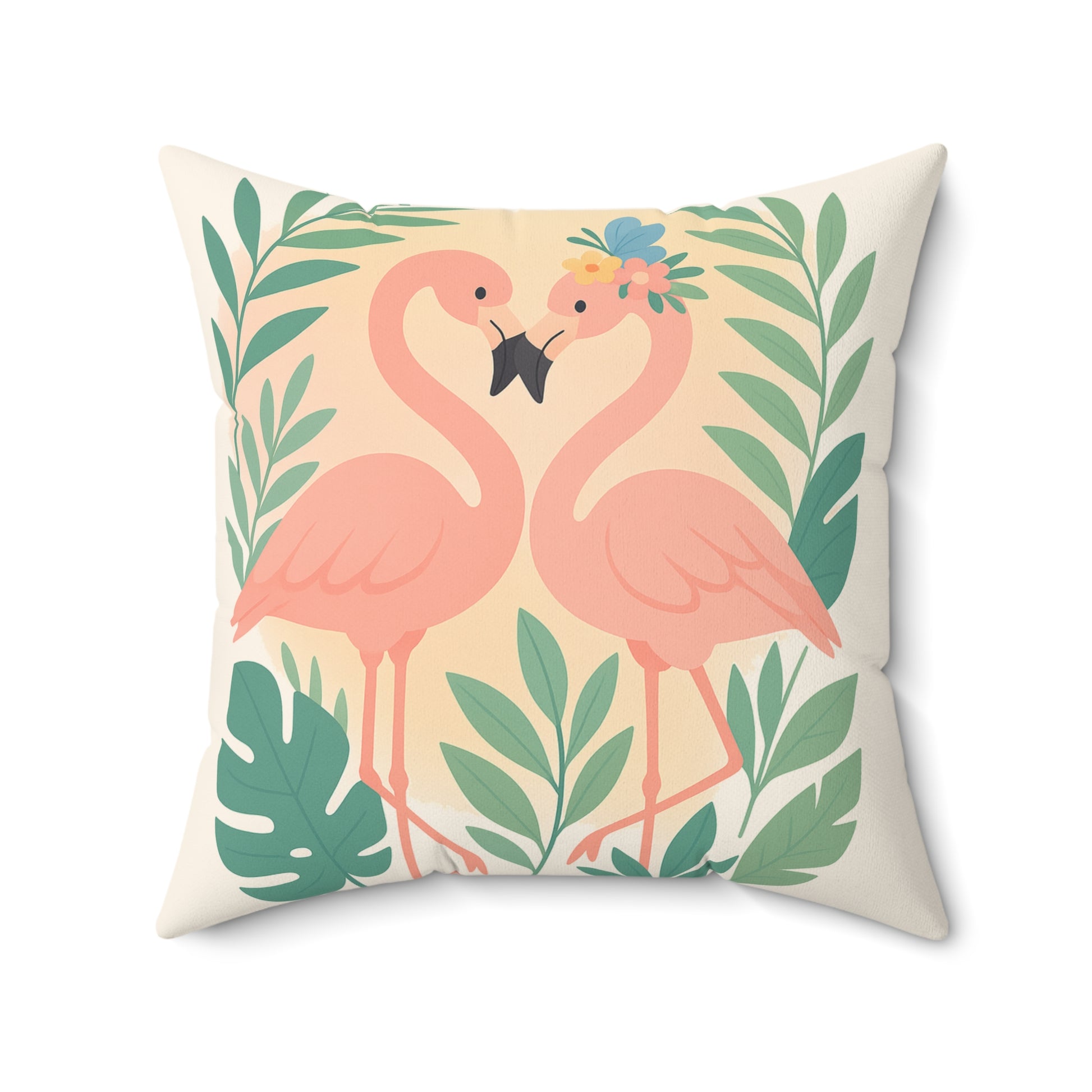 Brighten up your living space with this enchanting square pillow, featuring charming flamingos intertwined in a tropical setting. Its playful design brings a cheerful vibe to any room, making it the perfect accent for your couch, bed, or favorite reading nook. Designed for those who appreciate unique decor, this pillow effortlessly complements both casual and chic styles. Ideal for beach lovers and anyone looking to add a whimsical touch to their home. It makes a delightful gift for housewarmings, birthdays, or even just because. Celebrate moments of joy and warmth during holidays and gatherings with this lovely piece!