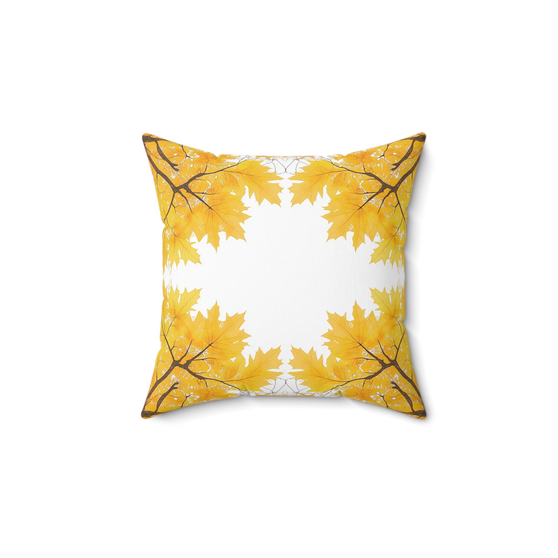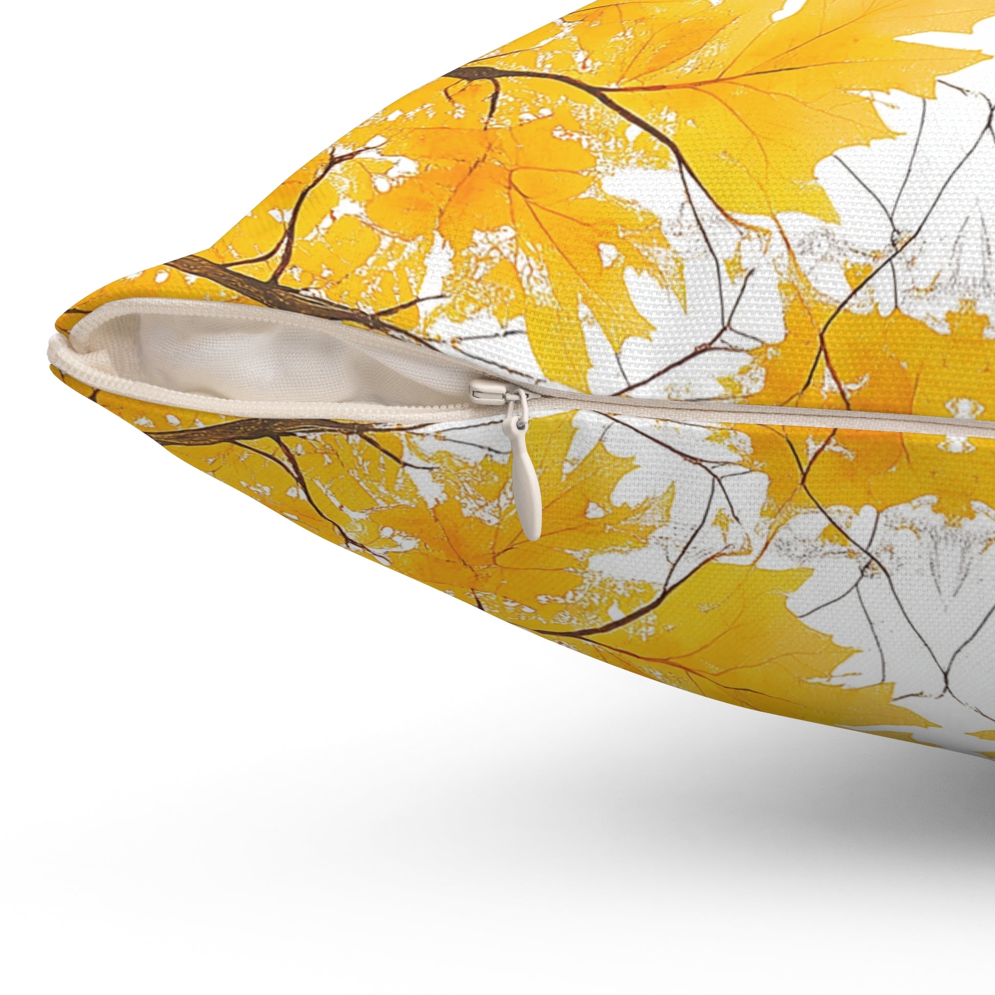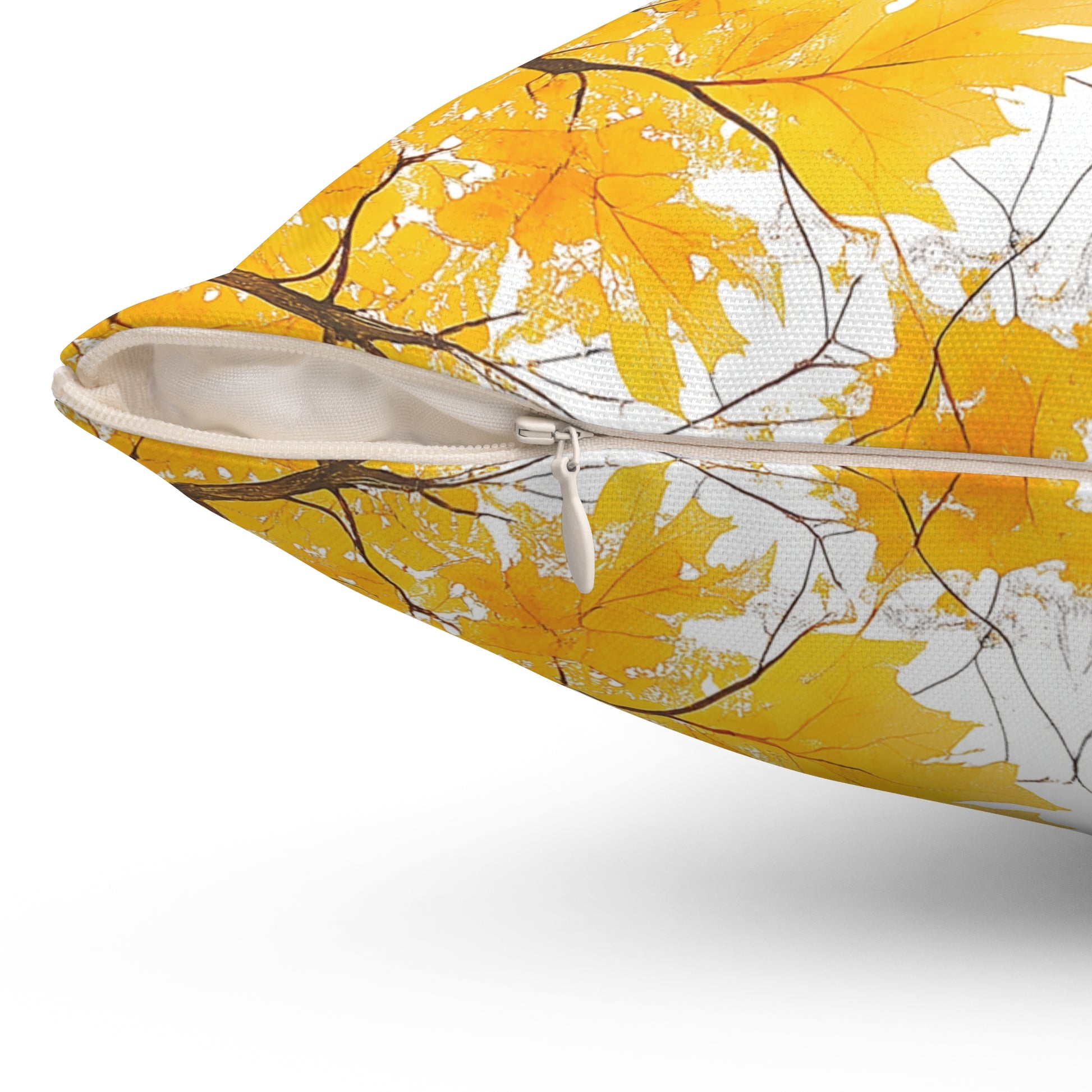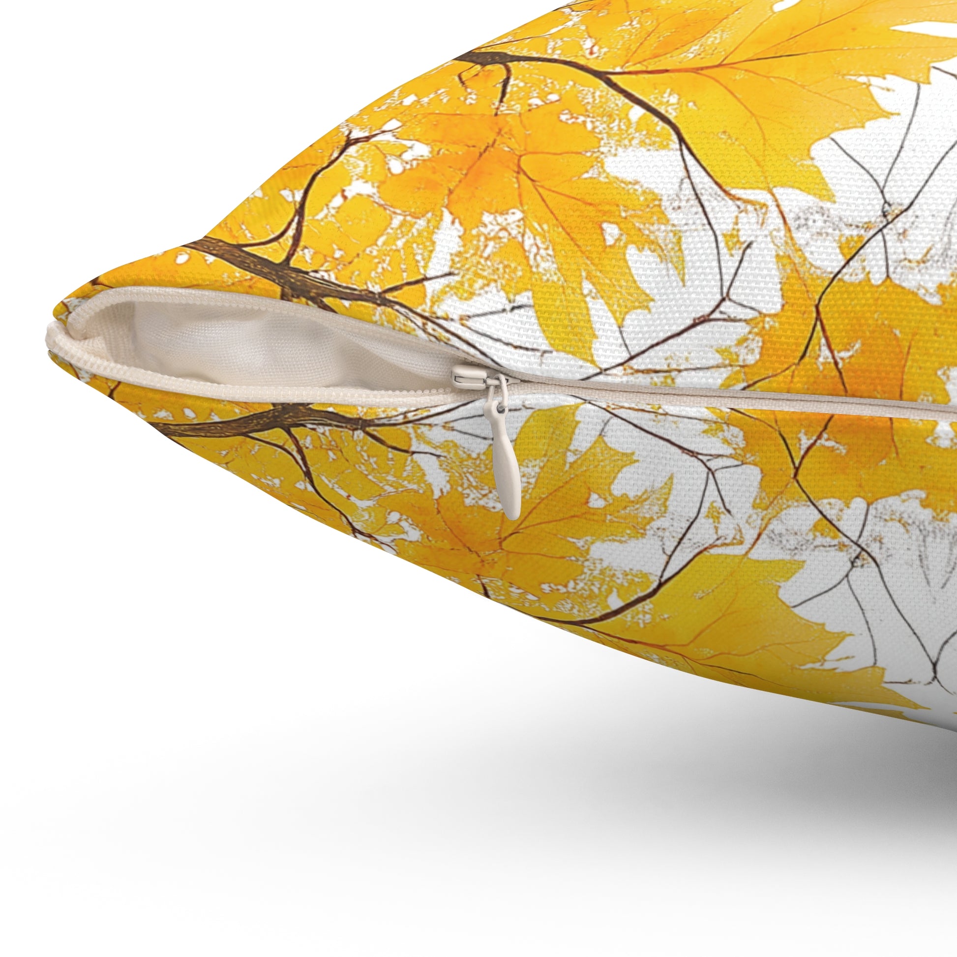 A cozy square pillow featuring a design of yellow leaves, adding a touch of warmth and nature to any room. Perfect for nature lovers and those who appreciate botanical accents in their decor. Ideal for fall and autumn season decorations.