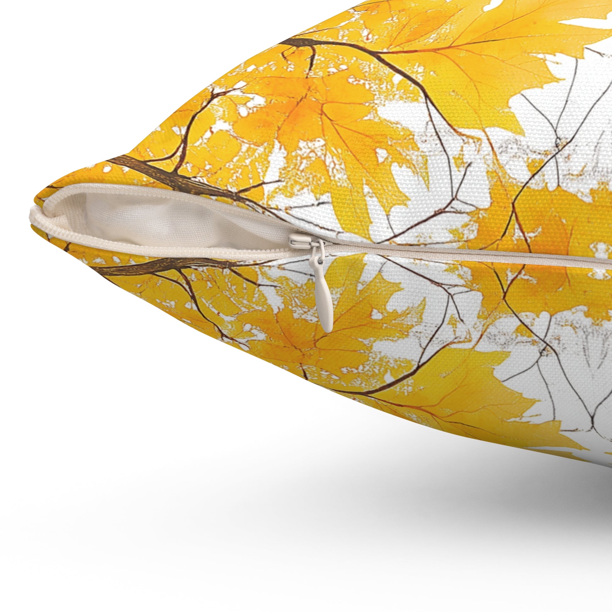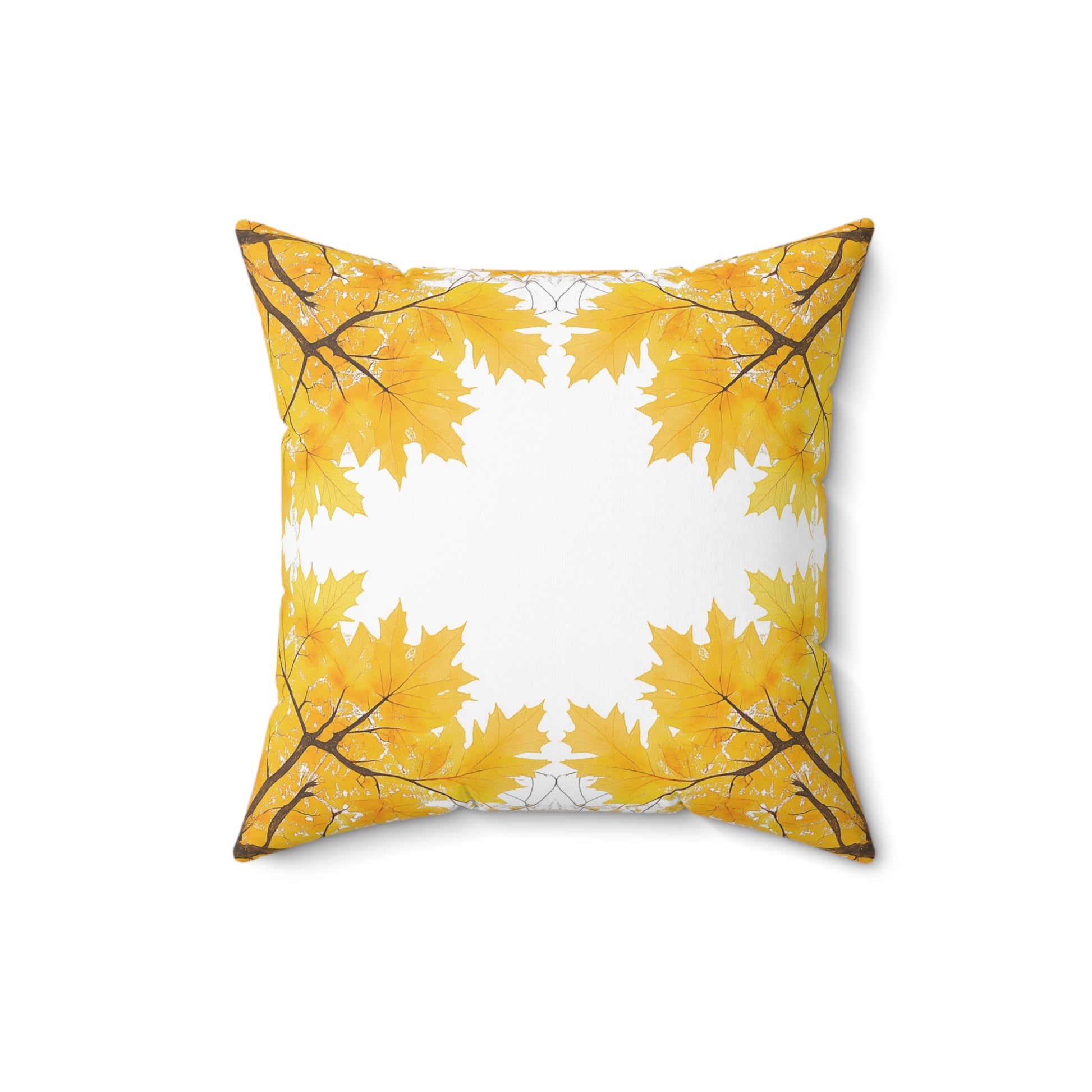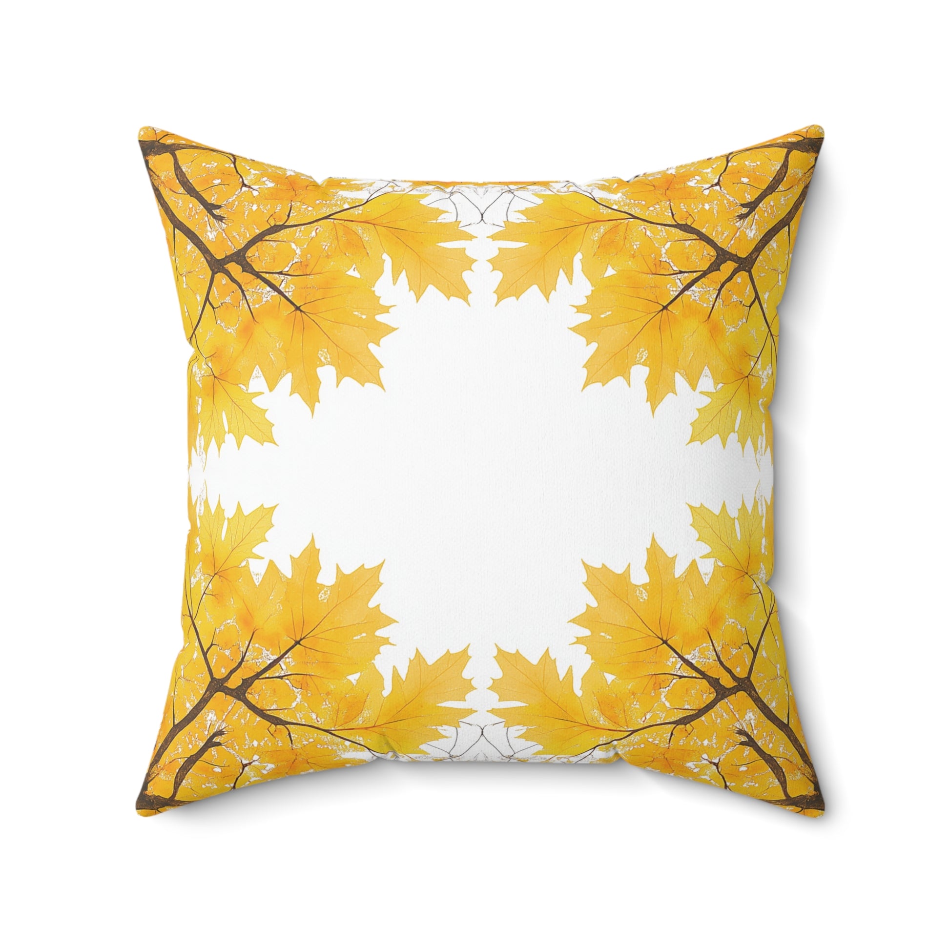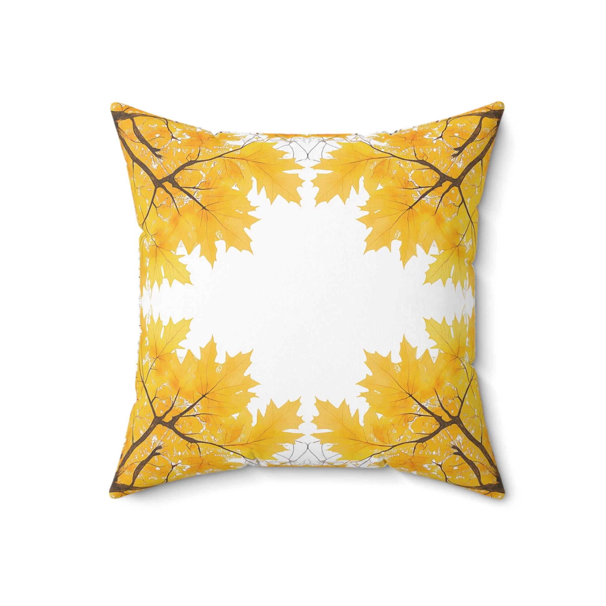 A cozy square pillow featuring a design of yellow leaves, adding a touch of warmth and nature to any room. Perfect for nature lovers and those who appreciate botanical accents in their decor. Ideal for fall and autumn season decorations.