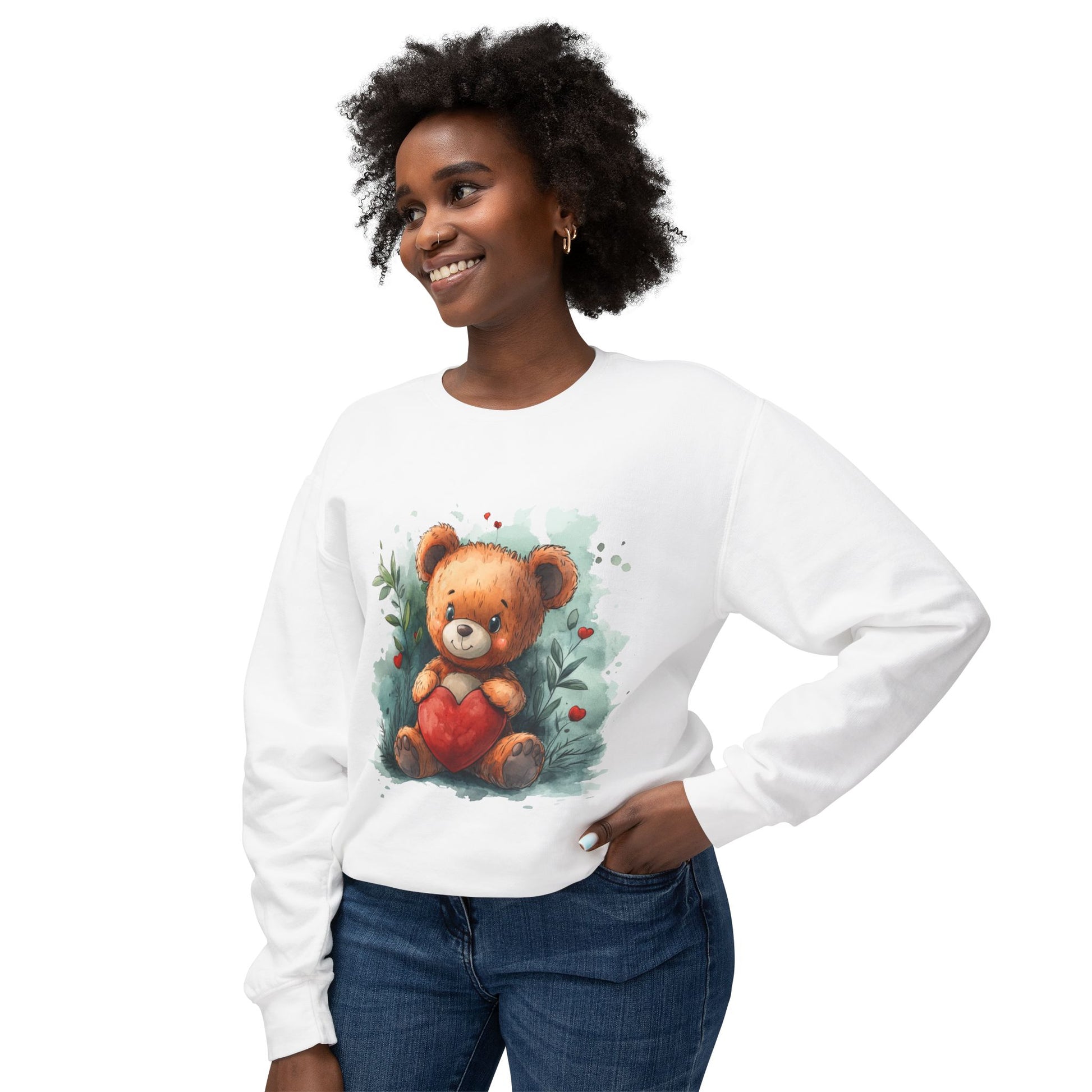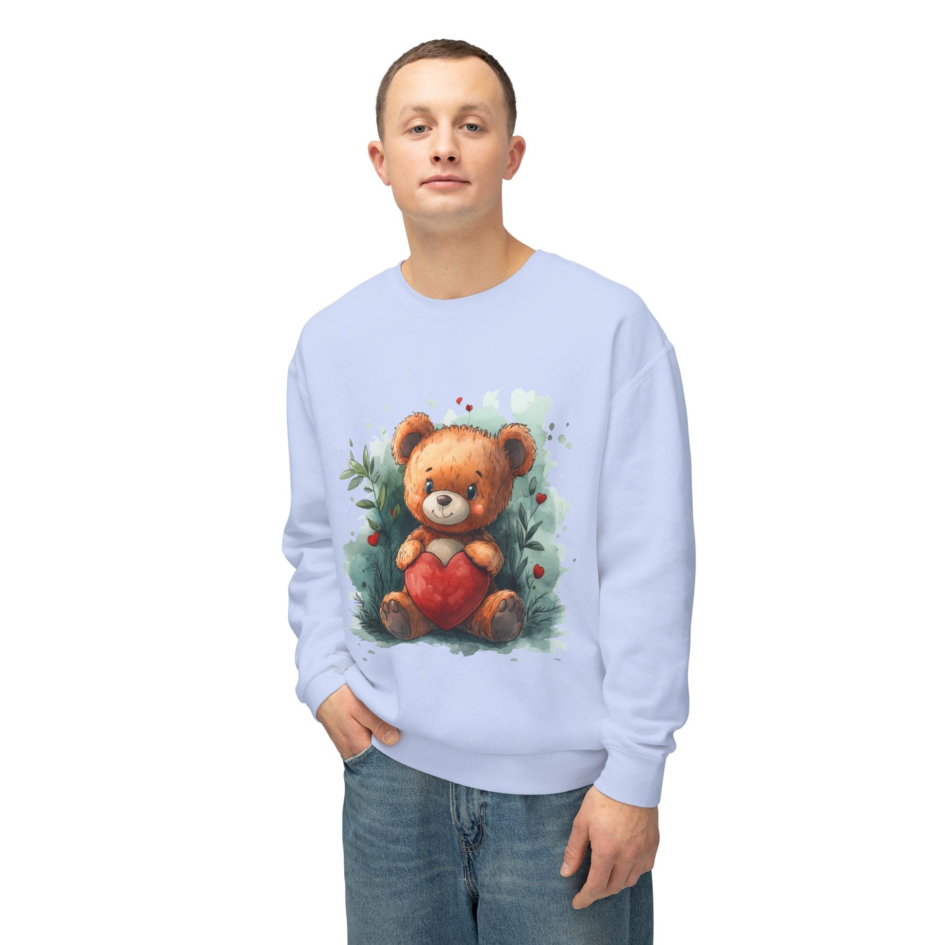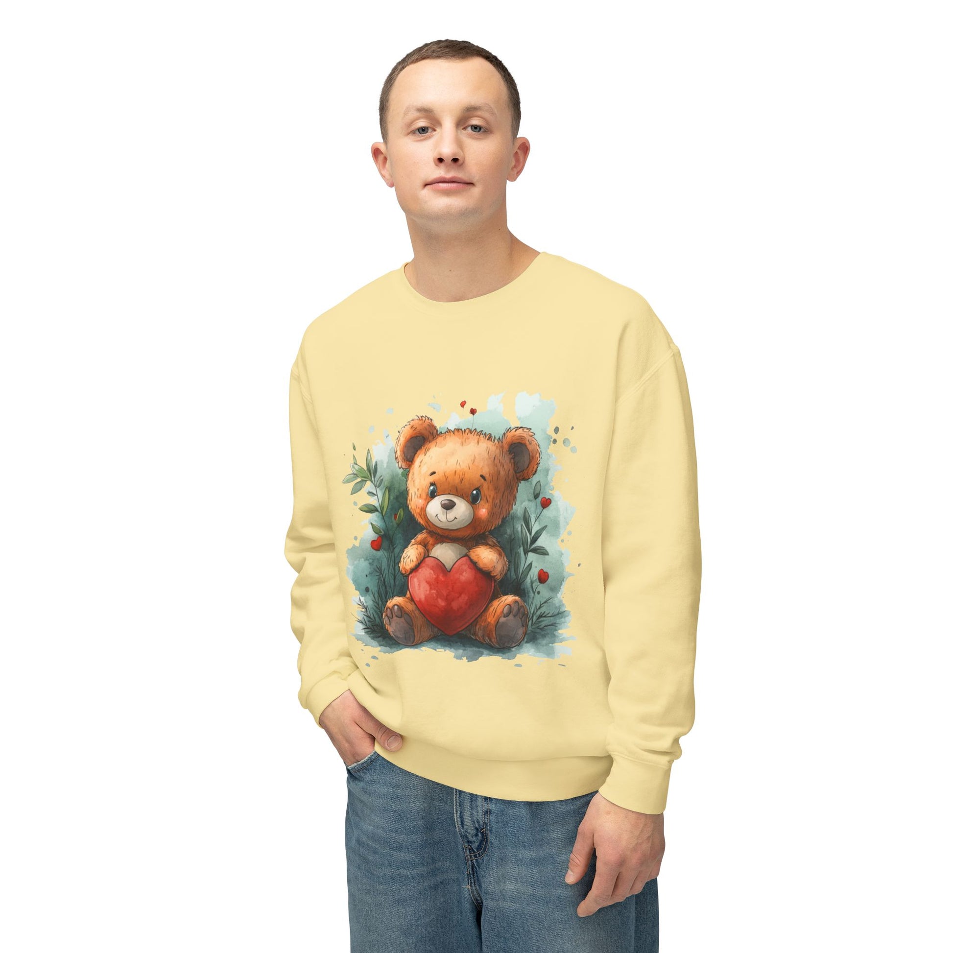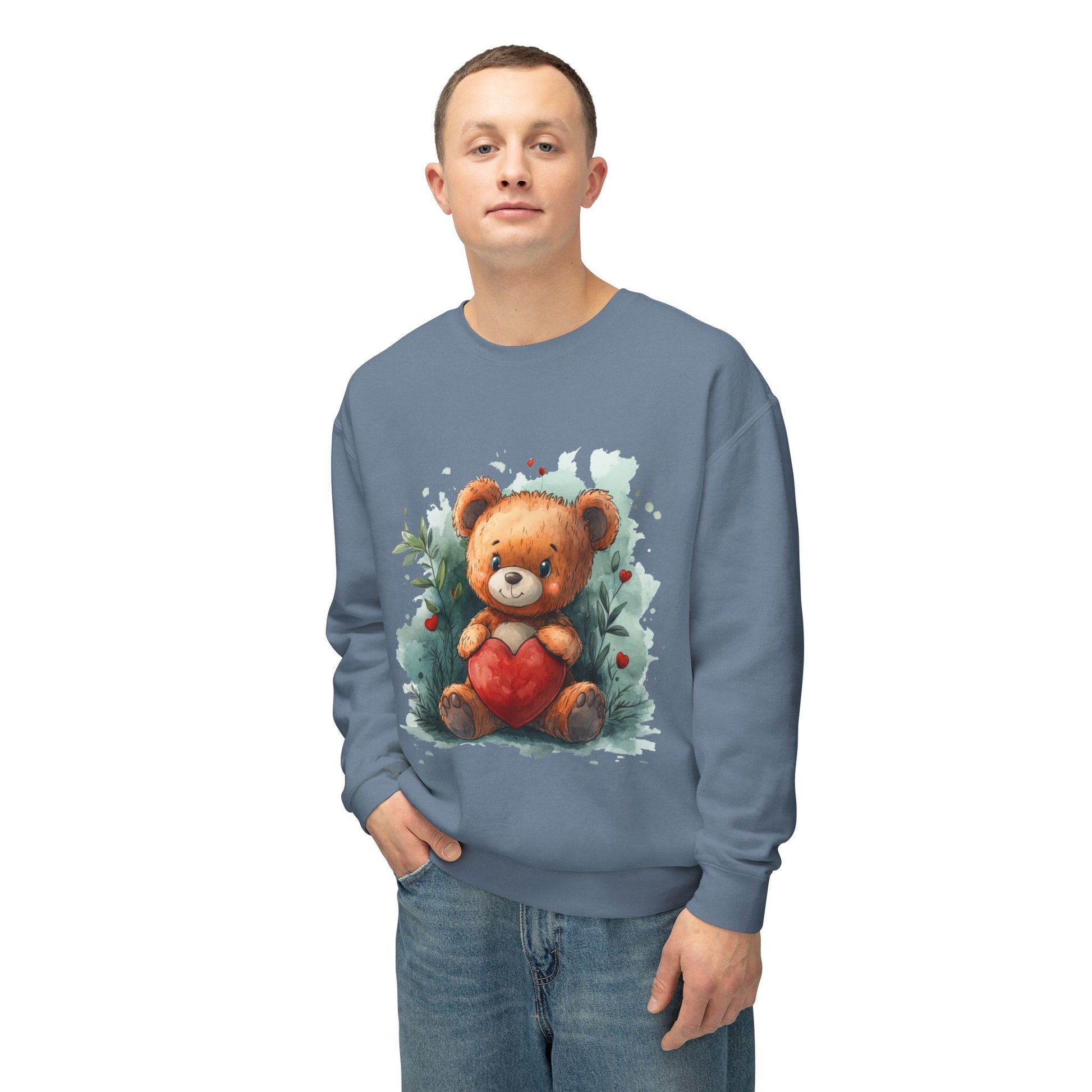 Stay comfortable and stylish with this Unisex Lightweight Crewneck Sweatshirt, featuring an adorable teddy bear design that adds a touch of playful charm to your casual wardrobe. Crafted from soft fabric, this lightweight sweatshirt is perfect for layering or wearing on its own during cooler days. The relaxed fit and cozy feel make it an ideal choice for lounging at home, running errands, or casual outings.