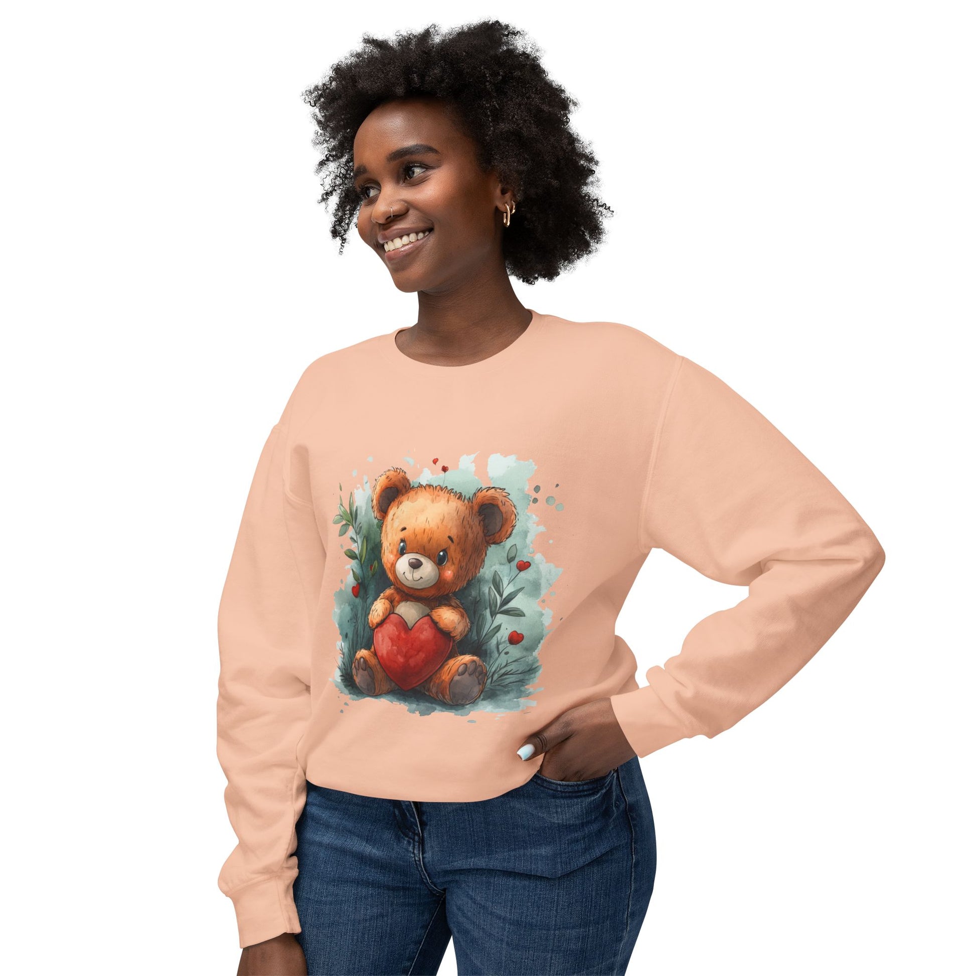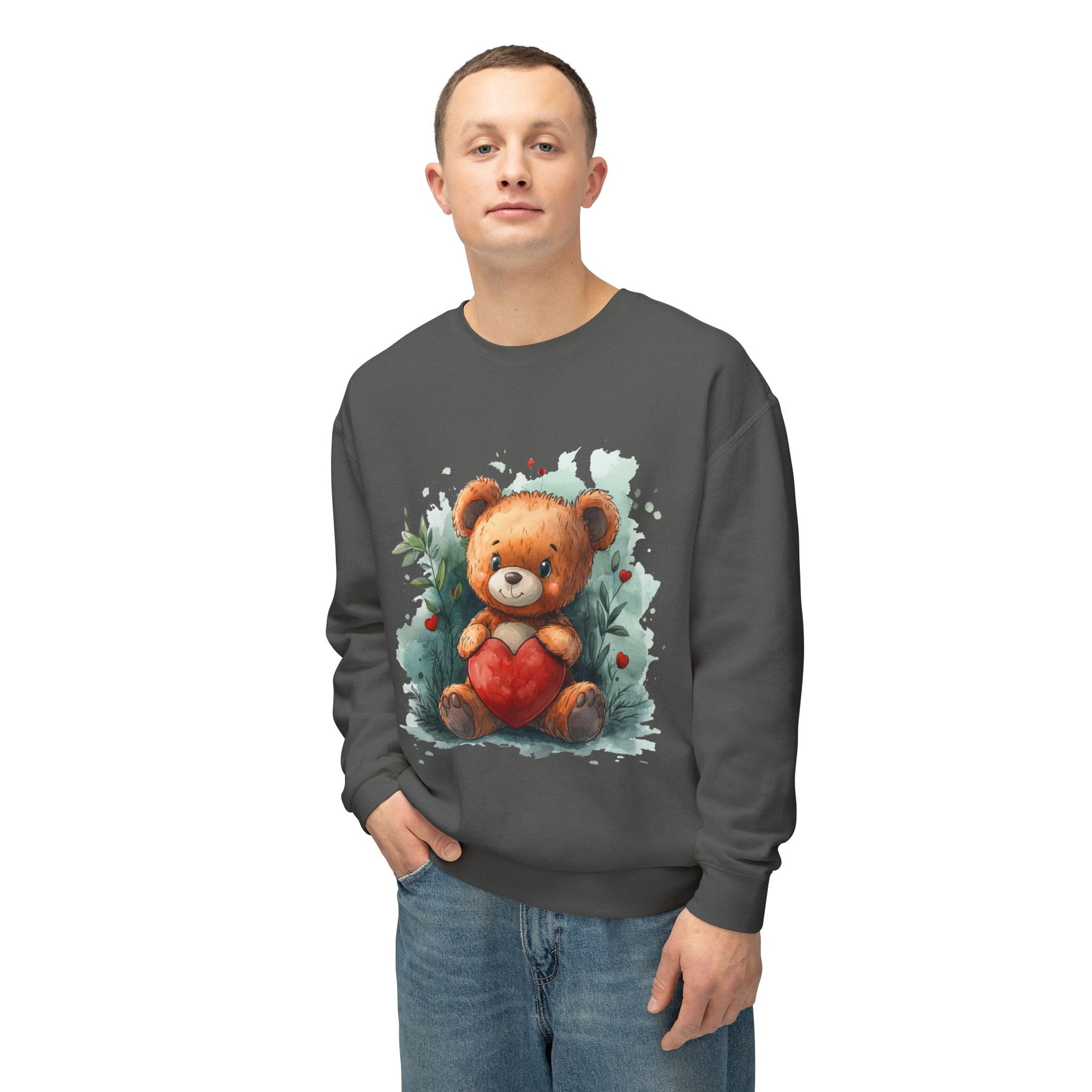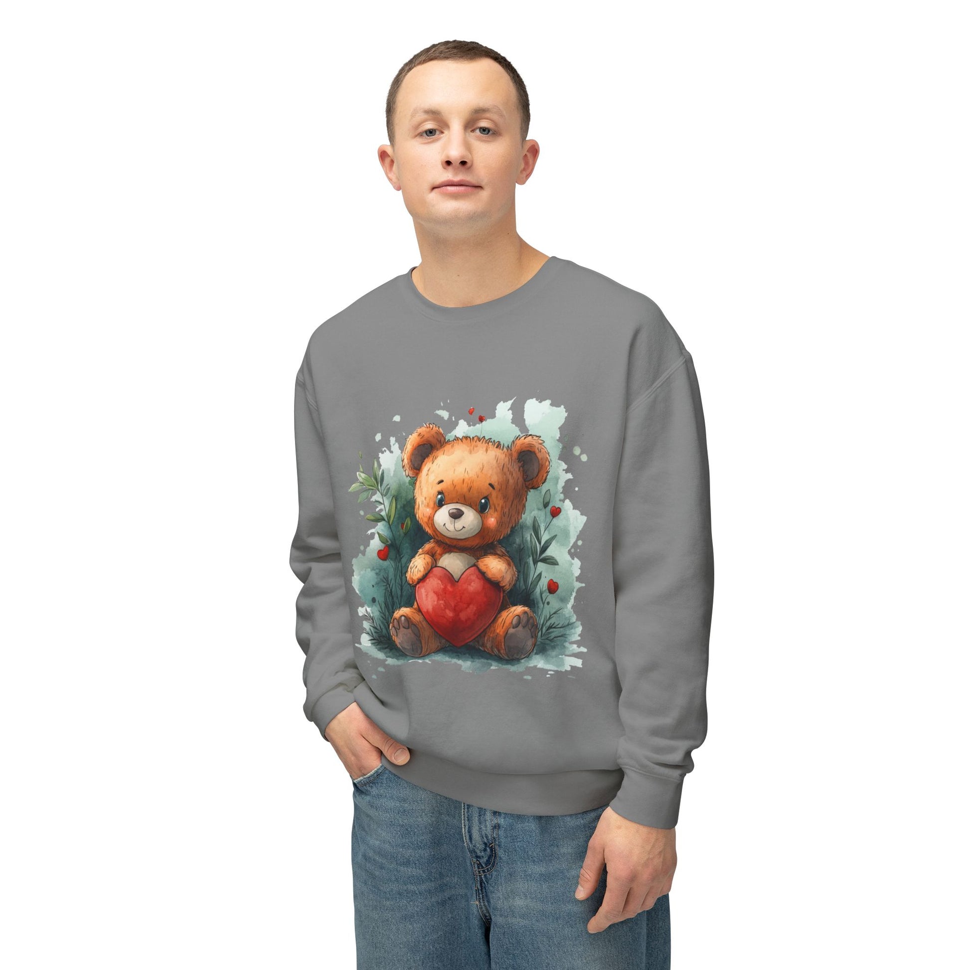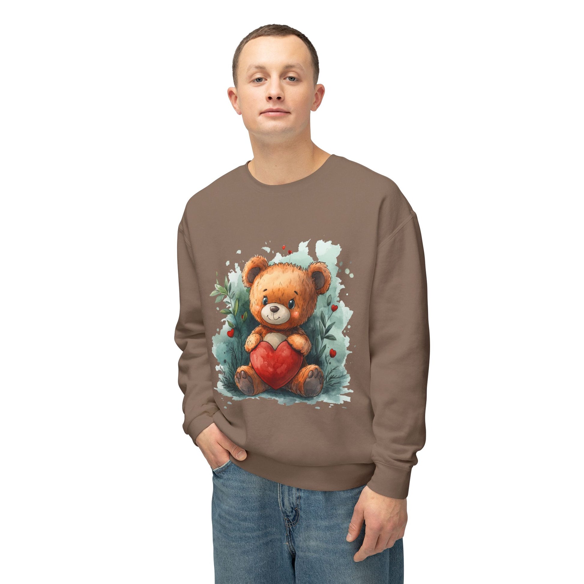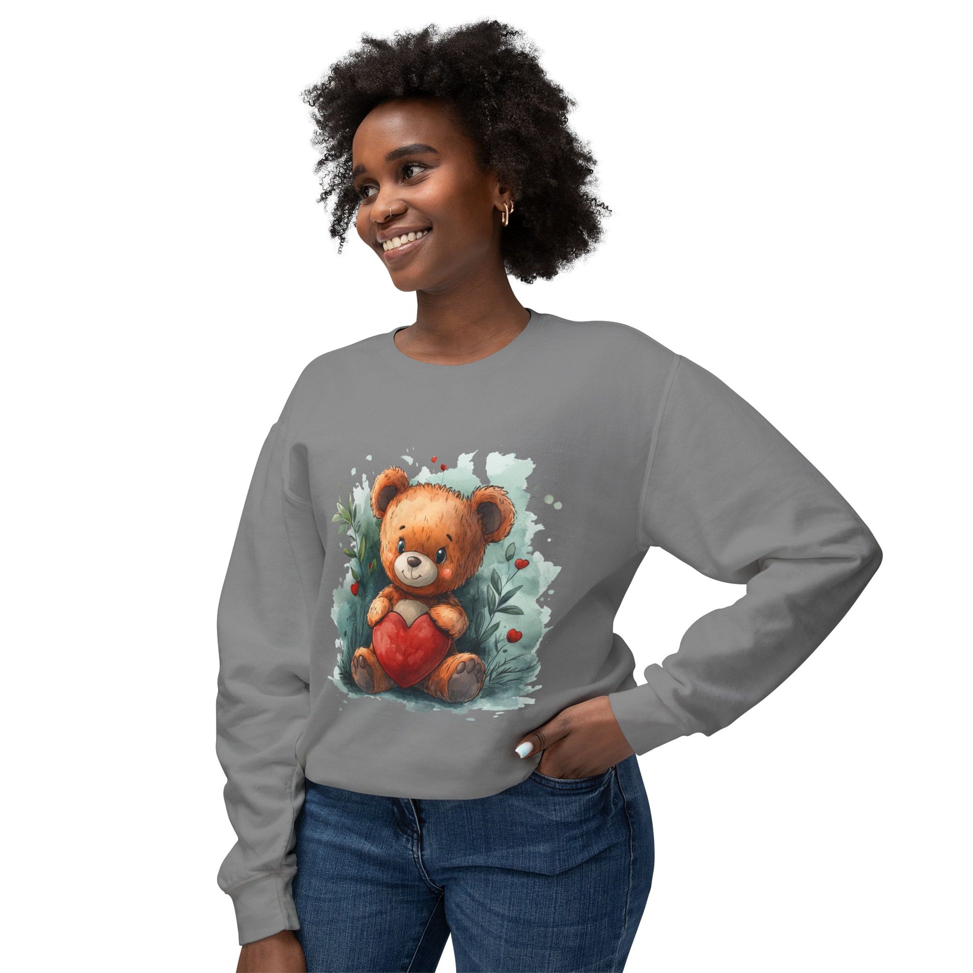Stay comfortable and stylish with this Unisex Lightweight Crewneck Sweatshirt, featuring an adorable teddy bear design that adds a touch of playful charm to your casual wardrobe. Crafted from soft fabric, this lightweight sweatshirt is perfect for layering or wearing on its own during cooler days. The relaxed fit and cozy feel make it an ideal choice for lounging at home, running errands, or casual outings.