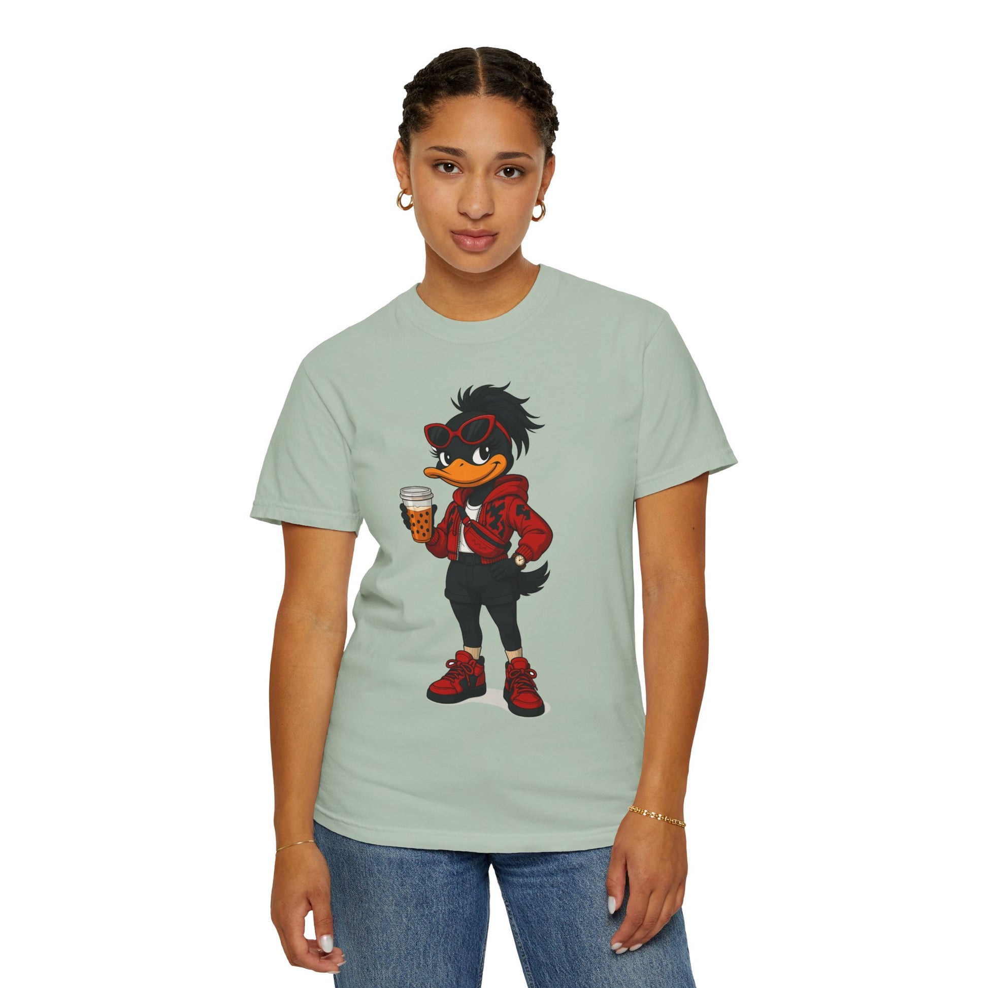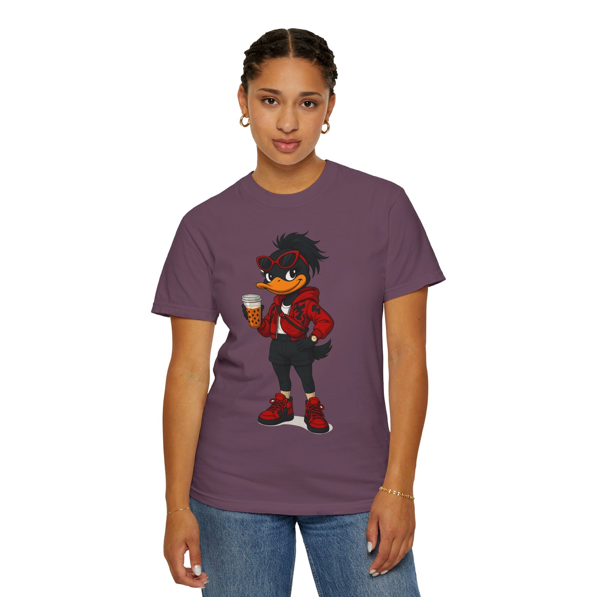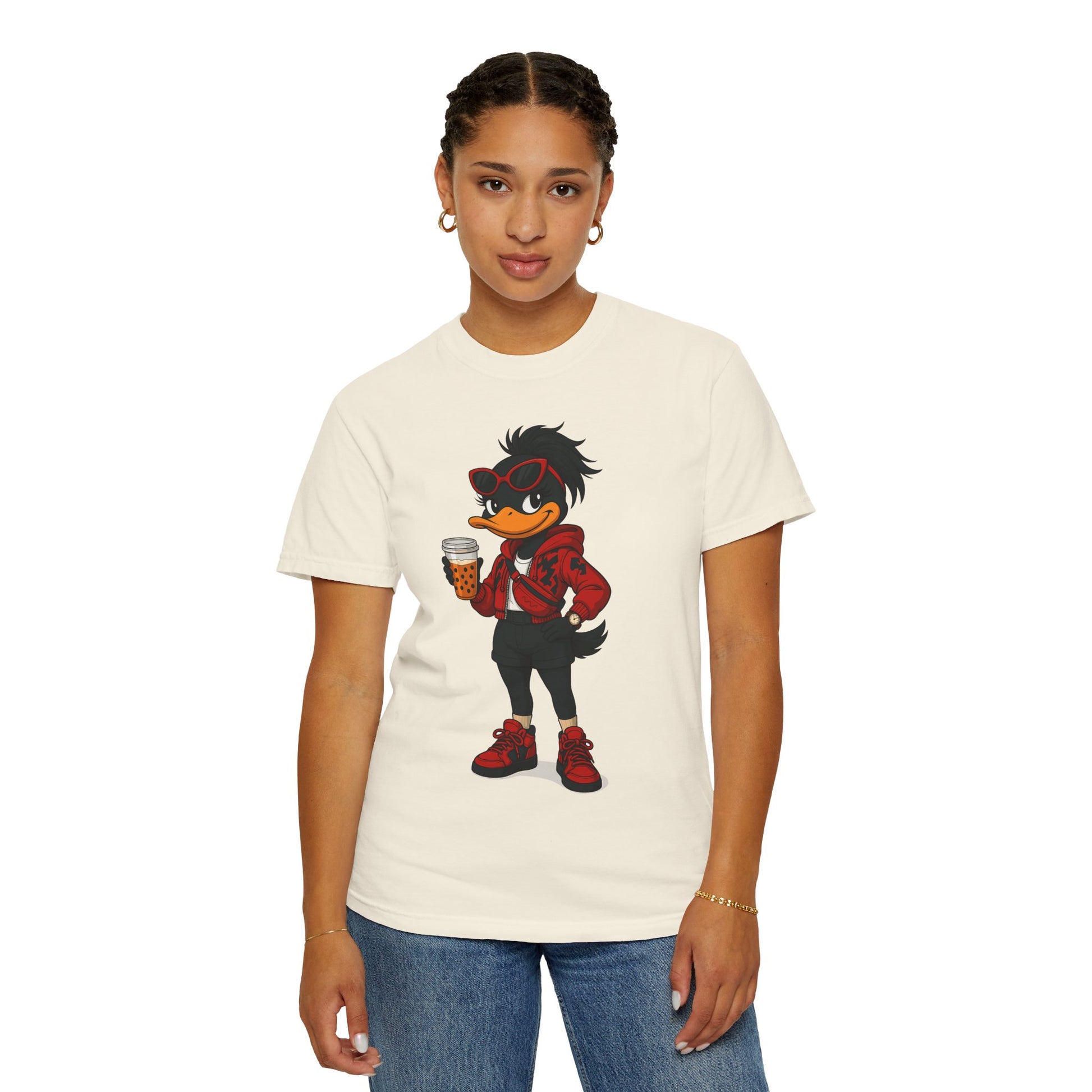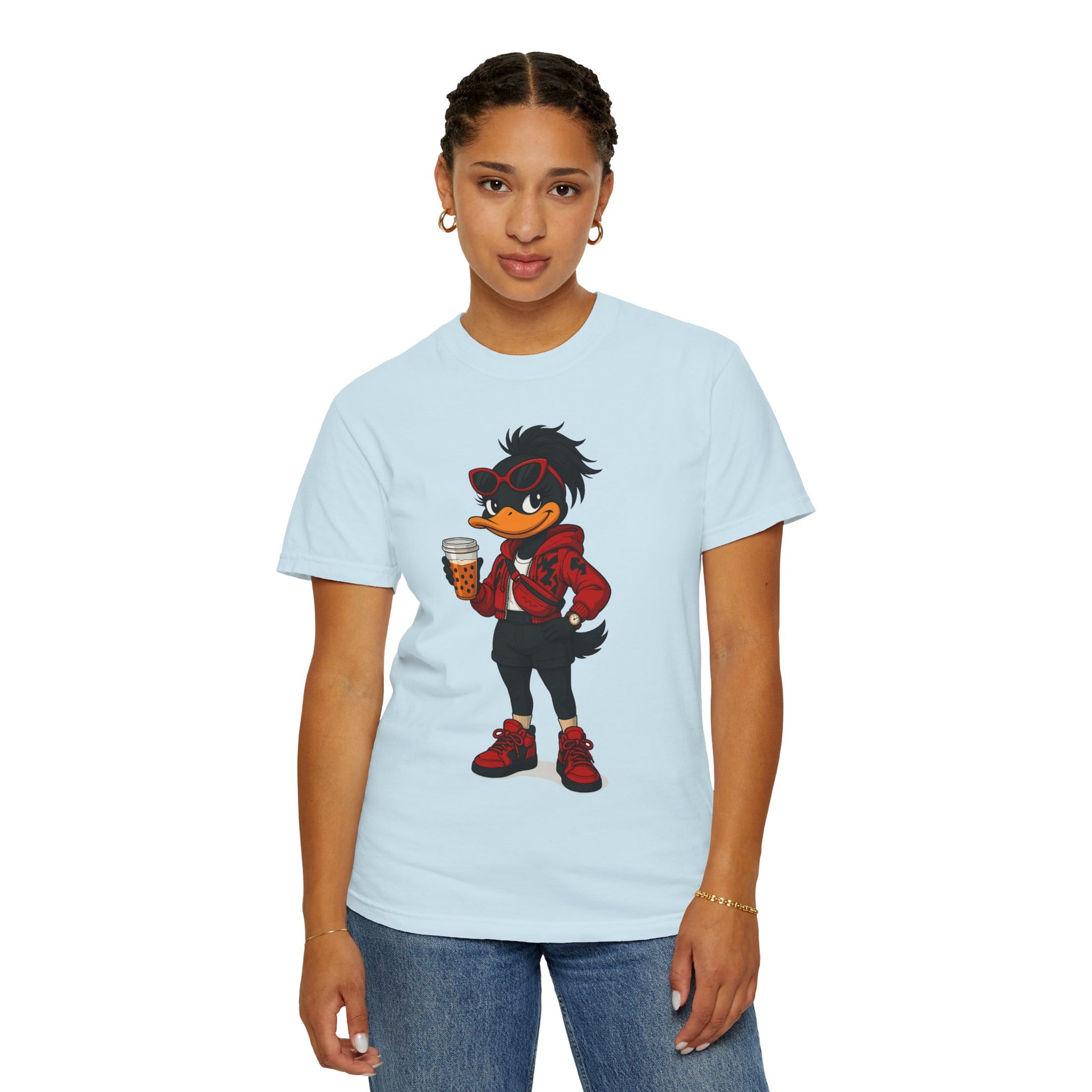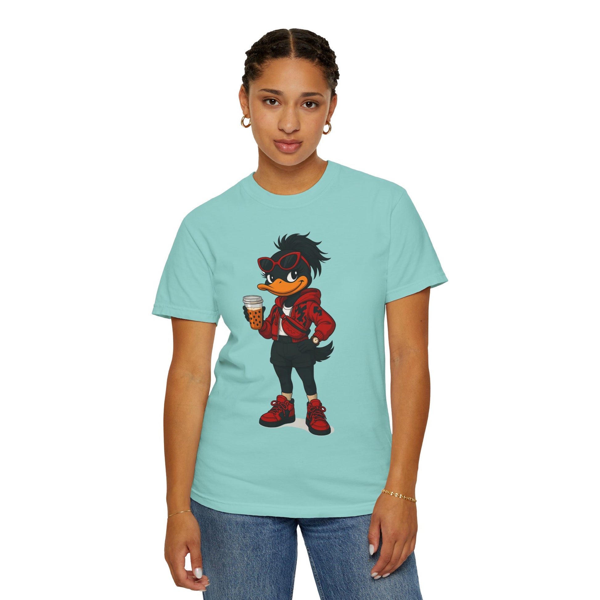 Introducing a vibrant and stylish woman's garment-dyed graphic t-shirt, designed for creative souls who love to stand out with its unique artistic character design. This soft and breathable tee brings a playful vibe to casual outings or relaxed days at home. Perfect for expressing individuality, this casual comfort is ideal for anyone who loves to blend comfort with flair —be it artists, designers, or free spirits. Whether you’re enjoying a laid-back weekend, celebrating casual gatherings, or just hanging out with friends, this shirt fits seamlessly into everyday life. Also, a great gift for birthdays, holidays, or any occasion that calls for a little fun!