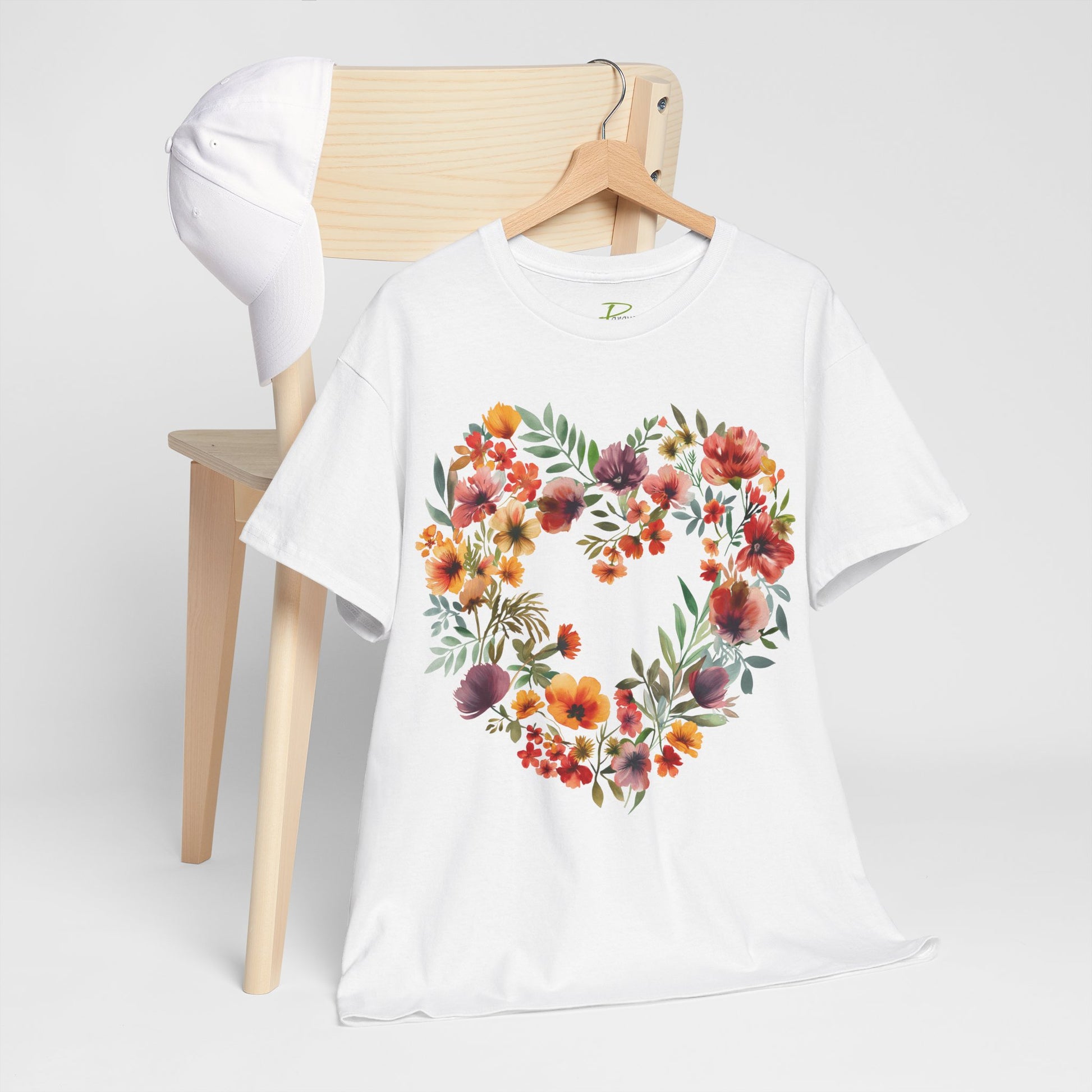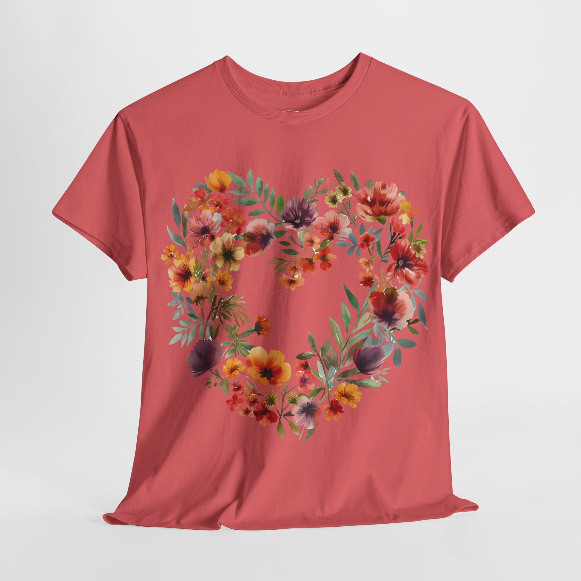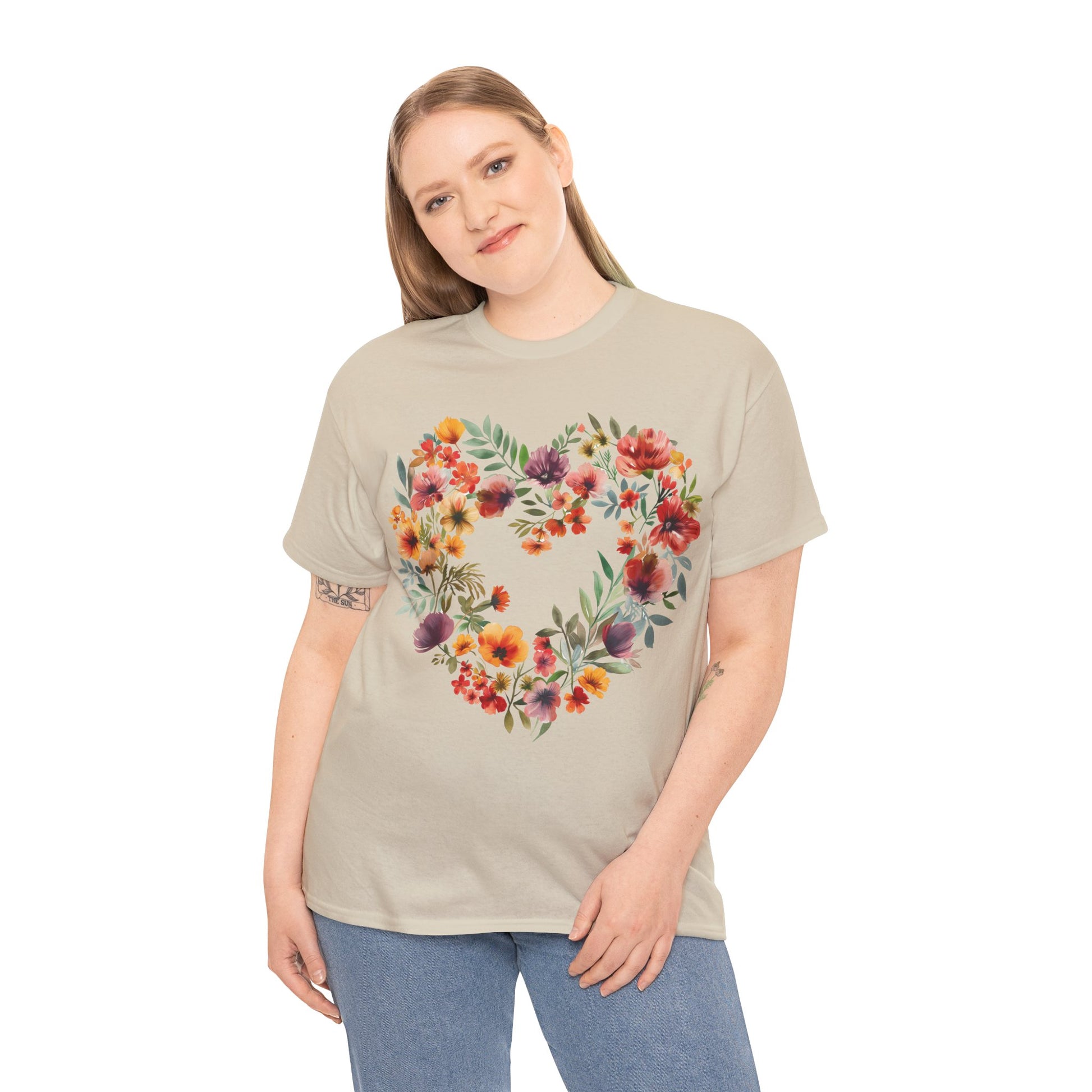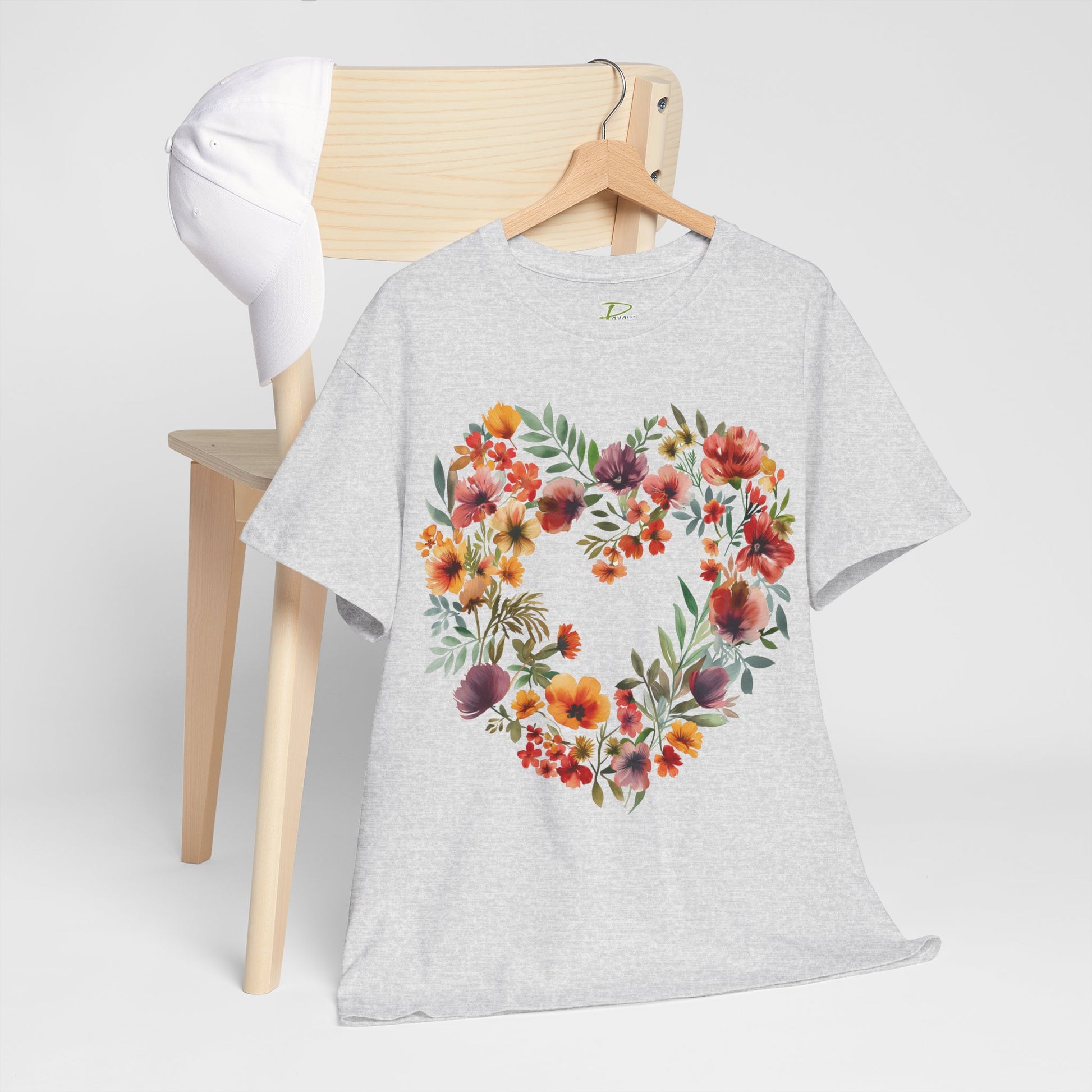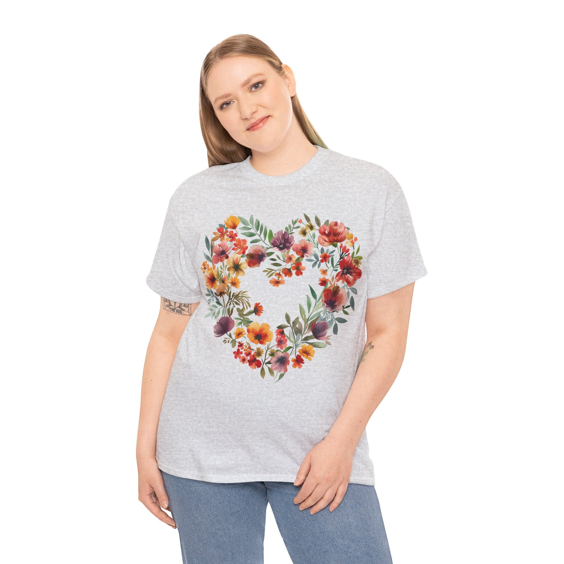 Women's Heavy Cotton Tee - Floral Heart Unisex T-Shirt