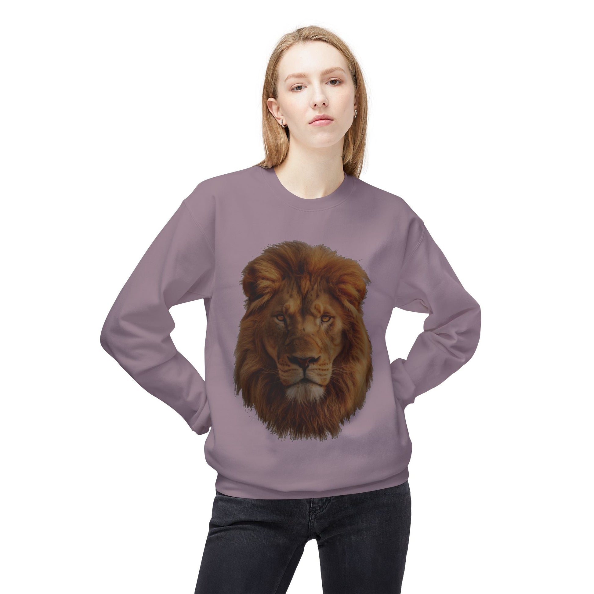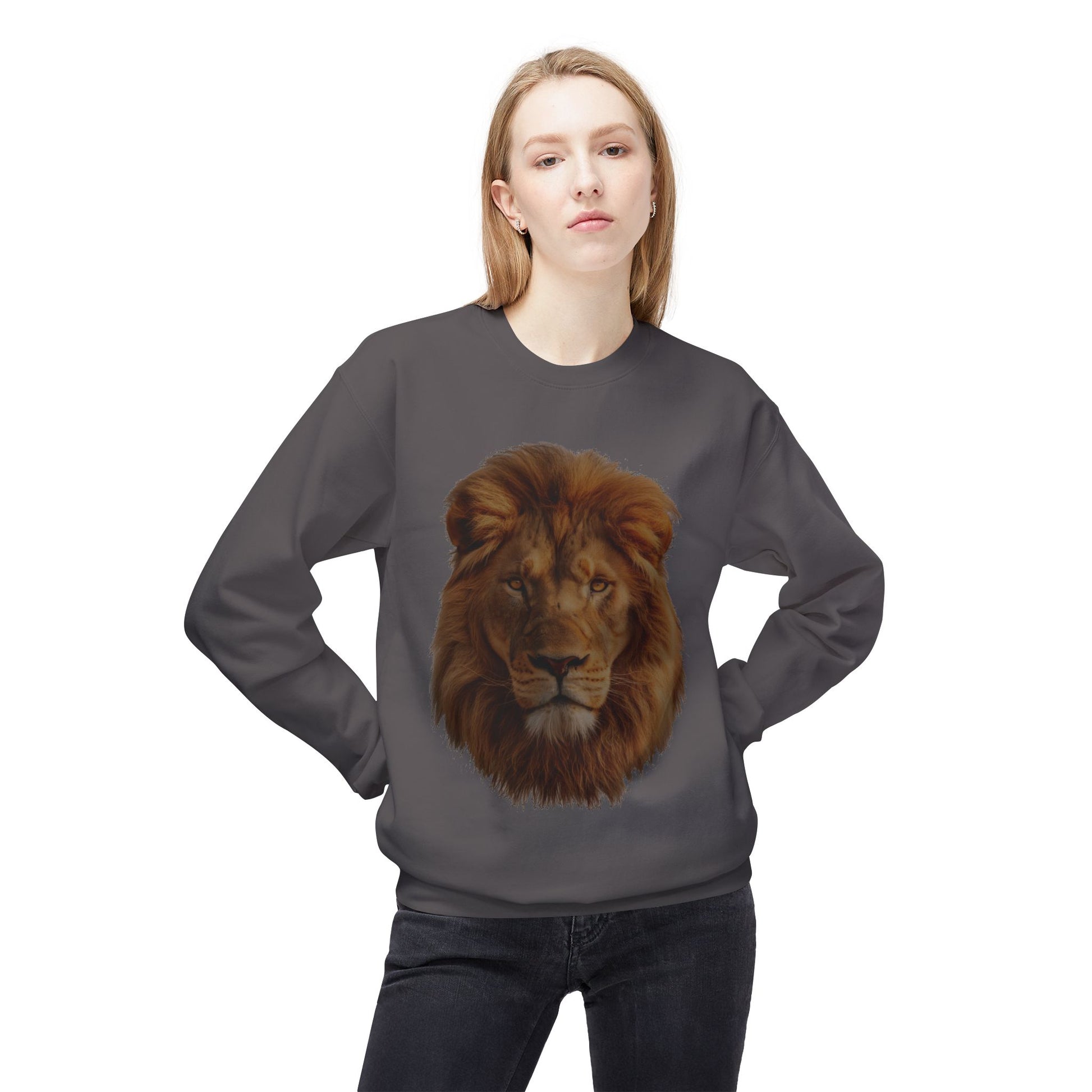 Unisex Midweight Soft style Fleece Crewneck Sweatshirt - Majestic Lion Design Sweatshirt